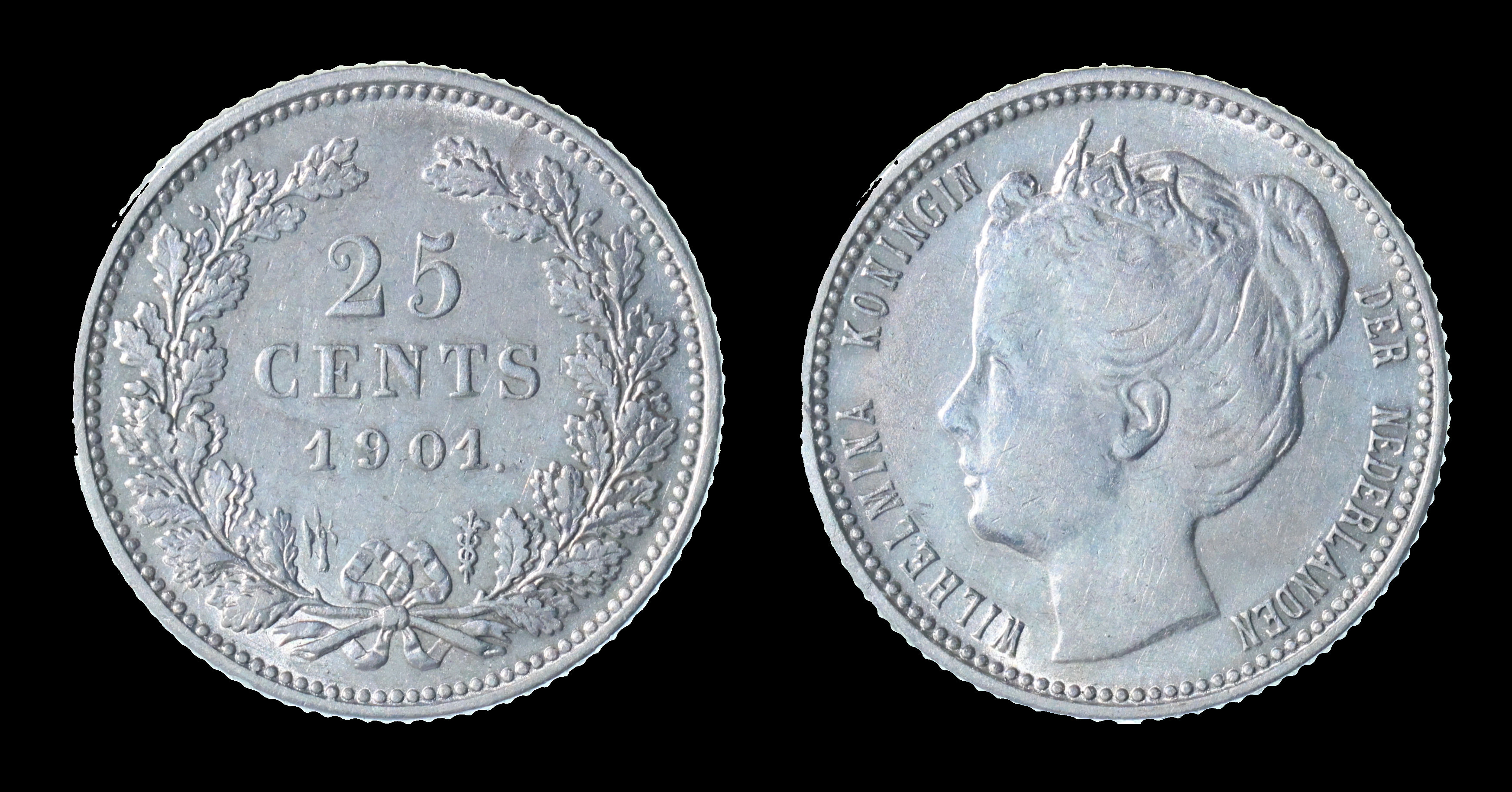 2242 imageNEDERLAND, 25 cent koningin Wilhelmina 1901a brede hals (Sch.584) ZF (Image)
