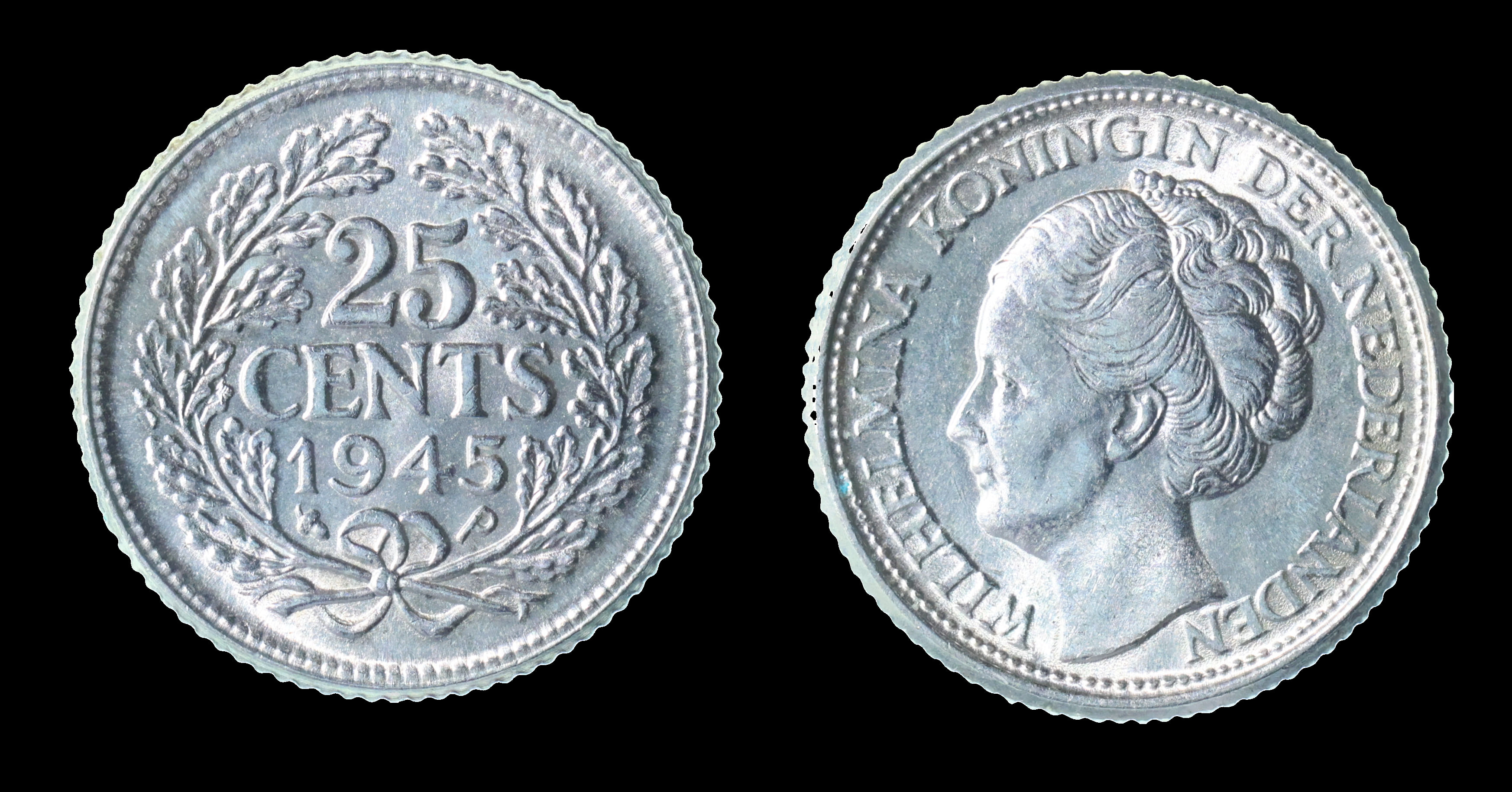 2243 imageNEDERLAND, 25 cent koningin Wilhelmina 1945P (Sch.1058) ZF/P (Image)