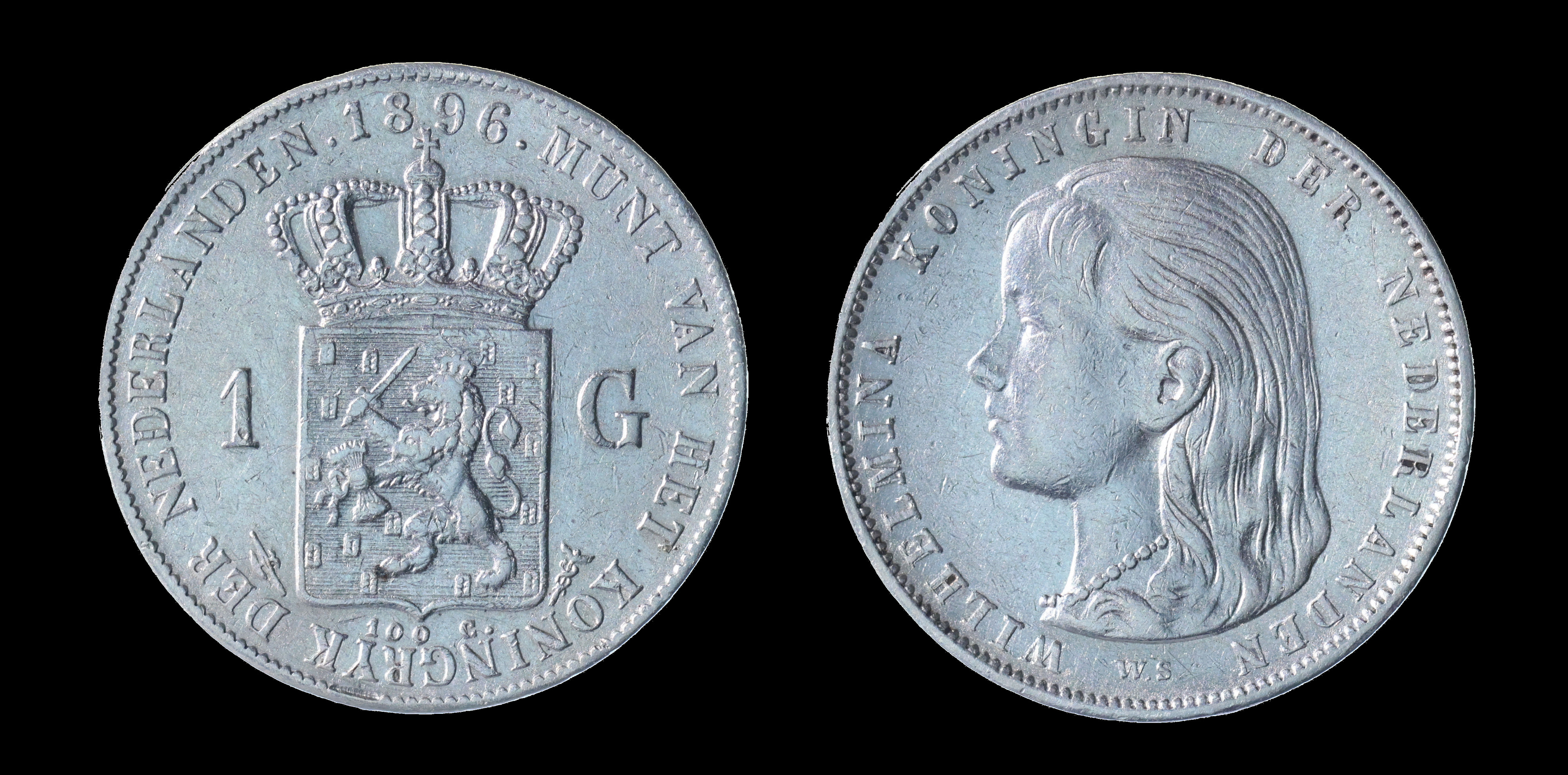 2244 imageNEDERLAND, 1 gulden koningin Wilhelmina 1896 (Sch.796) ZF/P (Image)