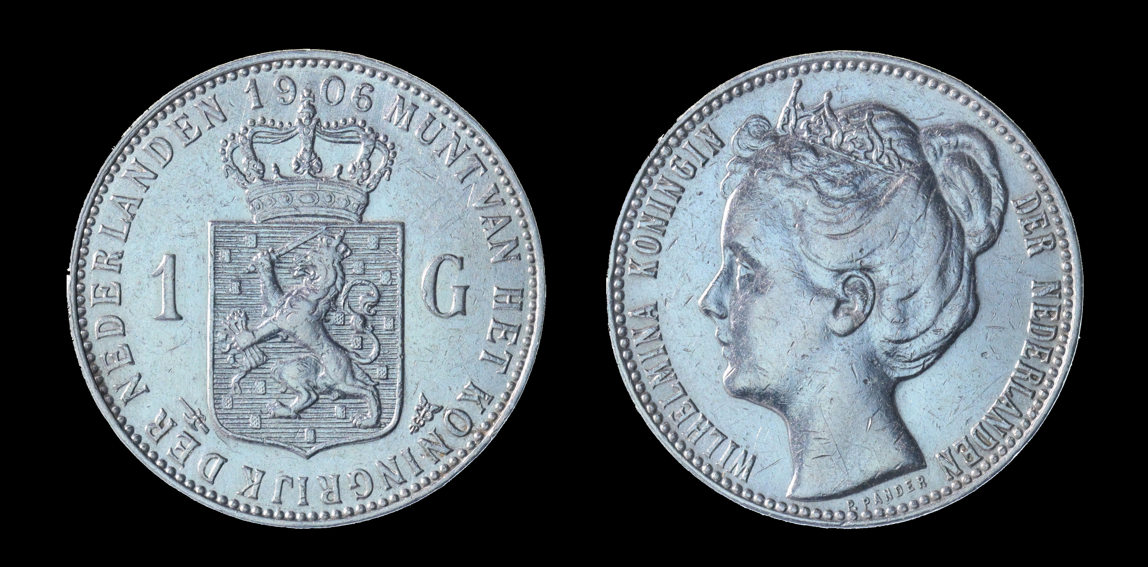 NEDERLAND, 1 gulden koningin Wilhelmina 1906 (Sch. 808) ZF/P (Image)