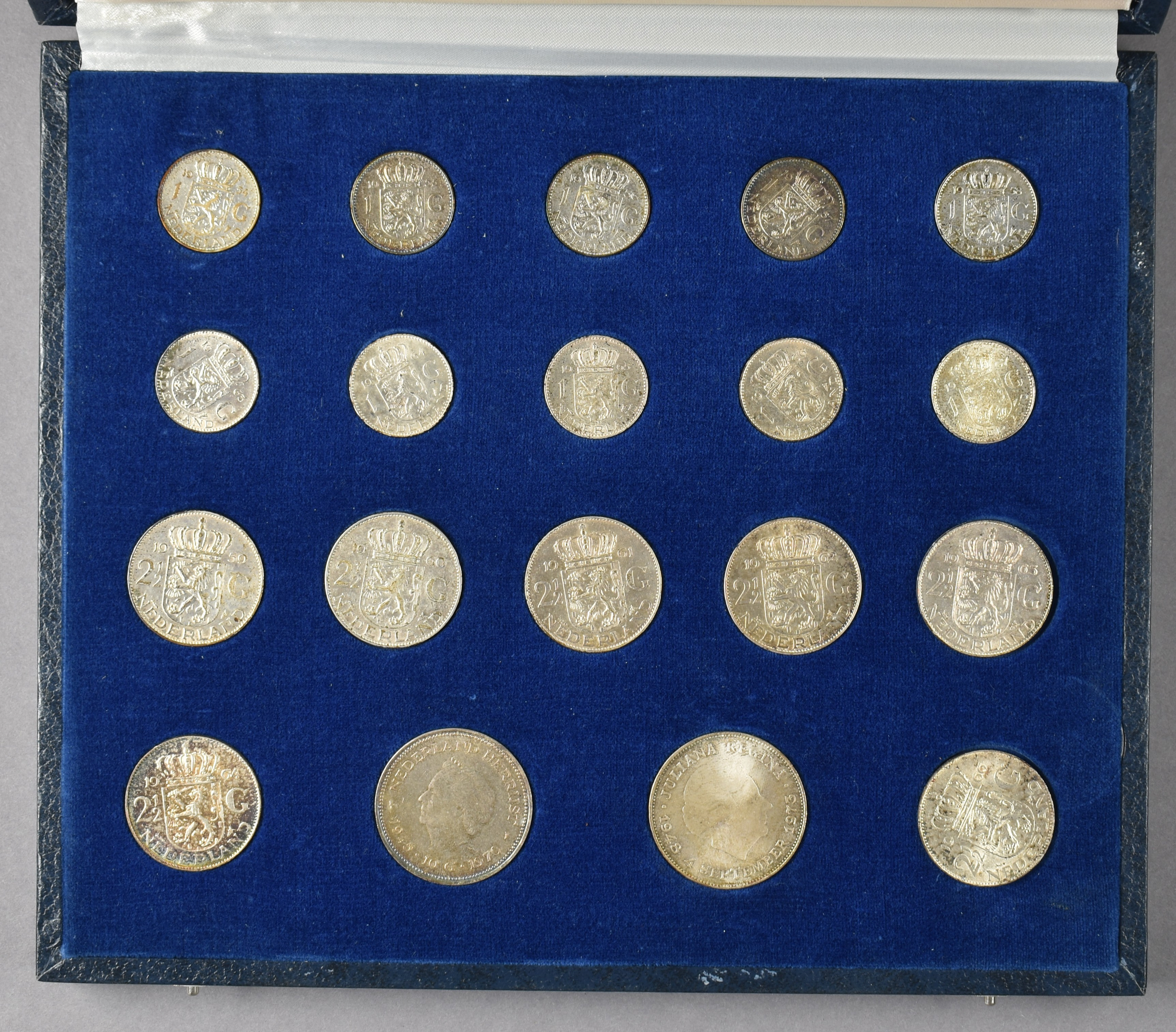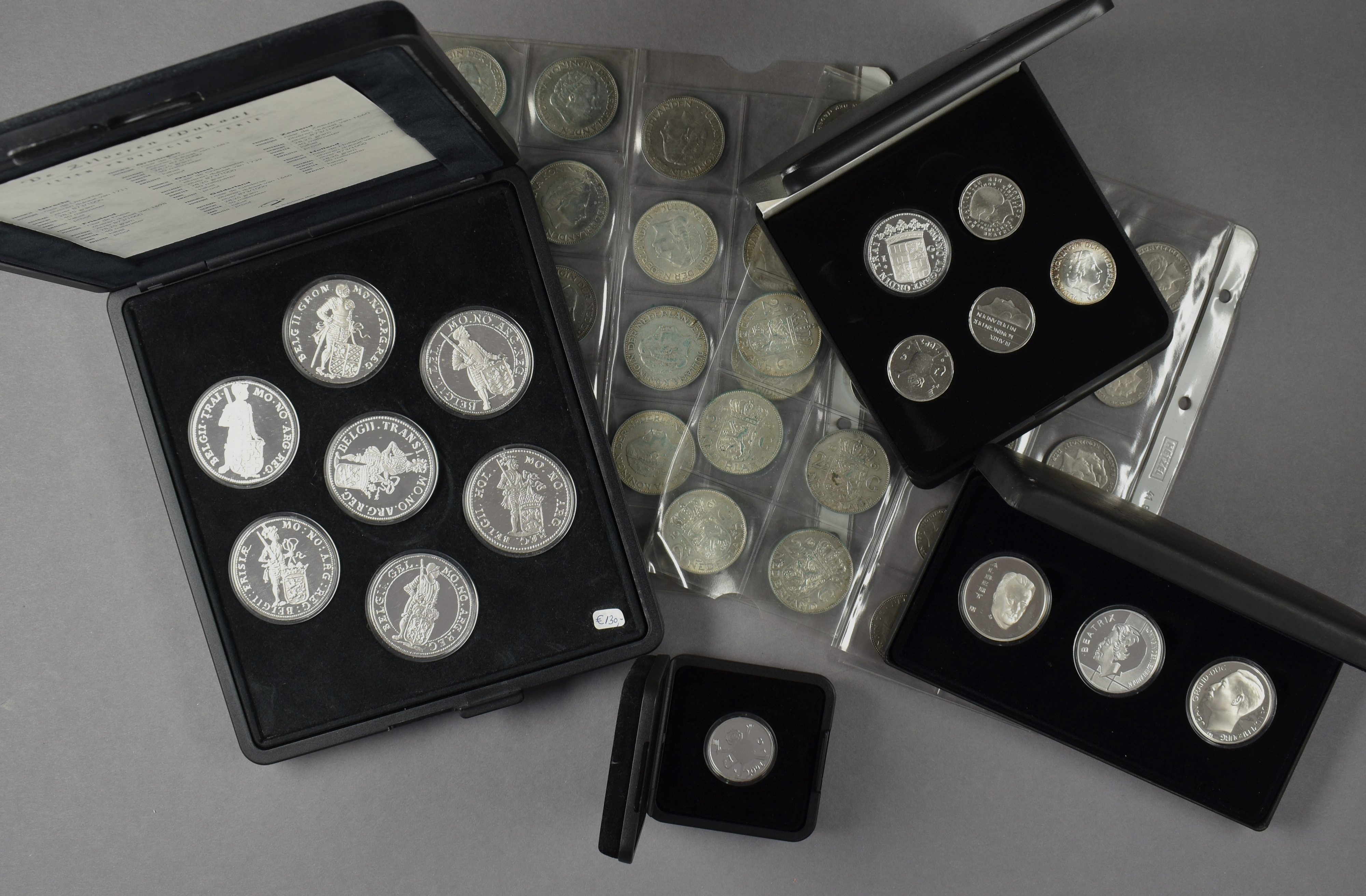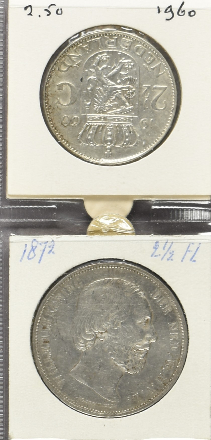 NEDERLAND, zilveren guldens, Rijksdaalders, 10- en 50 guldens alsmede zilveren Dukaten, in totaal ruim 1700 gram netto (Image) (Image2)
