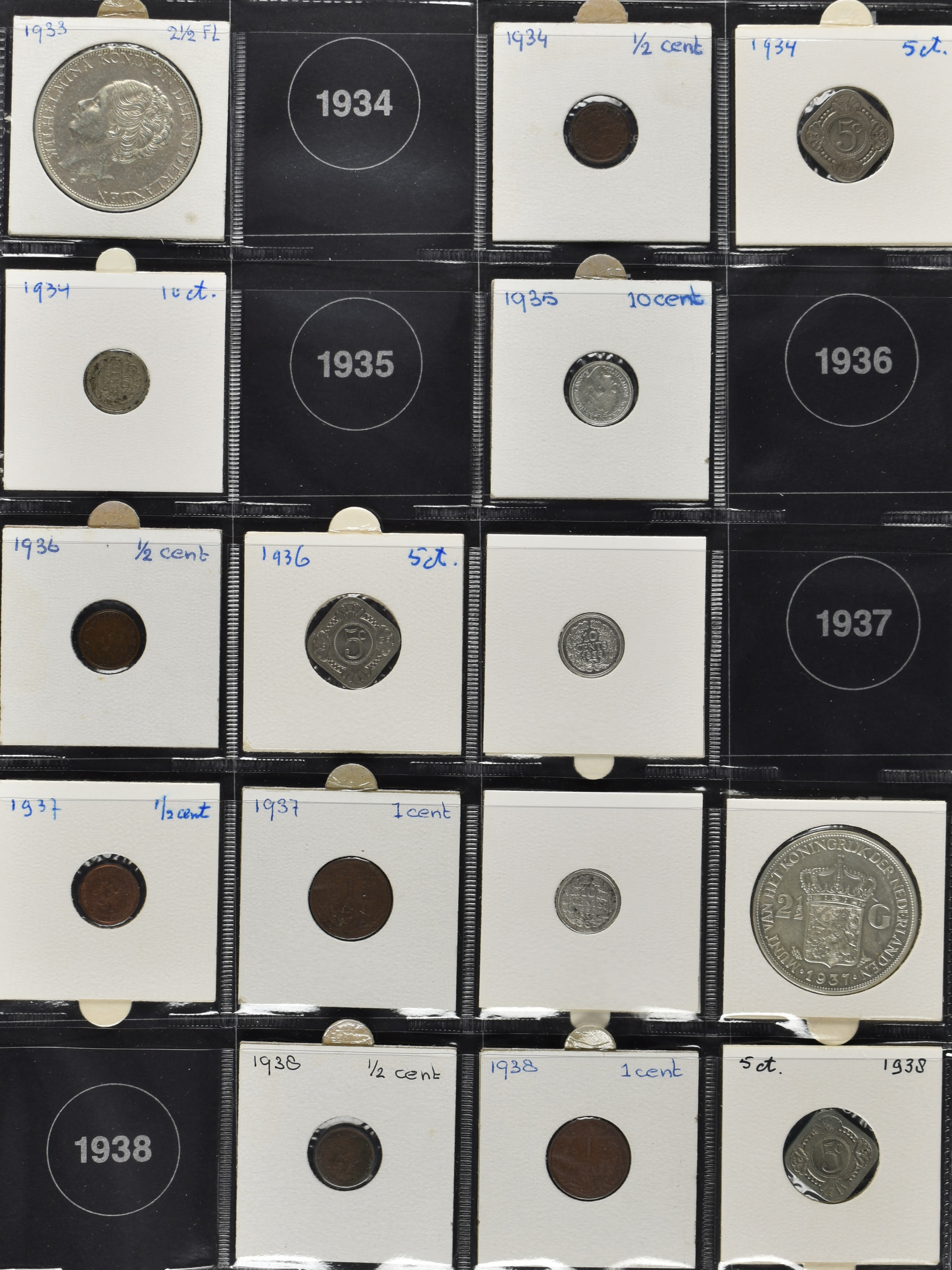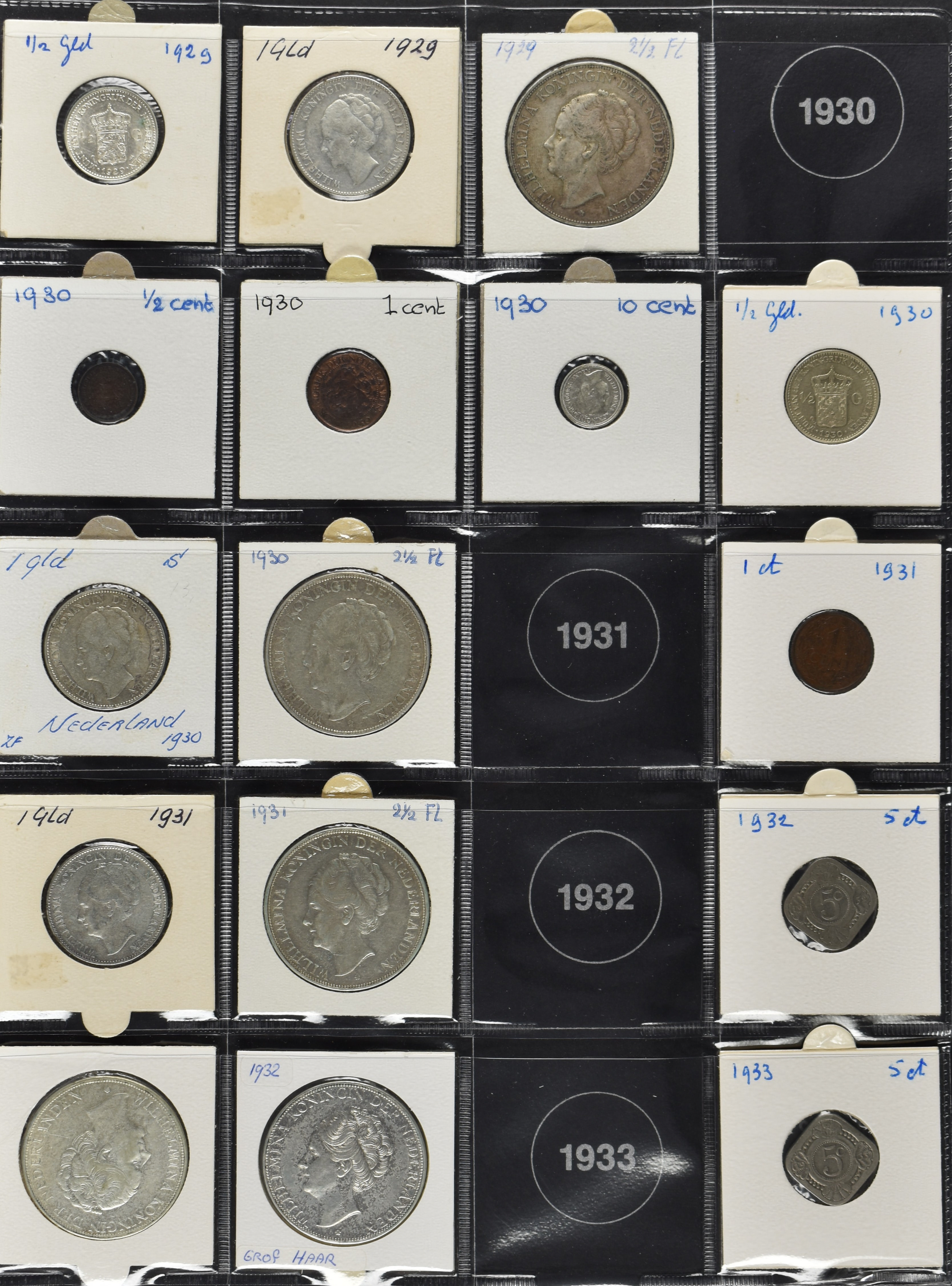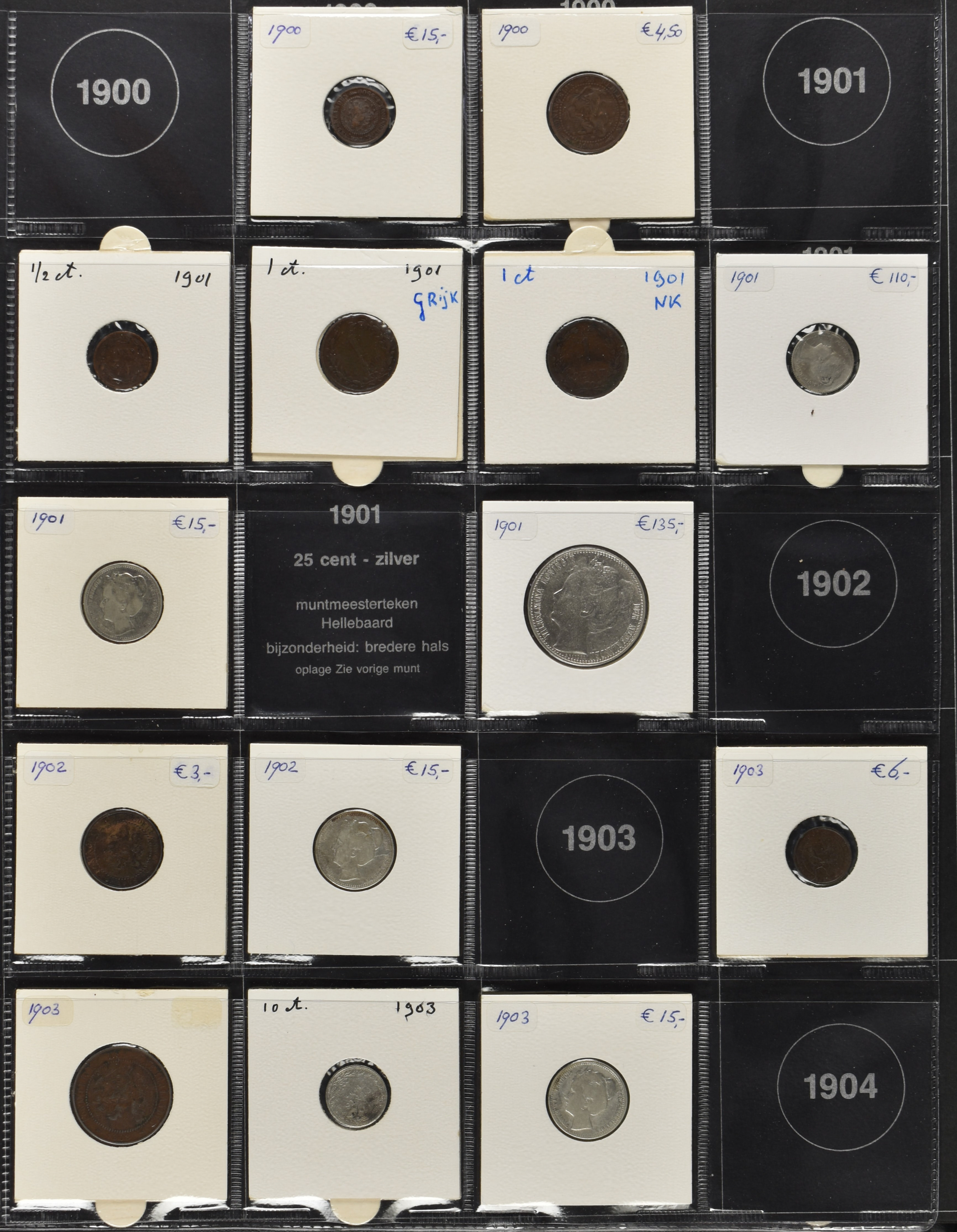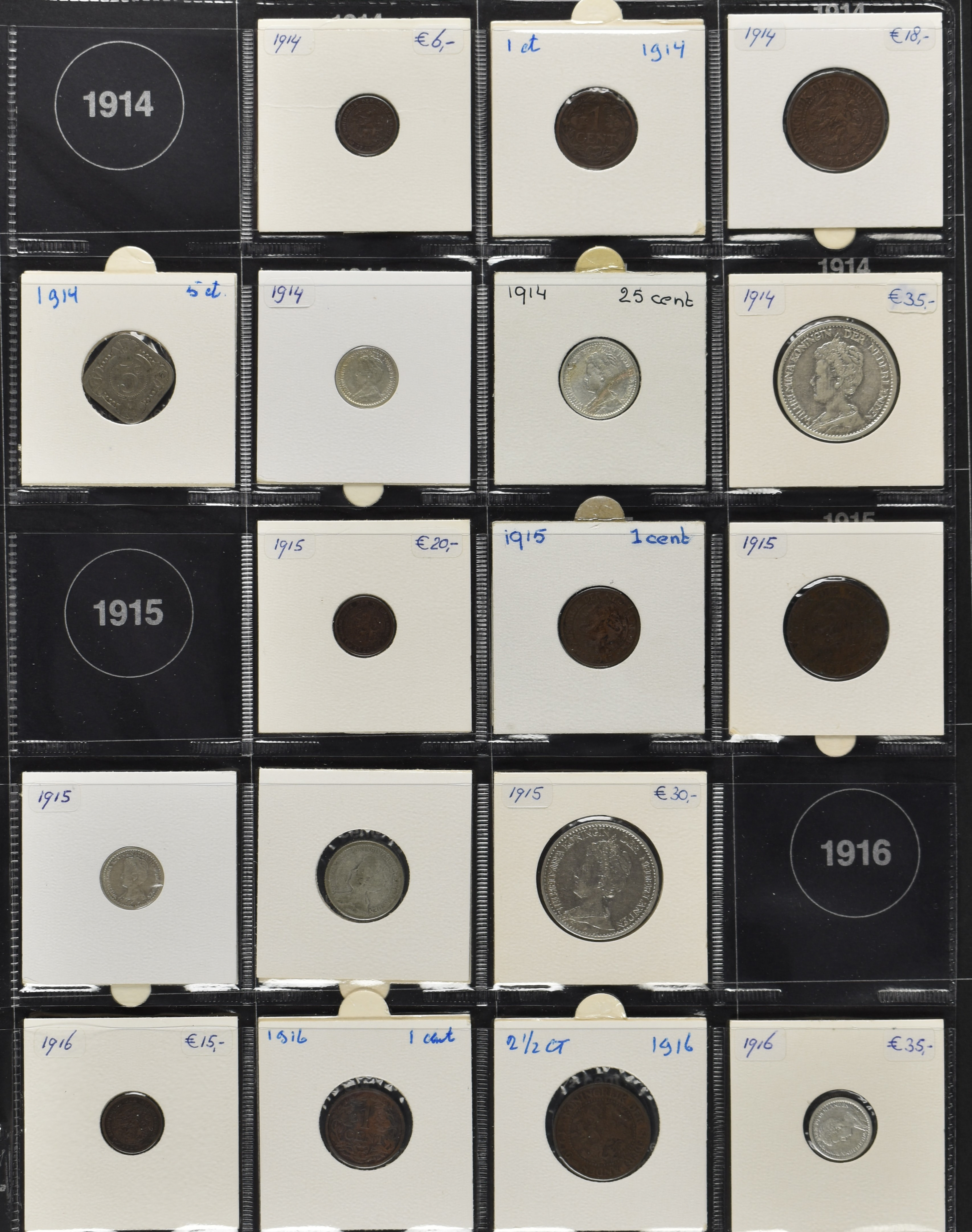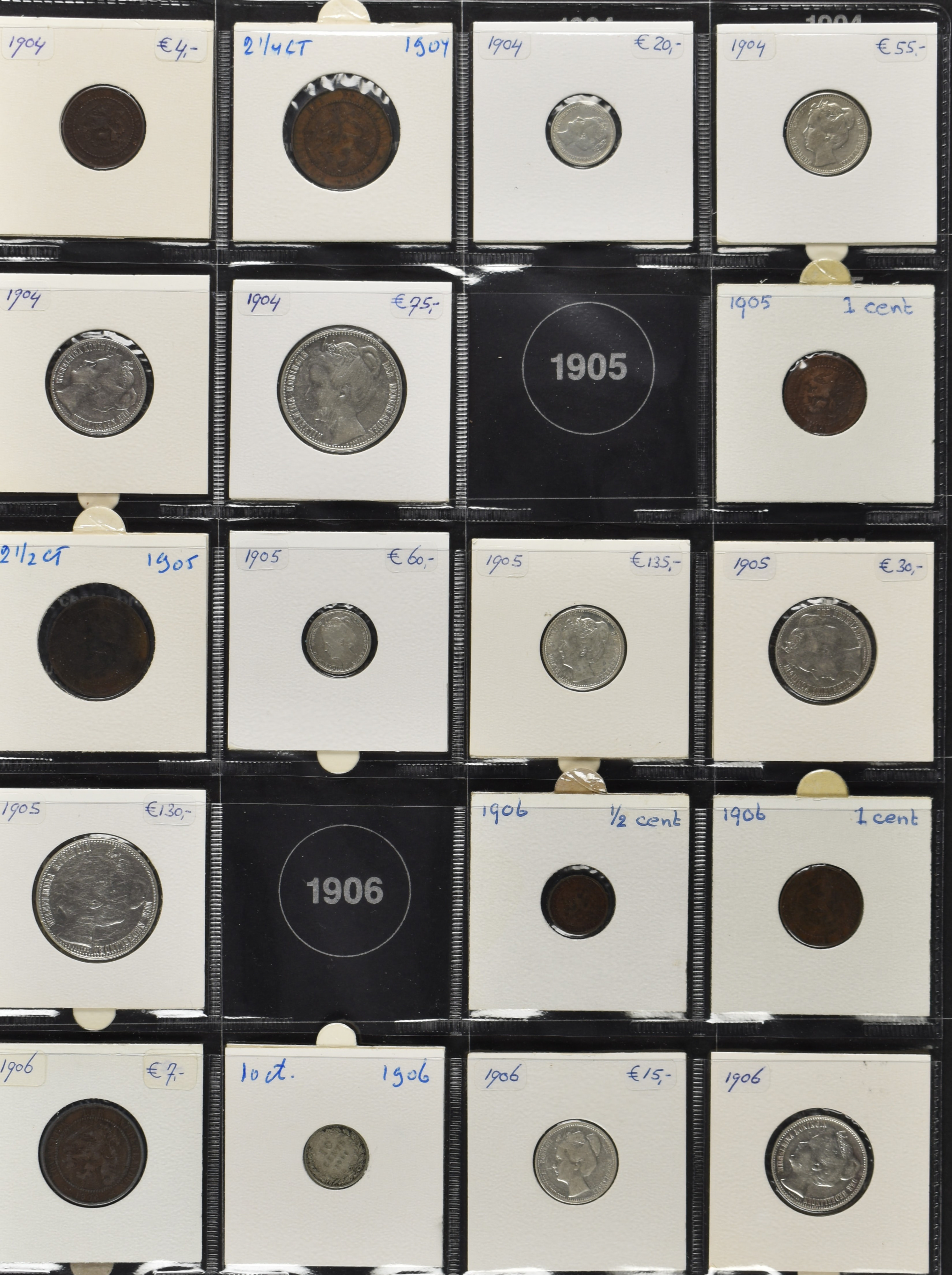 NEDERLAND, jaartalverzameling koningin Wilhelmina ½ cent t/m 2½ gulden in 2 albums waarbij diverse betere jaren met o.a.: 25 cent 1896, 1 gulden 1910 en 1911, 2½ gulden 1932 en 1938 grof haar en diverse andere aardige ex. (Image) (Image2)
