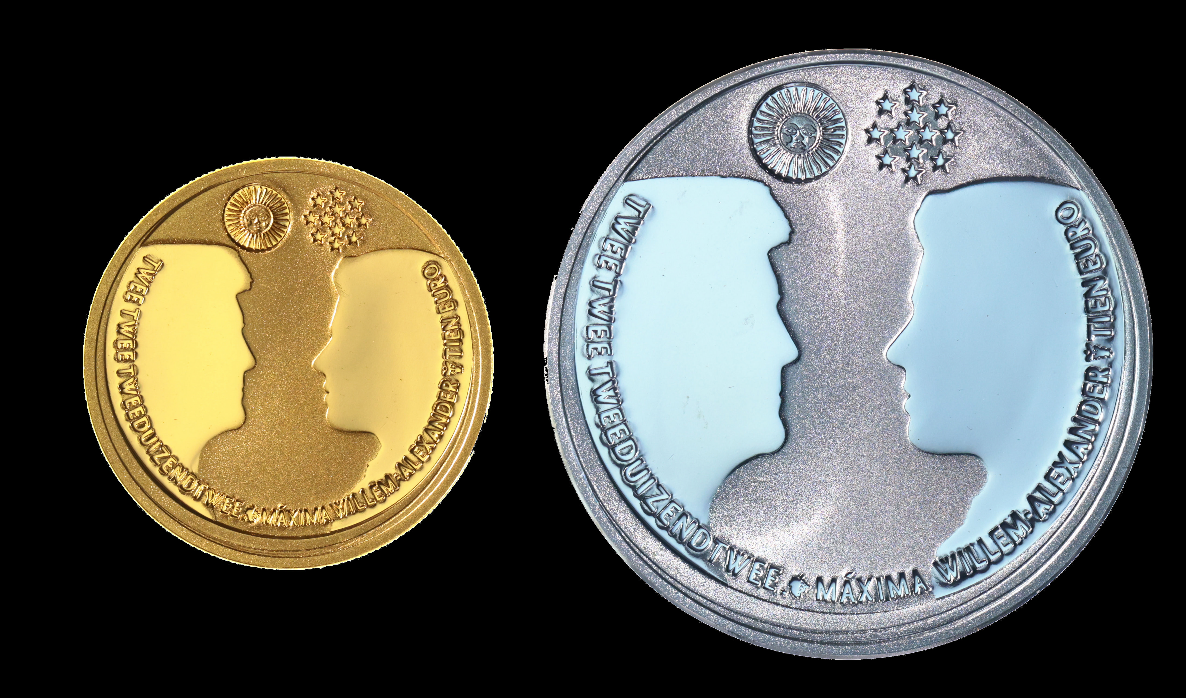 NEDERLAND, Huwelijks-set Willem Alexander en Maxima met €10 goud en €10 zilver in houten cassette (Image)