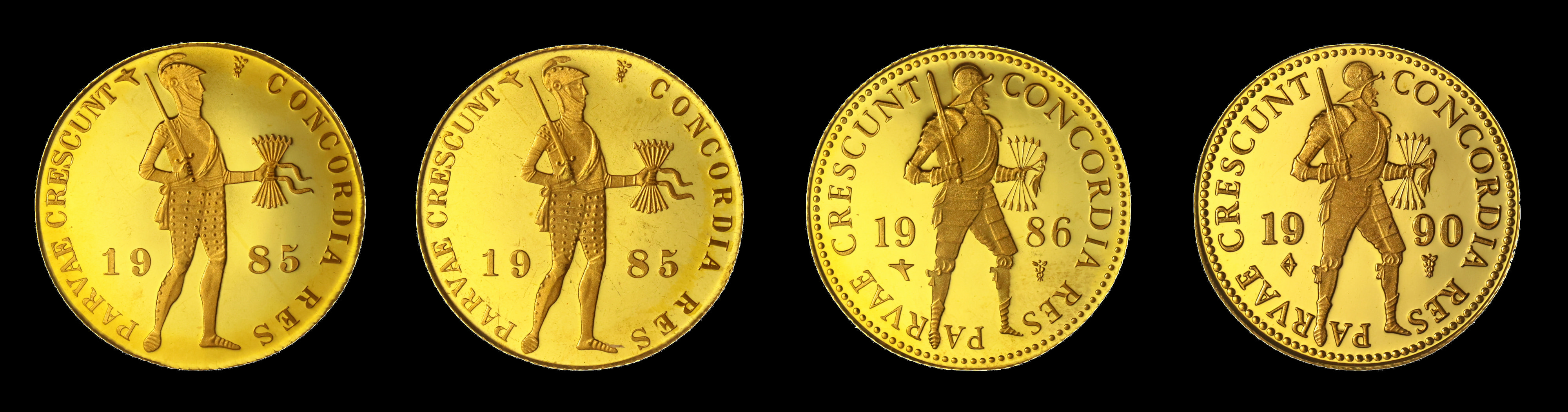 NEDERLAND, 4 gouden dukaten 1985 (2), 1986 en 1990, 13,73 gram .983 (Image)