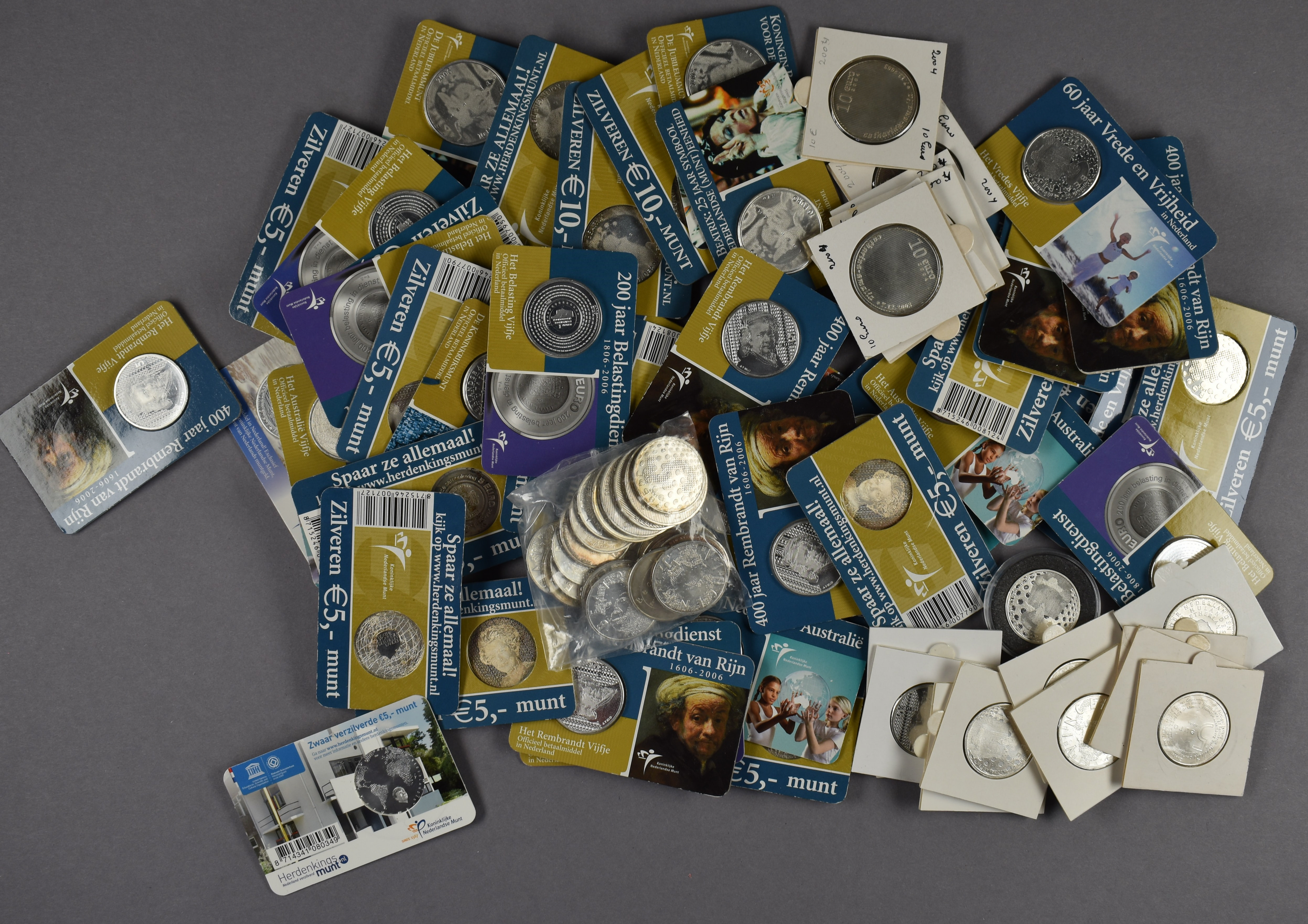 EURO, diversen, waarbij zilveren en verzilverde €5 en €10 coin-cards en los, muntmeestersets, goede doelen sets, VOC set deel I tm VI etc. (Image) (Image2)