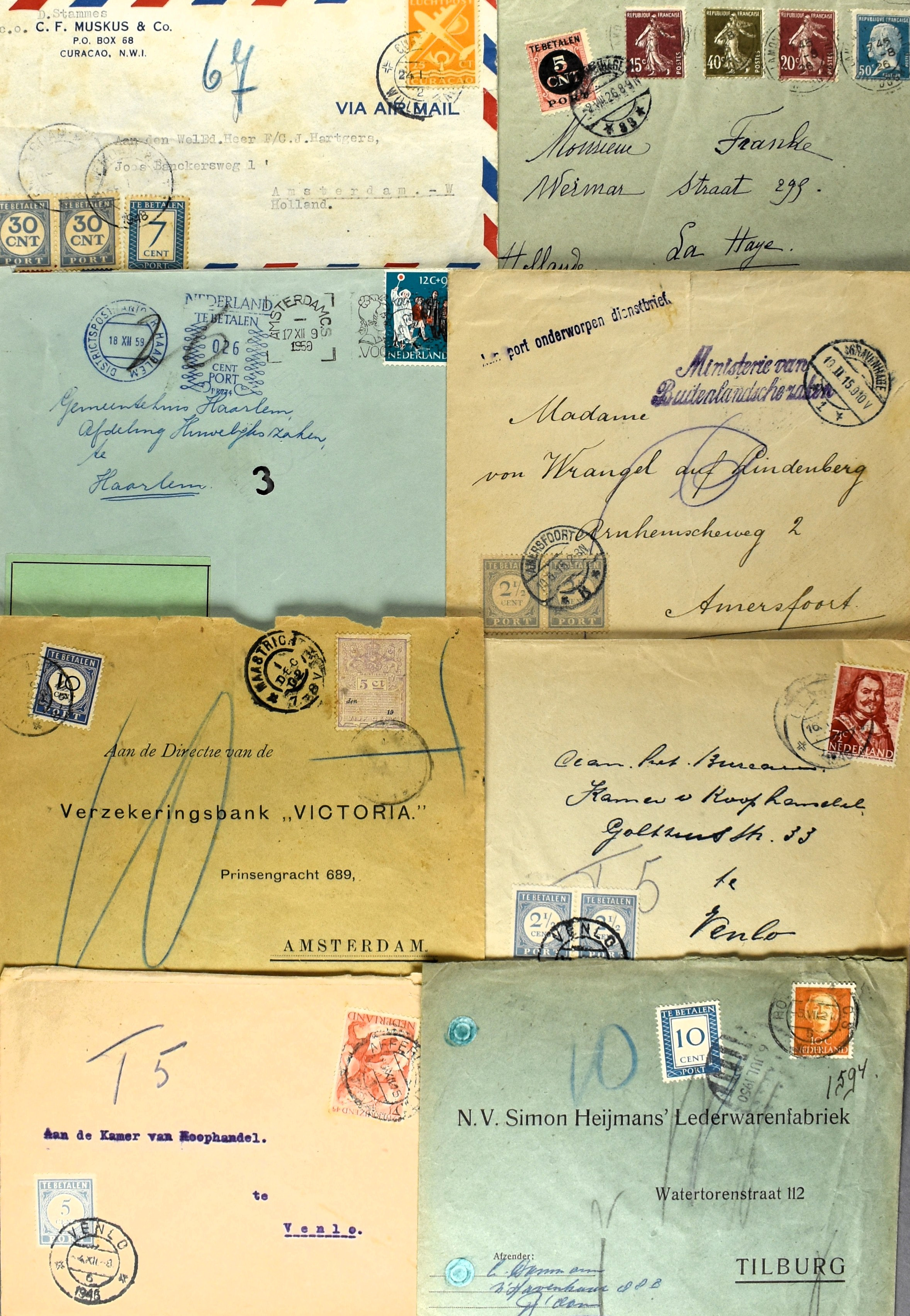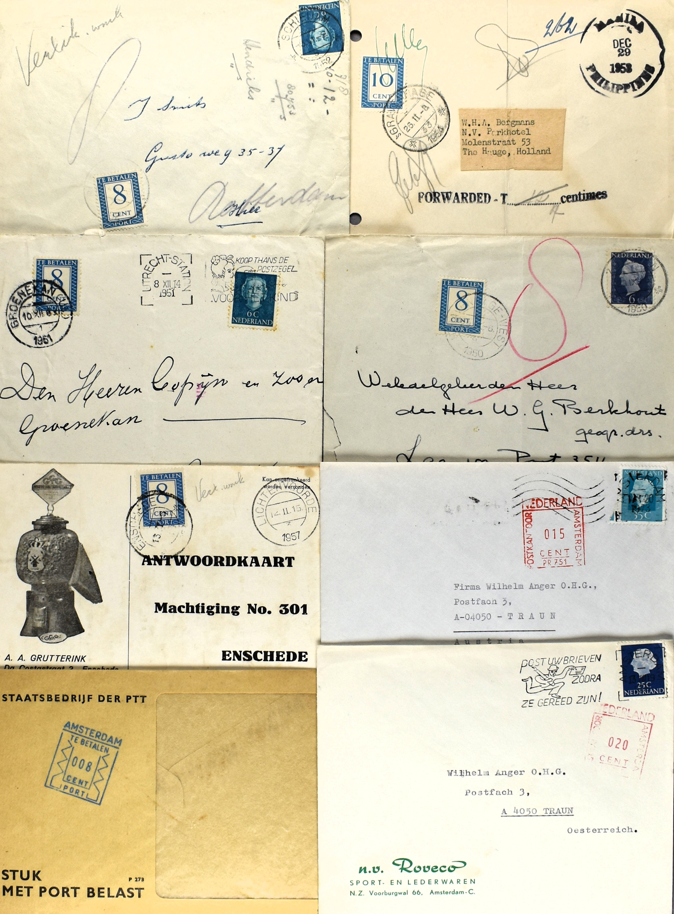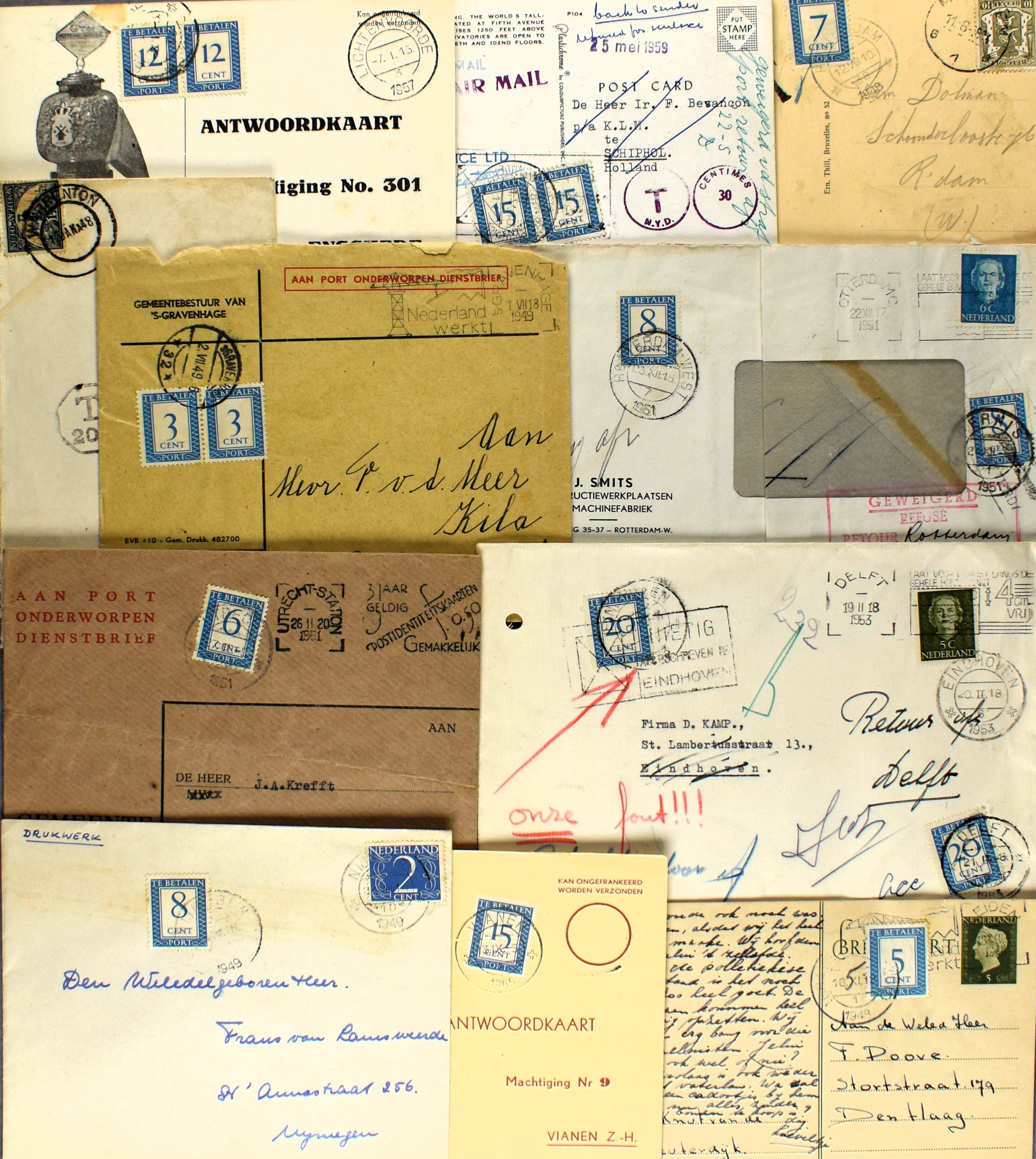 12 imageNEDERLAND POSTHISTORIE PORT, ca. 60 met port belaste stukken w.o. met portzegels (vanaf emissie 1894), proefstempels, postalia, notities, etc. (Image) (Image2) (Image3) (Image4) (Image5) (Image6) (Image7) (All Images)