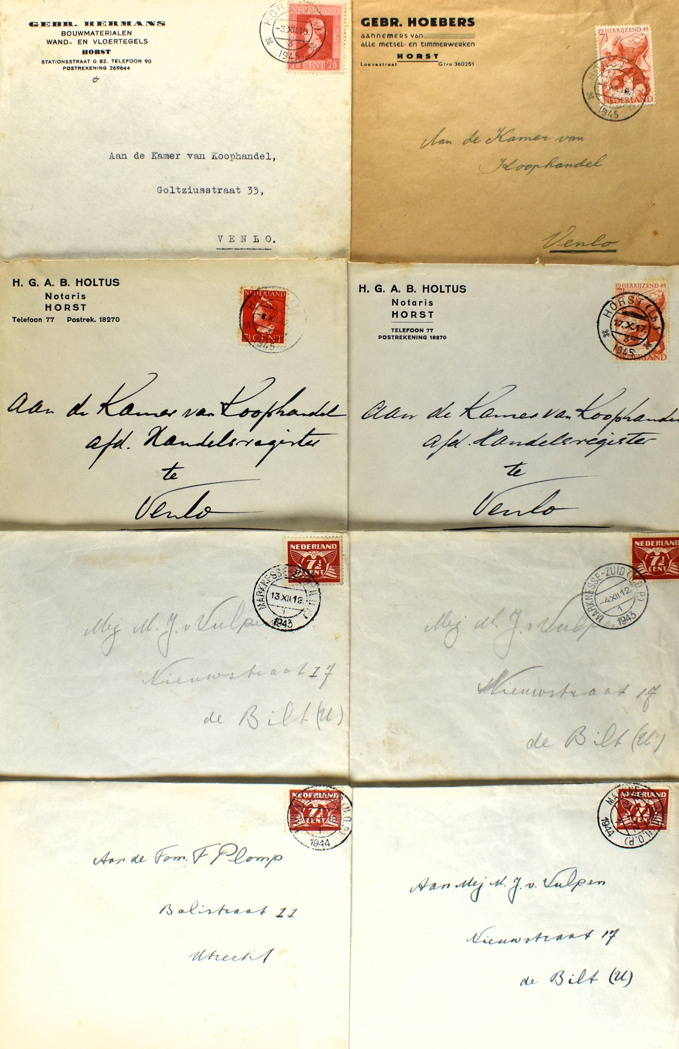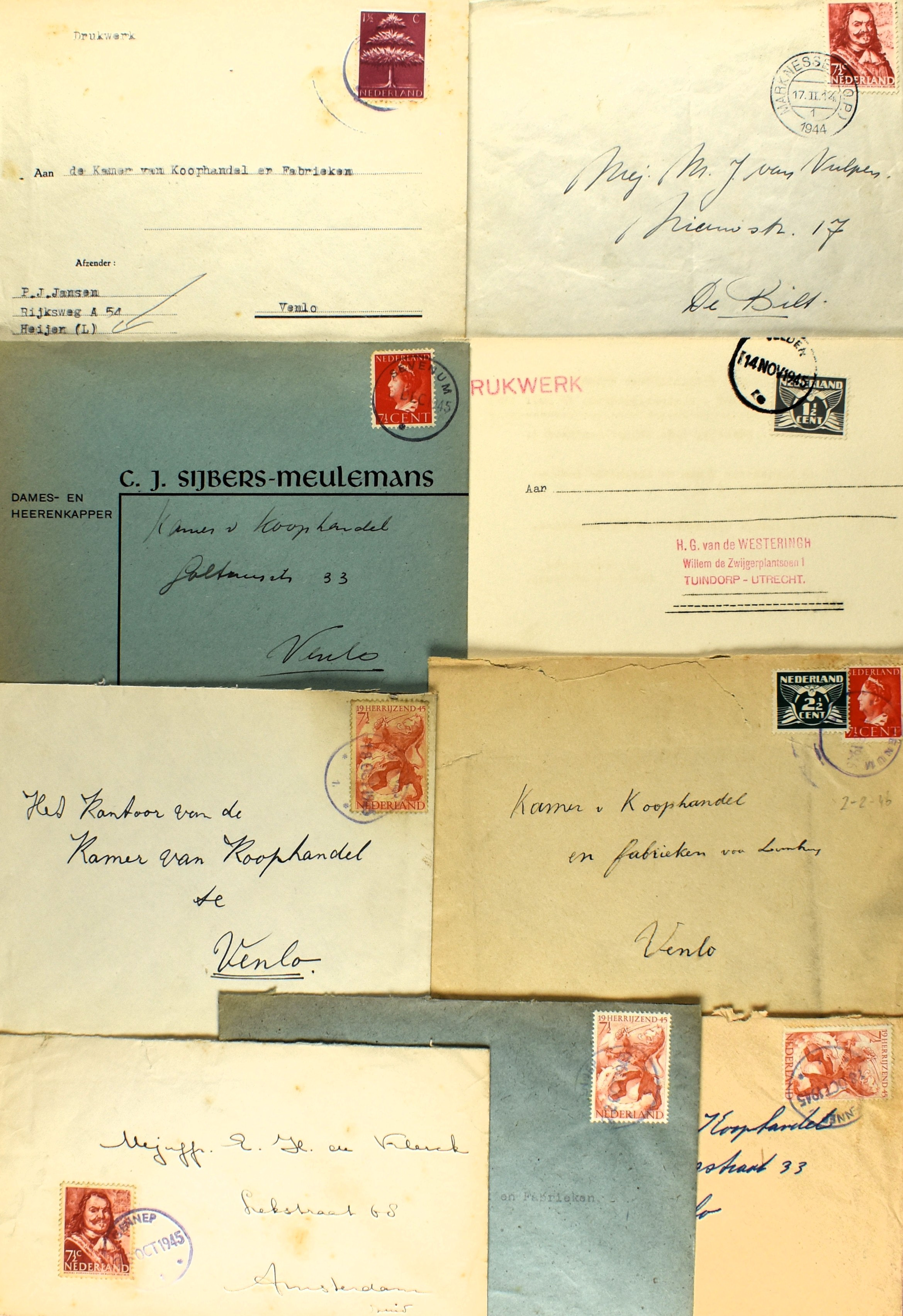 14 imageNEDERLAND POSTHISTORIE 1943-46, 40 poststukken afgestempeld met type 'Open 4' (1945, interessant voor o.a. data), 9 poststukken met rubberen noodstempel (1945-46) en 5 enveloppen 1943-44 uit archiefje, afgestempeld met Marknesse-Zuid (N.O.P.) en Marknesse ( N.O.P.) (Image) (Image2) (Image3) (Image4) (Image5) (Image6) (Image7) (All Images)