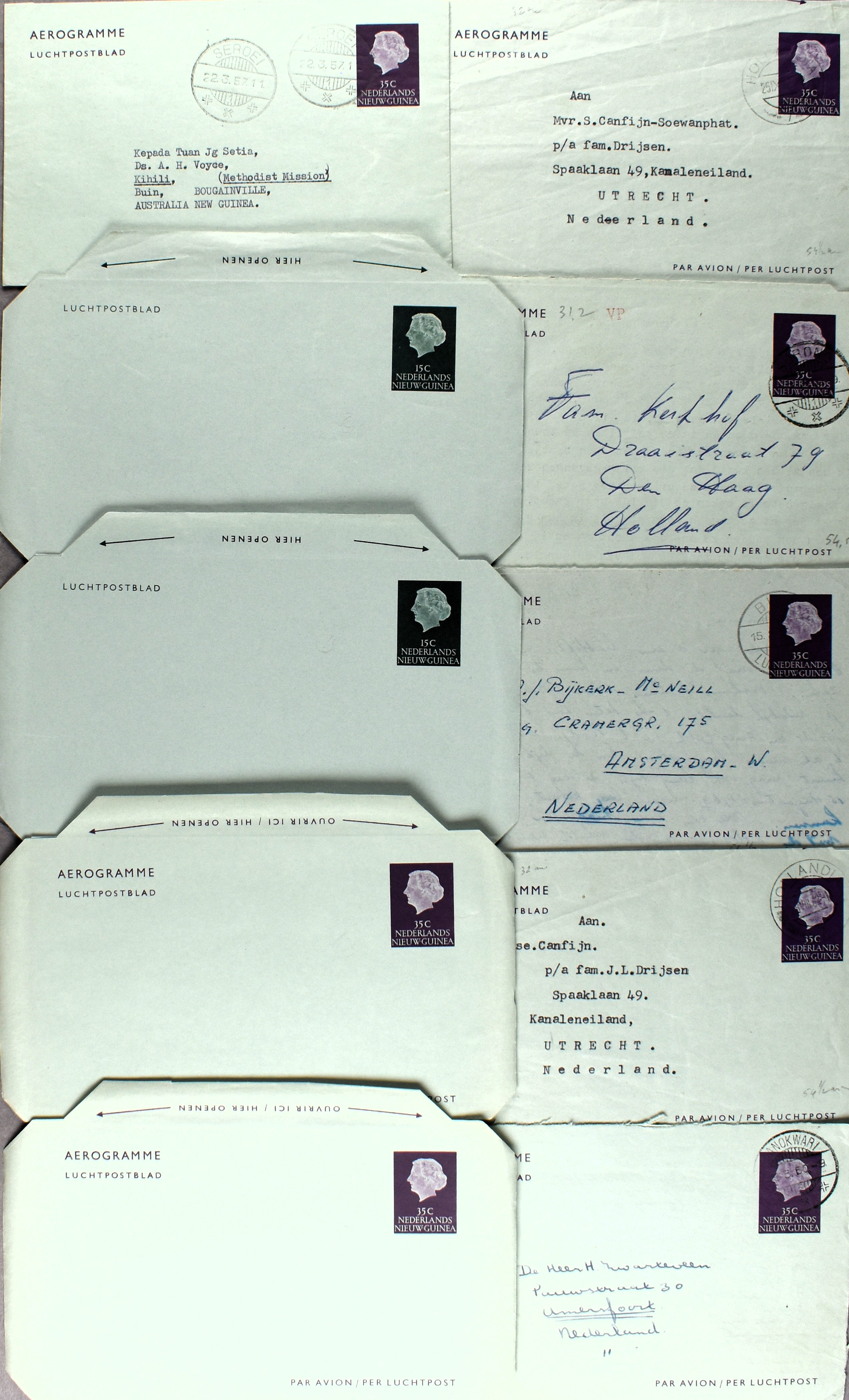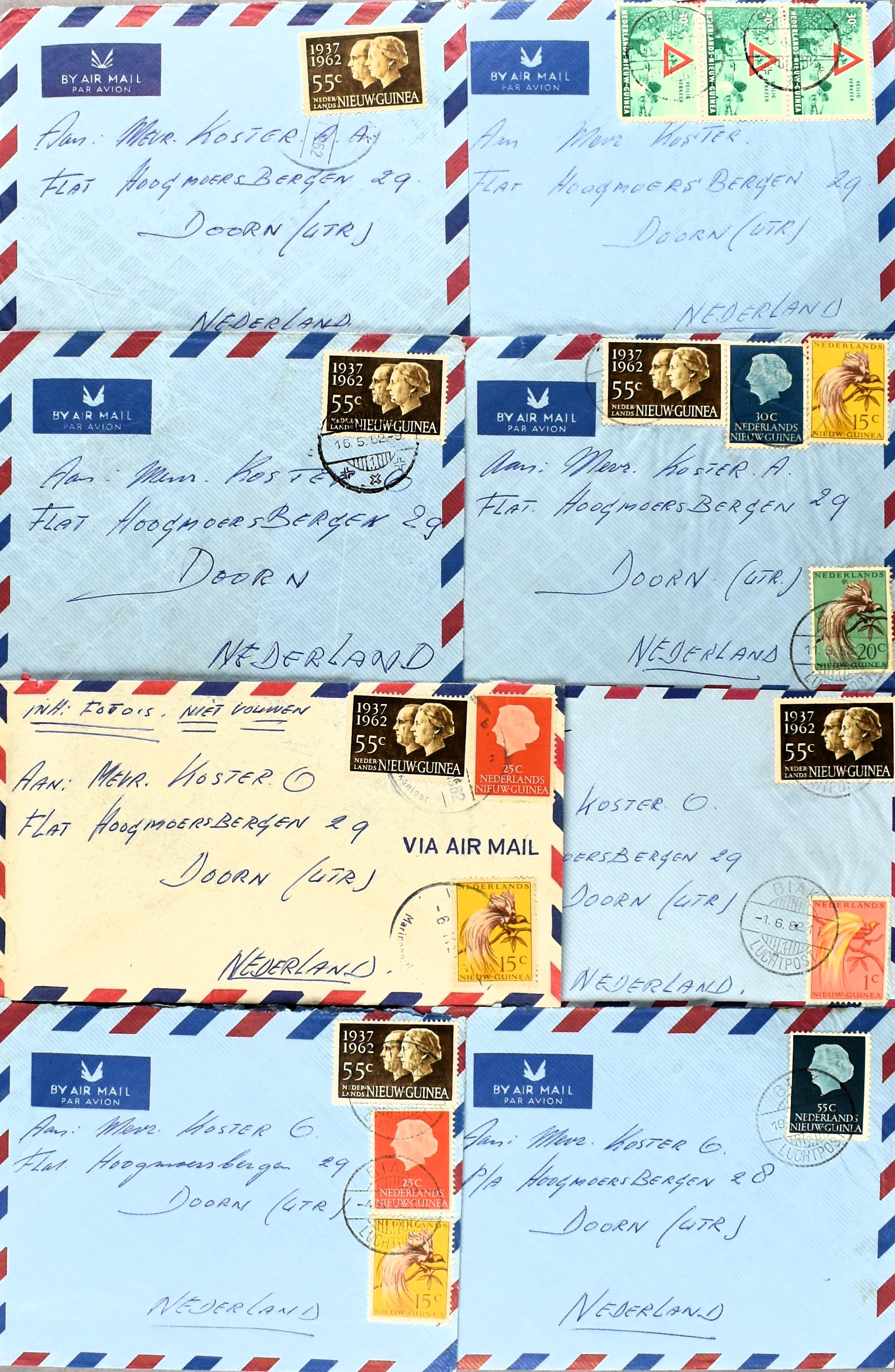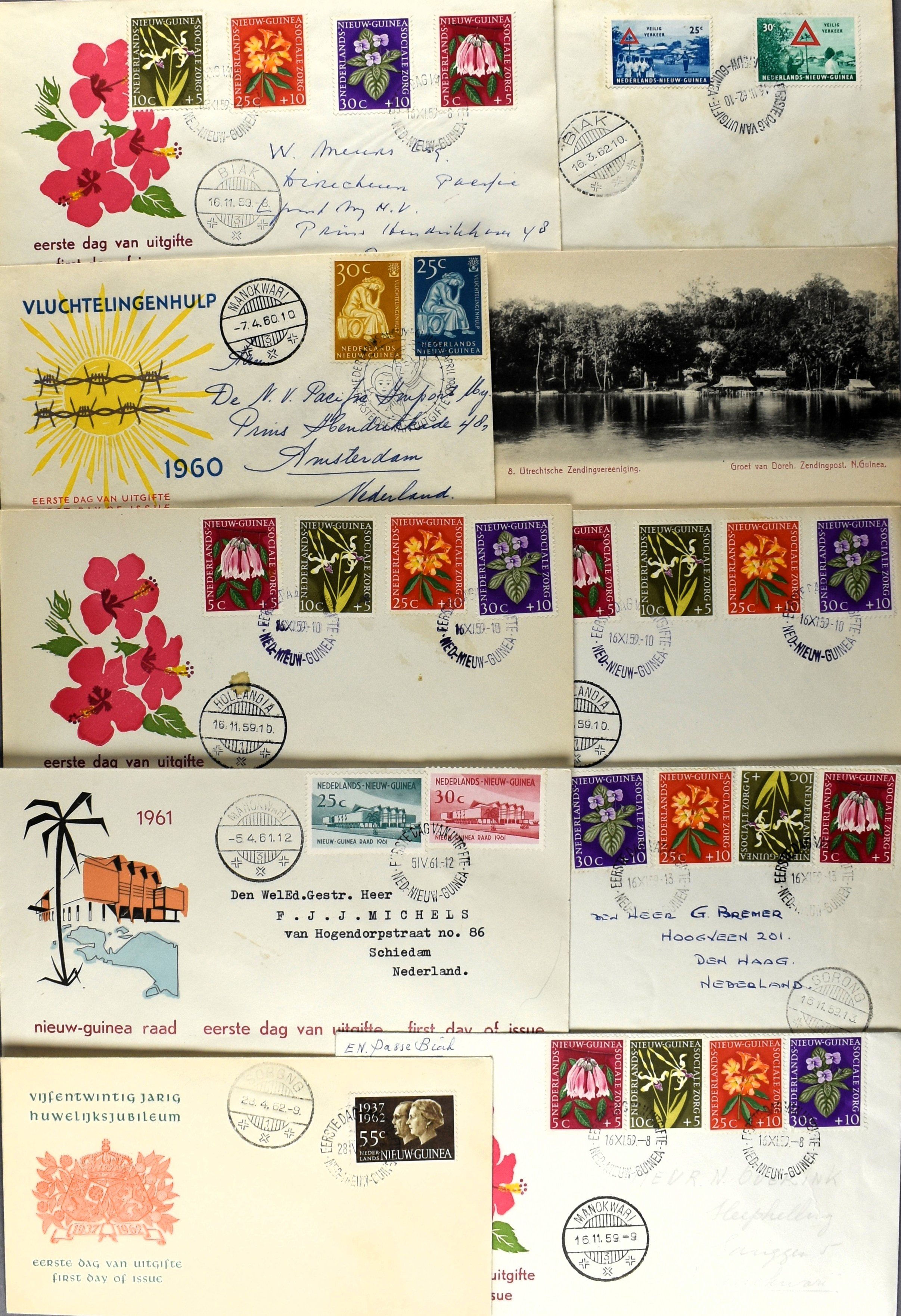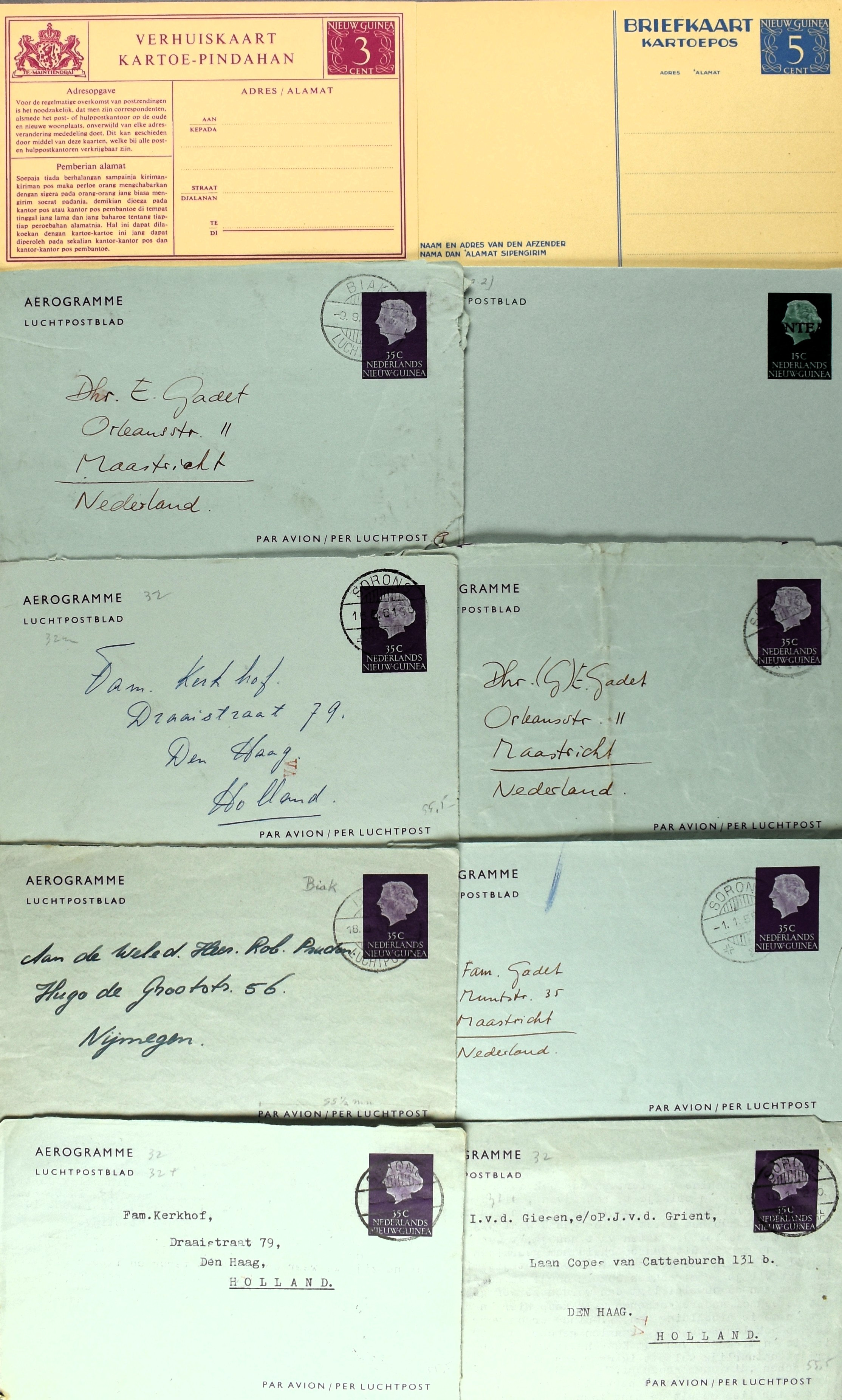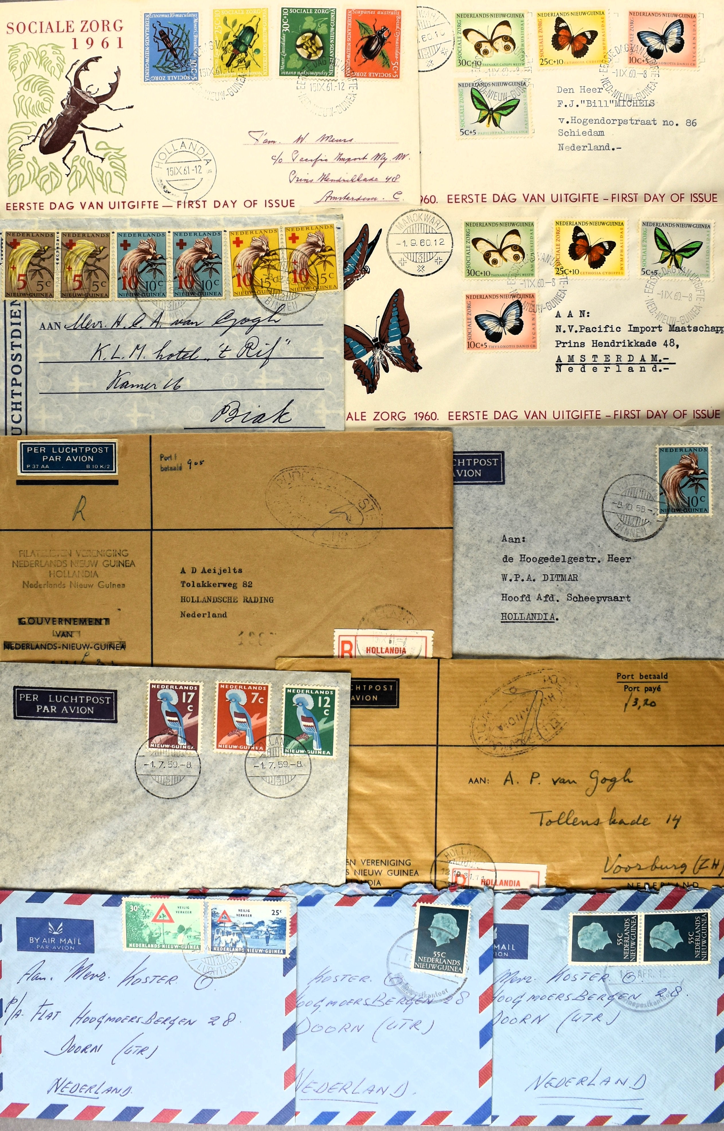 16 imageNED. NIEUW-GUINEA INCL. UNTEA POSTHISTORIE, partij poststukken vanaf ca. 1944 w.o. (enkel)frankeringen, baarfrankeringen, dienststukken, ongebruikte en verzonden postwaardestukken, aardige variëteit aan poststempels, FDC's, uitgebreid Expeditie Sterrengebergte, stortingsbiljetten, formulieren, APO's, prentbriefkaarten, etc. (Image) (Image2) (Image3) (Image4) (Image5) (Image6) (Image7) (Image8) (All Images)