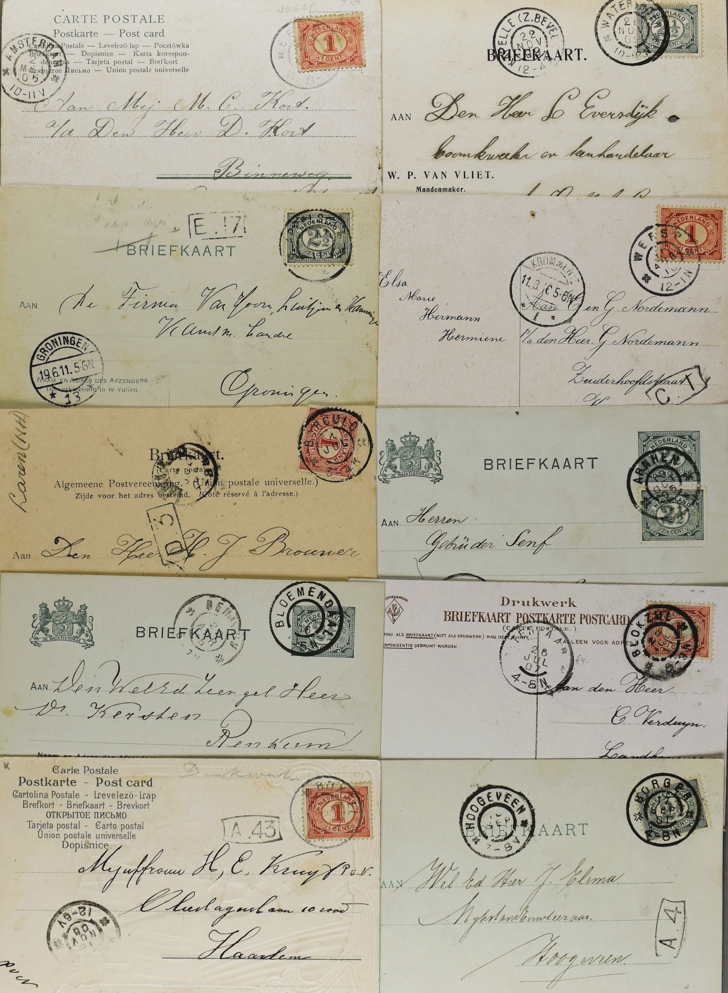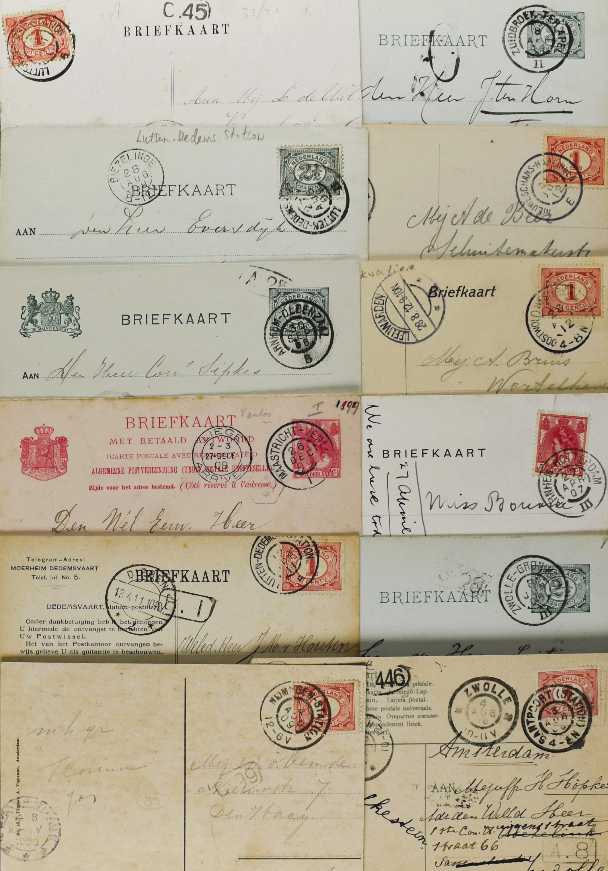 6 imageNEDERLAND, ruim 45 poststukken in wat gevarieerde kwaliteit met traject-, takje-, naam-, halte- en kleinrondstempels w.o. van kleine kantoren (Image) (Image2) (Image3) (Image4) (Image5) (All Images)