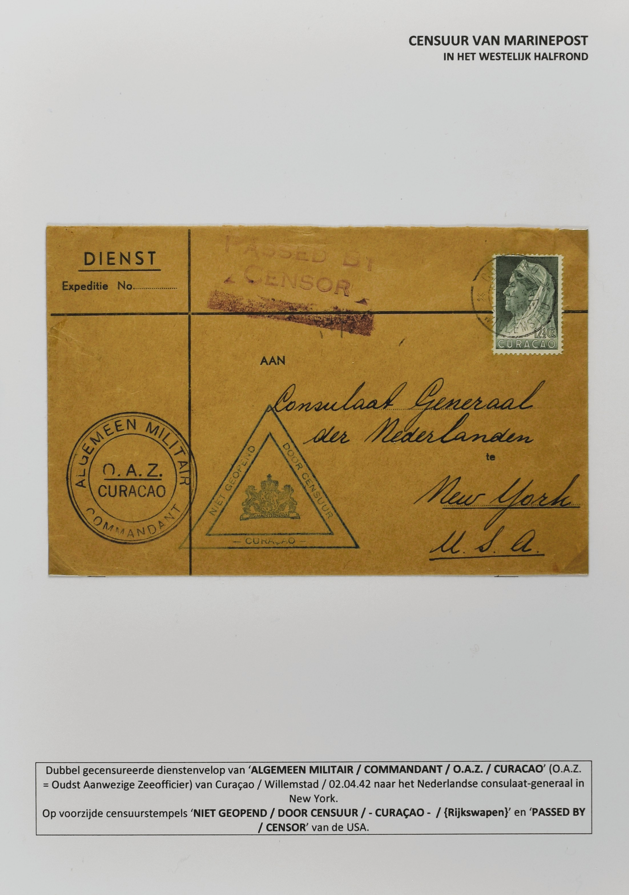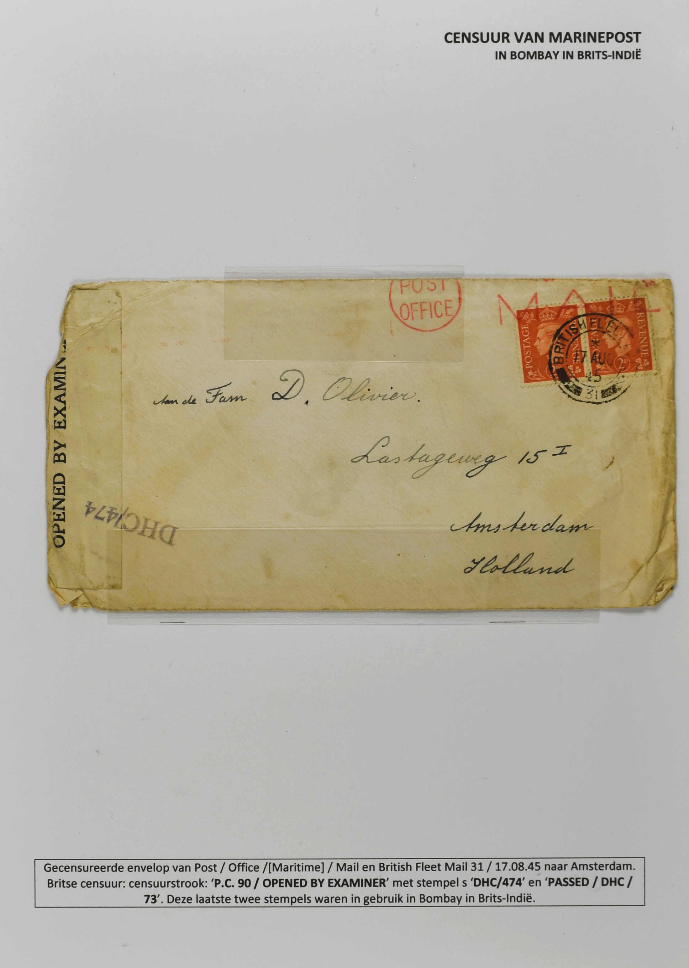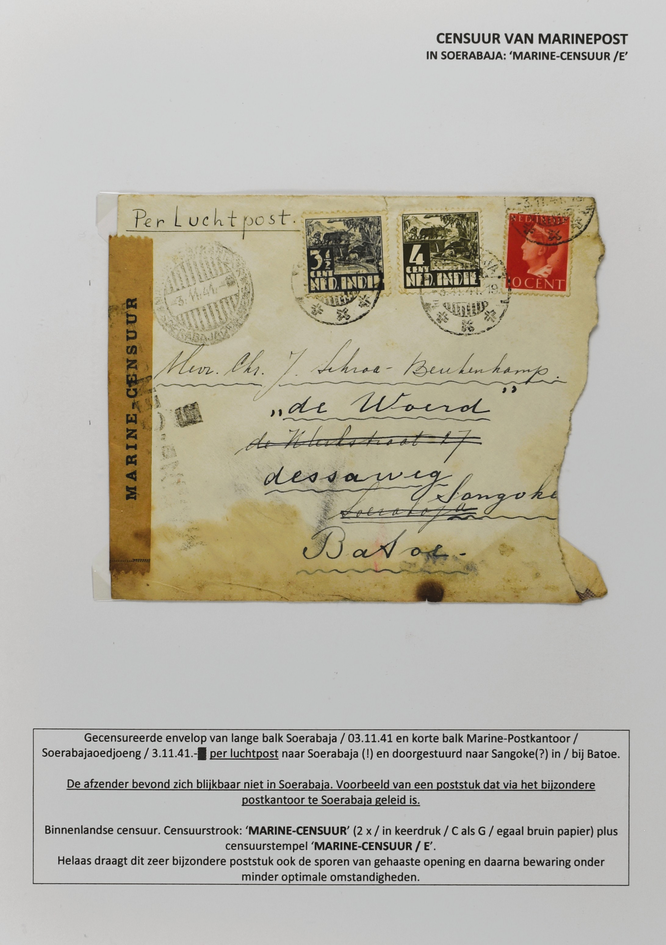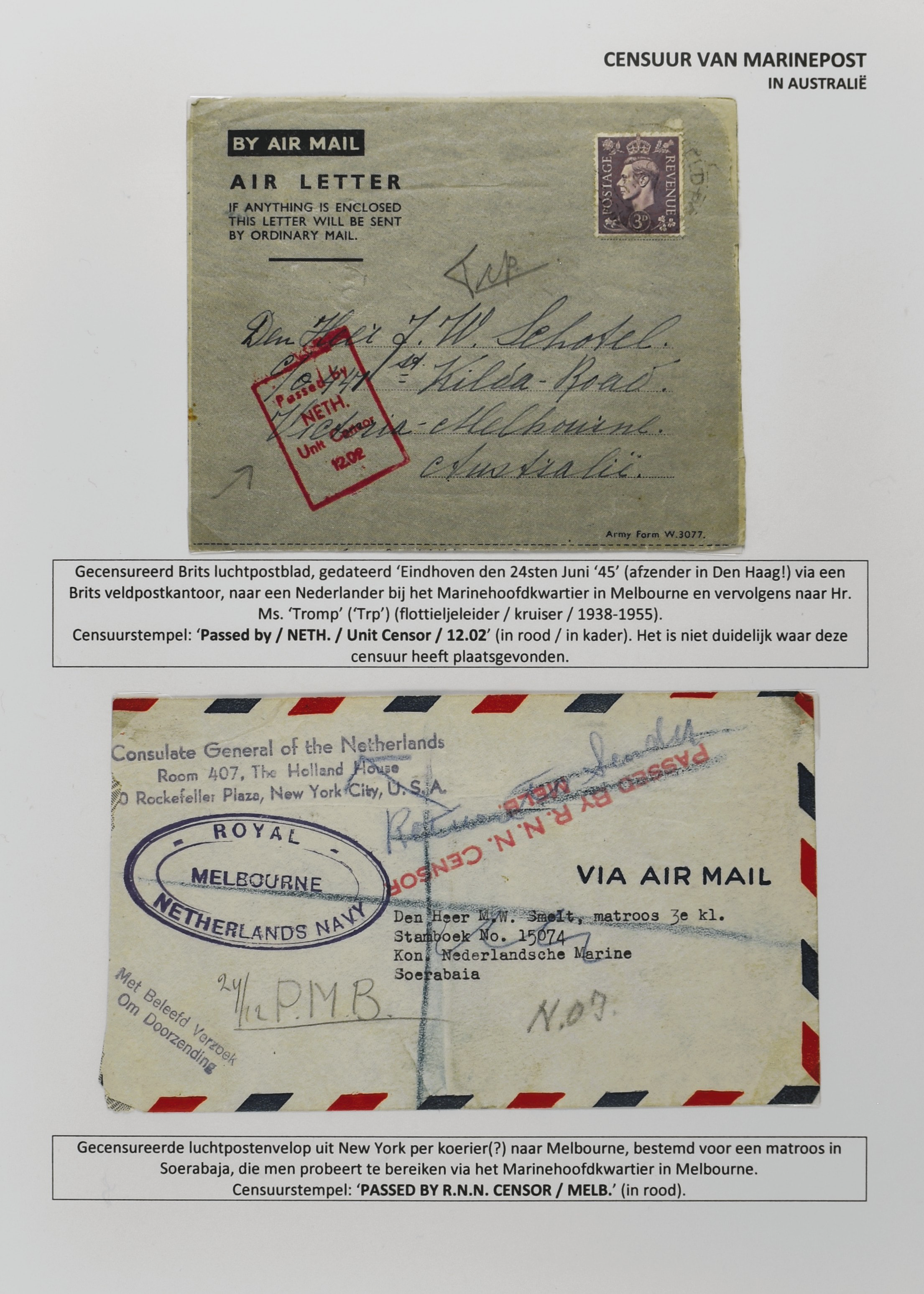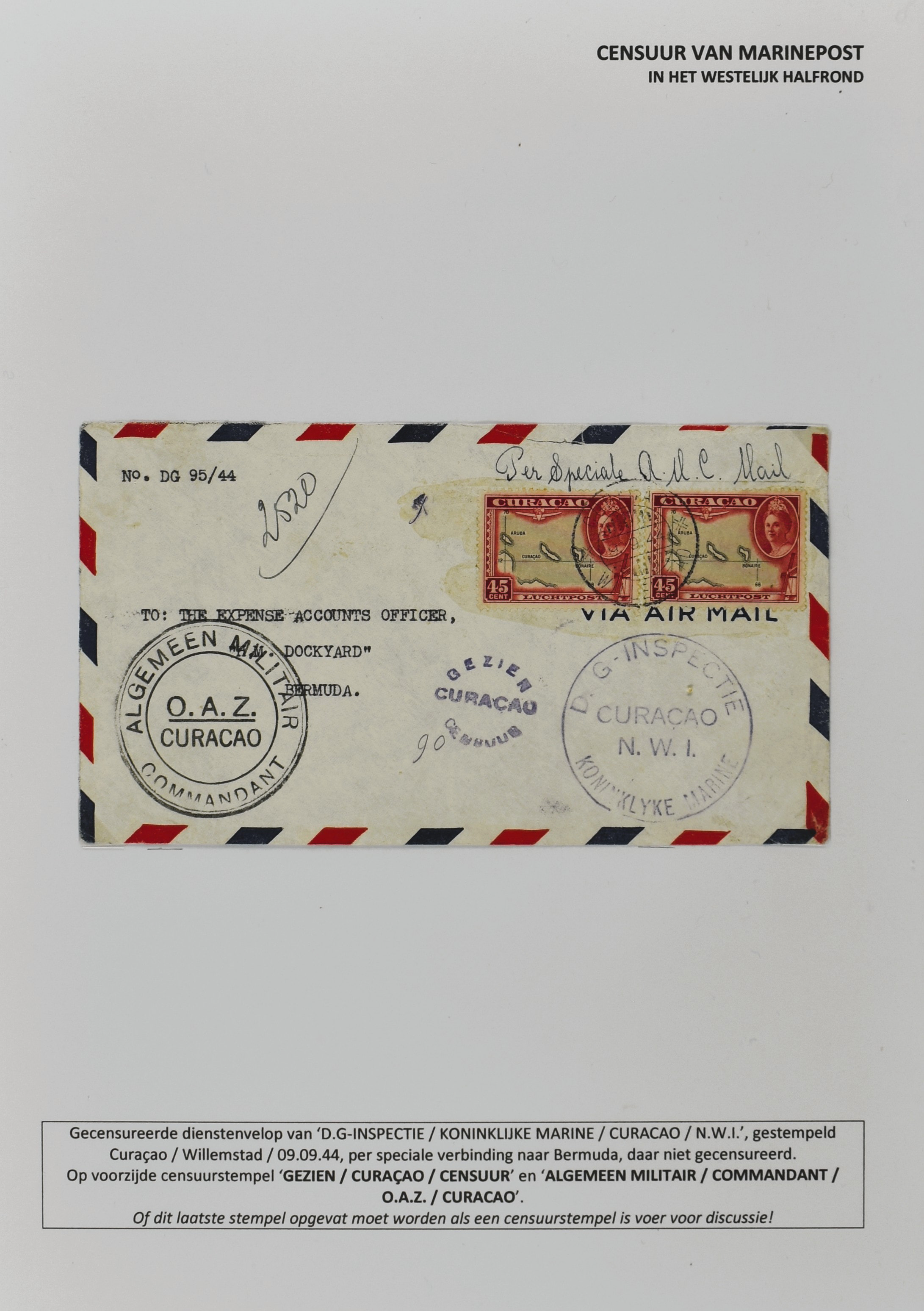 2247 imageCENSUUR VAN DE MARINEPOST, tentoonstellingscollectie bestaande uit 62 buitengewoon nauwgezet en gedocumenteerd beschreven poststukken met allerlei door de Kon. Marine waar ook ter wereld gebruikte censuren, te beginnen in Ned.-Indië met de Muiterij op de Zeven Provinciën (1933), verder censuren in Indië met verschillende stempels en stroken, Marinepost van o.a. Oost- en West-Indië in Groot-Brittannië, Brits-Indië, Australië, in Nederland zelf na de Tweede W.O., enz. Een uitzonderlijk informatieve collectie van posthistorische en geschiedkundige betekenis! De bladen bevinden zich in een platte doos (Image) (Image2) (Image3) (Image4) (Image5) (Image6) (Image7) (Image8) (Image9) (Image10) (Image11) (Image12) (Image13) (Image14) (Image15) (Image16) (Image17) (Image18) (Image19) (Image20) (Image21) (Image22) (Image23) (Image24) (Image25) (Image26) (Image27) (Image28) (Image29) (Image30) (Image31) (Image32) (Image33) (Image34) (Image35) (Image36) (Image37) (Image38) (Image39) (Image40) (Image41) (Image42) (Image43) (Image44) (Image45) (Image46) (Image47) (Image48) (All Images)