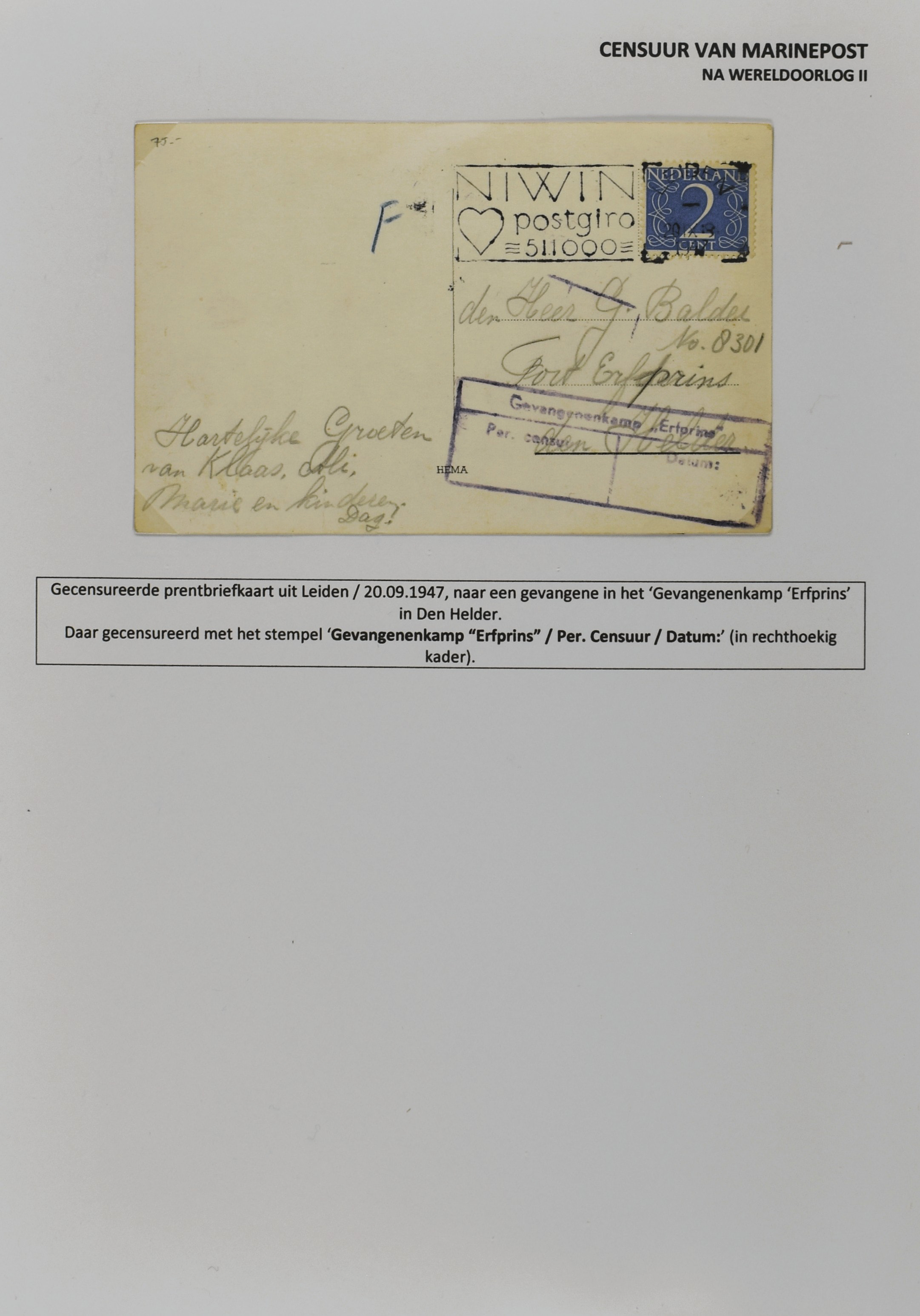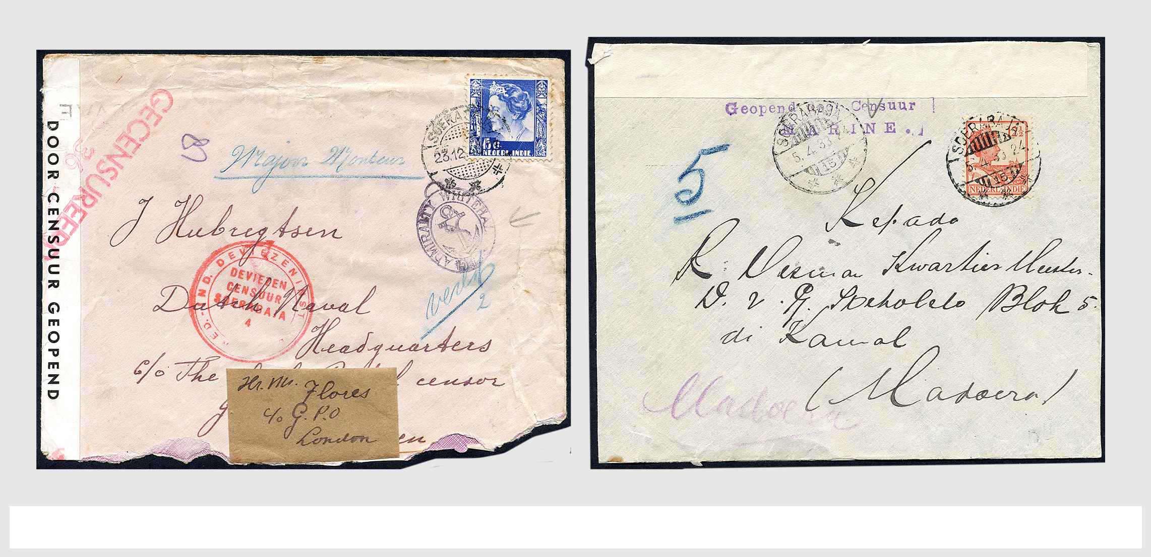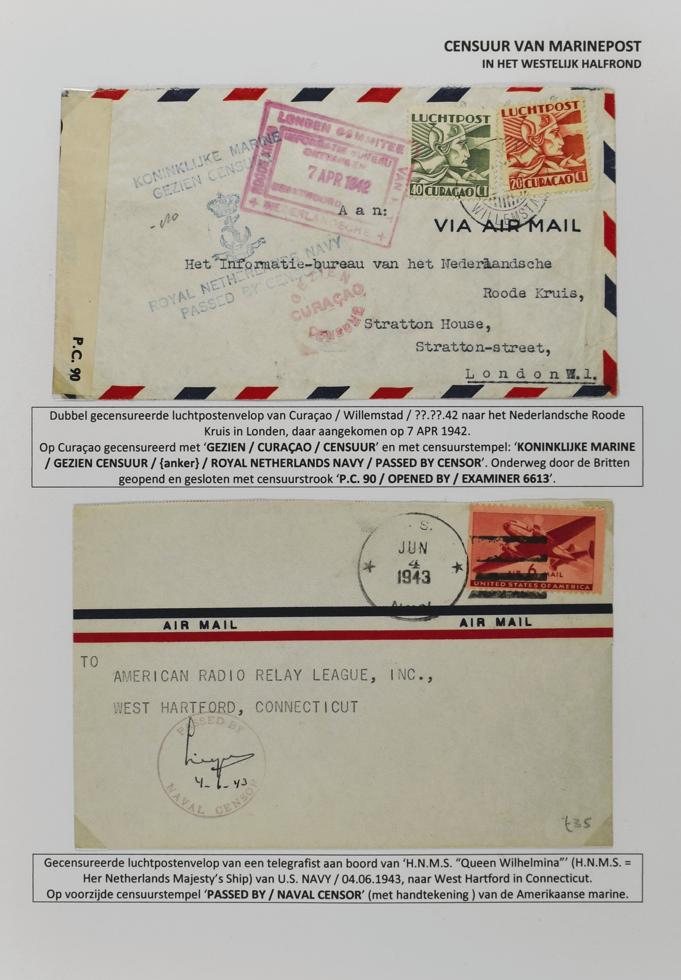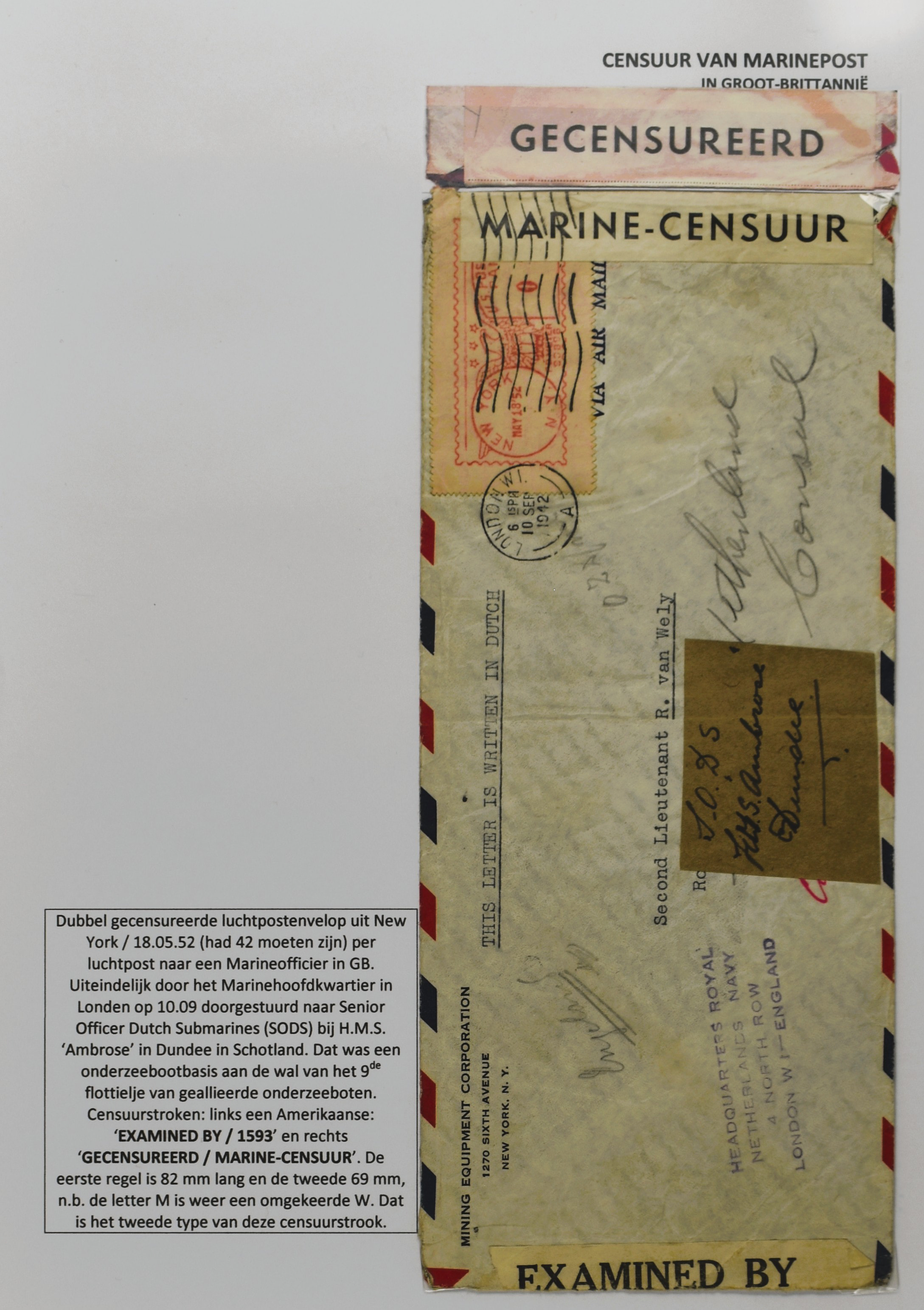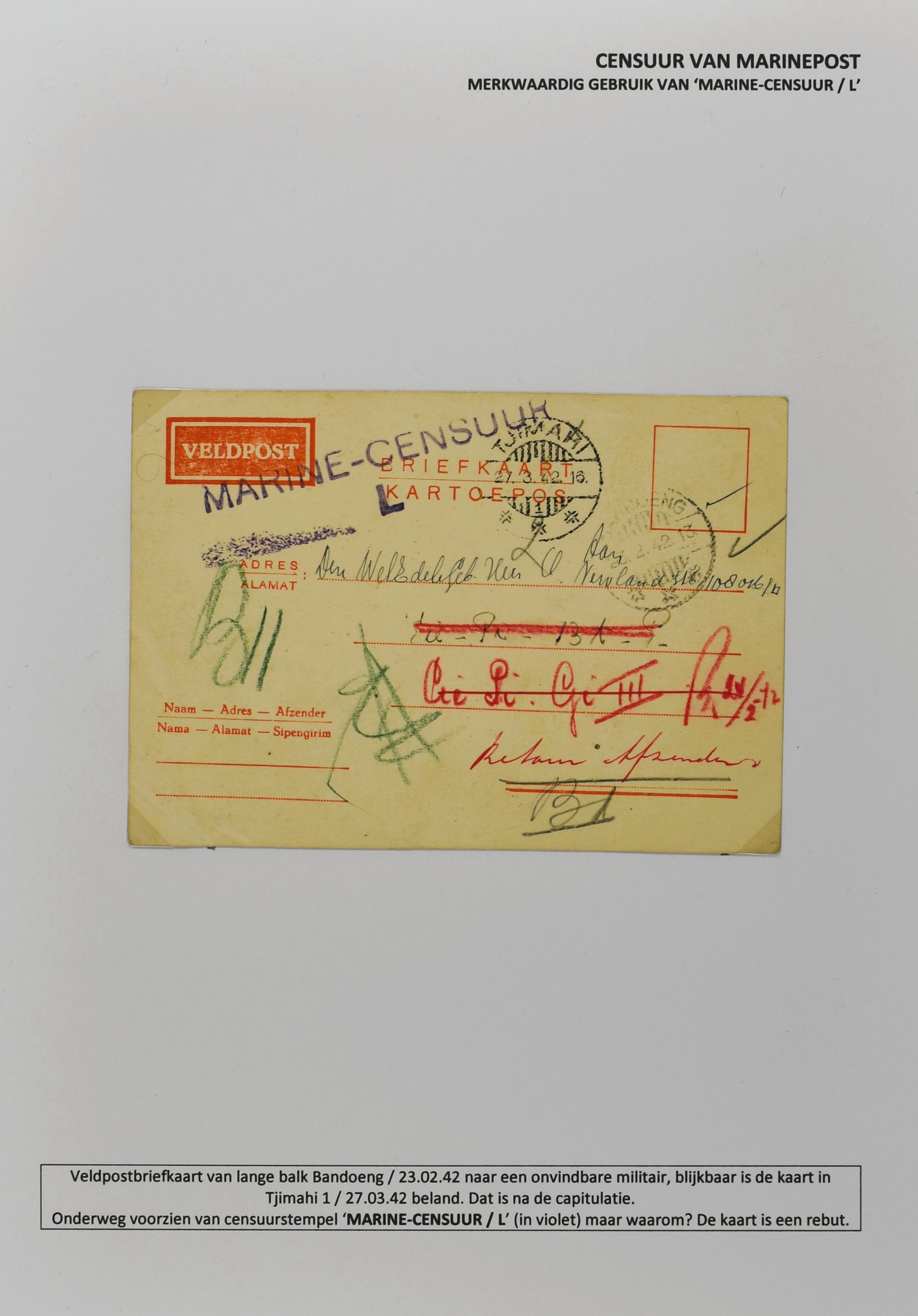 2247 imageCENSUUR VAN DE MARINEPOST, tentoonstellingscollectie bestaande uit 62 buitengewoon nauwgezet en gedocumenteerd beschreven poststukken met allerlei door de Kon. Marine waar ook ter wereld gebruikte censuren, te beginnen in Ned.-Indië met de Muiterij op de Zeven Provinciën (1933), verder censuren in Indië met verschillende stempels en stroken, Marinepost van o.a. Oost- en West-Indië in Groot-Brittannië, Brits-Indië, Australië, in Nederland zelf na de Tweede W.O., enz. Een uitzonderlijk informatieve collectie van posthistorische en geschiedkundige betekenis! De bladen bevinden zich in een platte doos (Image) (Image2) (Image3) (Image4) (Image5) (Image6) (Image7) (Image8) (Image9) (Image10) (Image11) (Image12) (Image13) (Image14) (Image15) (Image16) (Image17) (Image18) (Image19) (Image20) (Image21) (Image22) (Image23) (Image24) (Image25) (Image26) (Image27) (Image28) (Image29) (Image30) (Image31) (Image32) (Image33) (Image34) (Image35) (Image36) (Image37) (Image38) (Image39) (Image40) (Image41) (Image42) (Image43) (Image44) (Image45) (Image46) (Image47) (Image48) (All Images)