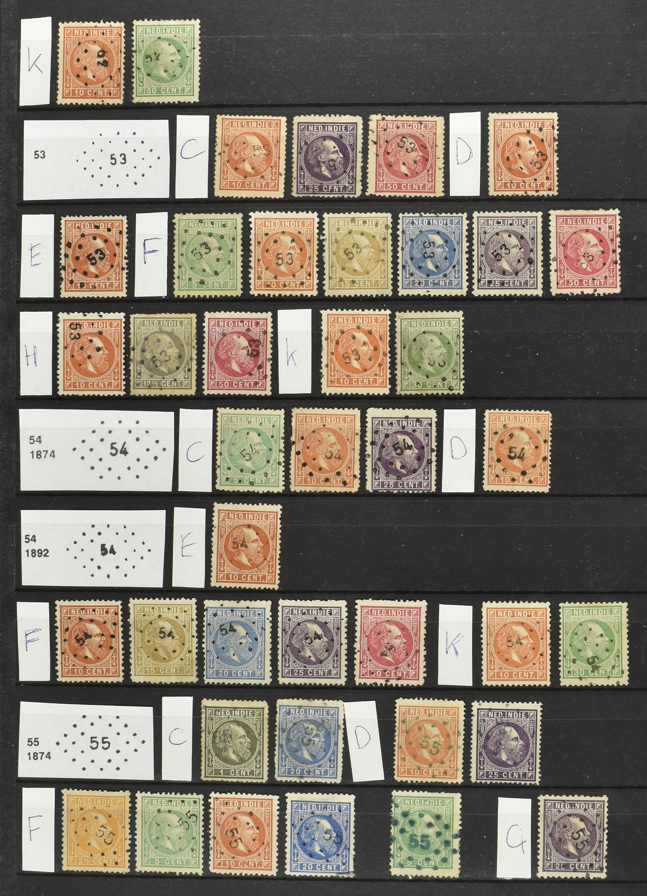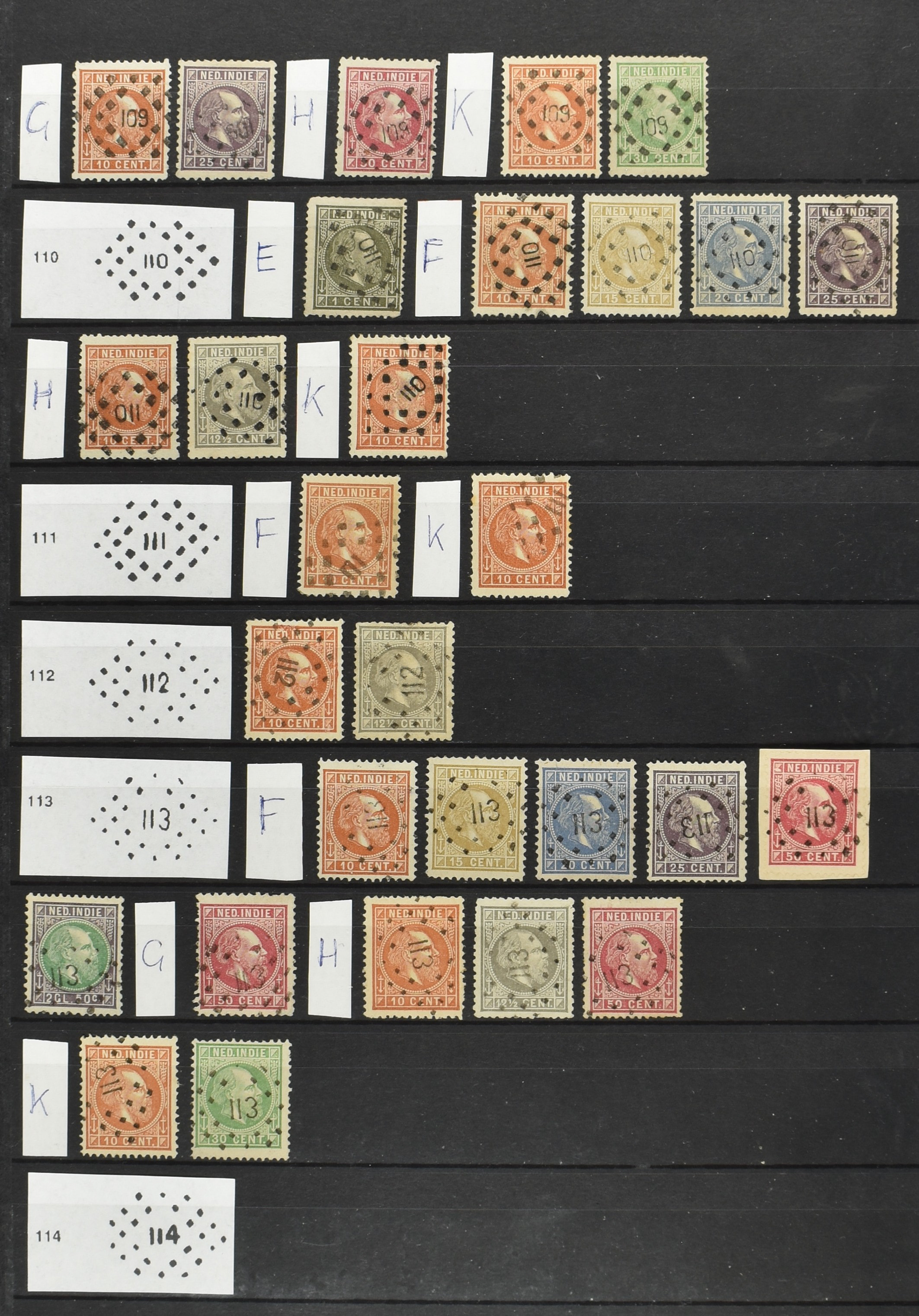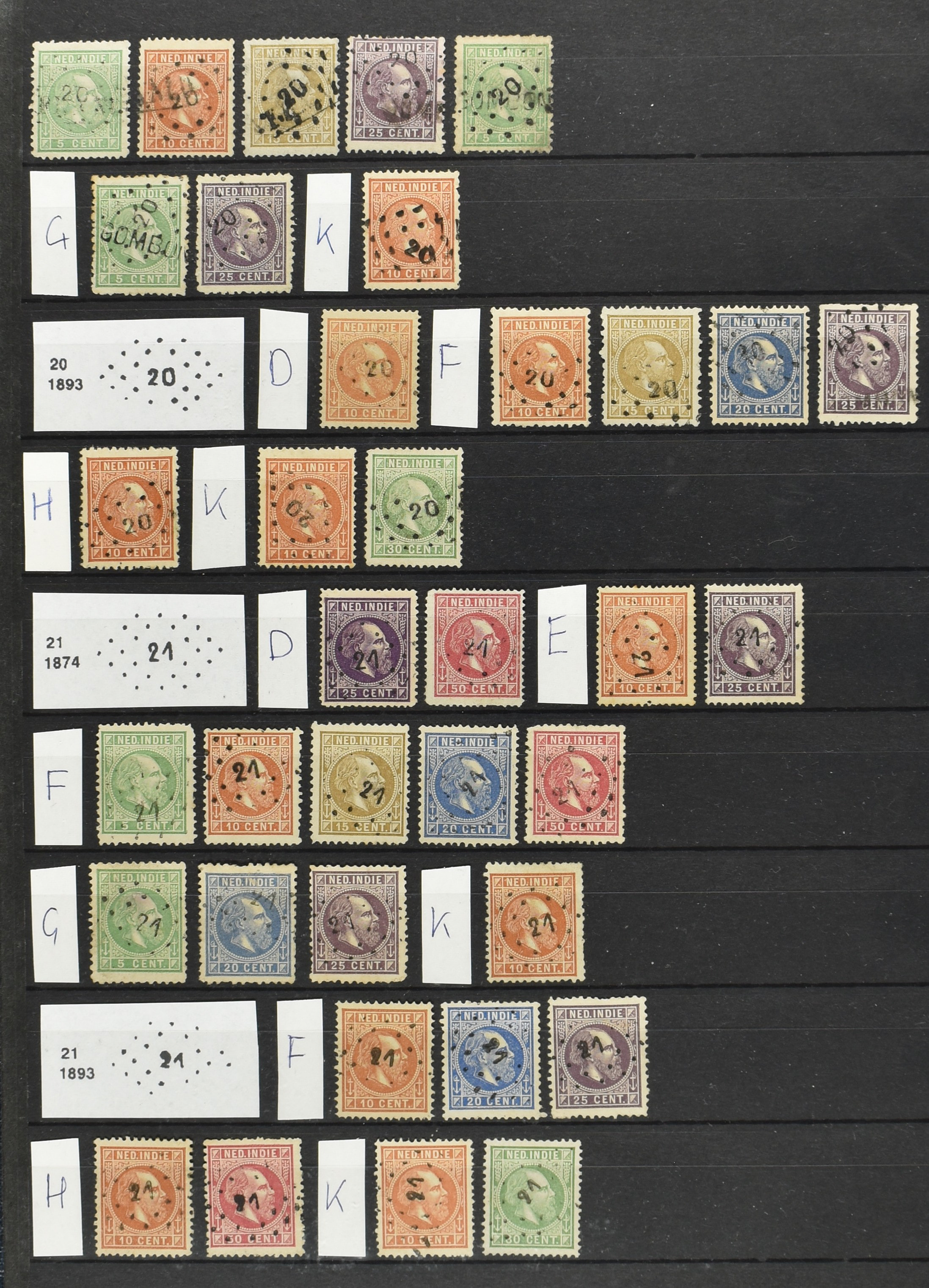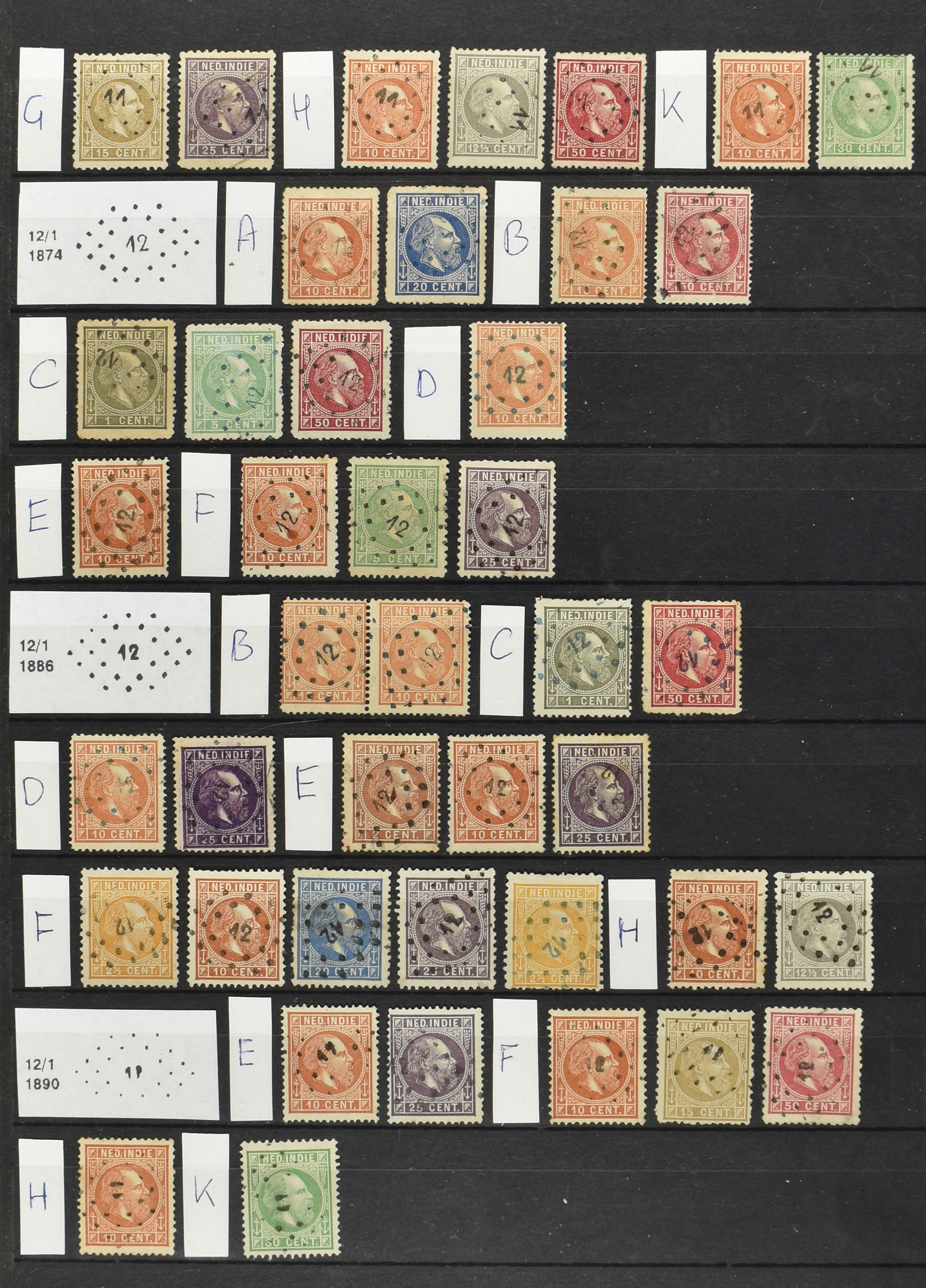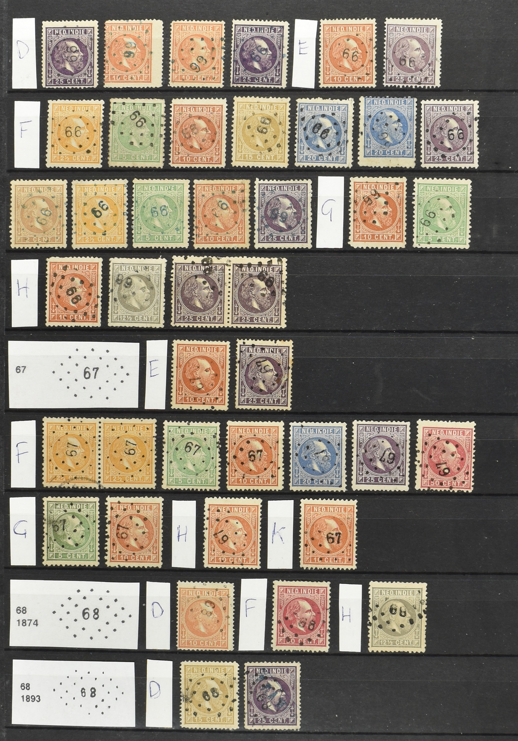 2249 imageNED.- INDIË PUNTSTEMPELS op Emissie Koning Willem III 1870-88, zeer uitgebreide collectie opgezet volgens Bulterman (De Postzak nr. 153, sep. 1987), per puntstempelnummer ieder type op zo veel mogelijk verschillende waarden en bovendien per waarde in de verschillende tandingen (!), diverse afstempelingen ook in blauw en violet, het geheel in uitgezochte kwaliteit met vrijwel uitsluitend volledige afstempelingen op zegels in doorgaans prachtkwaliteit, overzichtelijk op nummervolgorde en typen opgezet in 2 insteekboeken. Op nr. 100 type 1 (= Langkat) en 114 na zijn alle nummers vertegenwoordigd (1x 74 op 10 cent, 4x 75, 2x 112 op 10 en 12½ cent). De verzameling is een lust voor het oog, een uitgelezen kans om topkwaliteit te kopen en op te zetten, uiteraard ook geschikt voor kwaliteitsverbetering of detailleren. Een dergelijke op puntstempeltype, waarden en in de verschillende tandingen in zo'n kwaliteit hebben wij nog niet eerder aangeboden! (Image) (Image2) (Image3) (Image4) (Image5) (Image6) (Image7) (Image8) (Image9) (Image10) (Image11) (Image12) (Image13) (Image14) (Image15) (Image16) (Image17) (Image18) (Image19) (Image20) (Image21) (Image22) (Image23) (Image24) (Image25) (Image26) (Image27) (Image28) (Image29) (Image30) (Image31) (Image32) (Image33) (Image34) (Image35) (Image36) (Image37) (Image38) (Image39) (Image40) (Image41) (Image42) (Image43) (Image44) (Image45) (Image46) (Image47) (Image48) (Image49) (Image50) (Image51) (Image52) (Image53) (Image54) (Image55) (Image56) (Image57) (Image58) (Image59) (Image60) (Image61) (Image62) (Image63) (Image64) (Image65) (Image66) (Image67) (Image68) (Image69) (Image70) (Image71) (Image72) (Image73) (Image74) (Image75) (Image76) (Image77) (Image78) (Image79) (Image80) (All Images)
