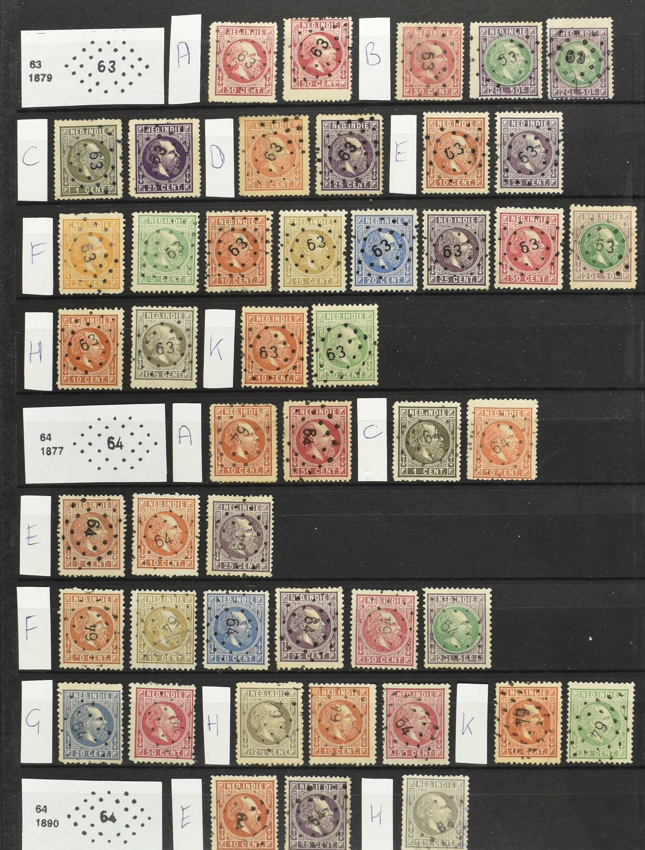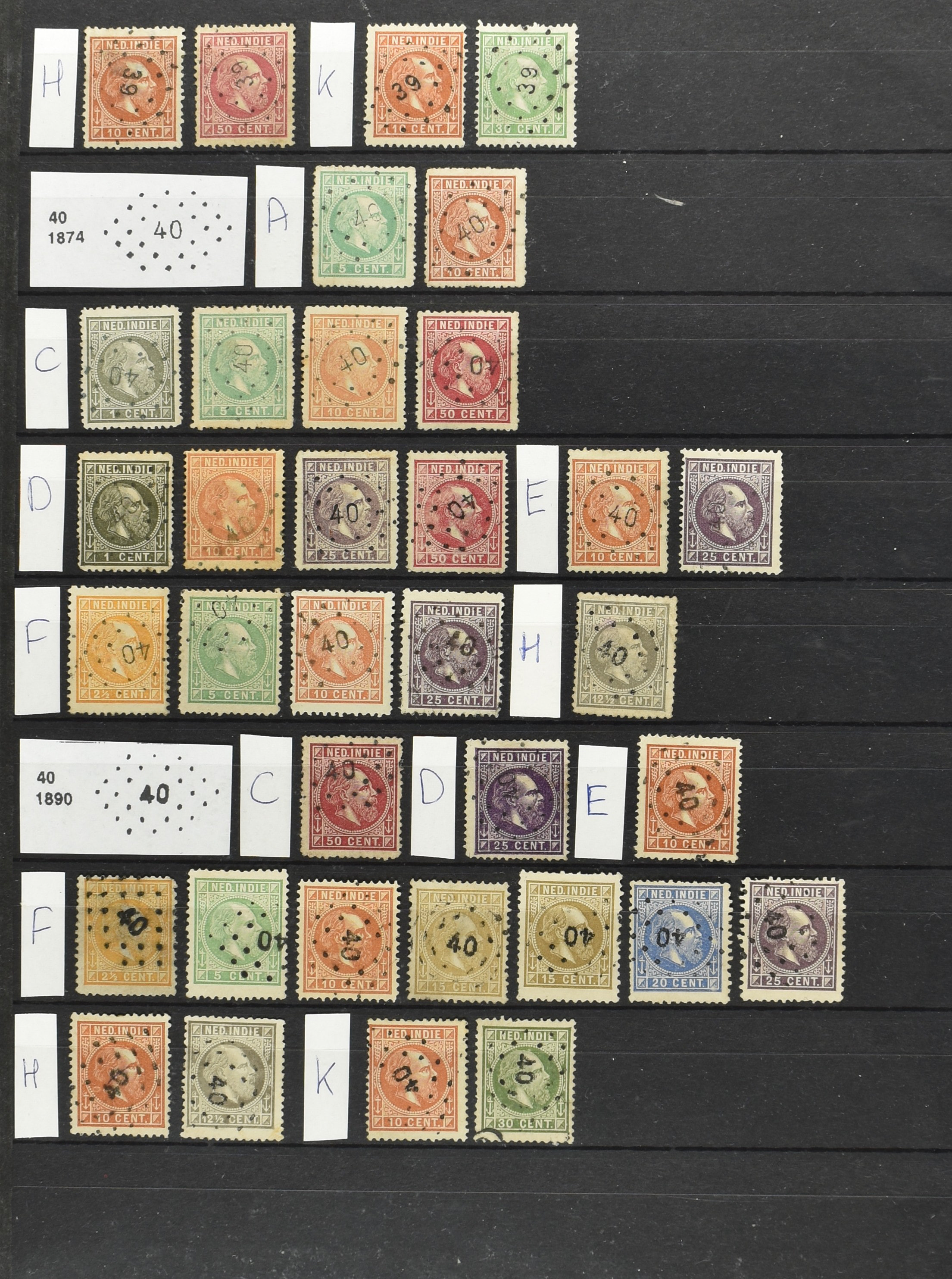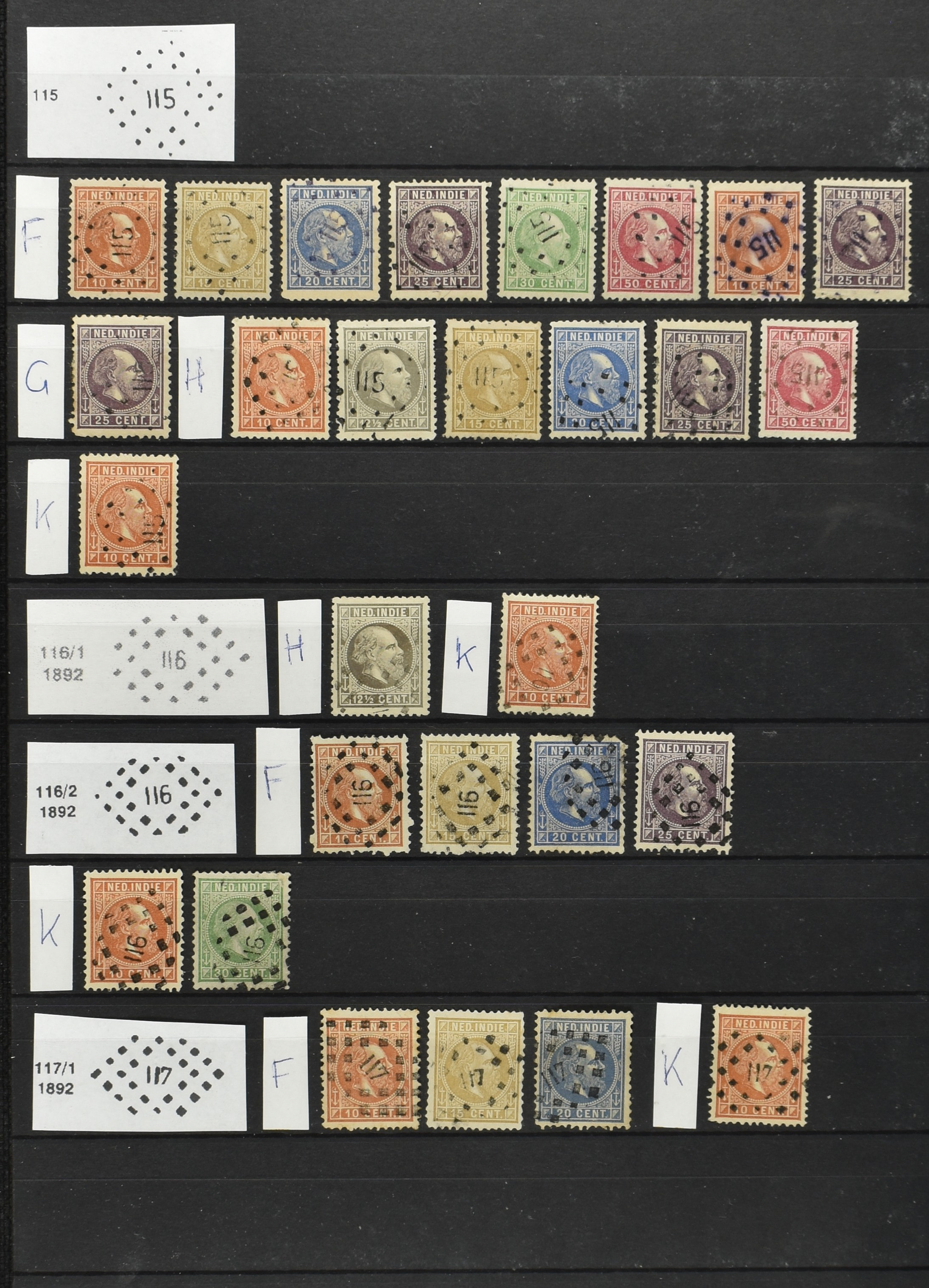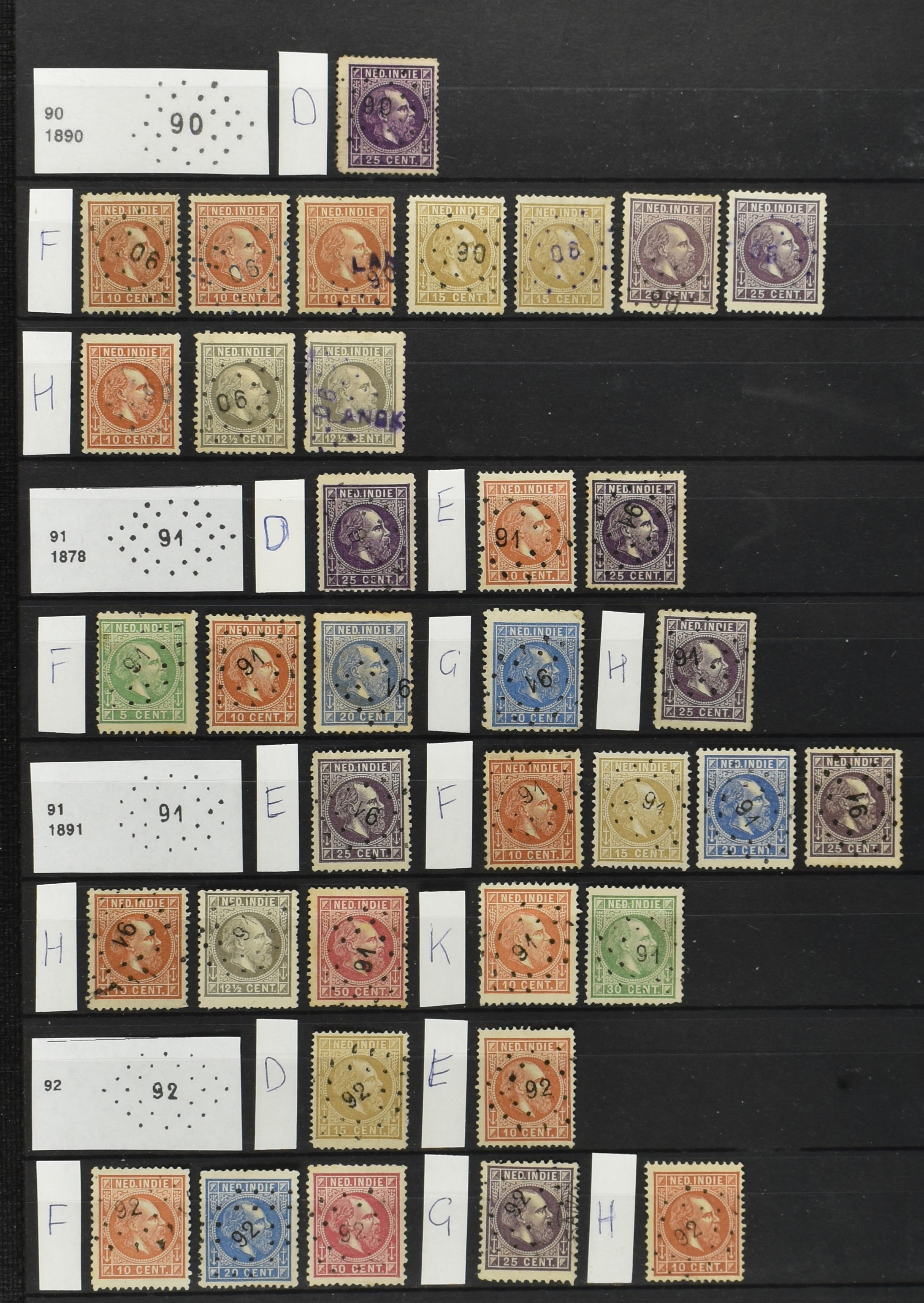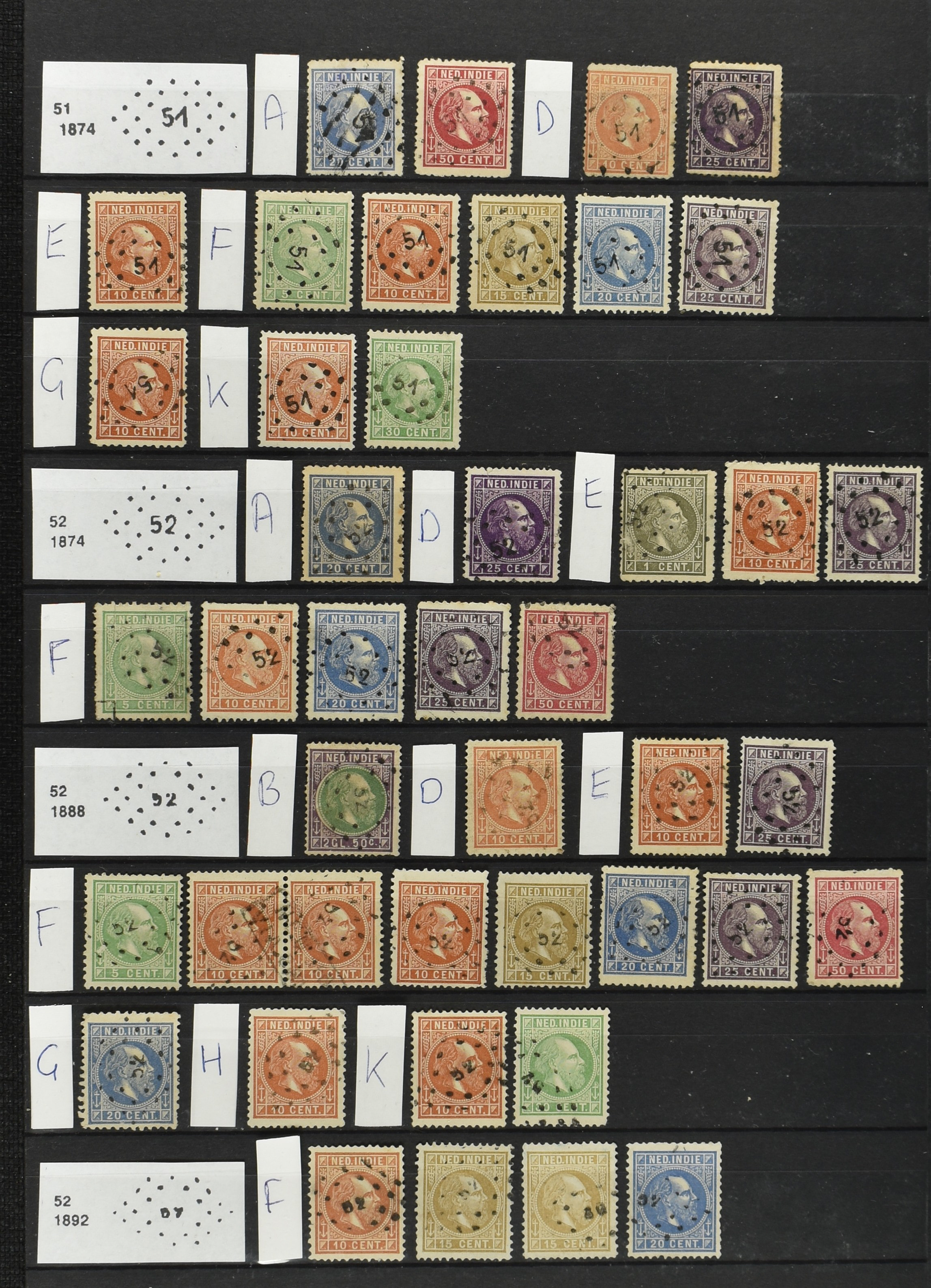 2249 imageNED.- INDIË PUNTSTEMPELS op Emissie Koning Willem III 1870-88, zeer uitgebreide collectie opgezet volgens Bulterman (De Postzak nr. 153, sep. 1987), per puntstempelnummer ieder type op zo veel mogelijk verschillende waarden en bovendien per waarde in de verschillende tandingen (!), diverse afstempelingen ook in blauw en violet, het geheel in uitgezochte kwaliteit met vrijwel uitsluitend volledige afstempelingen op zegels in doorgaans prachtkwaliteit, overzichtelijk op nummervolgorde en typen opgezet in 2 insteekboeken. Op nr. 100 type 1 (= Langkat) en 114 na zijn alle nummers vertegenwoordigd (1x 74 op 10 cent, 4x 75, 2x 112 op 10 en 12½ cent). De verzameling is een lust voor het oog, een uitgelezen kans om topkwaliteit te kopen en op te zetten, uiteraard ook geschikt voor kwaliteitsverbetering of detailleren. Een dergelijke op puntstempeltype, waarden en in de verschillende tandingen in zo'n kwaliteit hebben wij nog niet eerder aangeboden! (Image) (Image2) (Image3) (Image4) (Image5) (Image6) (Image7) (Image8) (Image9) (Image10) (Image11) (Image12) (Image13) (Image14) (Image15) (Image16) (Image17) (Image18) (Image19) (Image20) (Image21) (Image22) (Image23) (Image24) (Image25) (Image26) (Image27) (Image28) (Image29) (Image30) (Image31) (Image32) (Image33) (Image34) (Image35) (Image36) (Image37) (Image38) (Image39) (Image40) (Image41) (Image42) (Image43) (Image44) (Image45) (Image46) (Image47) (Image48) (Image49) (Image50) (Image51) (Image52) (Image53) (Image54) (Image55) (Image56) (Image57) (Image58) (Image59) (Image60) (Image61) (Image62) (Image63) (Image64) (Image65) (Image66) (Image67) (Image68) (Image69) (Image70) (Image71) (Image72) (Image73) (Image74) (Image75) (Image76) (Image77) (Image78) (Image79) (Image80) (All Images)