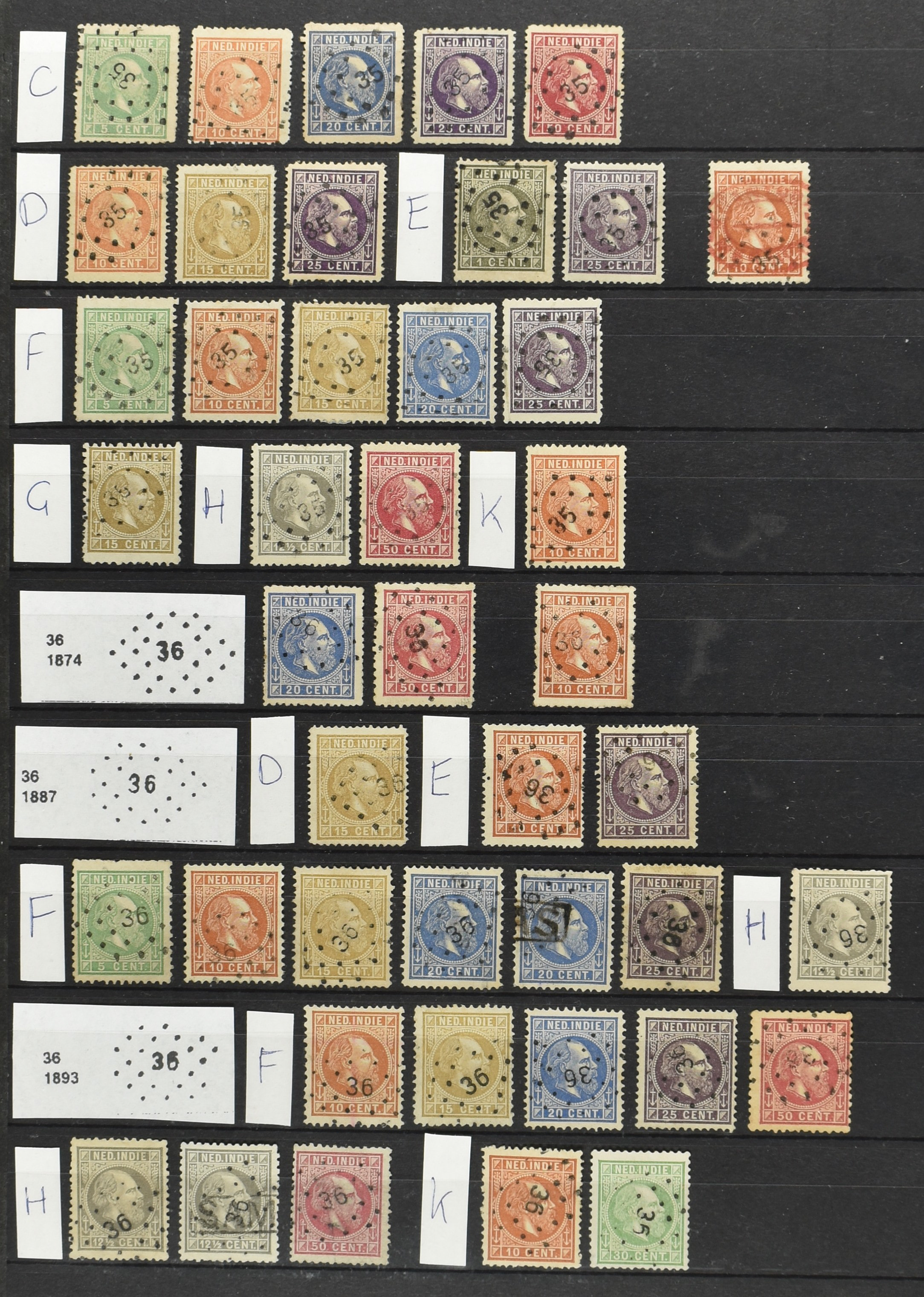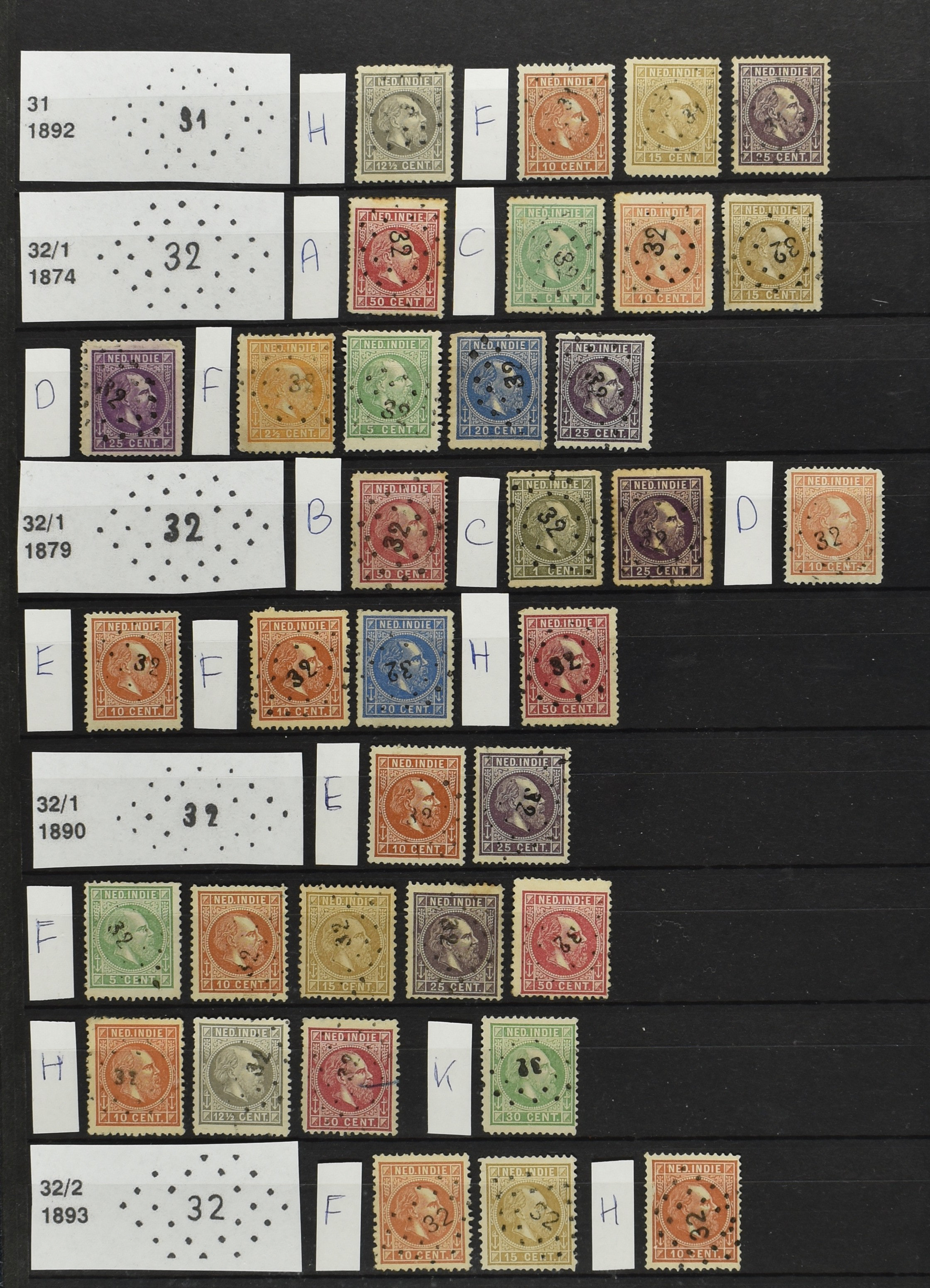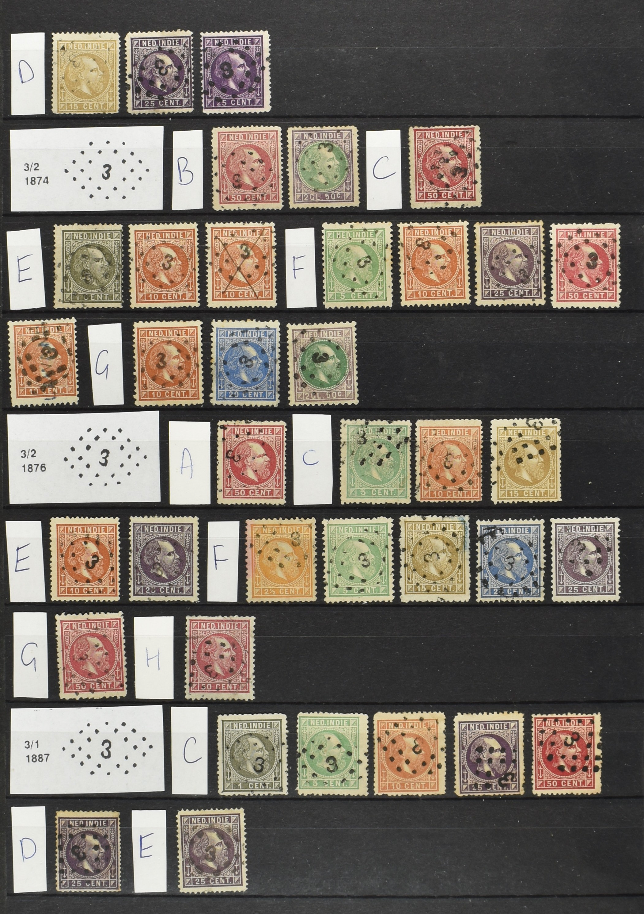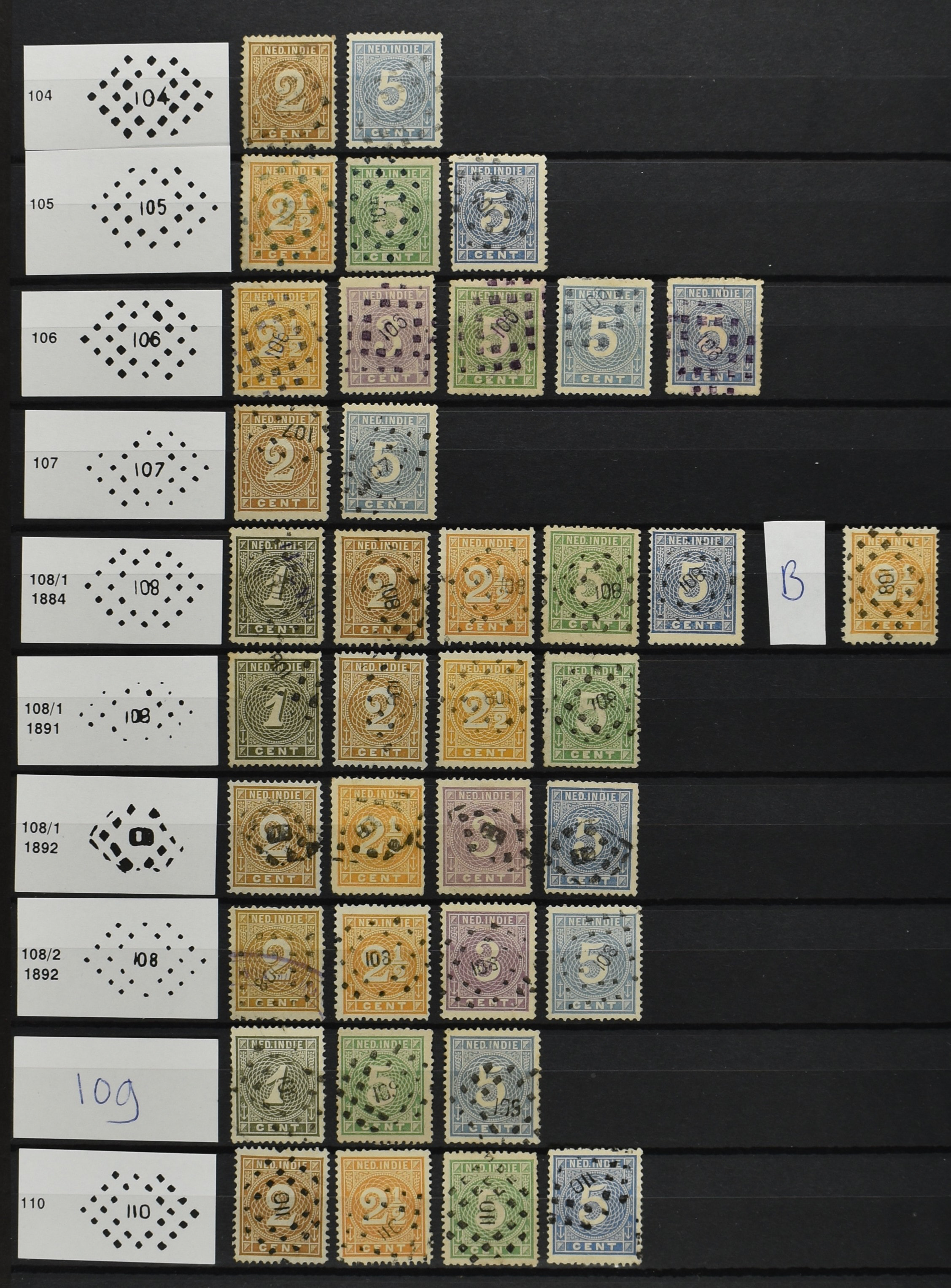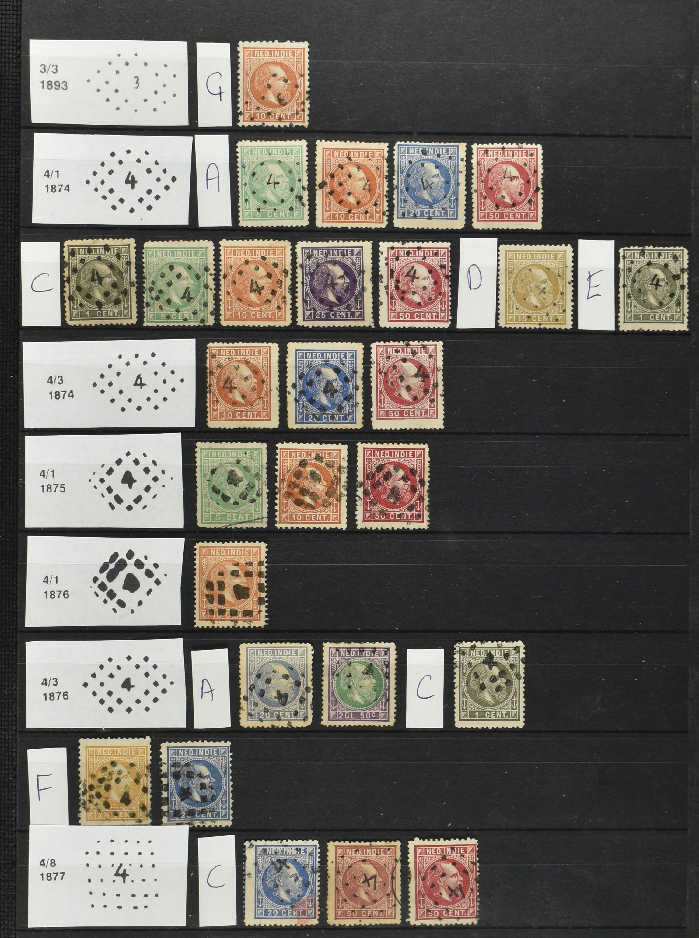 2250 imageNED.- INDIË PUNTSTEMPELS op Emissie Cijfer 1883-90, zeer uitgebreide collectie opgezet volgens Bulterman (De Postzak nr. 153, sep. 1987), per puntstempelnummer ieder type op zo veel mogelijk verschillende waarden en bovendien voor de 2 en 2½ cent ook in kamtanding 11½:12 gr.g., diverse afstempelingen in violet, het geheel in uitgezochte kwaliteit met vrijwel uitsluitend volledige afstempelingen op zegels in doorgaans prachtkwaliteit (perfecte 112 op 5 cent blauw, zegel mist hoektand), overzichtelijk op nummervolgorde en typen opgezet in 1 insteekboek. Prachtverzameling en daarmee een uitgelezen kans om topkwaliteit te kopen en op te zetten, uiteraard ook geschikt voor kwaliteitsverbetering of detailleren (Image) (Image2) (Image3) (Image4) (Image5) (Image6) (Image7) (Image8) (Image9) (Image10) (Image11) (Image12) (Image13) (Image14) (Image15) (Image16) (Image17) (Image18) (Image19) (Image20) (Image21) (All Images)