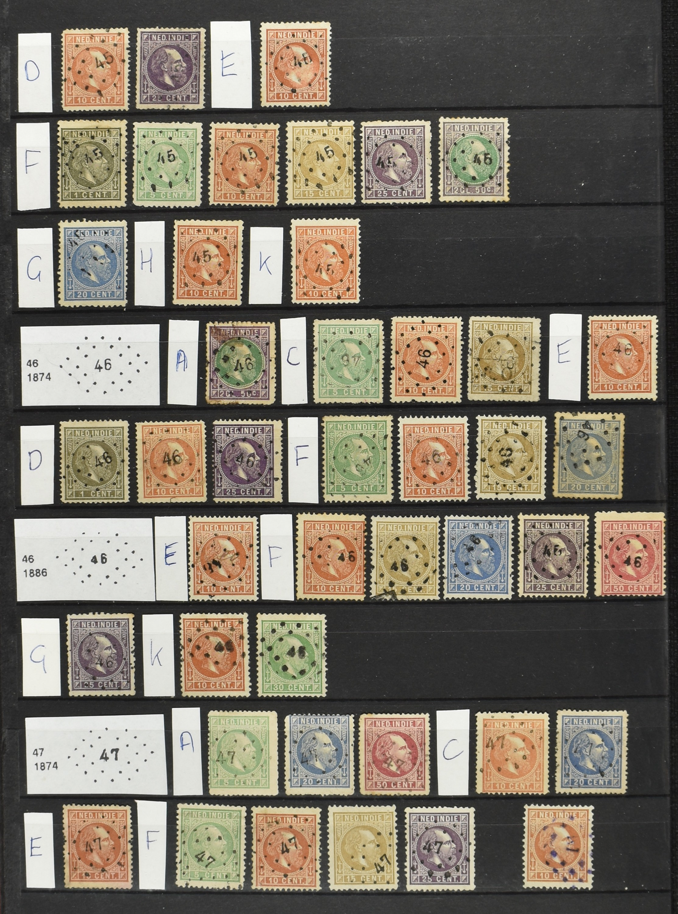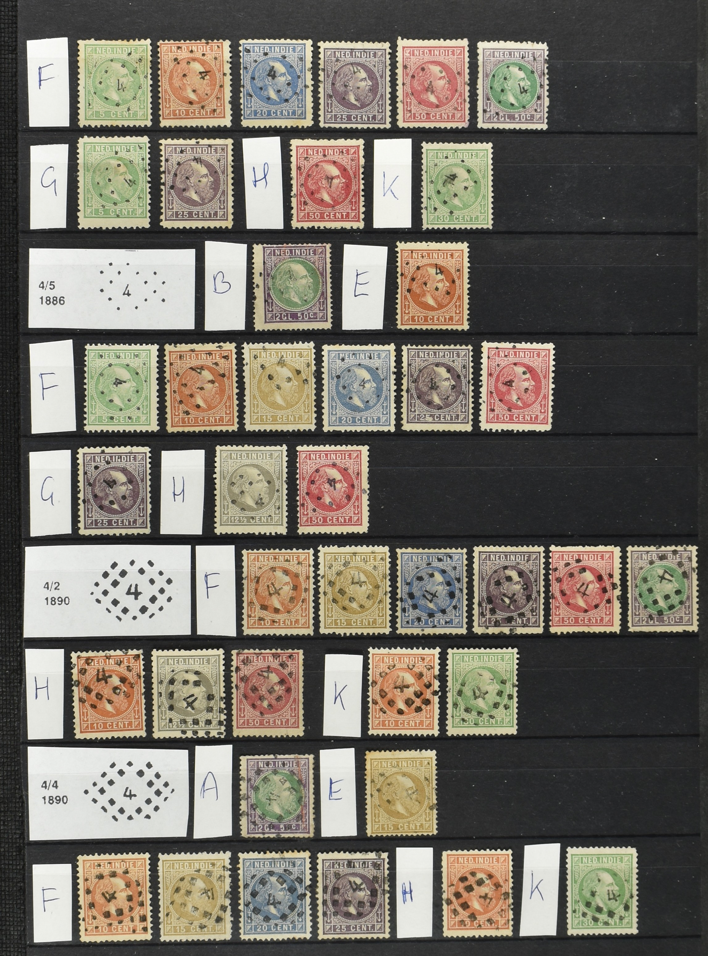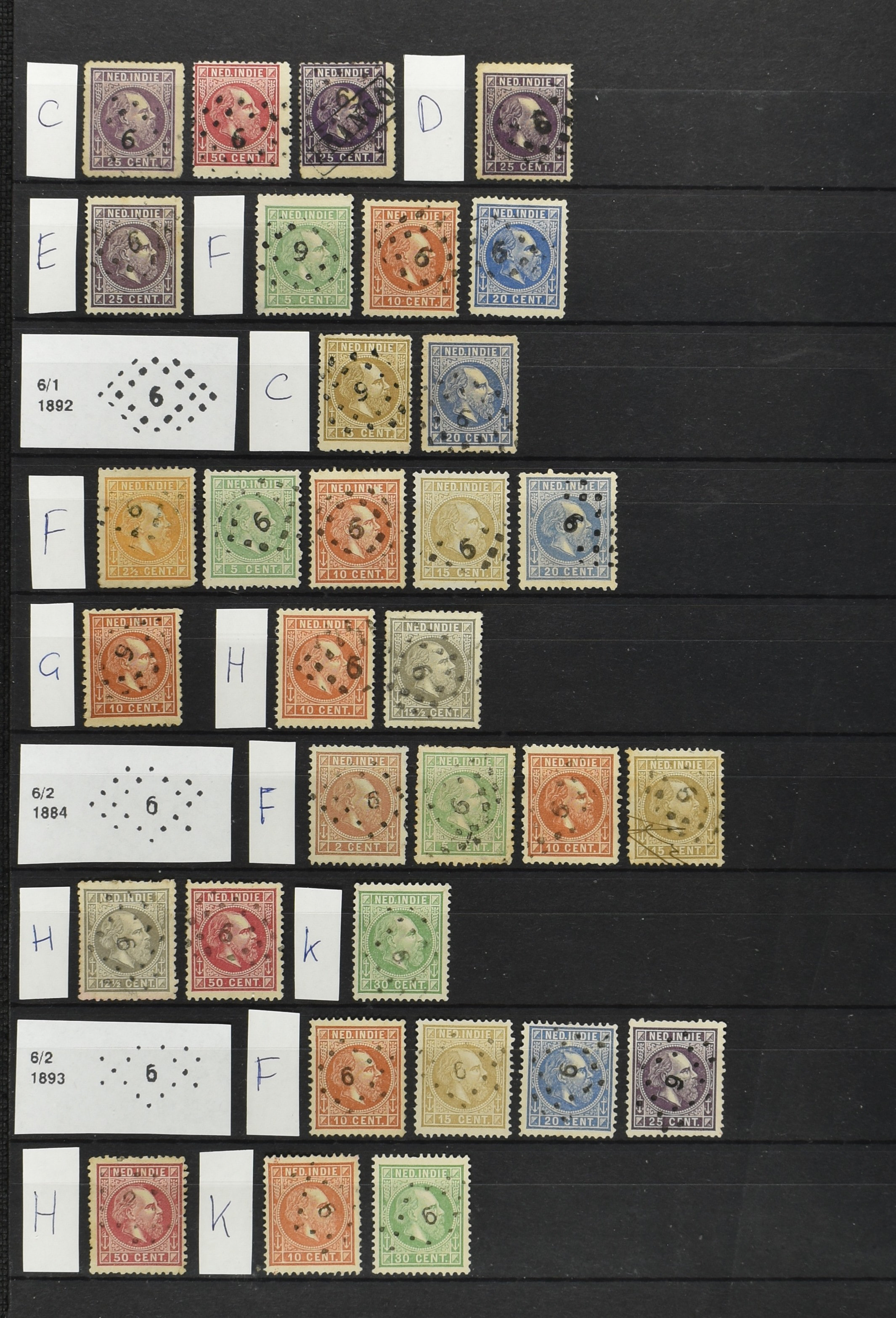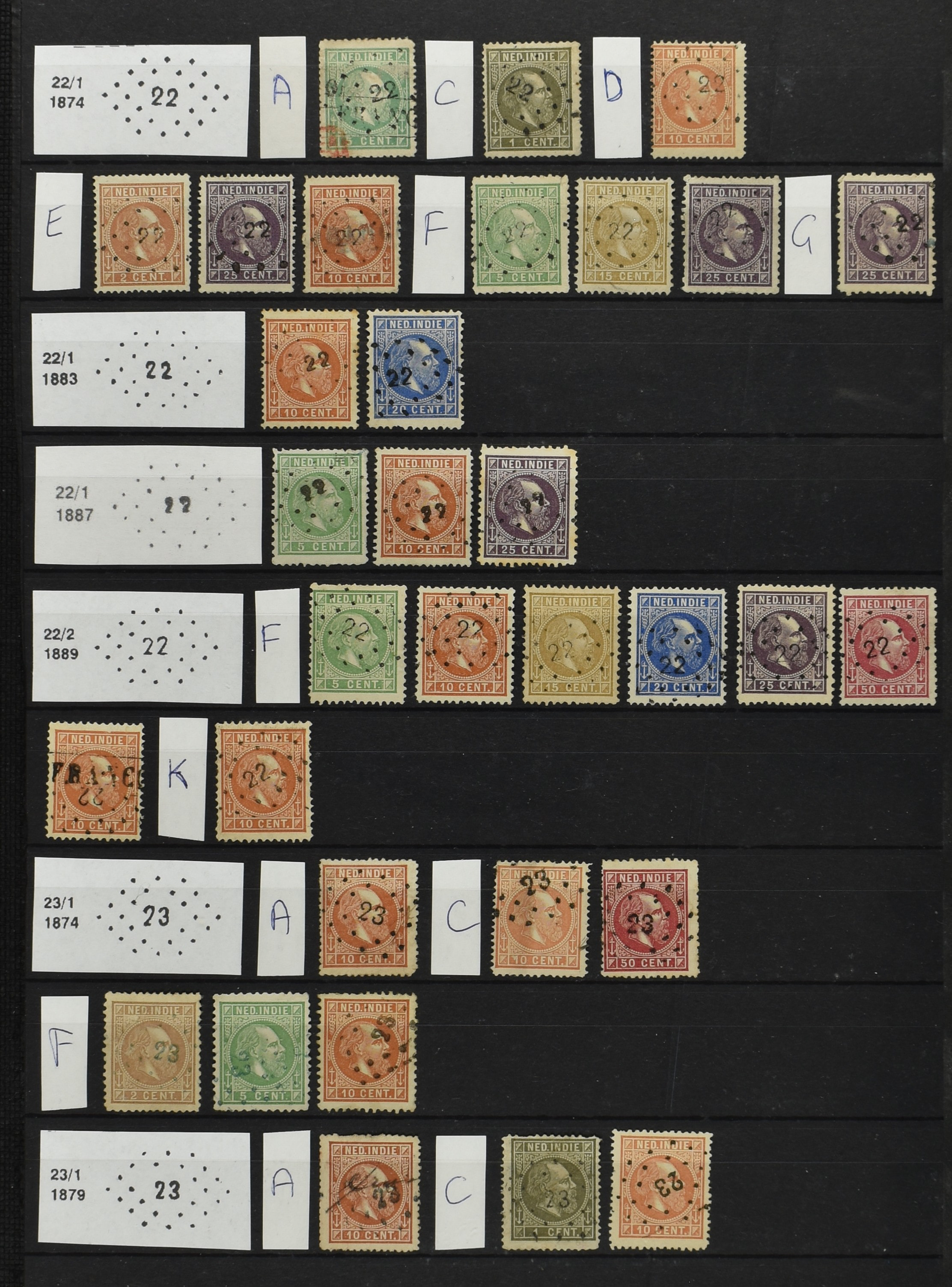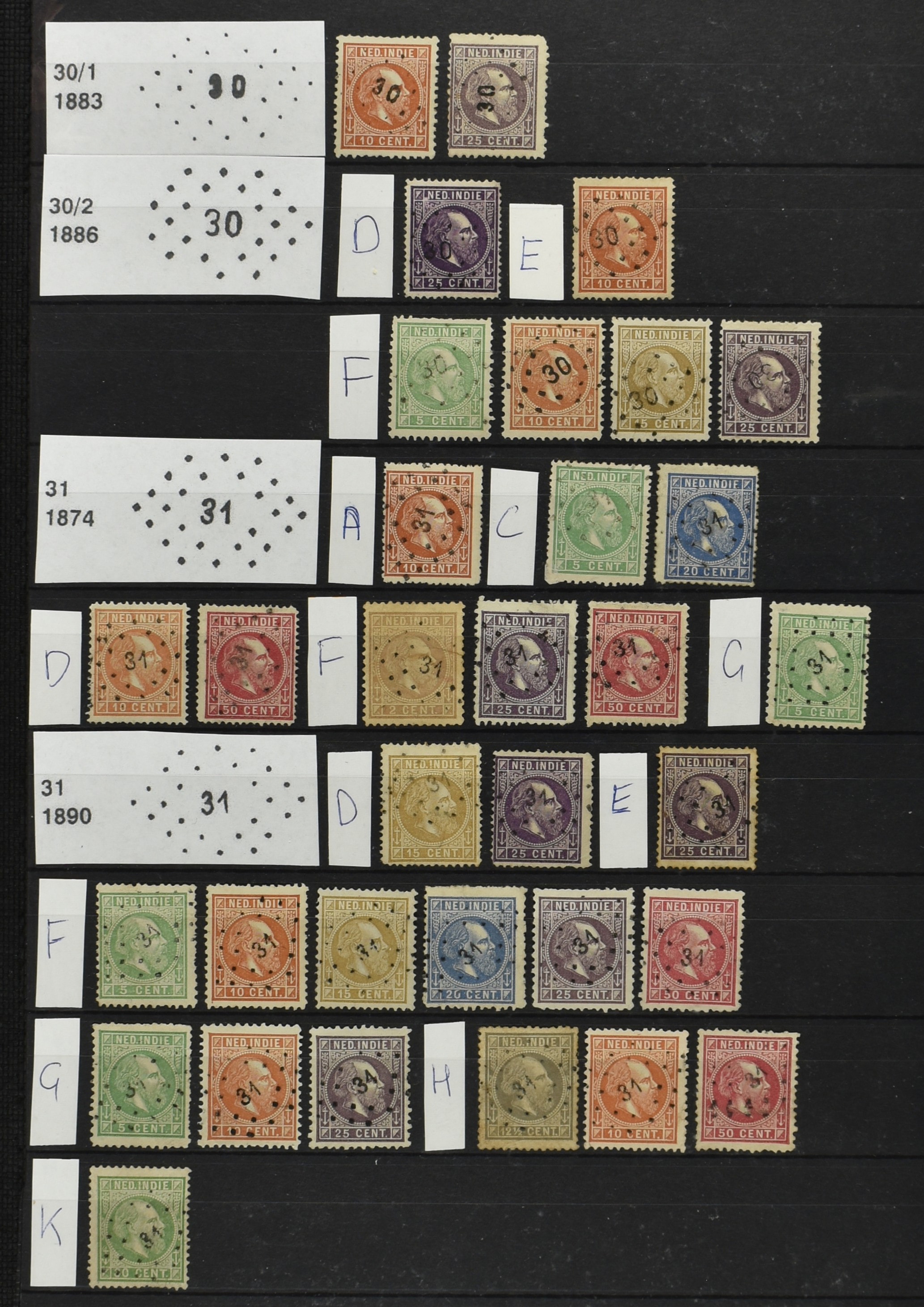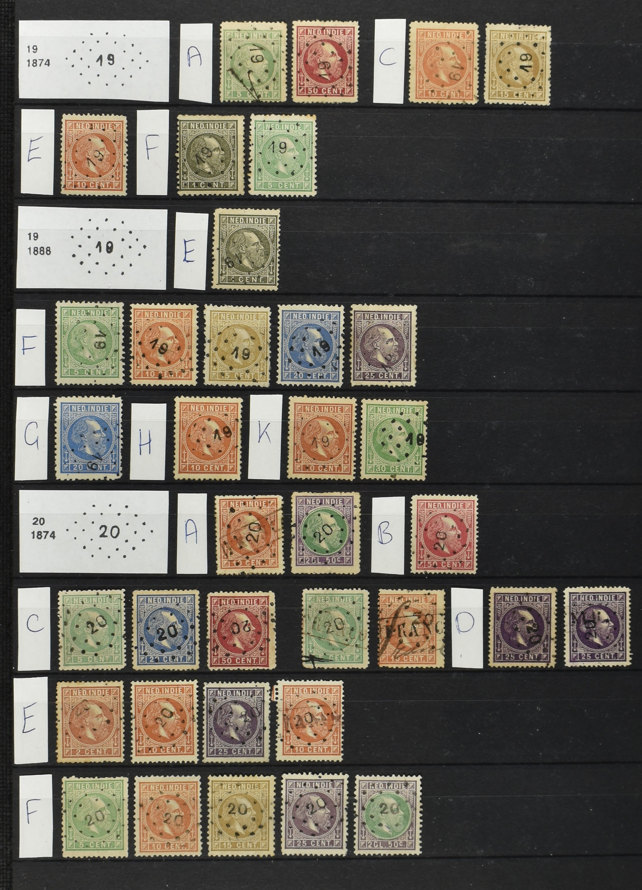 2250 imageNED.- INDIË PUNTSTEMPELS op Emissie Cijfer 1883-90, zeer uitgebreide collectie opgezet volgens Bulterman (De Postzak nr. 153, sep. 1987), per puntstempelnummer ieder type op zo veel mogelijk verschillende waarden en bovendien voor de 2 en 2½ cent ook in kamtanding 11½:12 gr.g., diverse afstempelingen in violet, het geheel in uitgezochte kwaliteit met vrijwel uitsluitend volledige afstempelingen op zegels in doorgaans prachtkwaliteit (perfecte 112 op 5 cent blauw, zegel mist hoektand), overzichtelijk op nummervolgorde en typen opgezet in 1 insteekboek. Prachtverzameling en daarmee een uitgelezen kans om topkwaliteit te kopen en op te zetten, uiteraard ook geschikt voor kwaliteitsverbetering of detailleren (Image) (Image2) (Image3) (Image4) (Image5) (Image6) (Image7) (Image8) (Image9) (Image10) (Image11) (Image12) (Image13) (Image14) (Image15) (Image16) (Image17) (Image18) (Image19) (Image20) (Image21) (All Images)