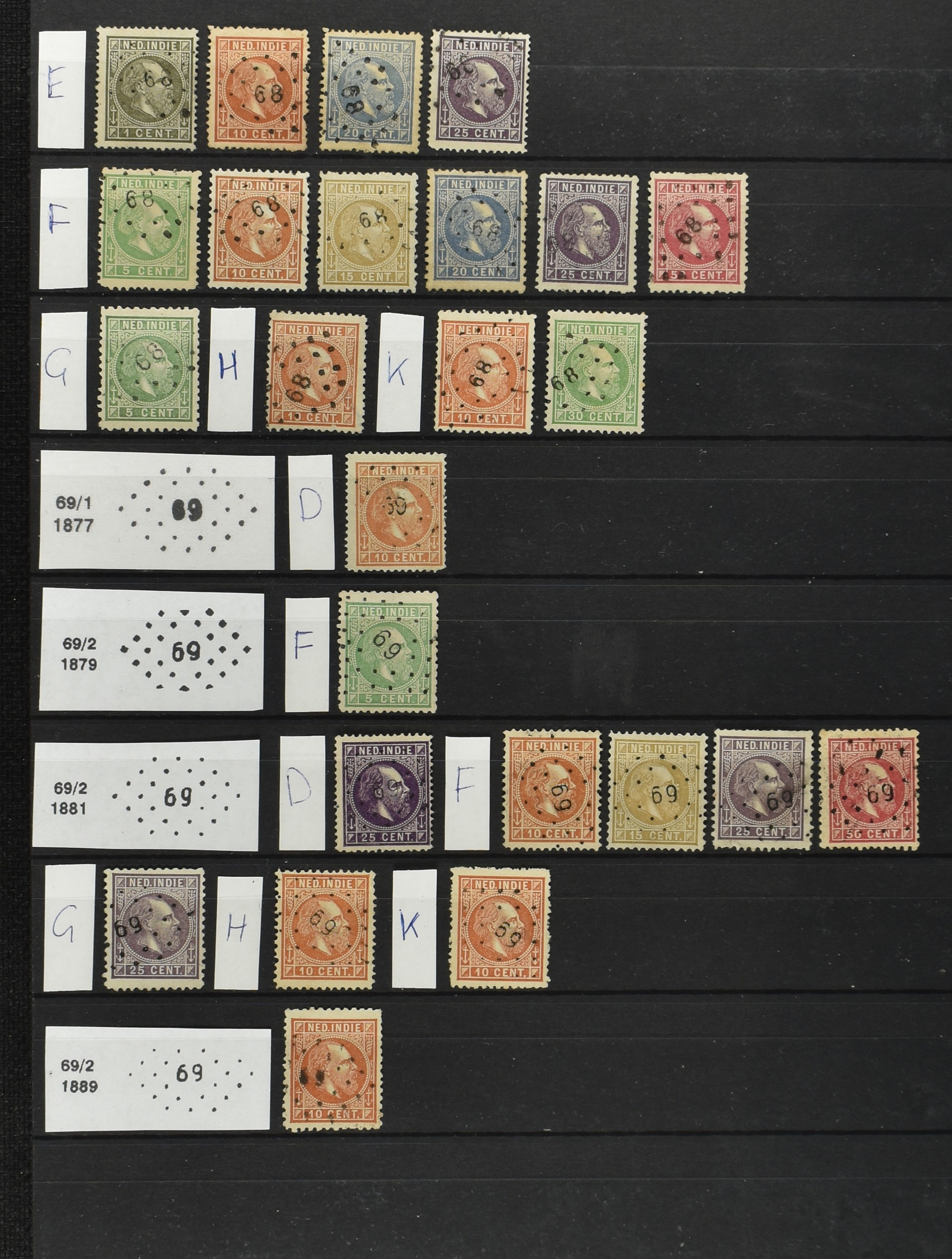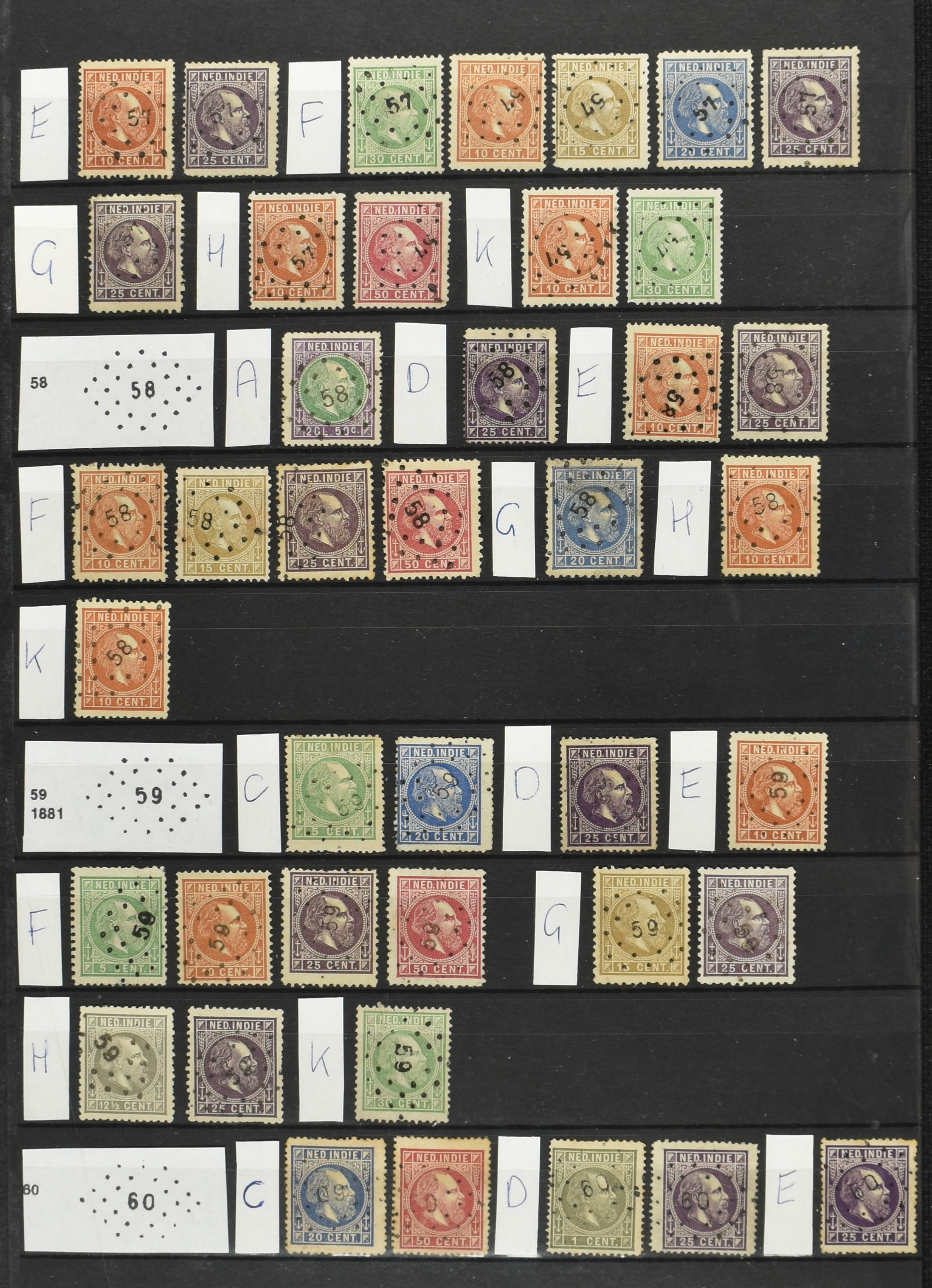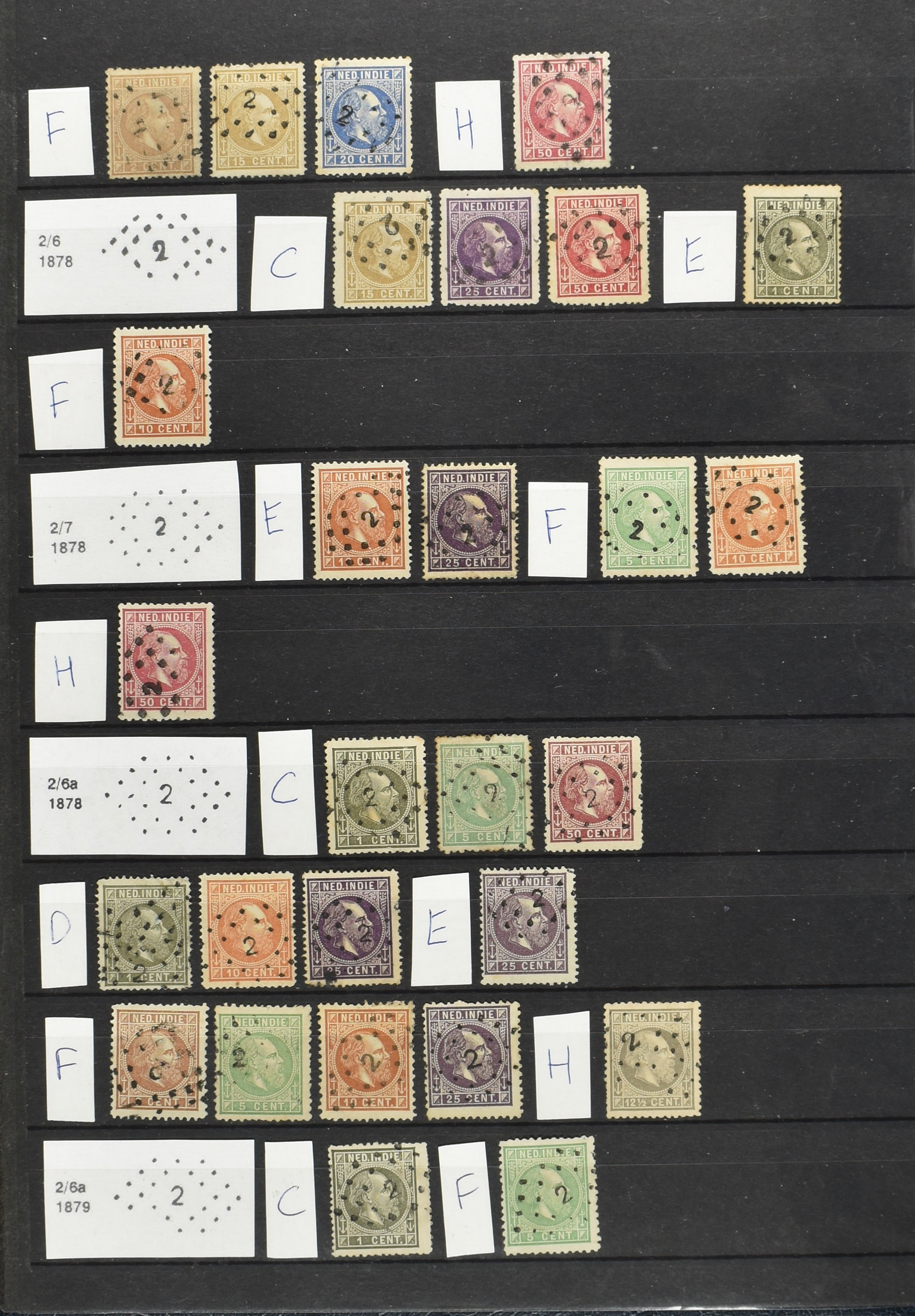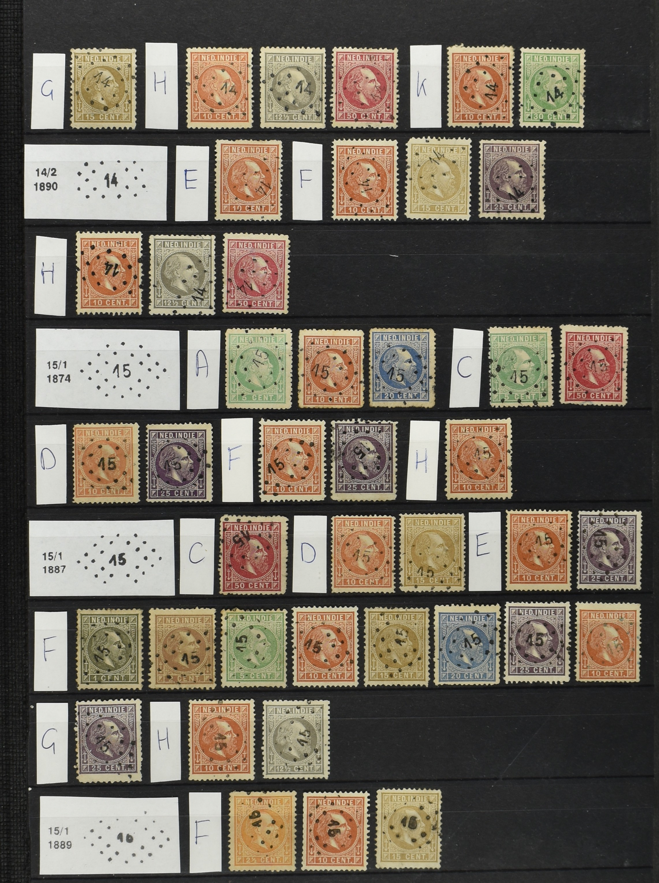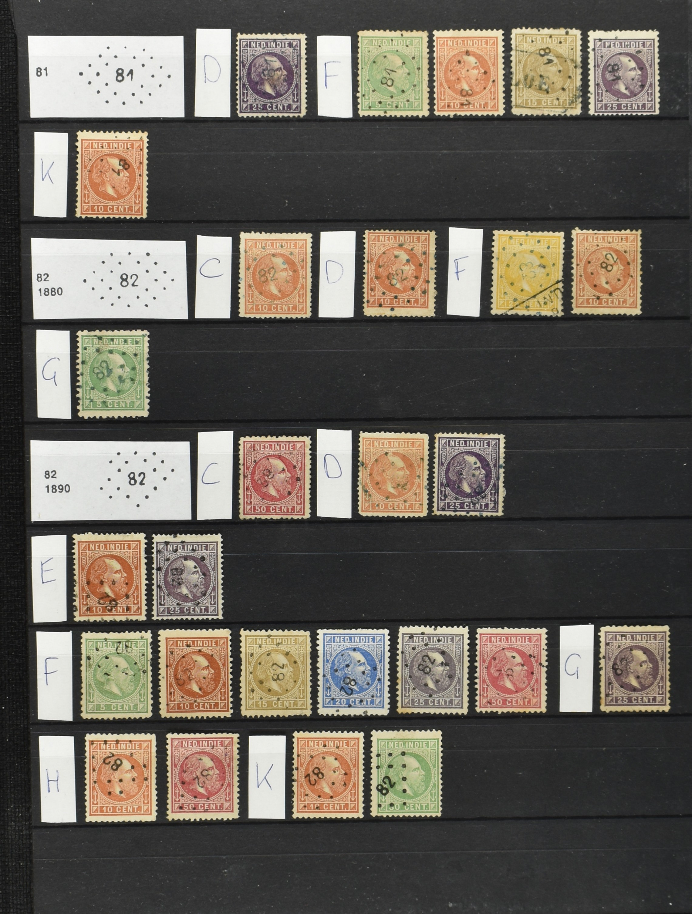 2250 imageNED.- INDIË PUNTSTEMPELS op Emissie Cijfer 1883-90, zeer uitgebreide collectie opgezet volgens Bulterman (De Postzak nr. 153, sep. 1987), per puntstempelnummer ieder type op zo veel mogelijk verschillende waarden en bovendien voor de 2 en 2½ cent ook in kamtanding 11½:12 gr.g., diverse afstempelingen in violet, het geheel in uitgezochte kwaliteit met vrijwel uitsluitend volledige afstempelingen op zegels in doorgaans prachtkwaliteit (perfecte 112 op 5 cent blauw, zegel mist hoektand), overzichtelijk op nummervolgorde en typen opgezet in 1 insteekboek. Prachtverzameling en daarmee een uitgelezen kans om topkwaliteit te kopen en op te zetten, uiteraard ook geschikt voor kwaliteitsverbetering of detailleren (Image) (Image2) (Image3) (Image4) (Image5) (Image6) (Image7) (Image8) (Image9) (Image10) (Image11) (Image12) (Image13) (Image14) (Image15) (Image16) (Image17) (Image18) (Image19) (Image20) (Image21) (All Images)