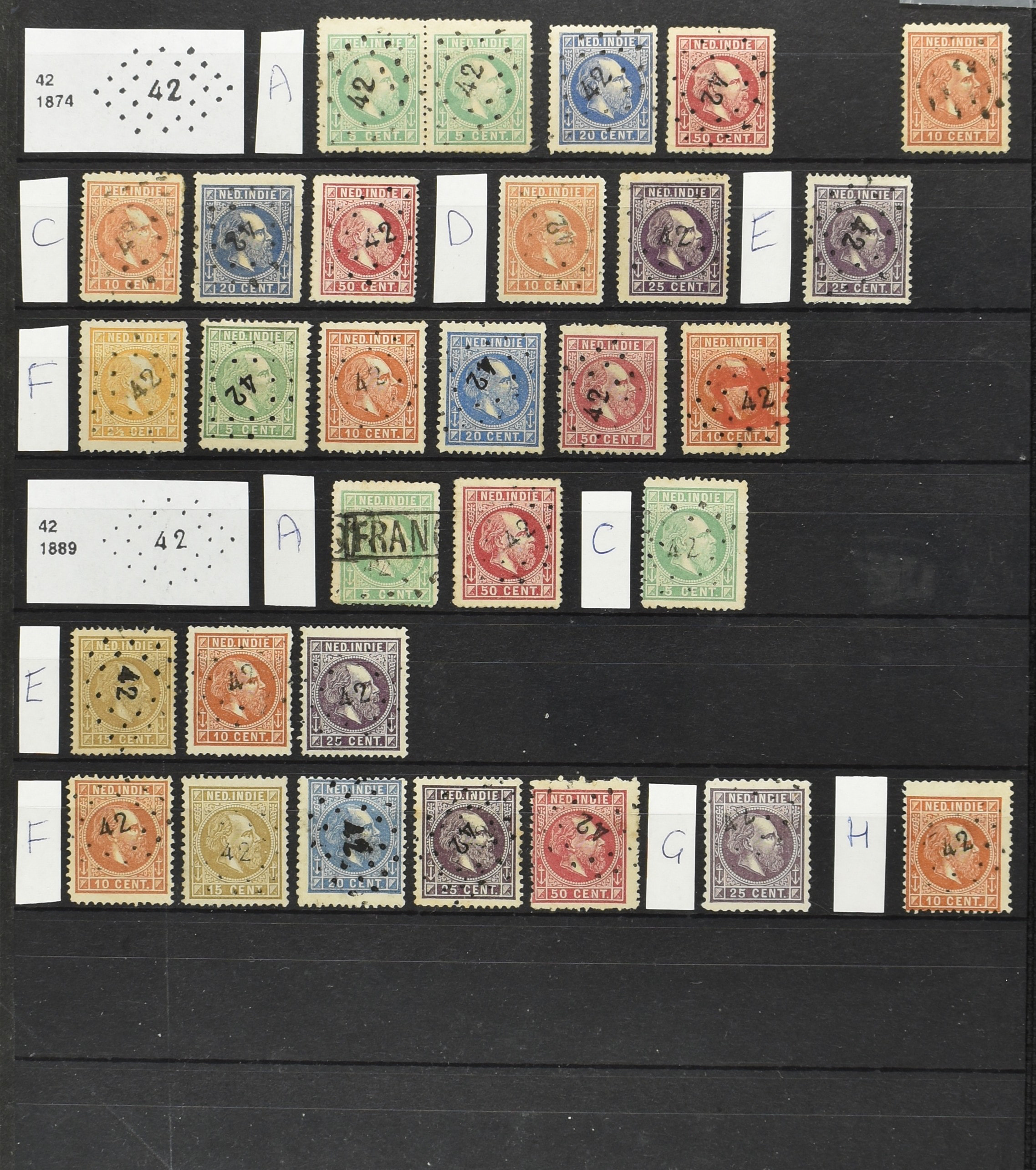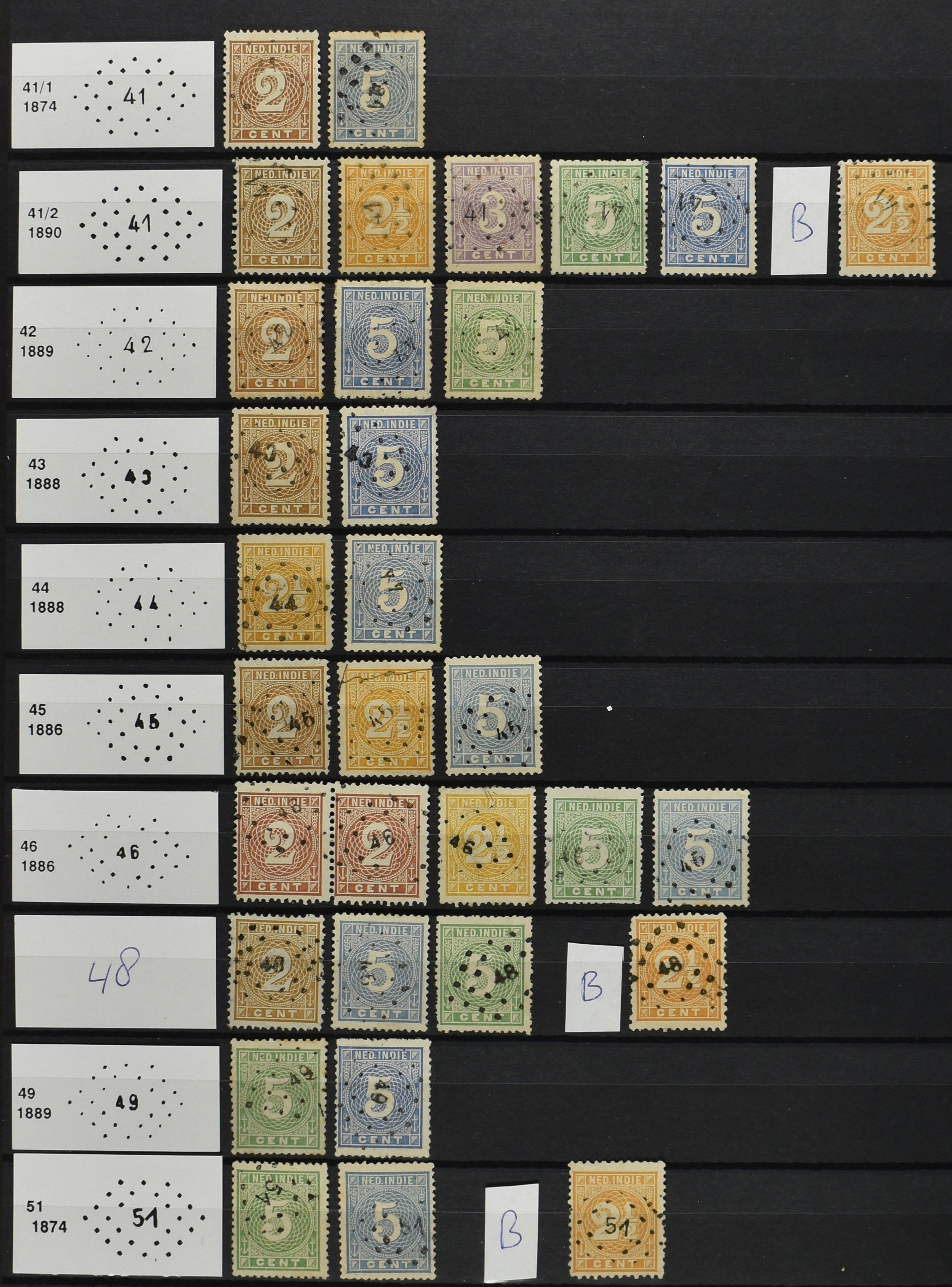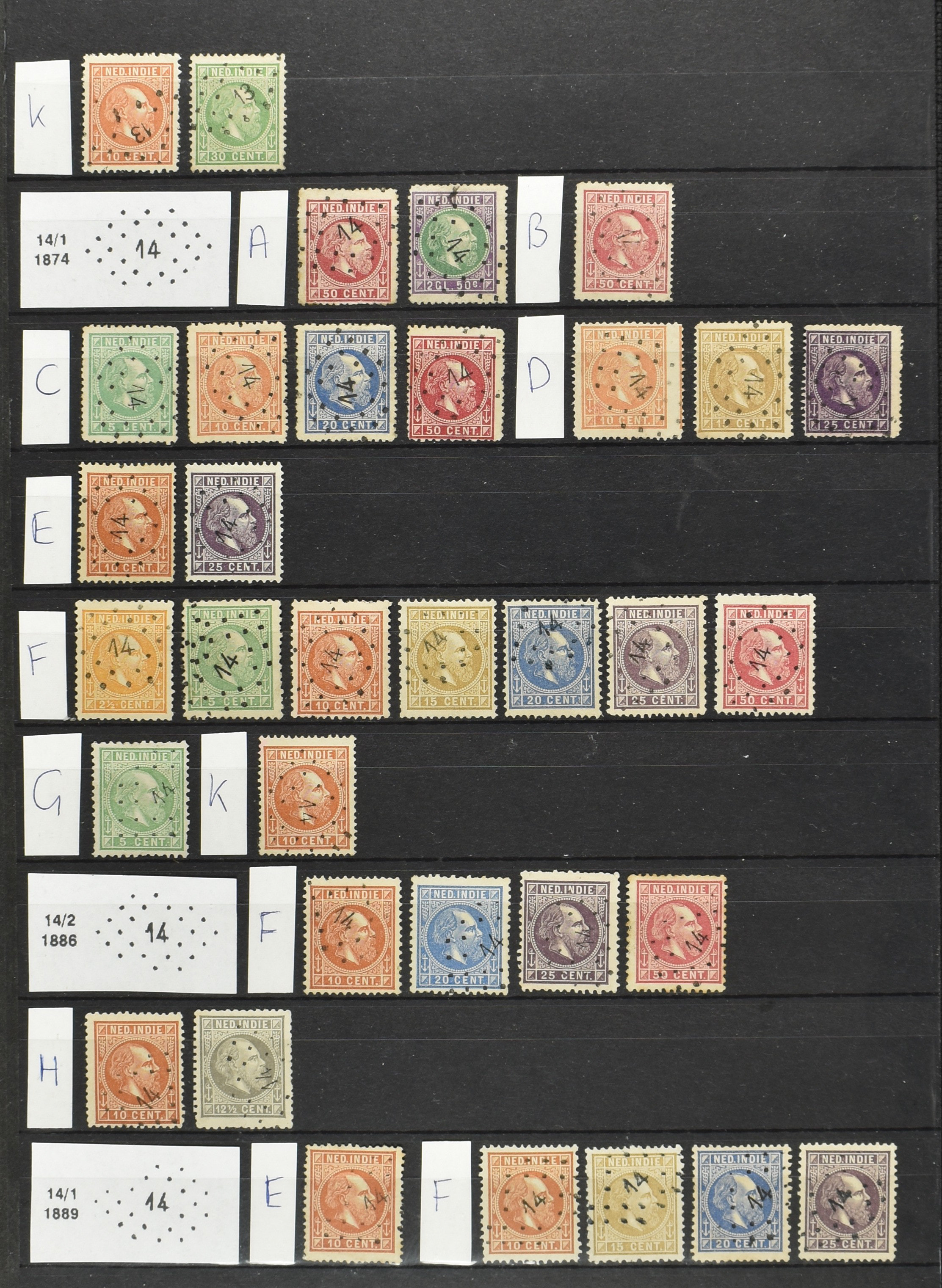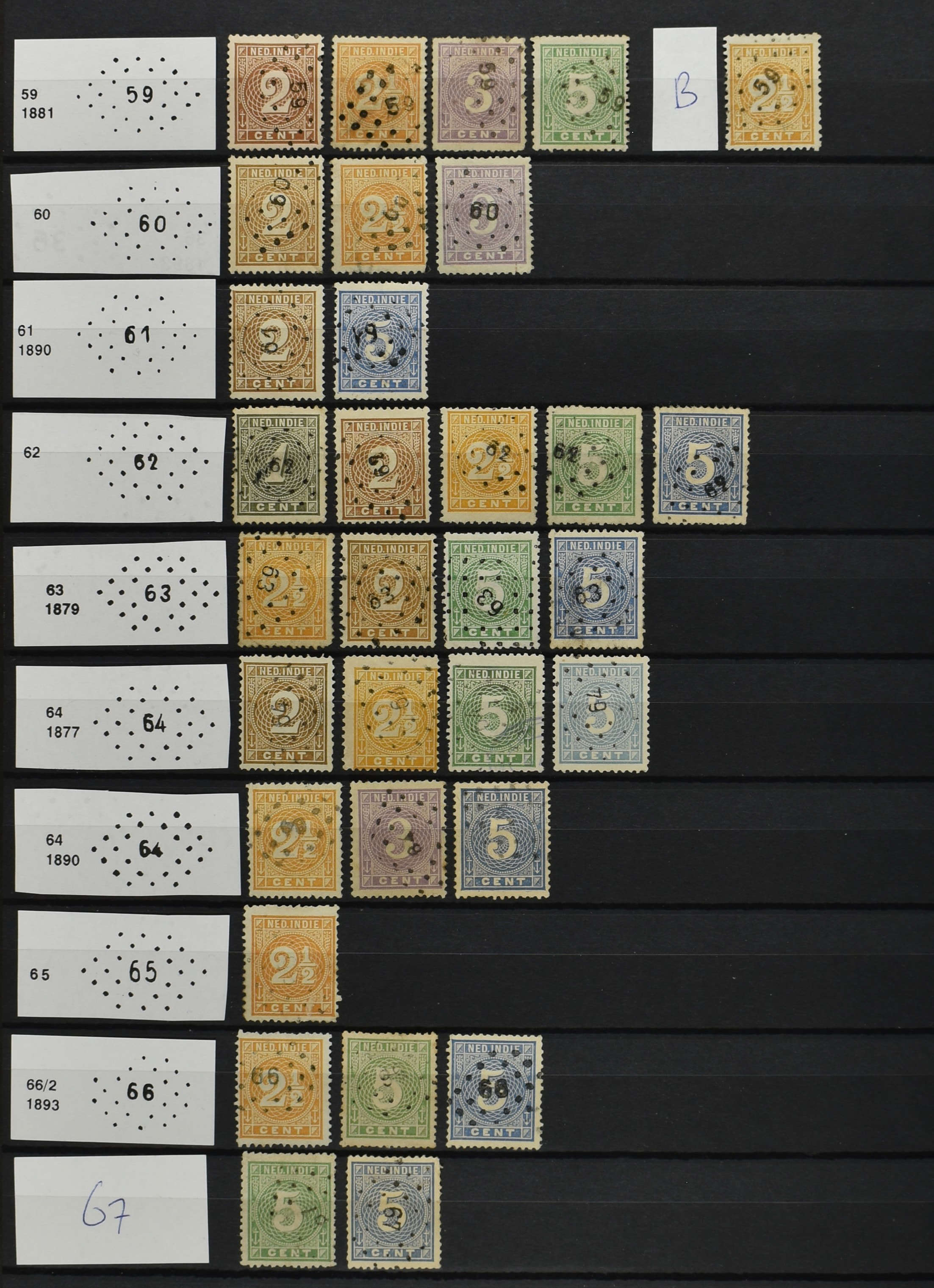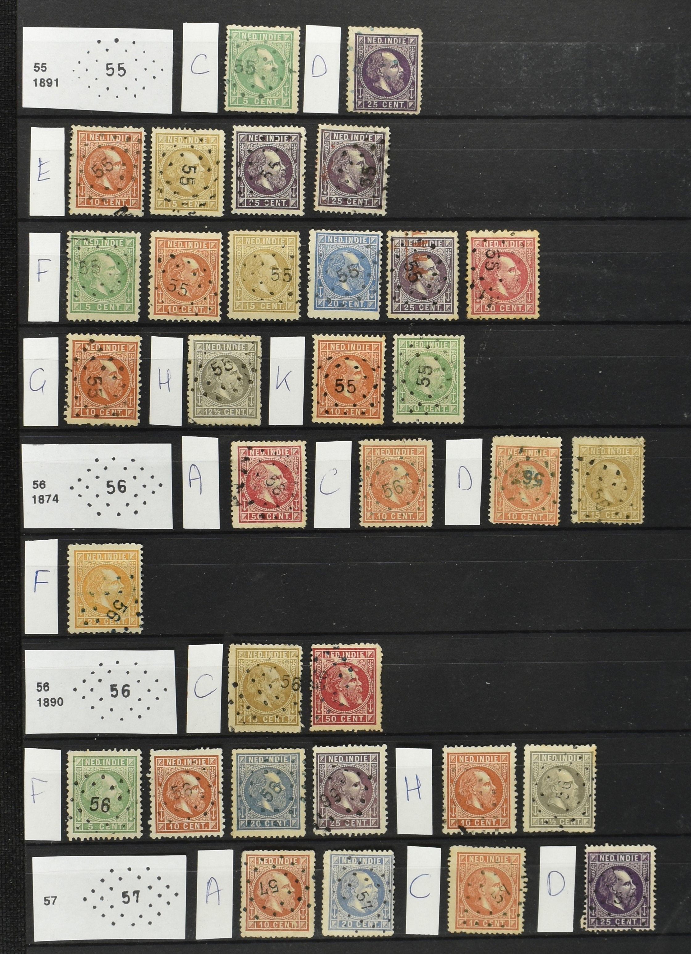 2250 imageNED.- INDIË PUNTSTEMPELS op Emissie Cijfer 1883-90, zeer uitgebreide collectie opgezet volgens Bulterman (De Postzak nr. 153, sep. 1987), per puntstempelnummer ieder type op zo veel mogelijk verschillende waarden en bovendien voor de 2 en 2½ cent ook in kamtanding 11½:12 gr.g., diverse afstempelingen in violet, het geheel in uitgezochte kwaliteit met vrijwel uitsluitend volledige afstempelingen op zegels in doorgaans prachtkwaliteit (perfecte 112 op 5 cent blauw, zegel mist hoektand), overzichtelijk op nummervolgorde en typen opgezet in 1 insteekboek. Prachtverzameling en daarmee een uitgelezen kans om topkwaliteit te kopen en op te zetten, uiteraard ook geschikt voor kwaliteitsverbetering of detailleren (Image) (Image2) (Image3) (Image4) (Image5) (Image6) (Image7) (Image8) (Image9) (Image10) (Image11) (Image12) (Image13) (Image14) (Image15) (Image16) (Image17) (Image18) (Image19) (Image20) (Image21) (All Images)