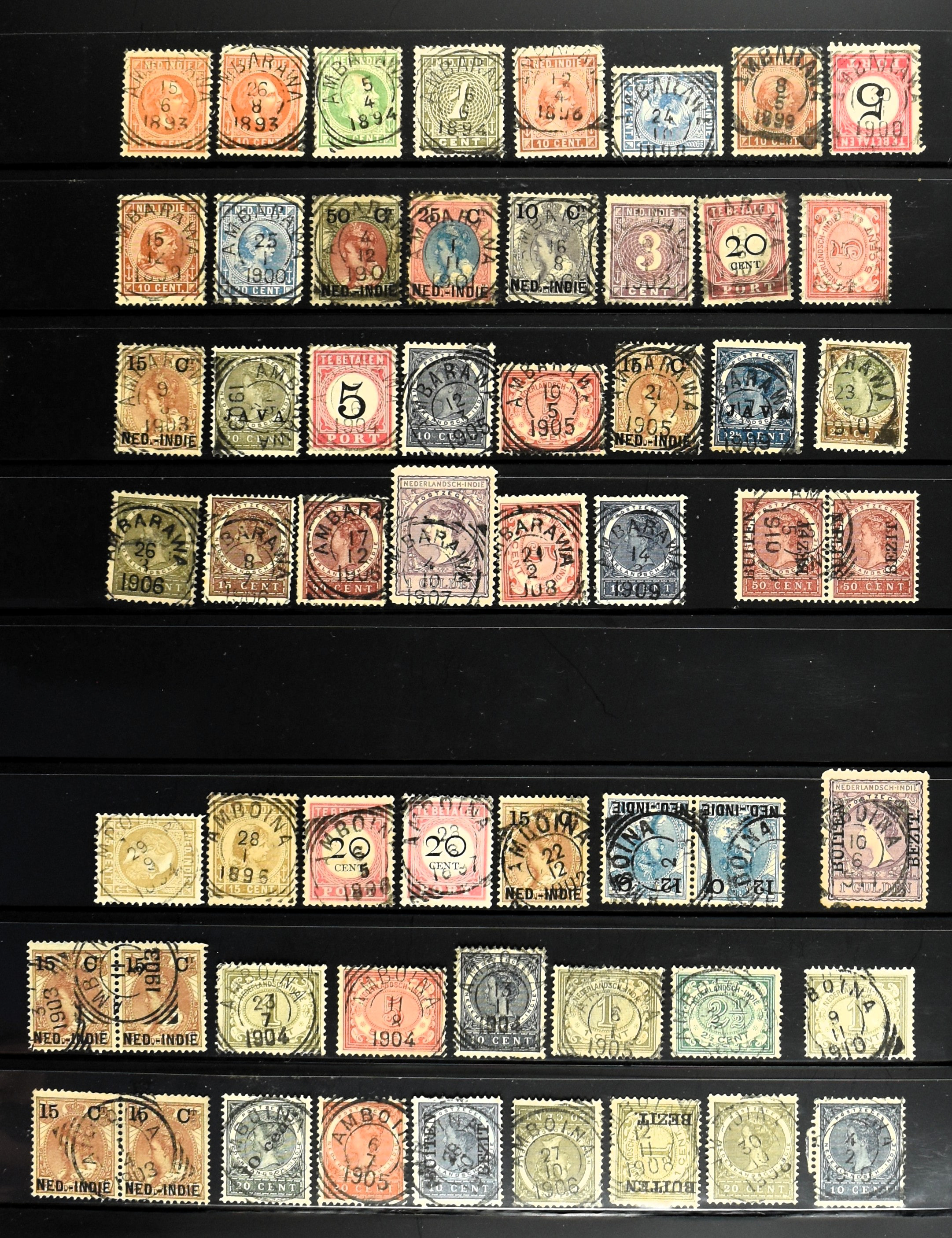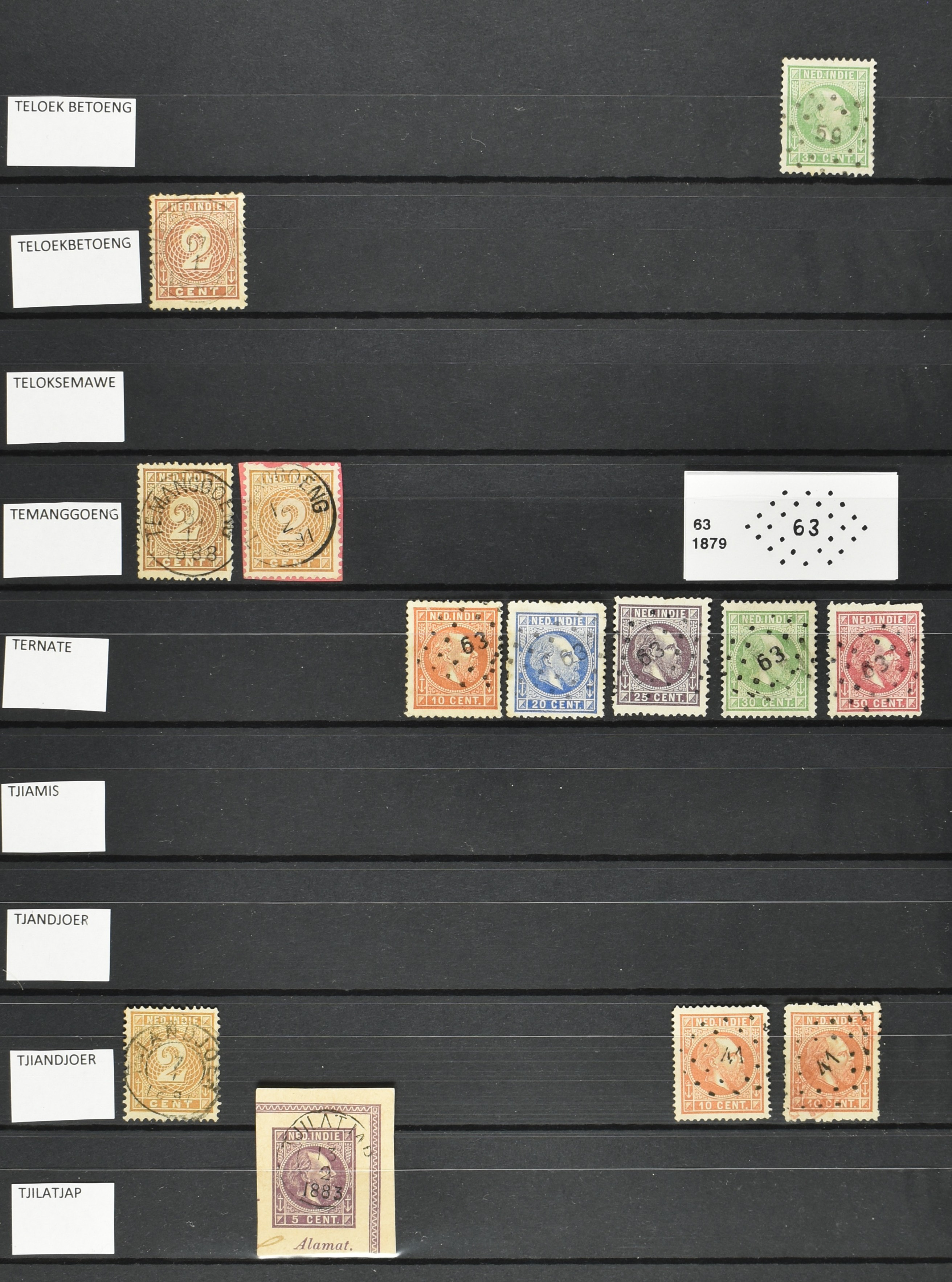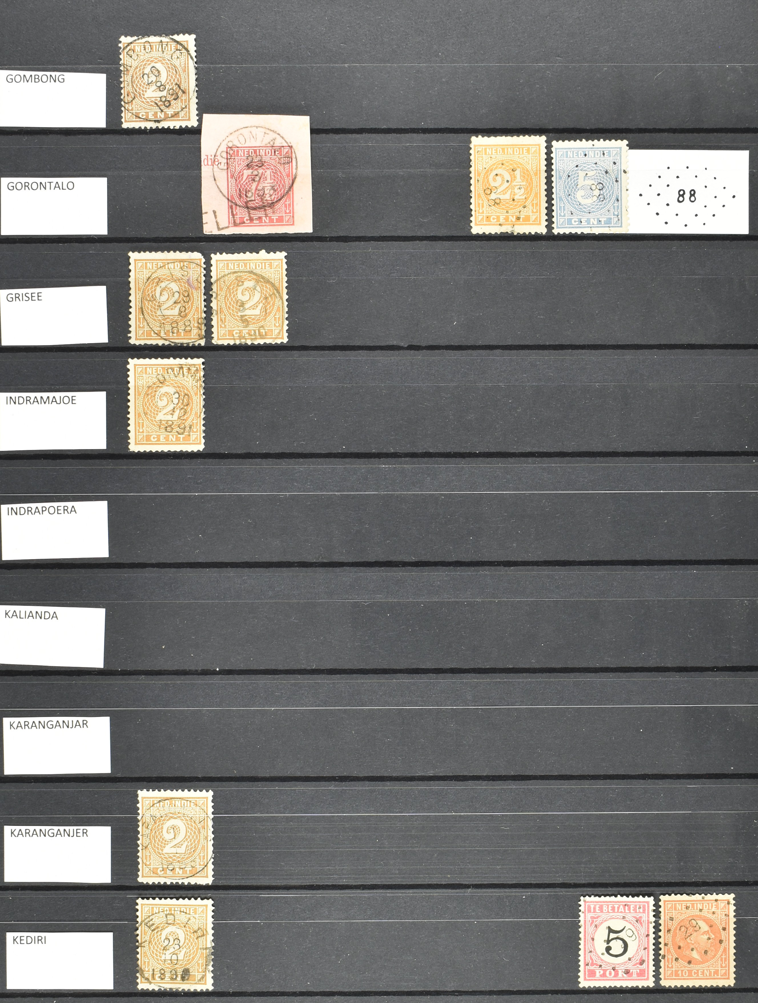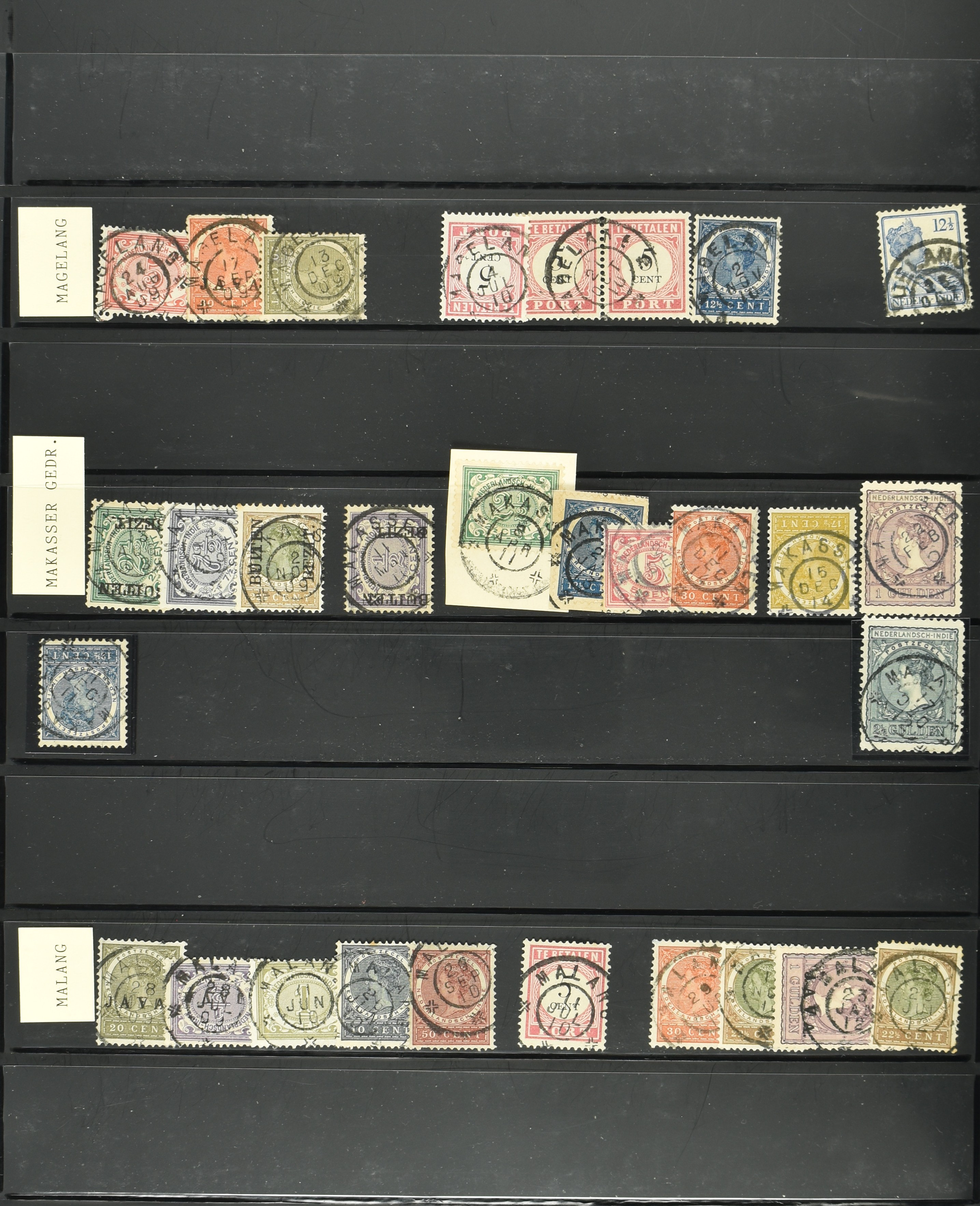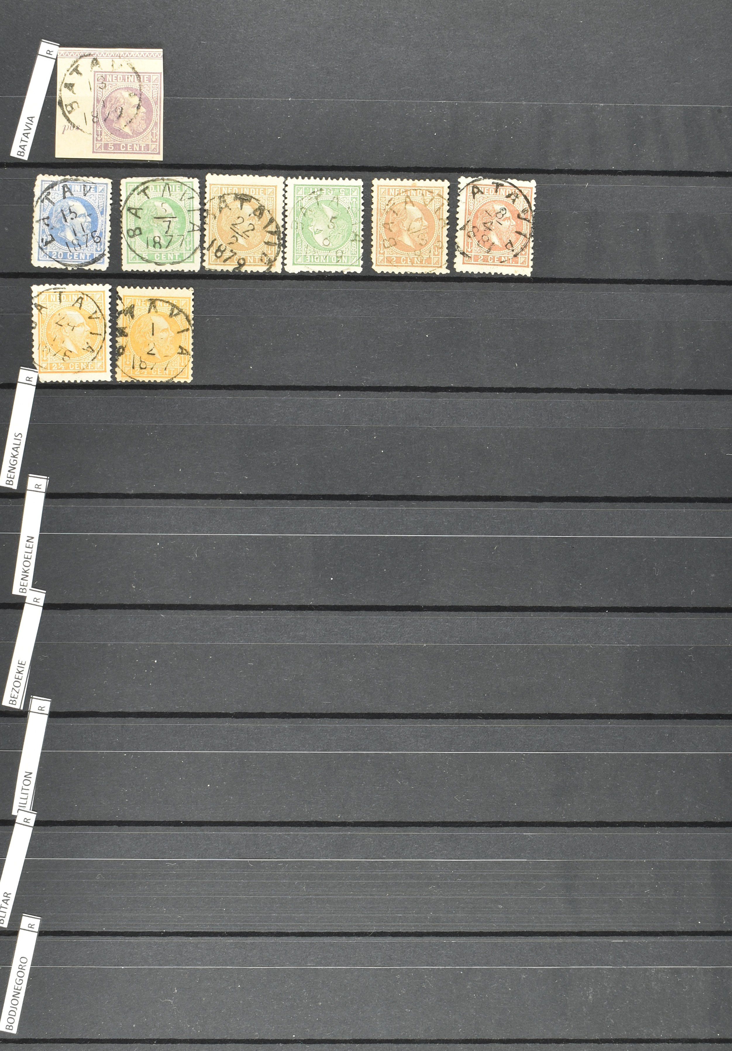 2254 imageNED.- INDIË VIERKANTSTEMPELS op Emissie Koning Willem III 1870-88, uitgebreide collectie opgezet volgens Ten Geuzendam met de diverse typen waarbij enkele blauwe, rode (Indragiri) en violette afstempelingen, Banjoewangi ook met kopstaand jaartal, per kantoor ieder type op zo veel mogelijk verschillende waarden, in uitgezochte kwaliteit met vrijwel uitsluitend volledige en veelal rechtopstaande afstempelingen op zegels in doorgaans prachtkwaliteit, overzichtelijk op alfabetische volgorde en typen opgezet in insteekboek. Wellicht overbodig te vermelden, maar het gaat om vierkantstempels en bepaalde typen die gebruikt zijn gedurende de looptijd van deze emissie, dus t/m december 1900. Alle daarna uitgegeven vierkantstempels kunnen dus niet op deze emissie voorkomen. De verzameling is een lust voor het oog, een uitgelezen kans om topkwaliteit te kopen en op te zetten, uiteraard ook geschikt voor kwaliteitsverbetering, datastudie (vbd, lbd) of detailleren (Image) (Image2) (Image3) (Image4) (Image5) (Image6) (Image7) (Image8) (Image9) (Image10) (Image11) (Image12) (Image13) (Image14) (Image15) (Image16) (All Images)