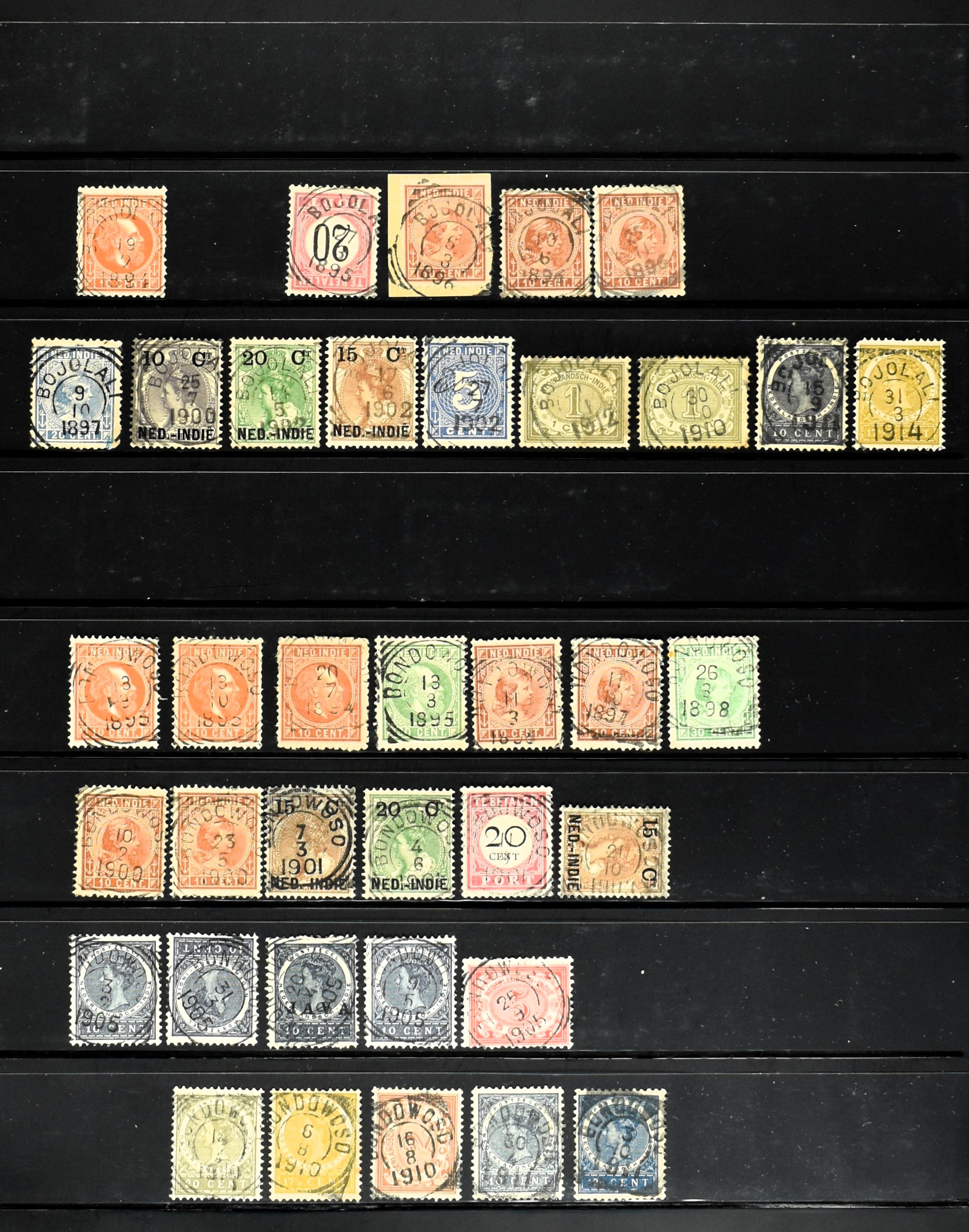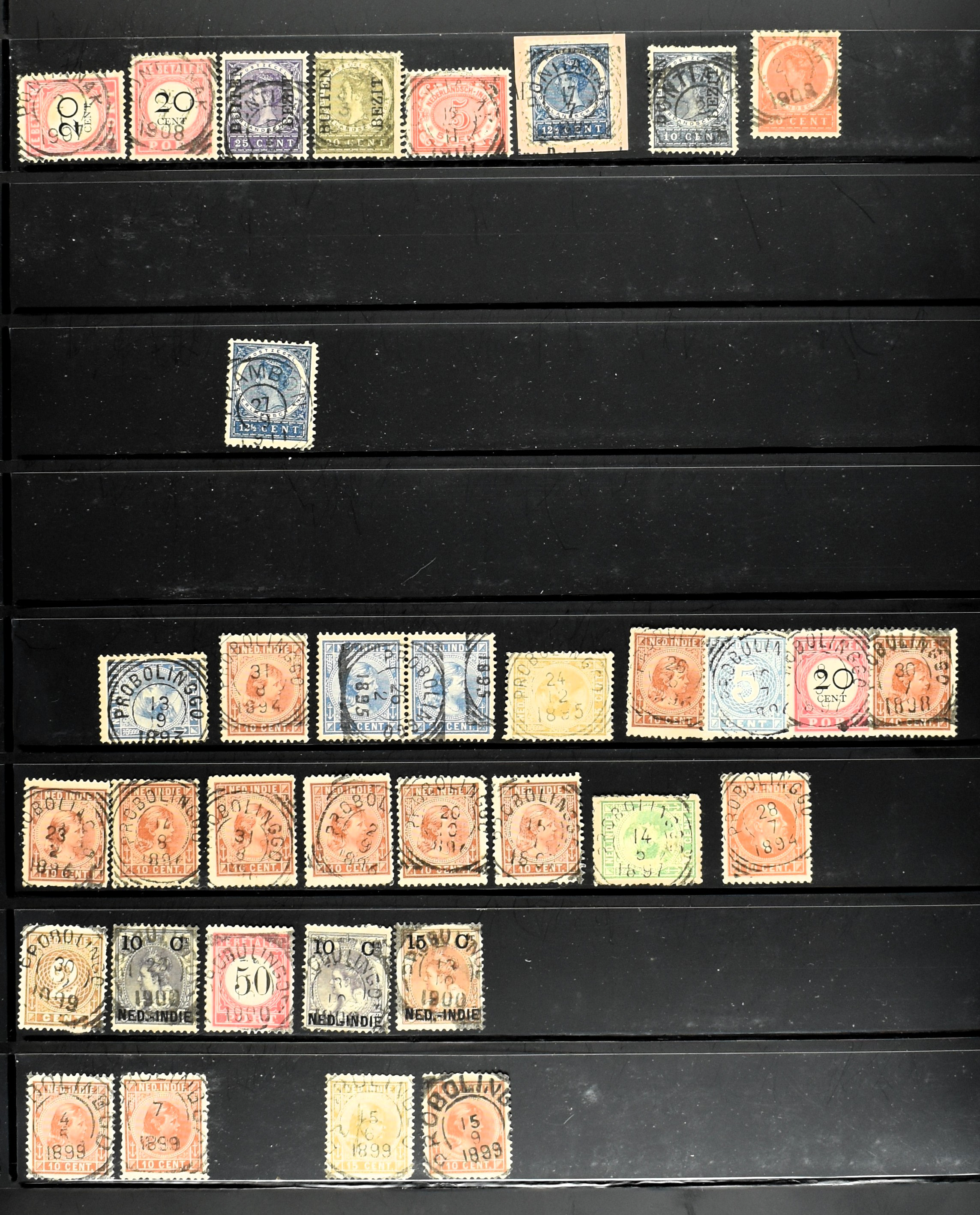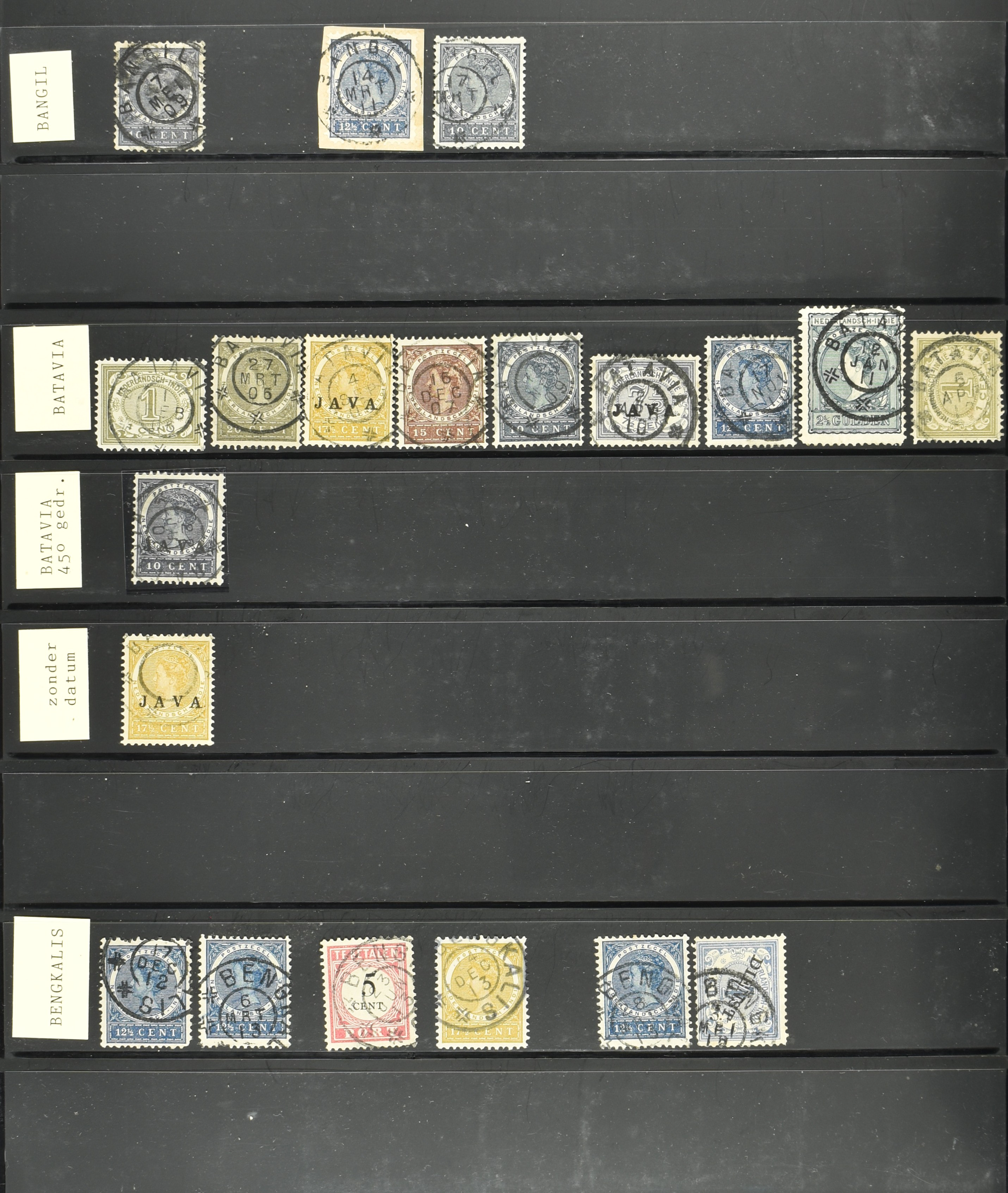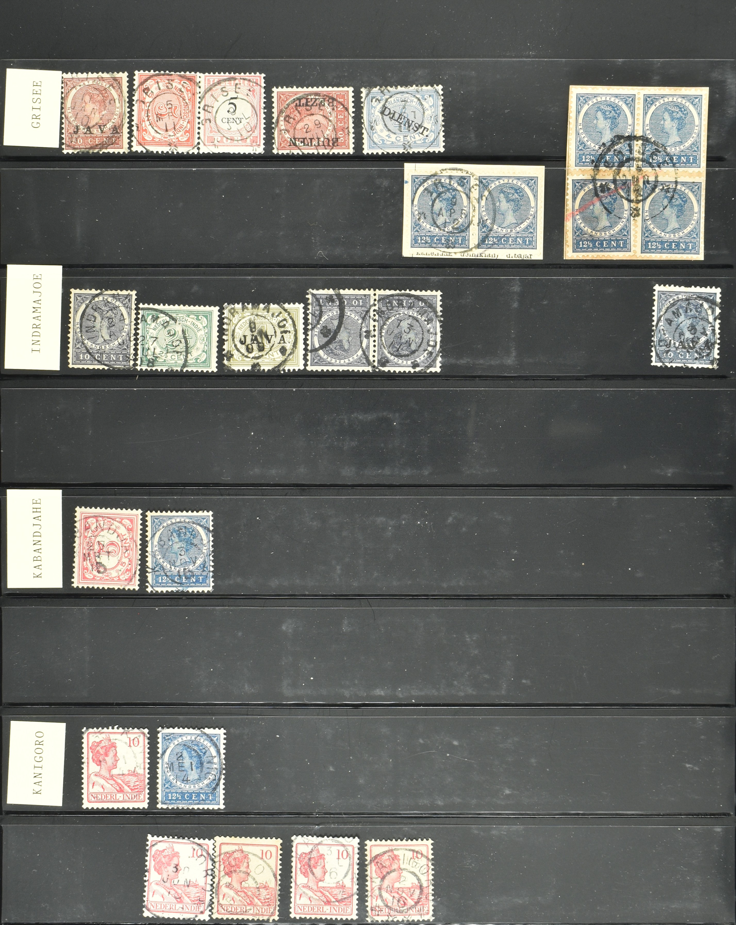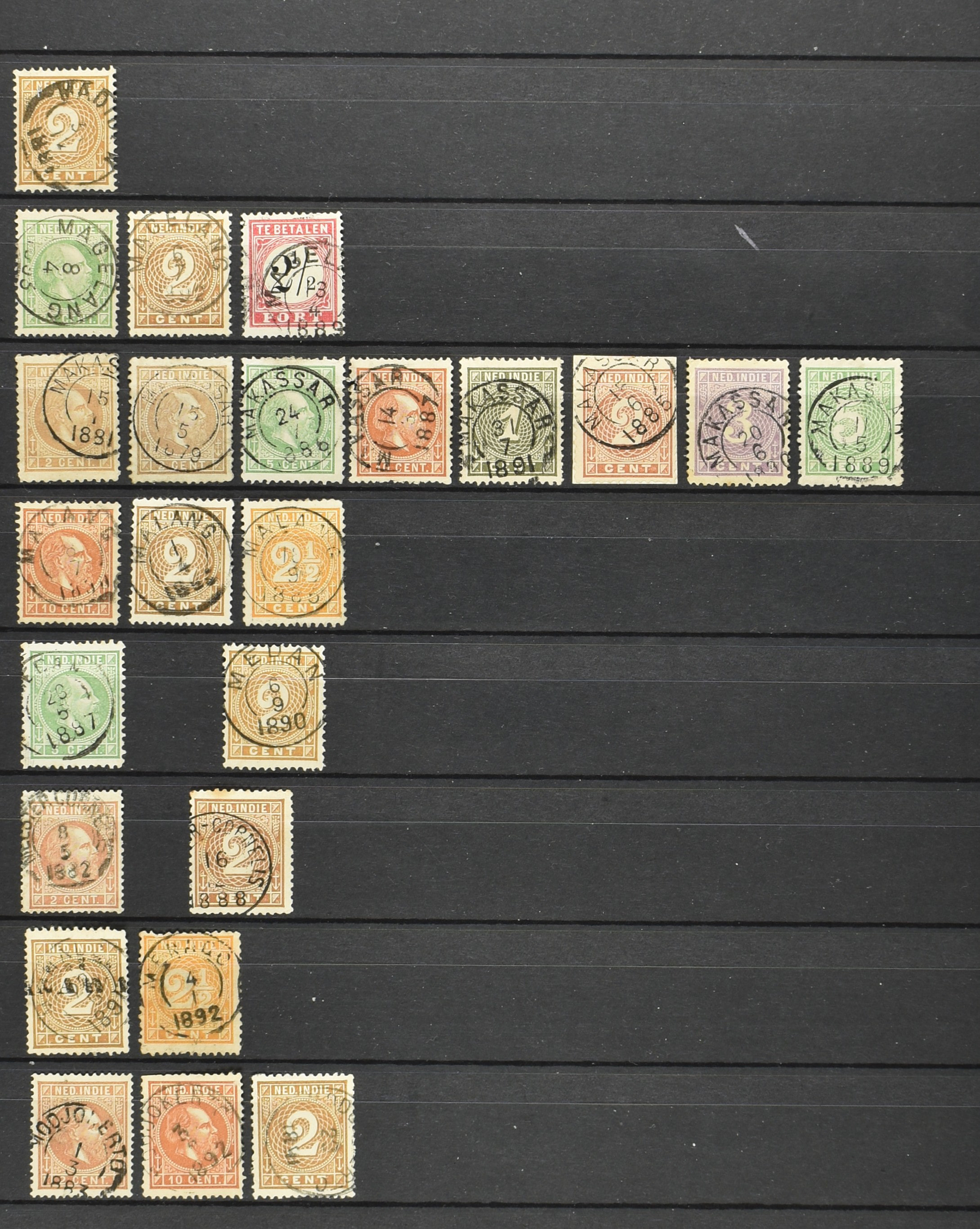 2254 imageNED.- INDIË VIERKANTSTEMPELS op Emissie Koning Willem III 1870-88, uitgebreide collectie opgezet volgens Ten Geuzendam met de diverse typen waarbij enkele blauwe, rode (Indragiri) en violette afstempelingen, Banjoewangi ook met kopstaand jaartal, per kantoor ieder type op zo veel mogelijk verschillende waarden, in uitgezochte kwaliteit met vrijwel uitsluitend volledige en veelal rechtopstaande afstempelingen op zegels in doorgaans prachtkwaliteit, overzichtelijk op alfabetische volgorde en typen opgezet in insteekboek. Wellicht overbodig te vermelden, maar het gaat om vierkantstempels en bepaalde typen die gebruikt zijn gedurende de looptijd van deze emissie, dus t/m december 1900. Alle daarna uitgegeven vierkantstempels kunnen dus niet op deze emissie voorkomen. De verzameling is een lust voor het oog, een uitgelezen kans om topkwaliteit te kopen en op te zetten, uiteraard ook geschikt voor kwaliteitsverbetering, datastudie (vbd, lbd) of detailleren (Image) (Image2) (Image3) (Image4) (Image5) (Image6) (Image7) (Image8) (Image9) (Image10) (Image11) (Image12) (Image13) (Image14) (Image15) (Image16) (All Images)