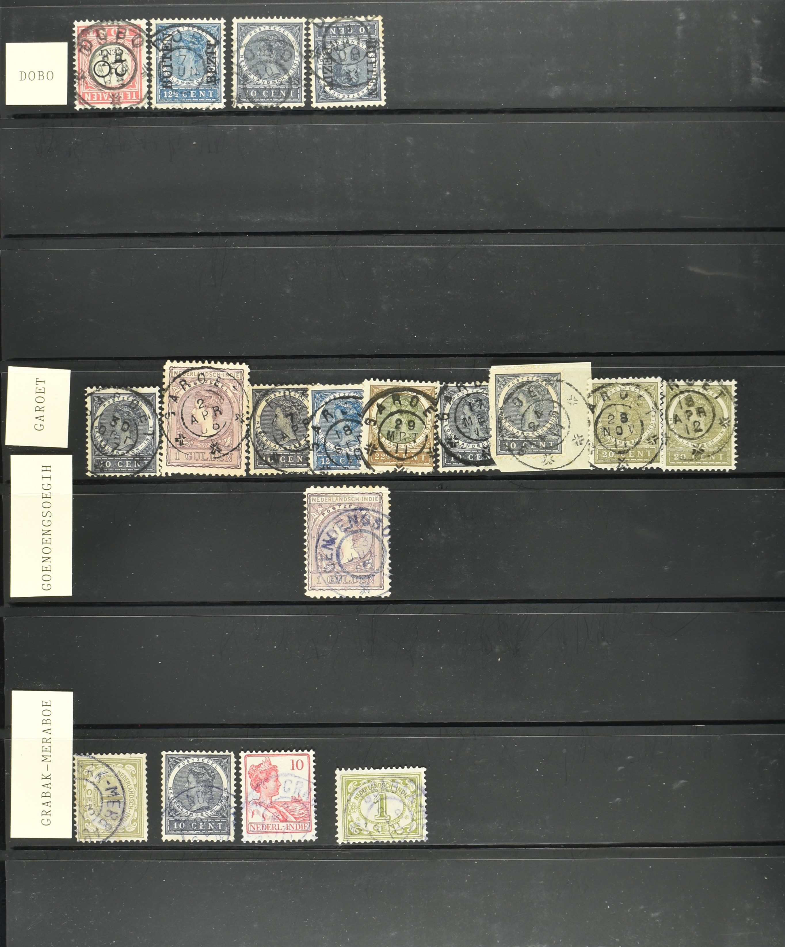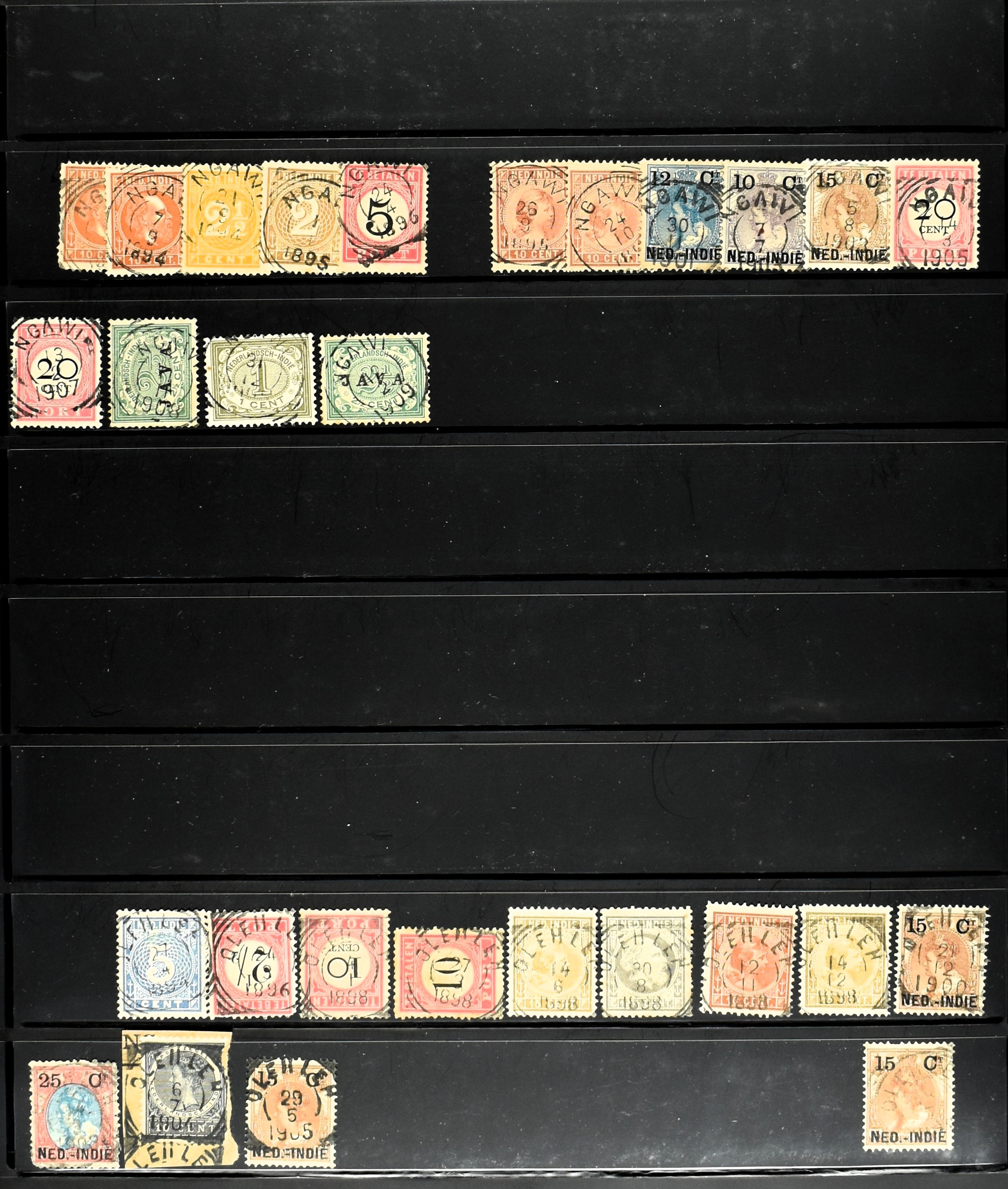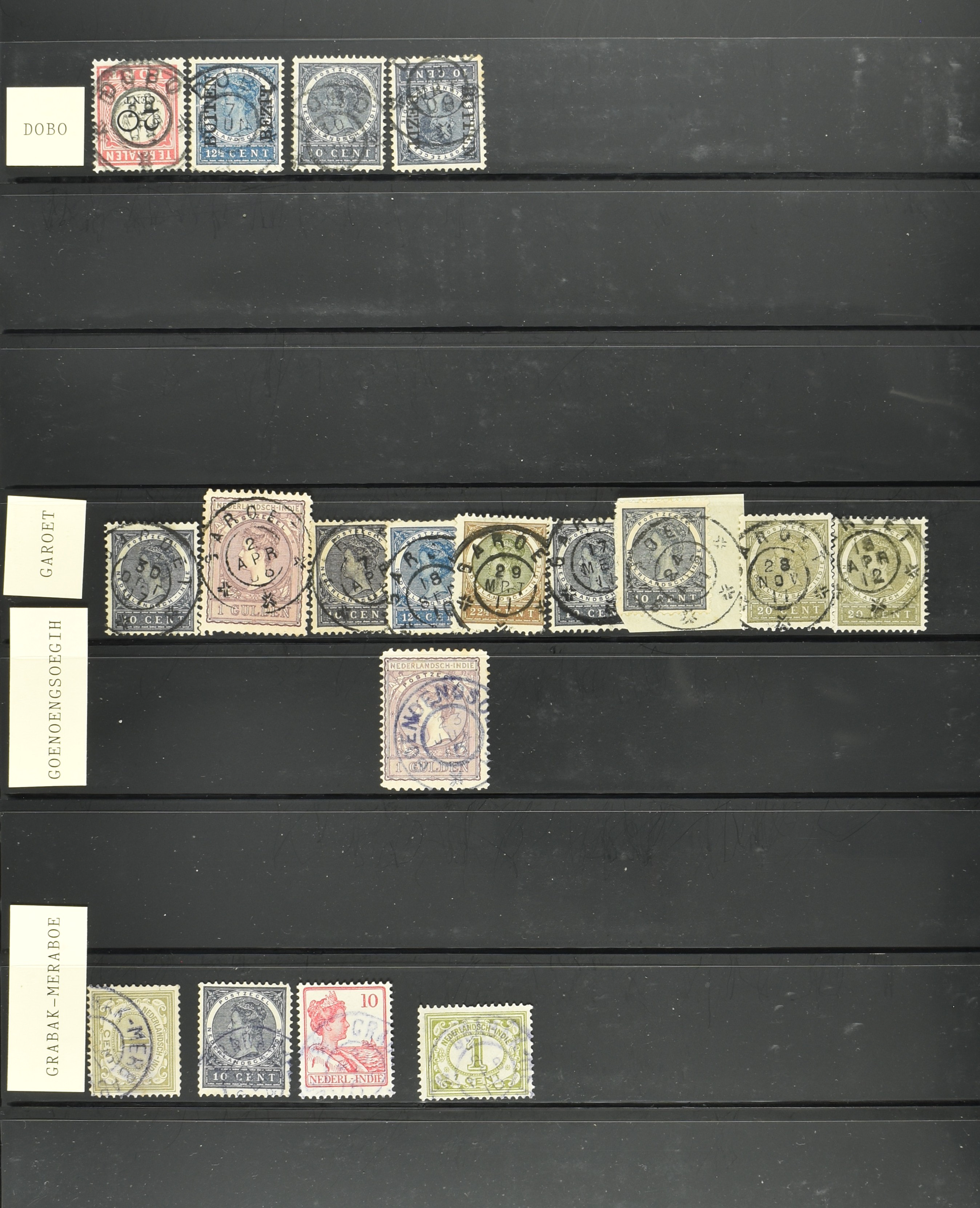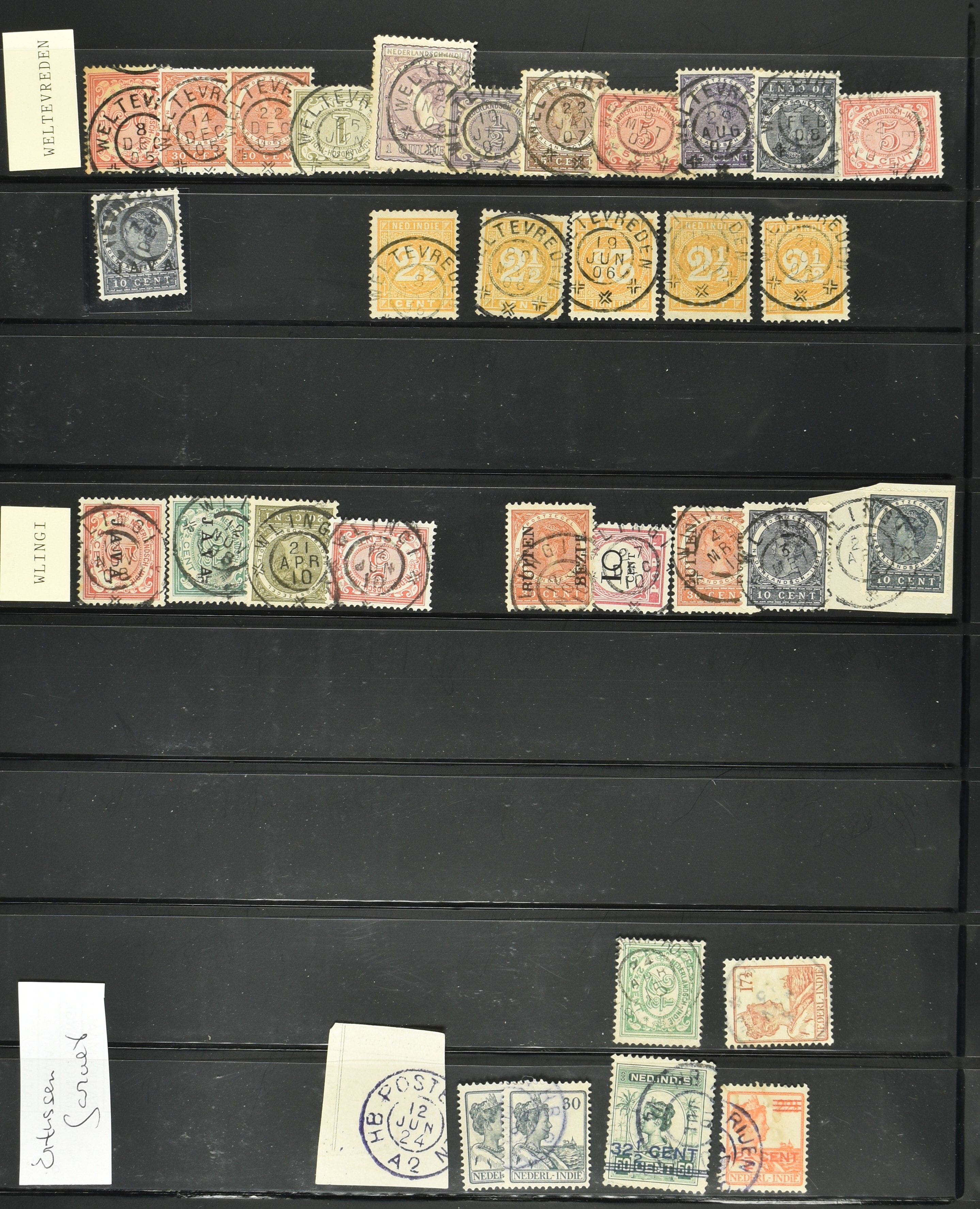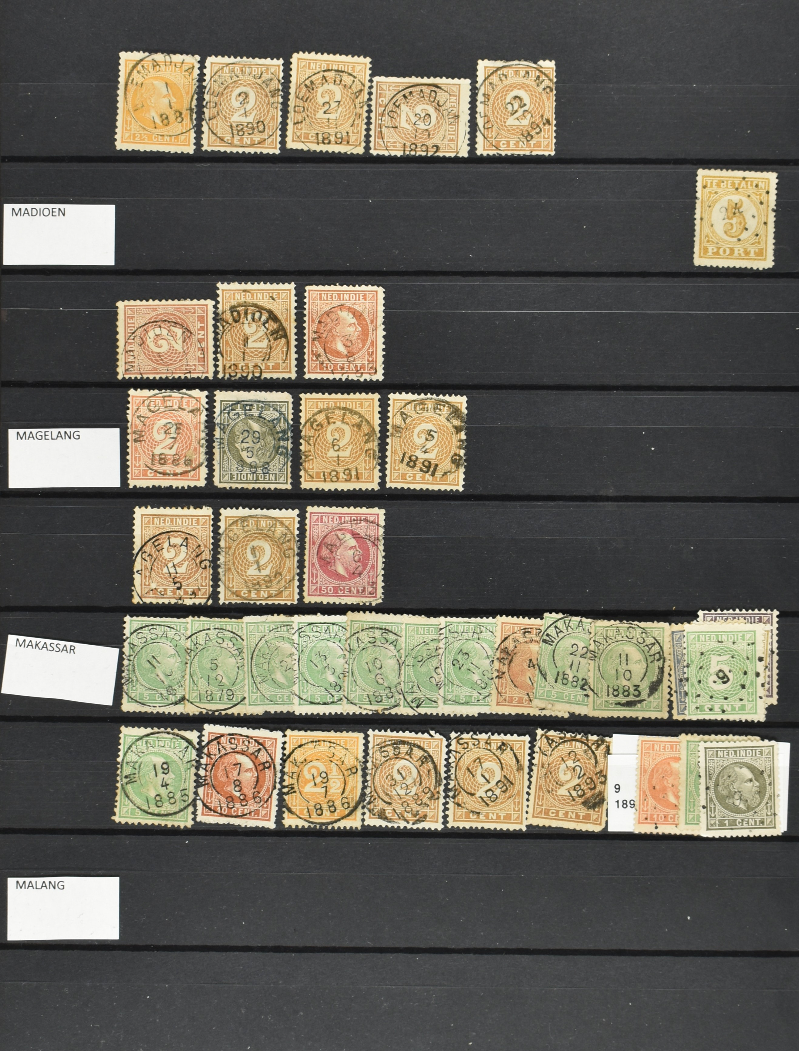 2254 imageNED.- INDIË VIERKANTSTEMPELS op Emissie Koning Willem III 1870-88, uitgebreide collectie opgezet volgens Ten Geuzendam met de diverse typen waarbij enkele blauwe, rode (Indragiri) en violette afstempelingen, Banjoewangi ook met kopstaand jaartal, per kantoor ieder type op zo veel mogelijk verschillende waarden, in uitgezochte kwaliteit met vrijwel uitsluitend volledige en veelal rechtopstaande afstempelingen op zegels in doorgaans prachtkwaliteit, overzichtelijk op alfabetische volgorde en typen opgezet in insteekboek. Wellicht overbodig te vermelden, maar het gaat om vierkantstempels en bepaalde typen die gebruikt zijn gedurende de looptijd van deze emissie, dus t/m december 1900. Alle daarna uitgegeven vierkantstempels kunnen dus niet op deze emissie voorkomen. De verzameling is een lust voor het oog, een uitgelezen kans om topkwaliteit te kopen en op te zetten, uiteraard ook geschikt voor kwaliteitsverbetering, datastudie (vbd, lbd) of detailleren (Image) (Image2) (Image3) (Image4) (Image5) (Image6) (Image7) (Image8) (Image9) (Image10) (Image11) (Image12) (Image13) (Image14) (Image15) (Image16) (All Images)