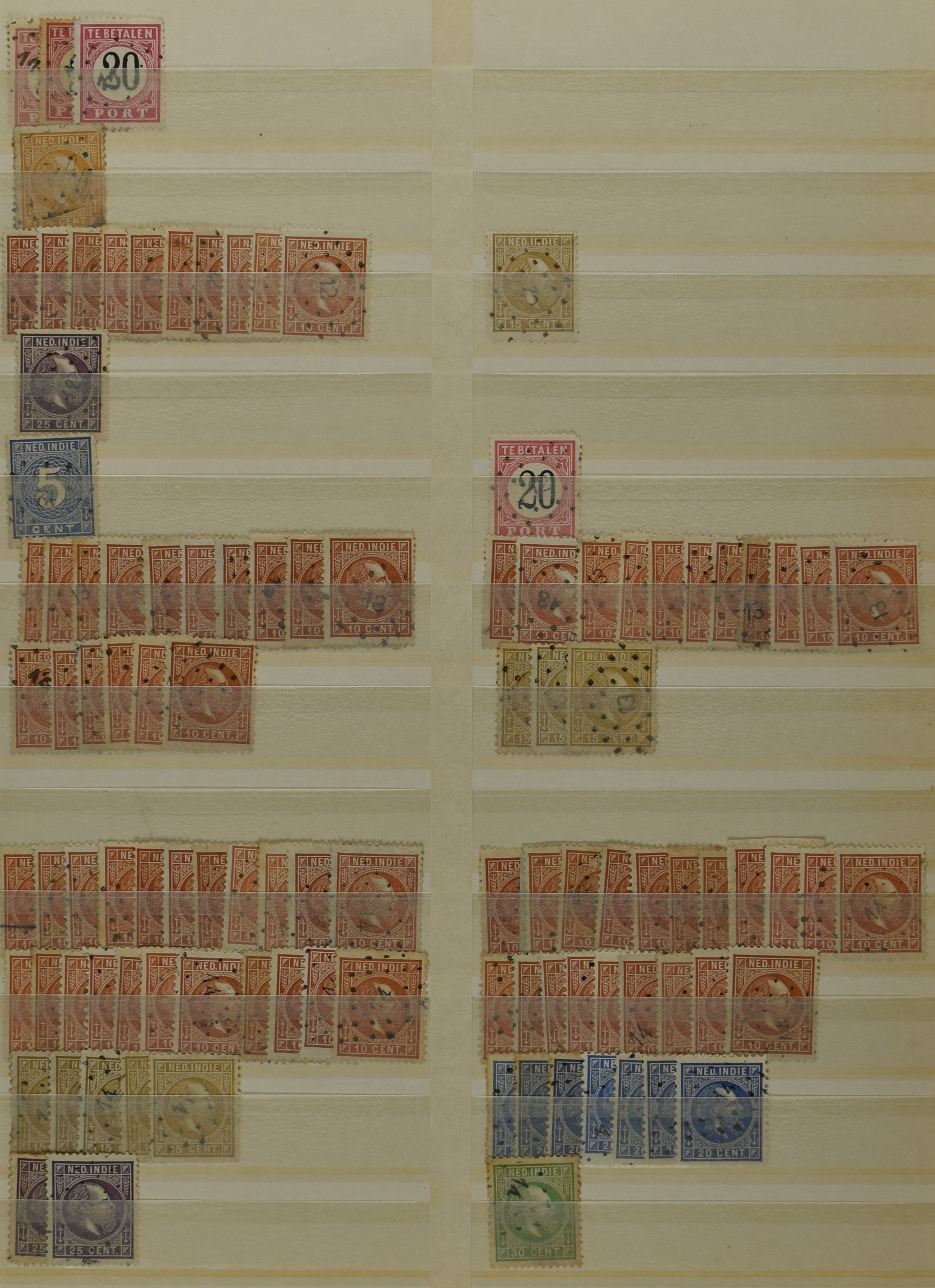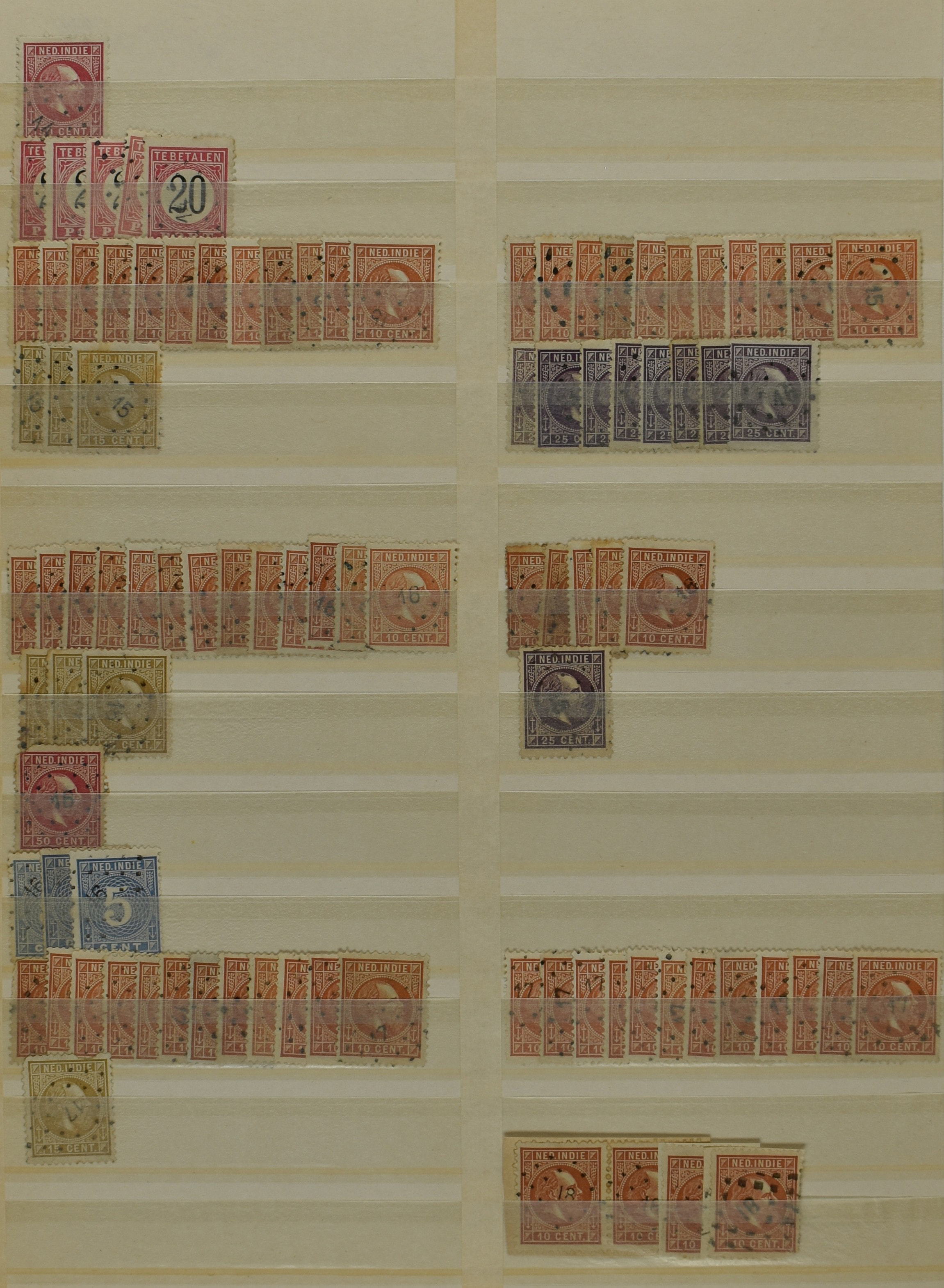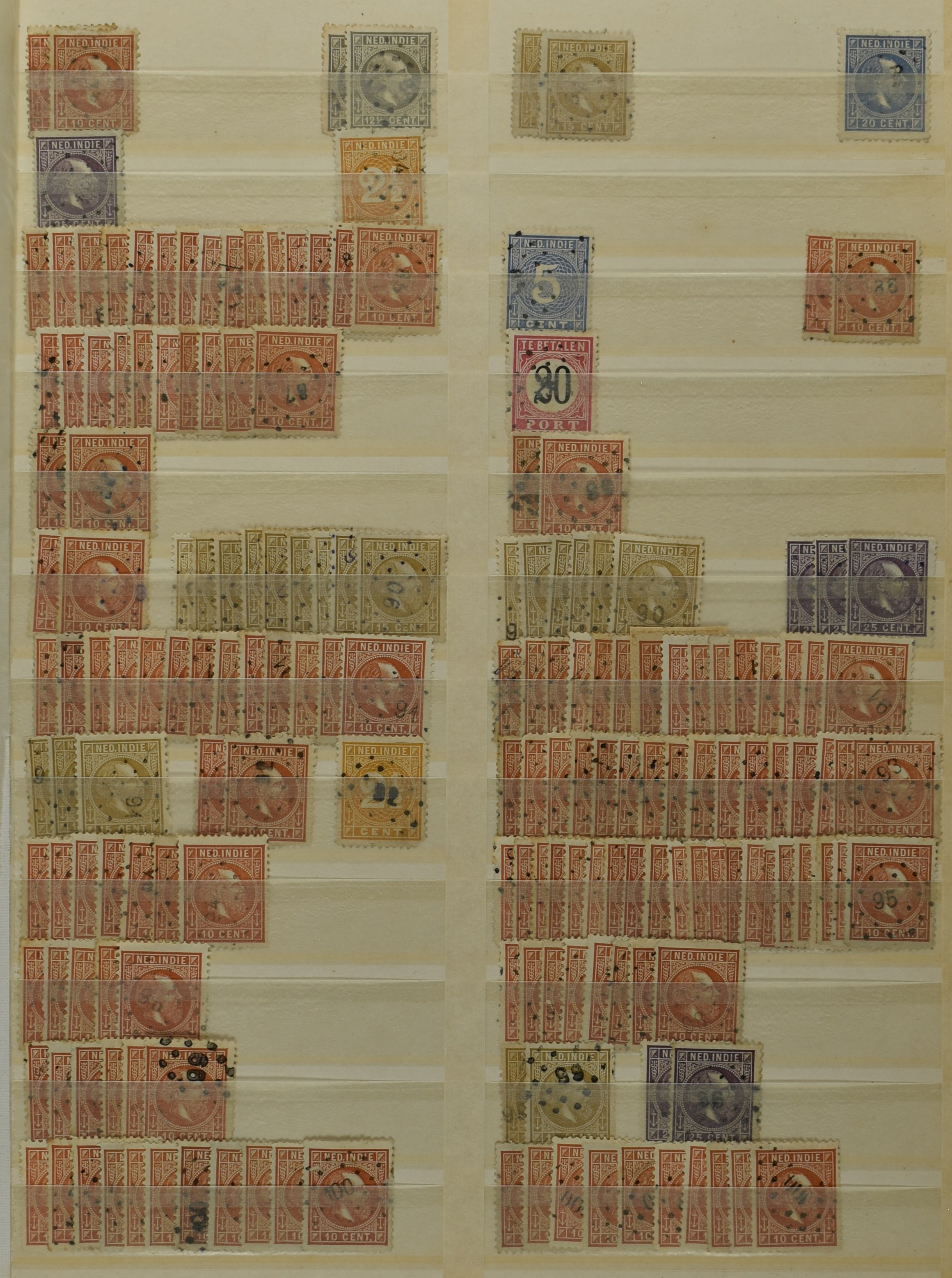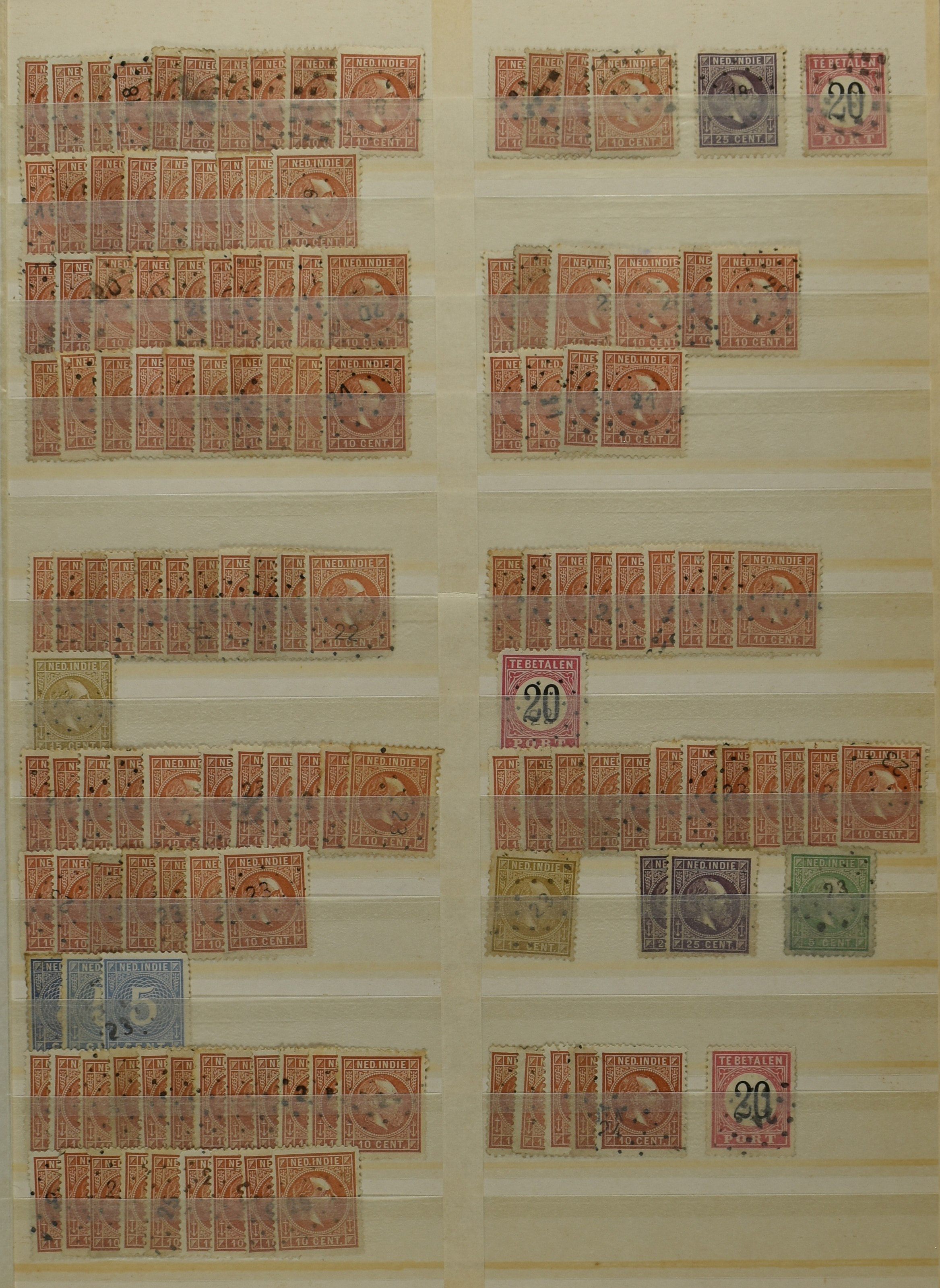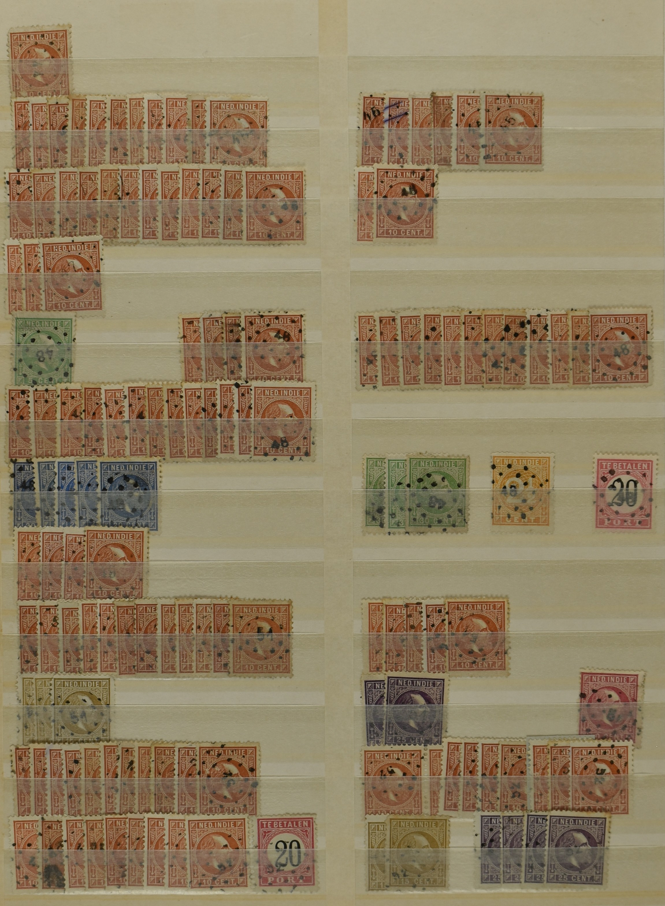2253 imageNED.- INDIË PUNTSTEMPELS, doublettenvoorraad tussen nummers 1-120 op emissies Koning, Cijfer en Port met diverse waarden, typen, kleuren, veel mooie en duidelijke afstempelingen, in insteekboek. Interessant voor zowel verzamelaar als detaillist (Image) (Image2) (Image3) (Image4) (Image5) (Image6) (Image7) (Image8) (Image9) (Image10) (Image11) (Image12) (Image13) (Image14) (Image15) (Image16) (Image17) (Image18) (All Images)