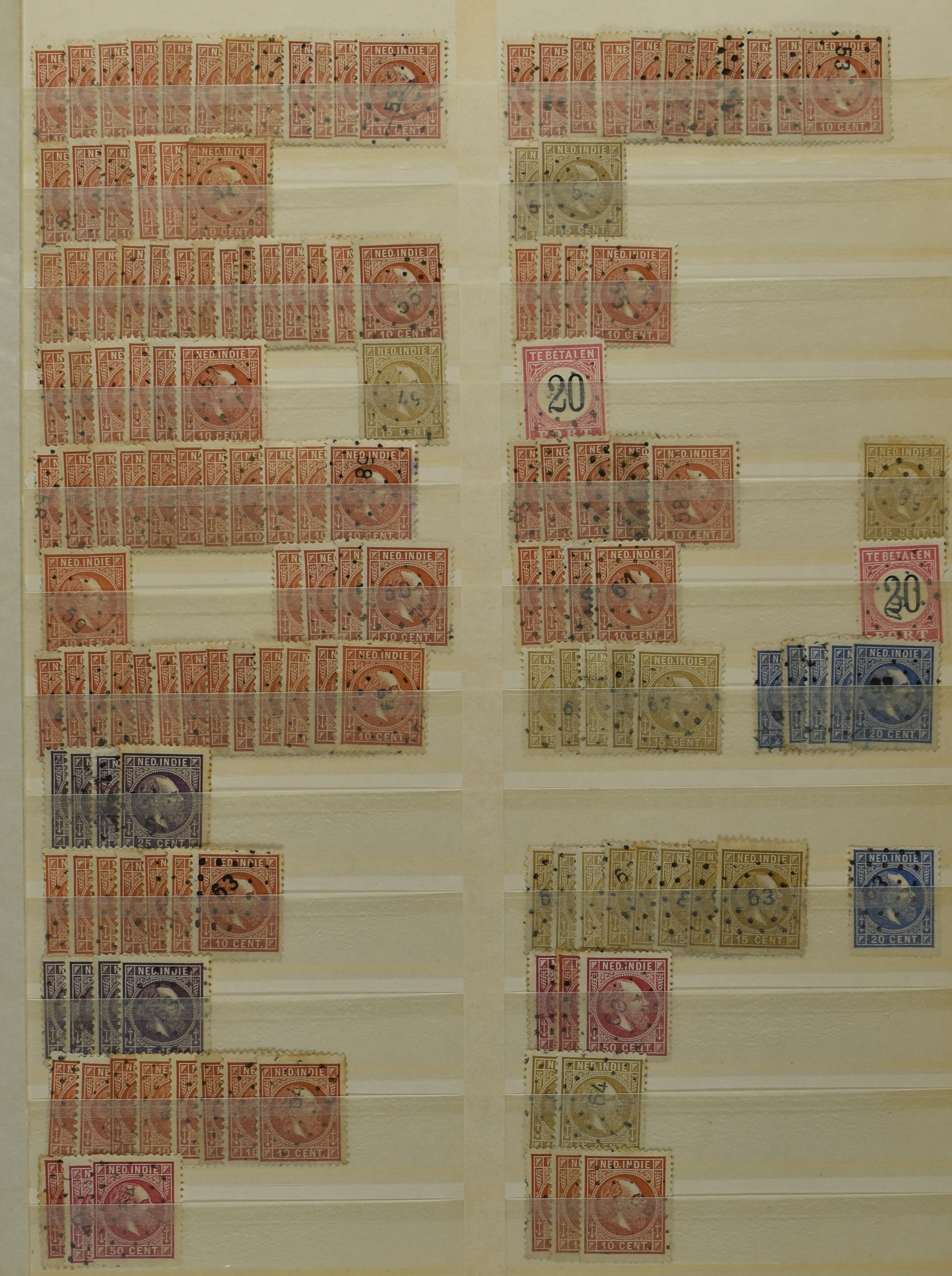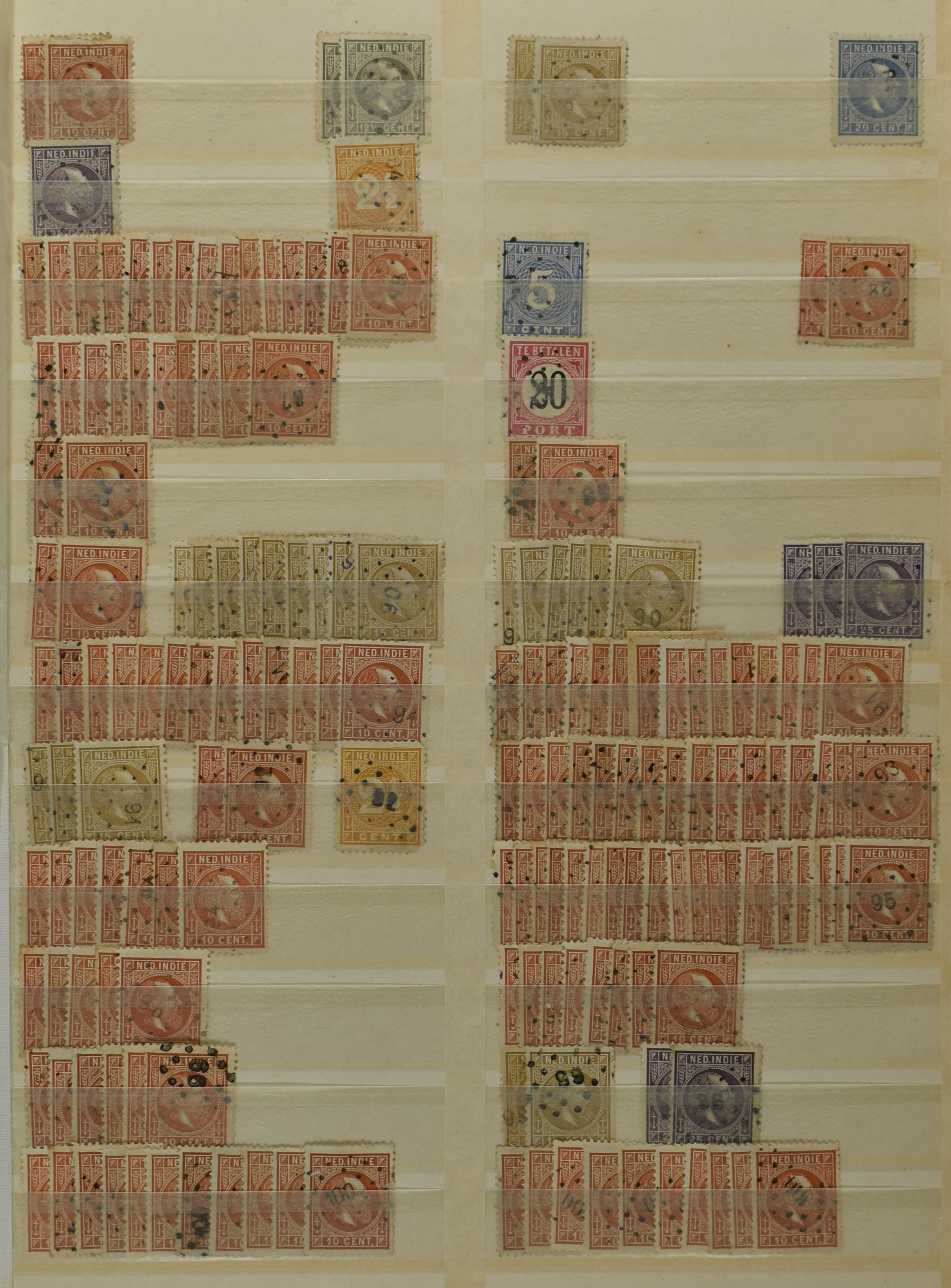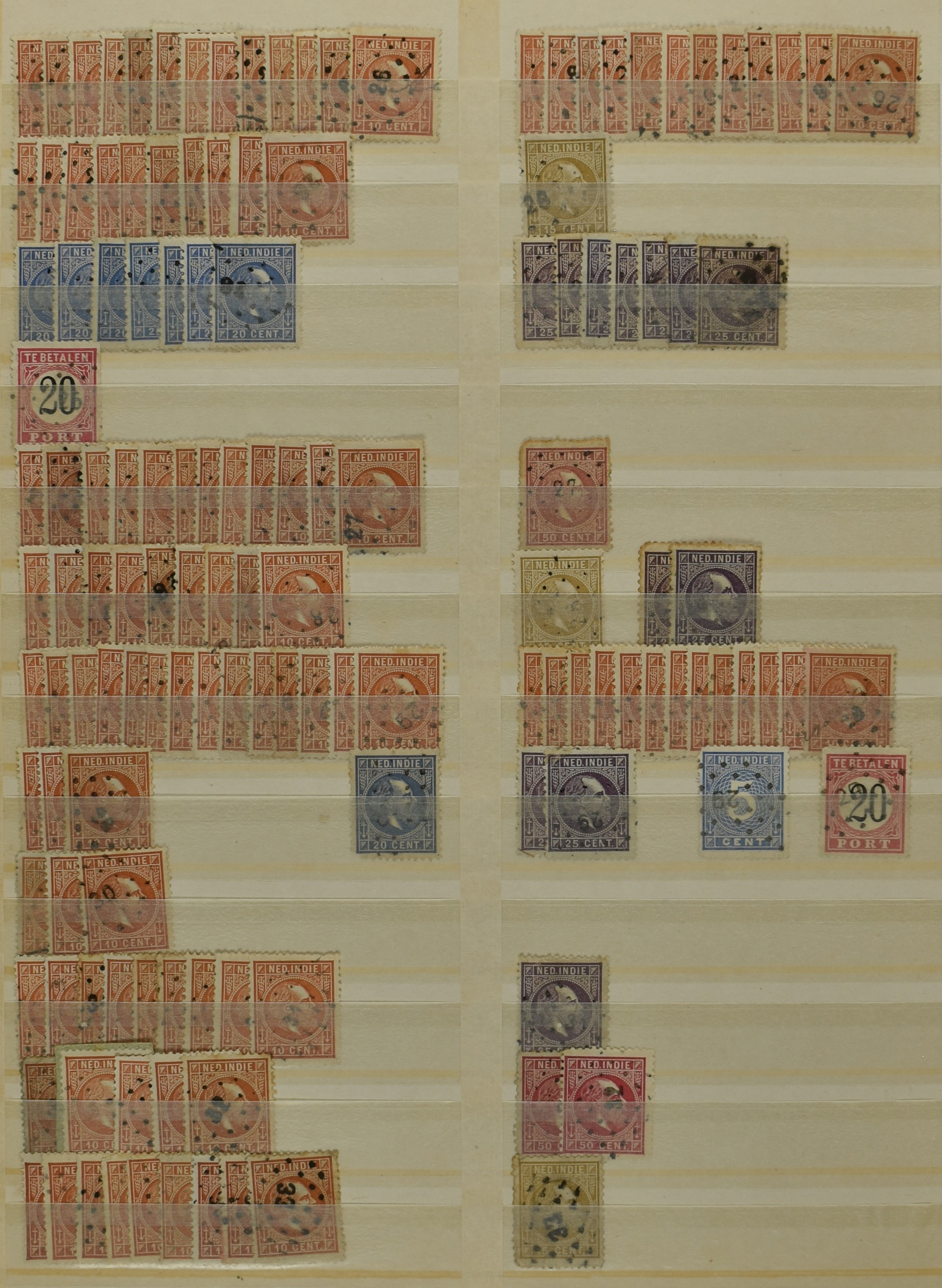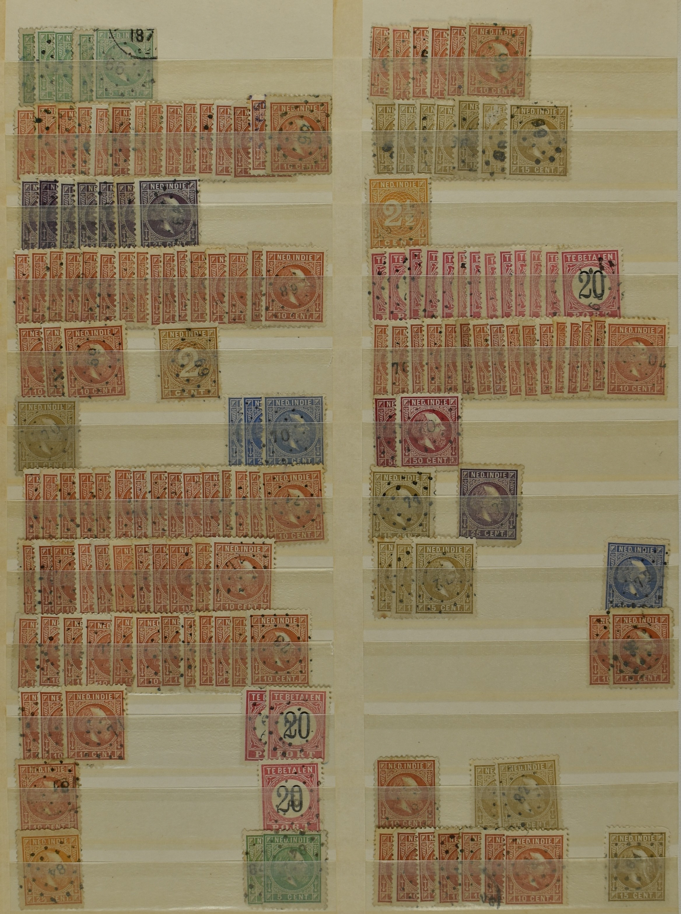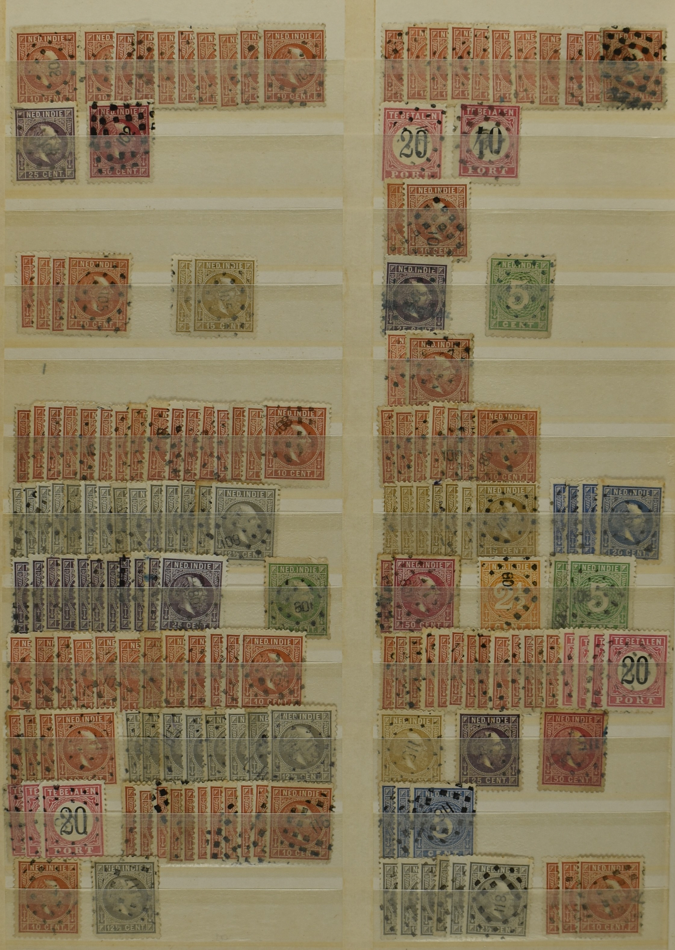 2253 imageNED.- INDIË PUNTSTEMPELS, doublettenvoorraad tussen nummers 1-120 op emissies Koning, Cijfer en Port met diverse waarden, typen, kleuren, veel mooie en duidelijke afstempelingen, in insteekboek. Interessant voor zowel verzamelaar als detaillist (Image) (Image2) (Image3) (Image4) (Image5) (Image6) (Image7) (Image8) (Image9) (Image10) (Image11) (Image12) (Image13) (Image14) (Image15) (Image16) (Image17) (Image18) (All Images)
