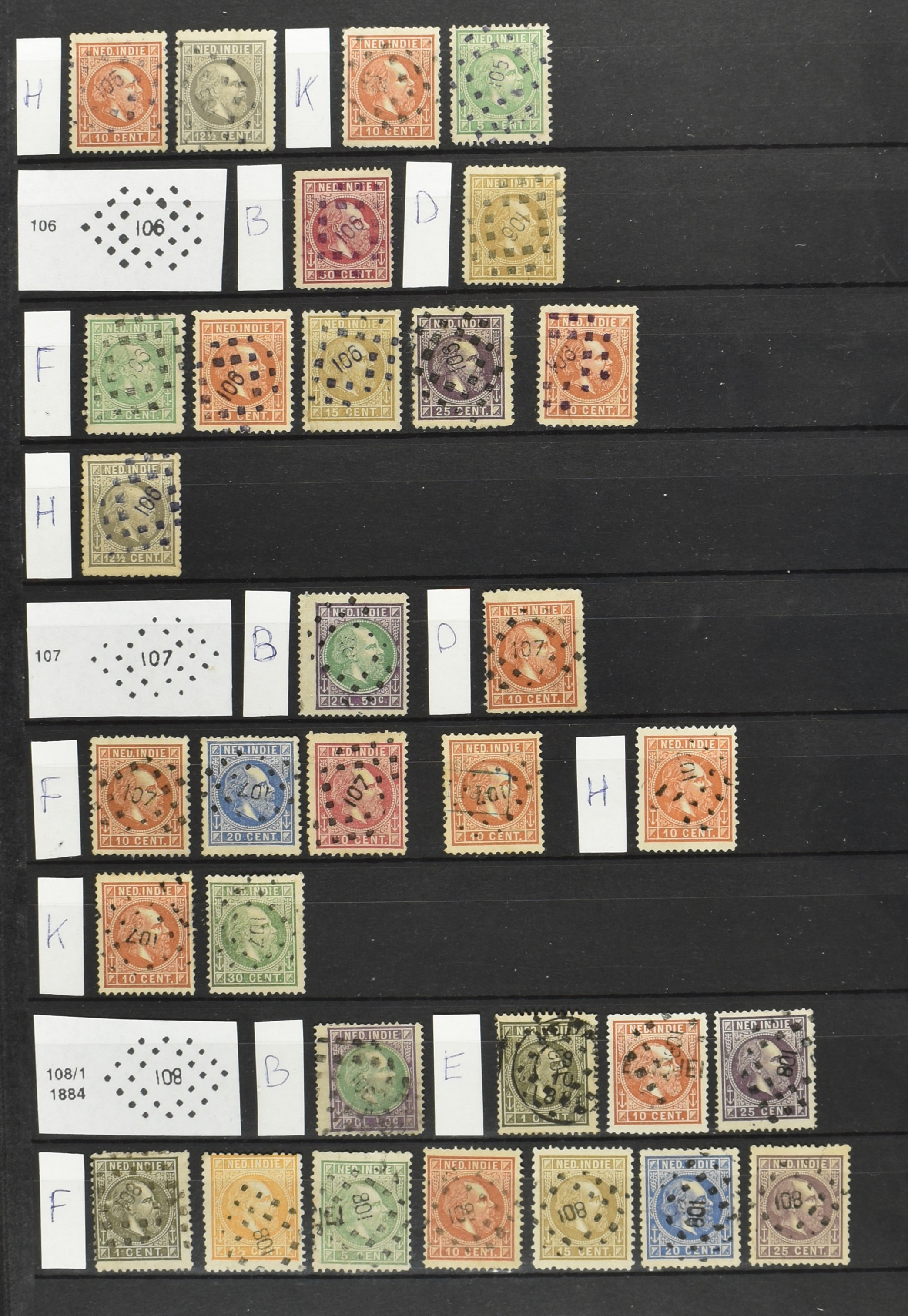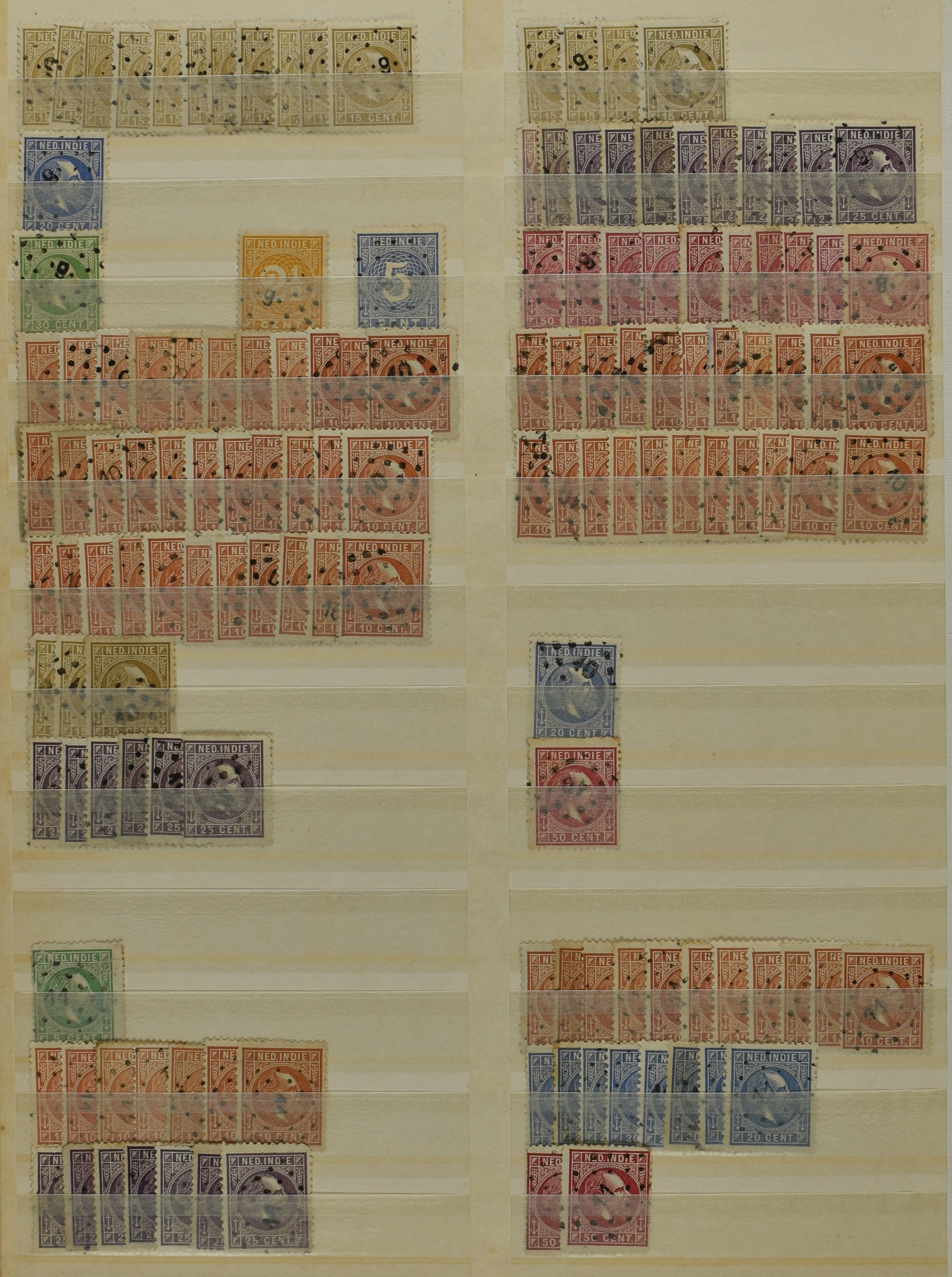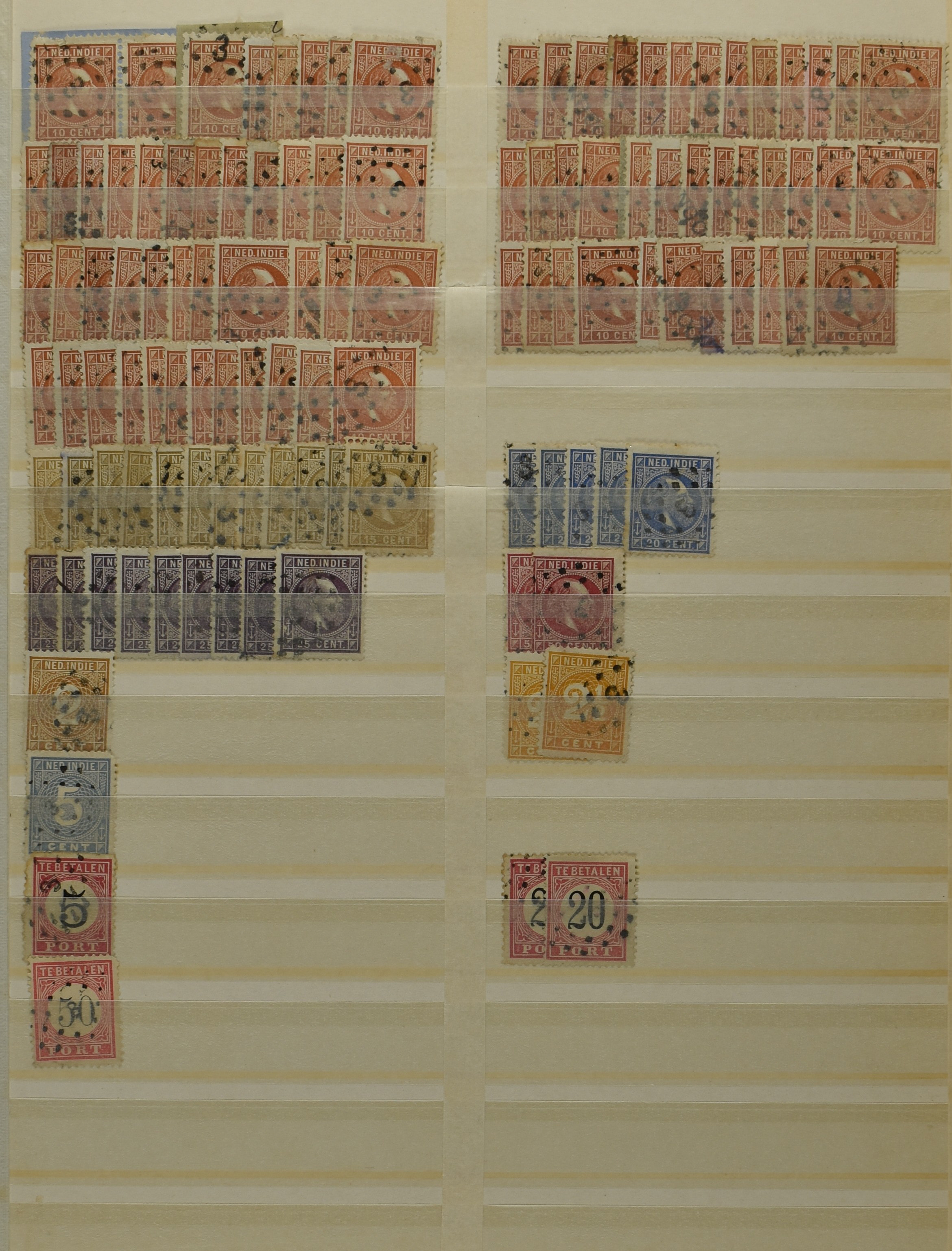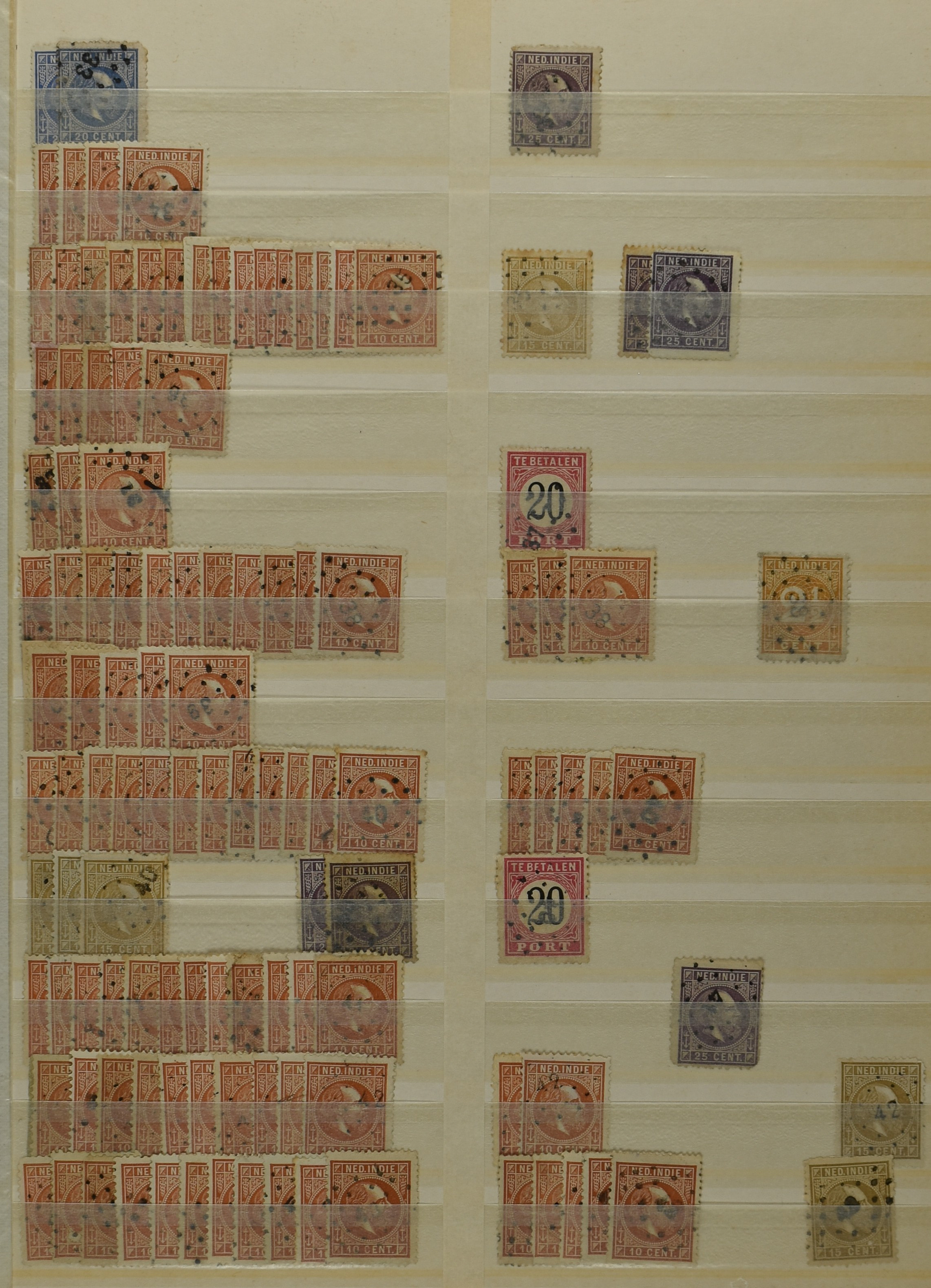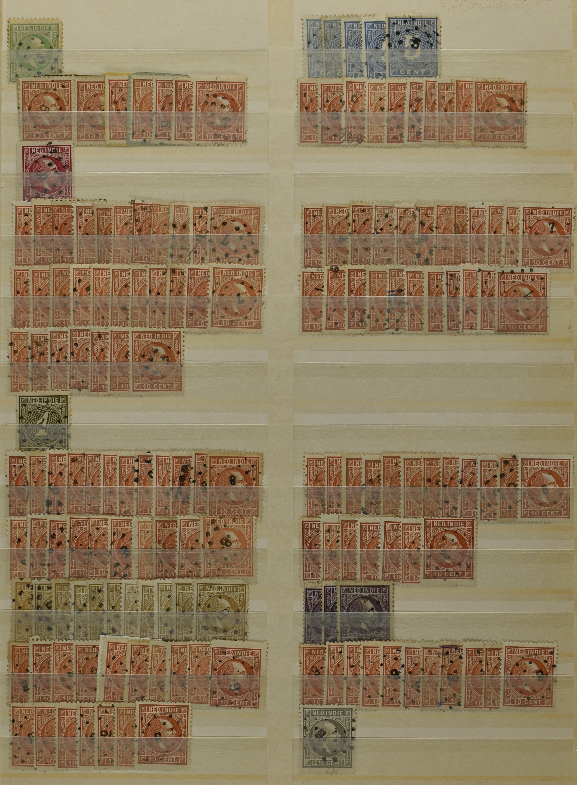 2253 imageNED.- INDIË PUNTSTEMPELS, doublettenvoorraad tussen nummers 1-120 op emissies Koning, Cijfer en Port met diverse waarden, typen, kleuren, veel mooie en duidelijke afstempelingen, in insteekboek. Interessant voor zowel verzamelaar als detaillist (Image) (Image2) (Image3) (Image4) (Image5) (Image6) (Image7) (Image8) (Image9) (Image10) (Image11) (Image12) (Image13) (Image14) (Image15) (Image16) (Image17) (Image18) (All Images)