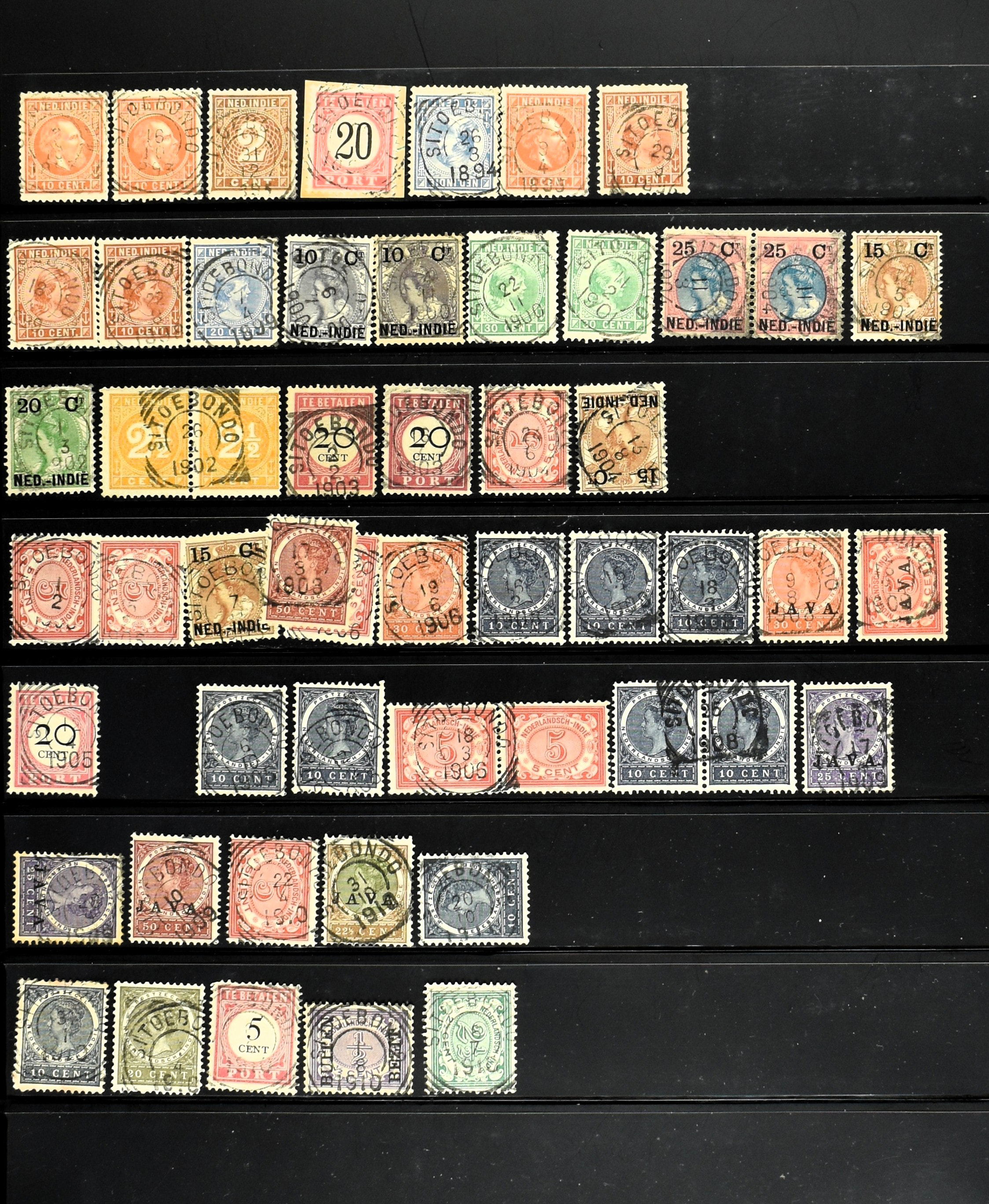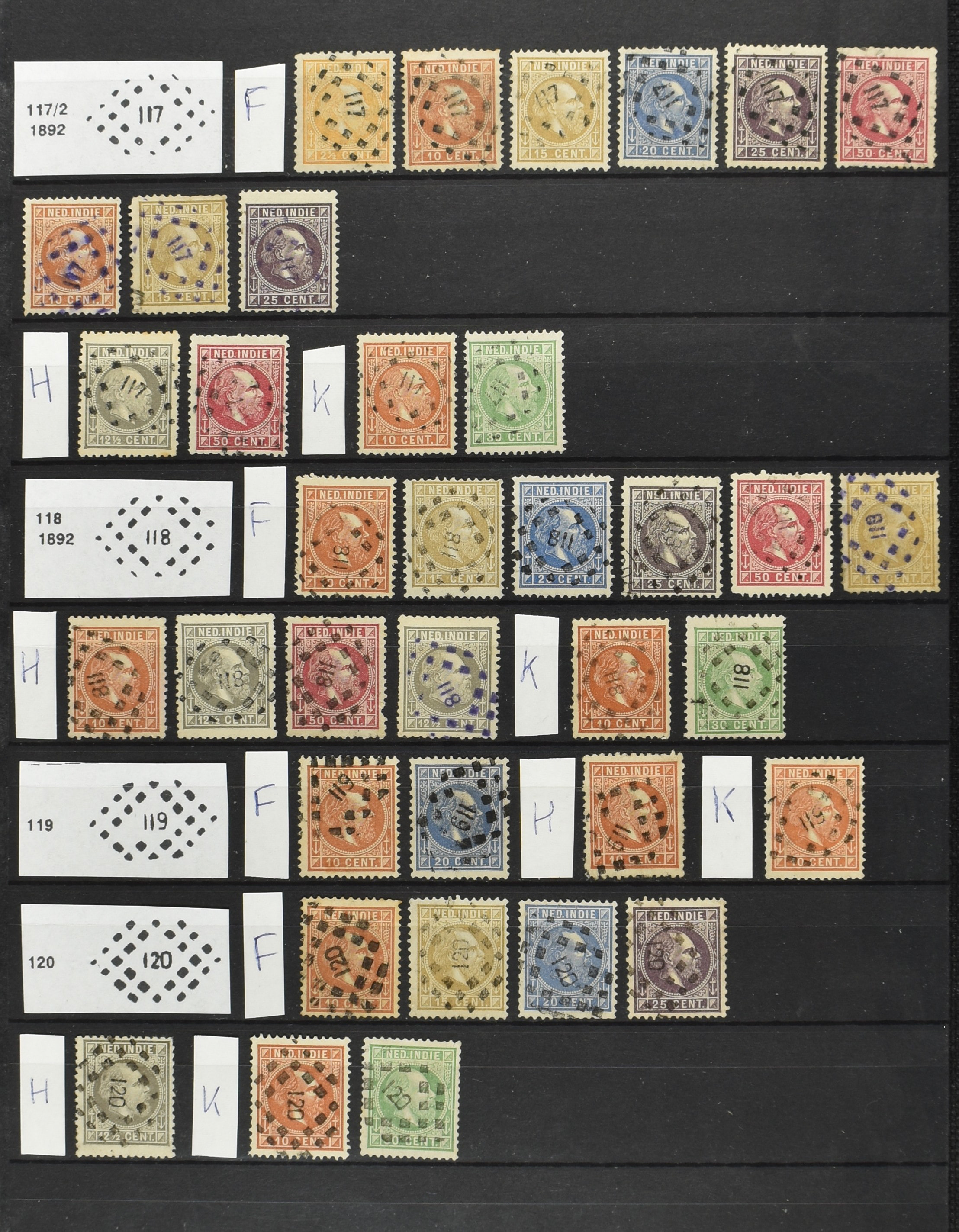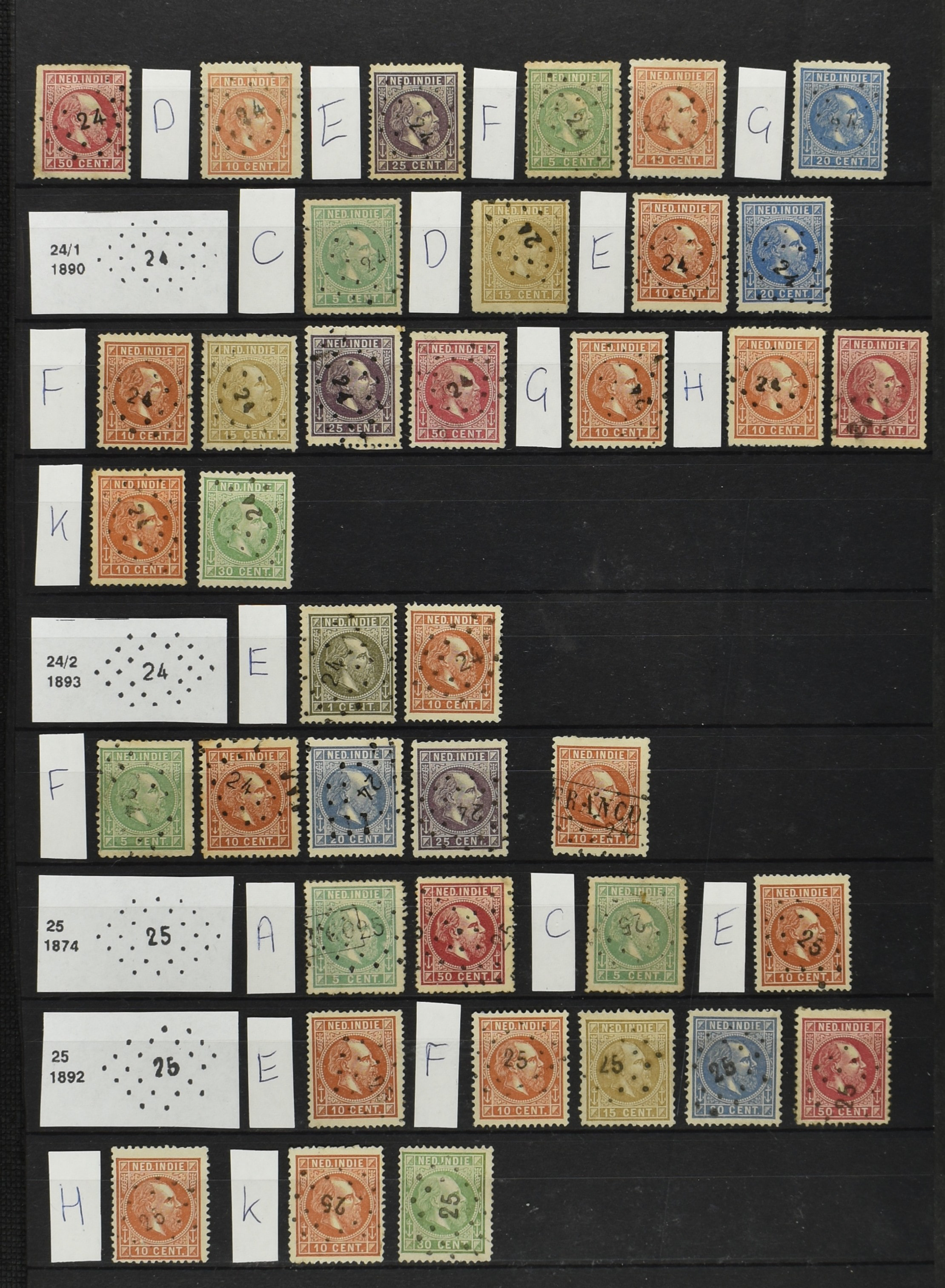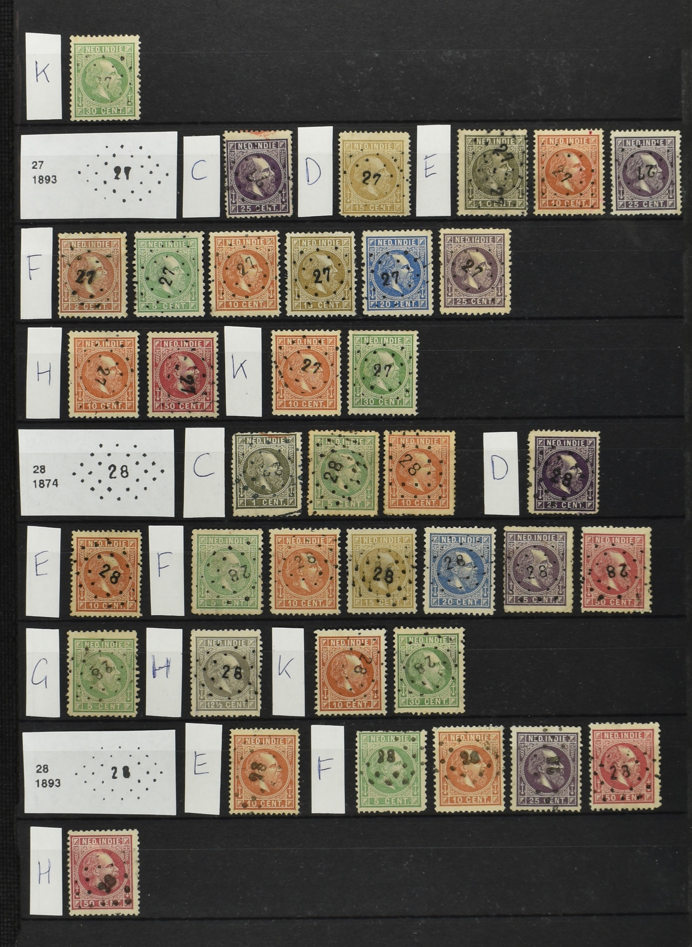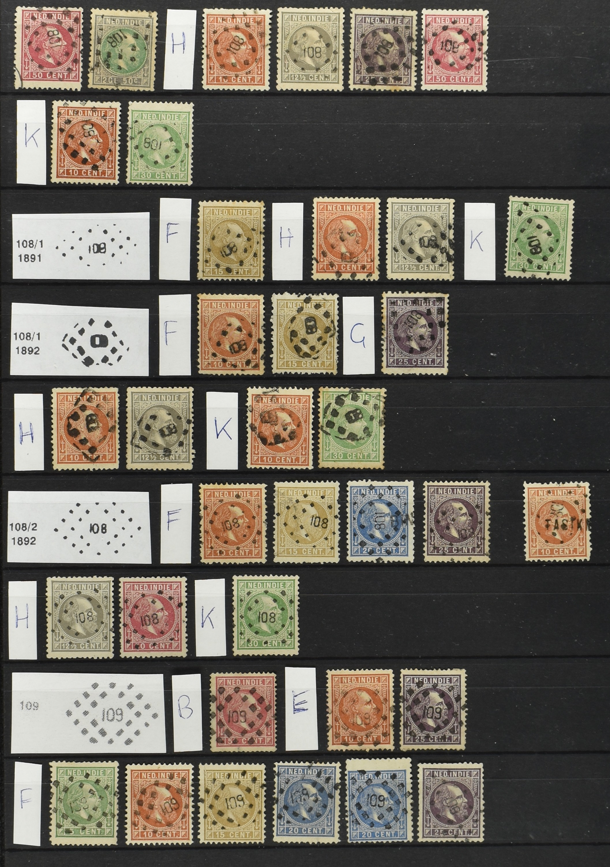 2253 imageNED.- INDIË PUNTSTEMPELS, doublettenvoorraad tussen nummers 1-120 op emissies Koning, Cijfer en Port met diverse waarden, typen, kleuren, veel mooie en duidelijke afstempelingen, in insteekboek. Interessant voor zowel verzamelaar als detaillist (Image) (Image2) (Image3) (Image4) (Image5) (Image6) (Image7) (Image8) (Image9) (Image10) (Image11) (Image12) (Image13) (Image14) (Image15) (Image16) (Image17) (Image18) (All Images)