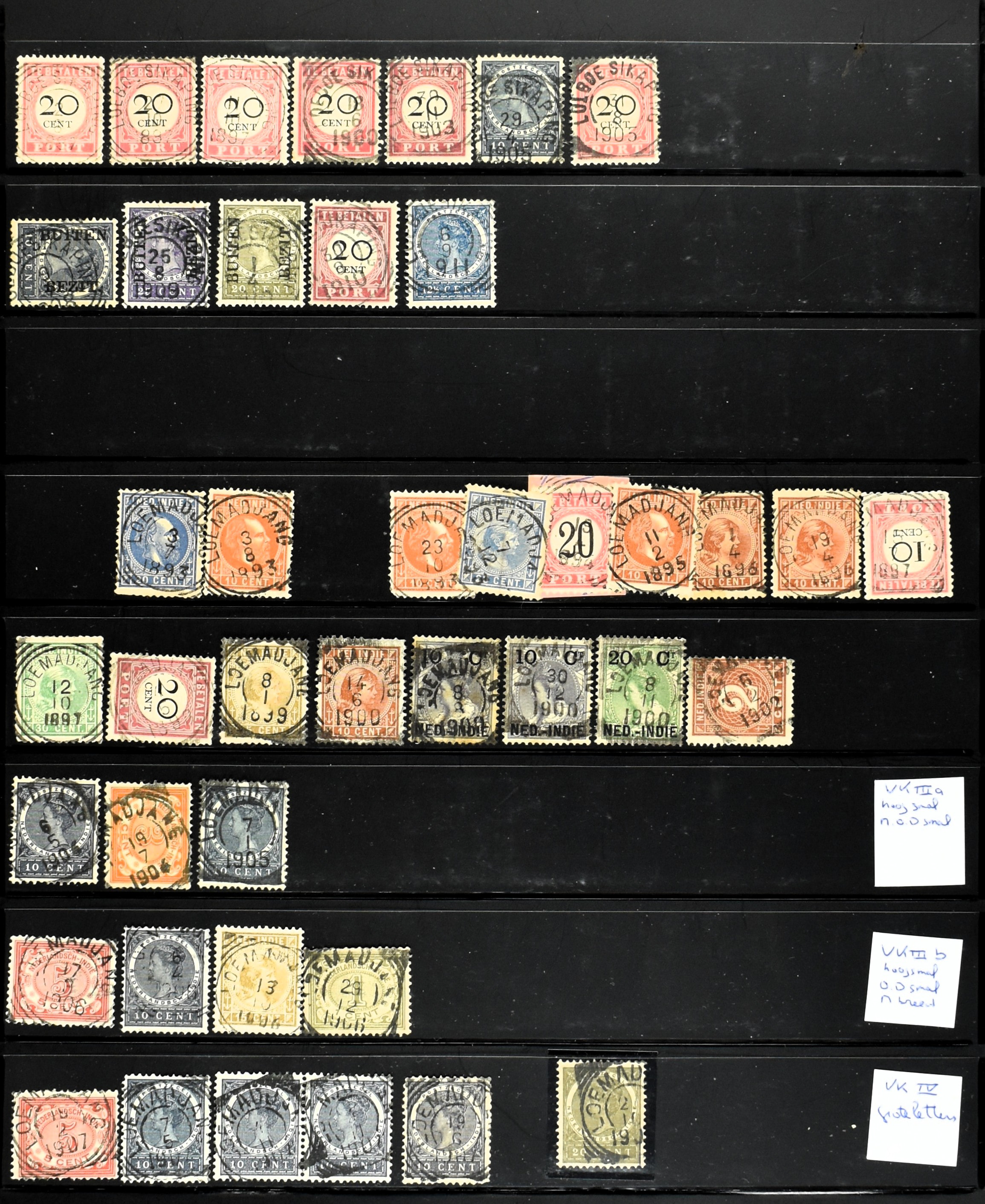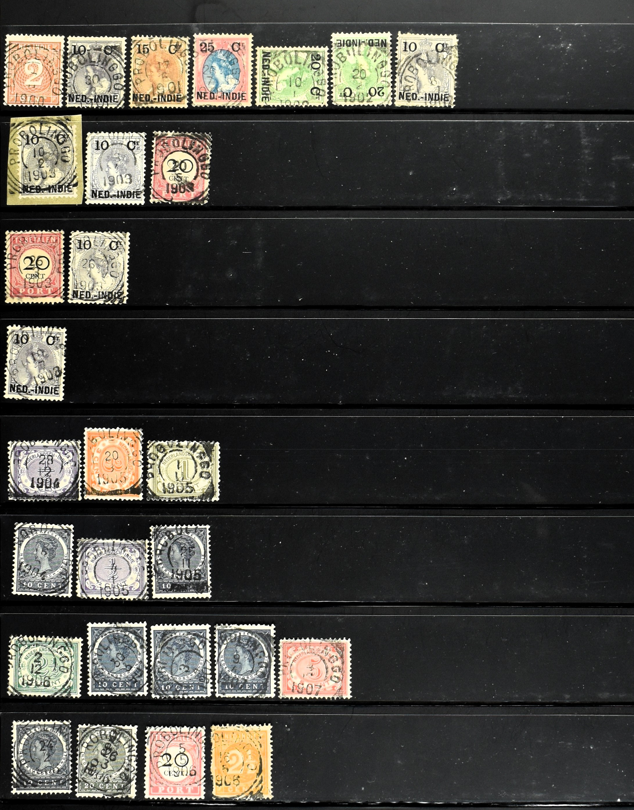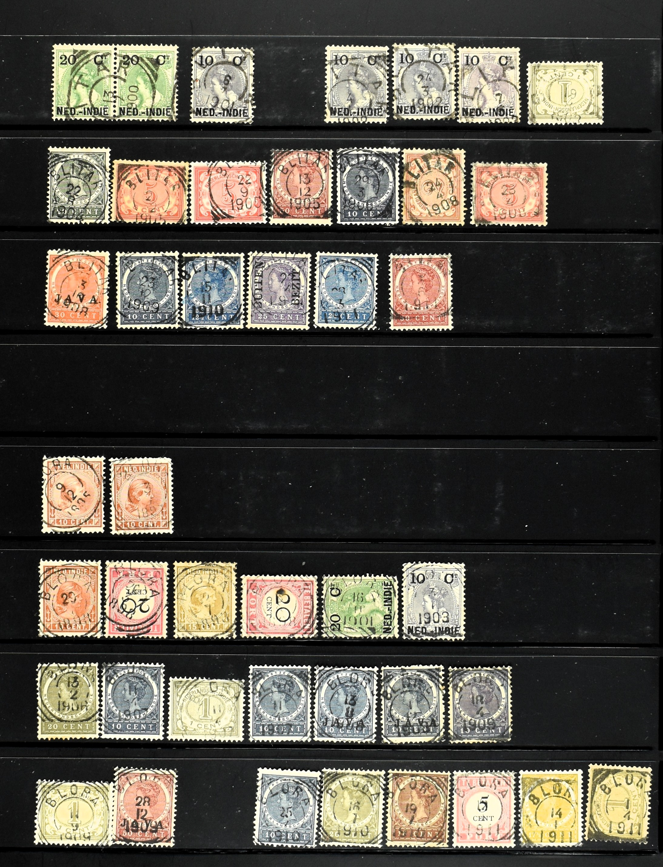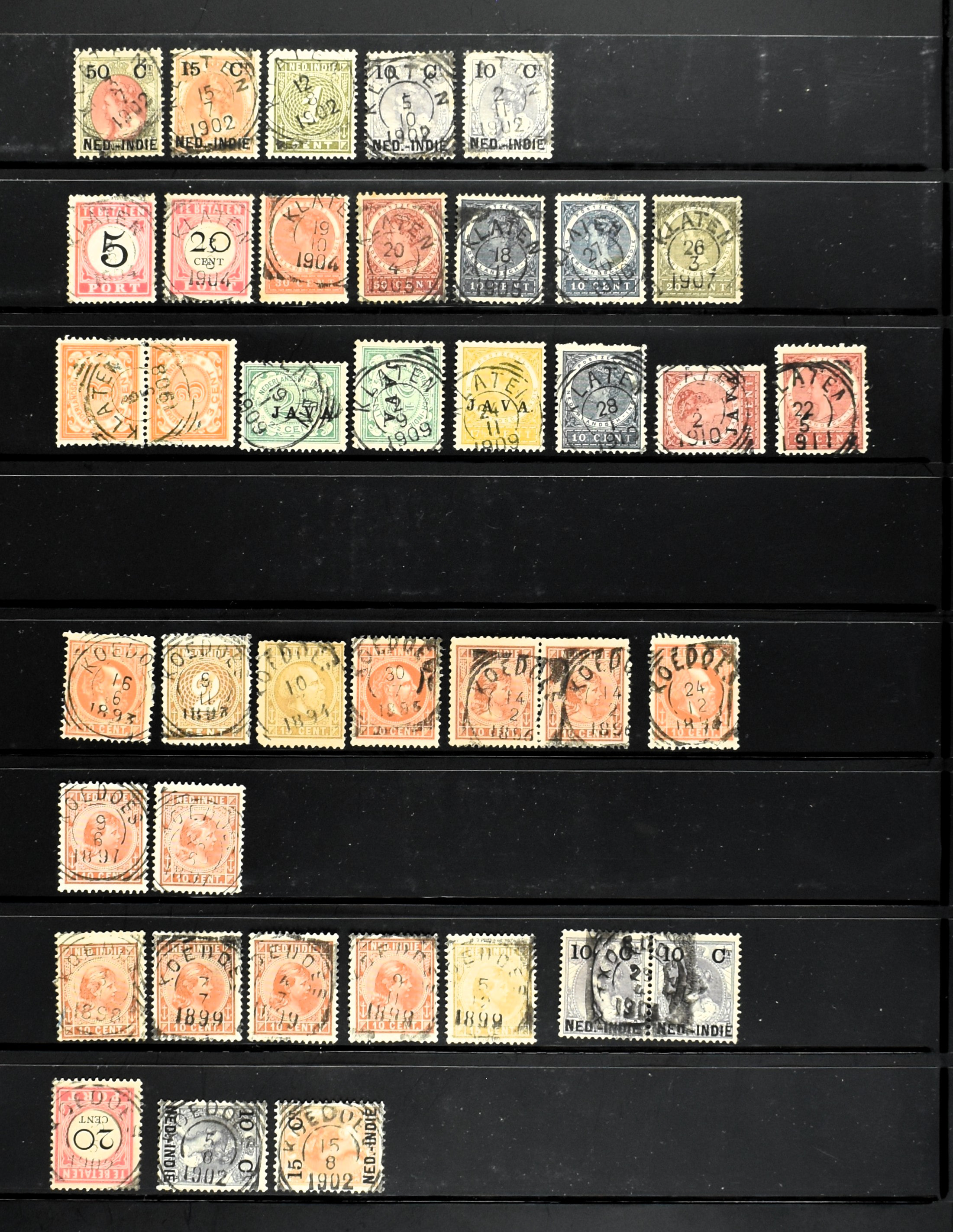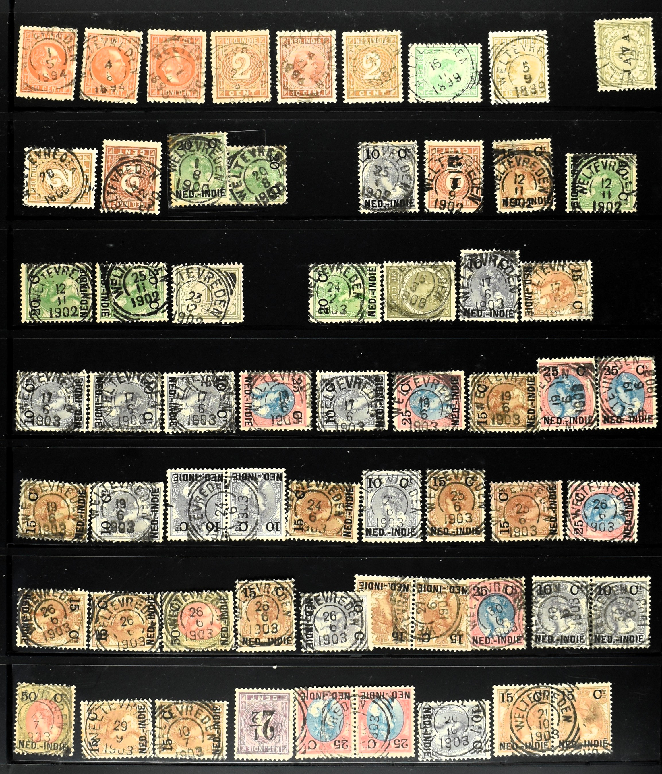 2253 imageNED.- INDIË PUNTSTEMPELS, doublettenvoorraad tussen nummers 1-120 op emissies Koning, Cijfer en Port met diverse waarden, typen, kleuren, veel mooie en duidelijke afstempelingen, in insteekboek. Interessant voor zowel verzamelaar als detaillist (Image) (Image2) (Image3) (Image4) (Image5) (Image6) (Image7) (Image8) (Image9) (Image10) (Image11) (Image12) (Image13) (Image14) (Image15) (Image16) (Image17) (Image18) (All Images)