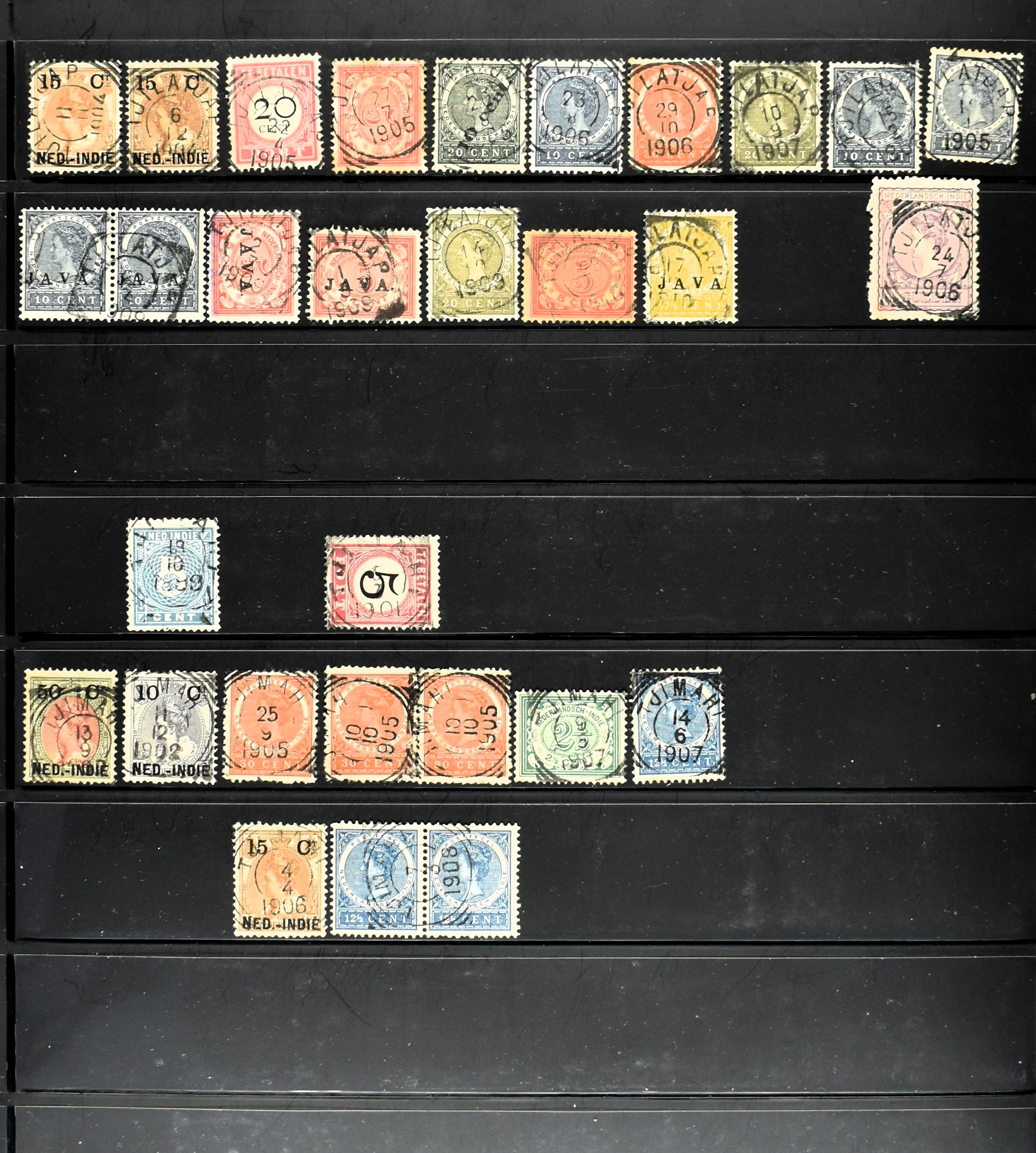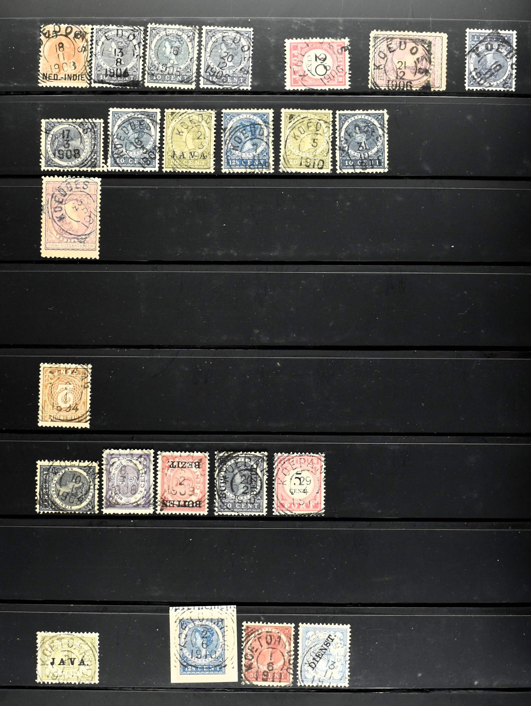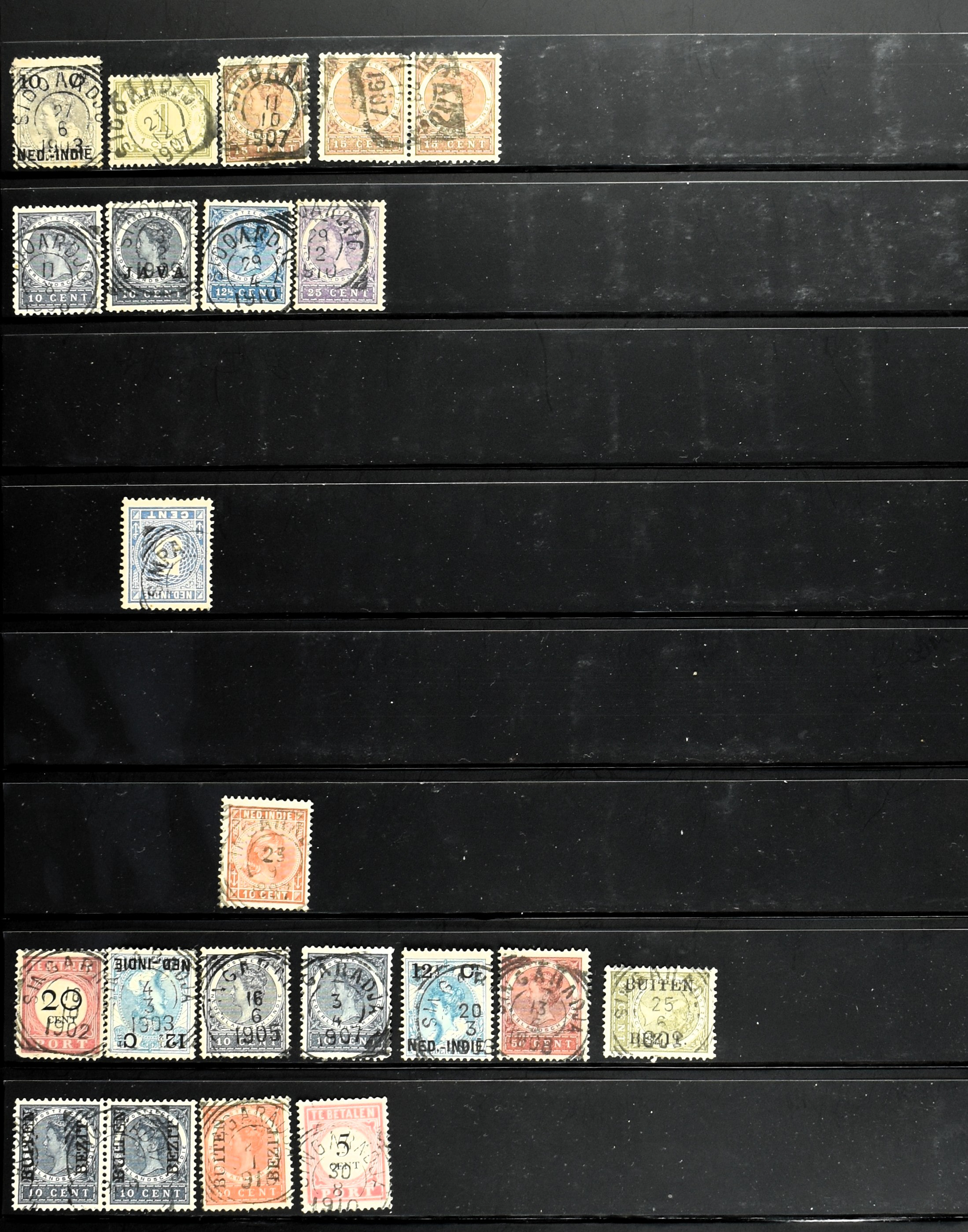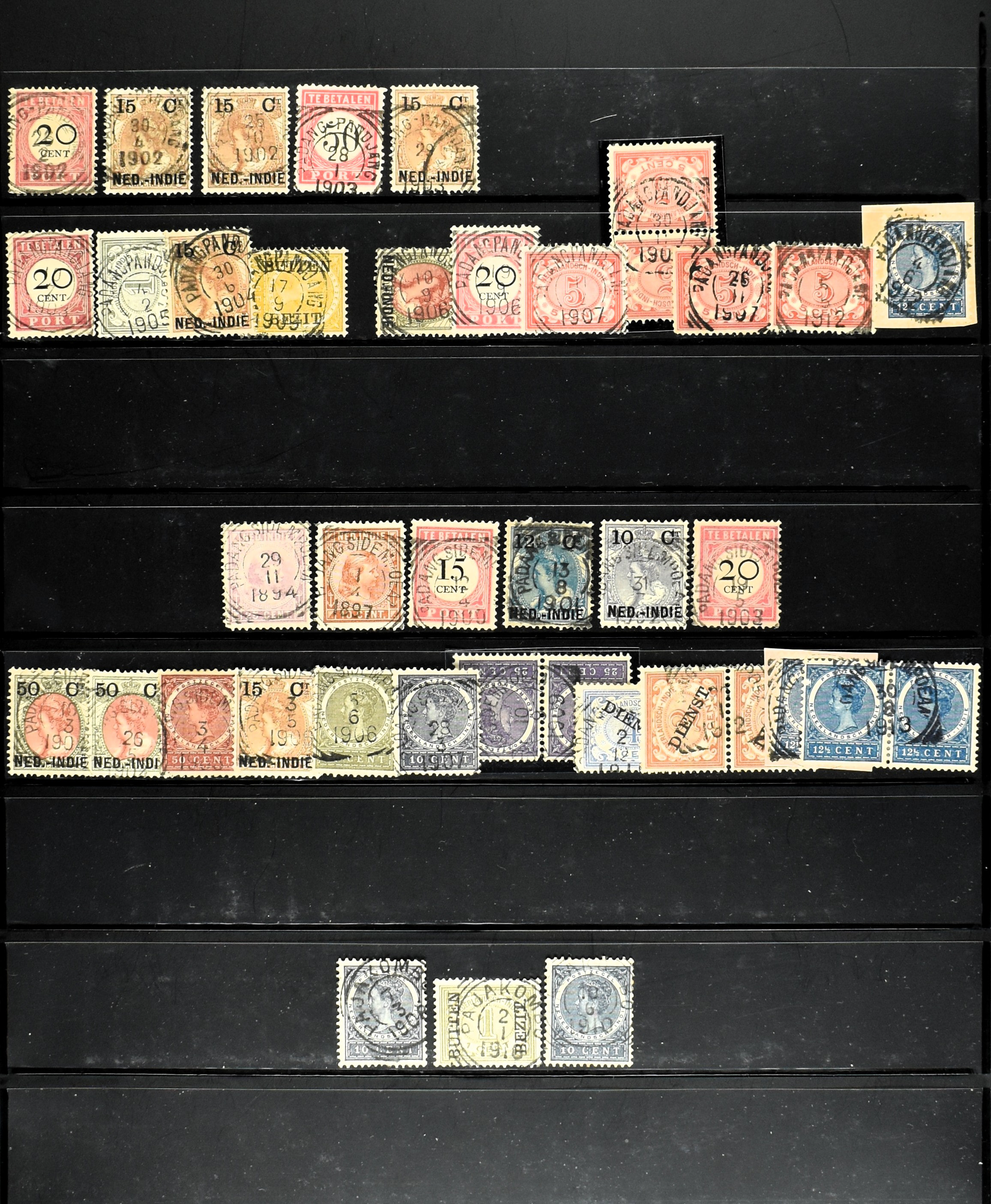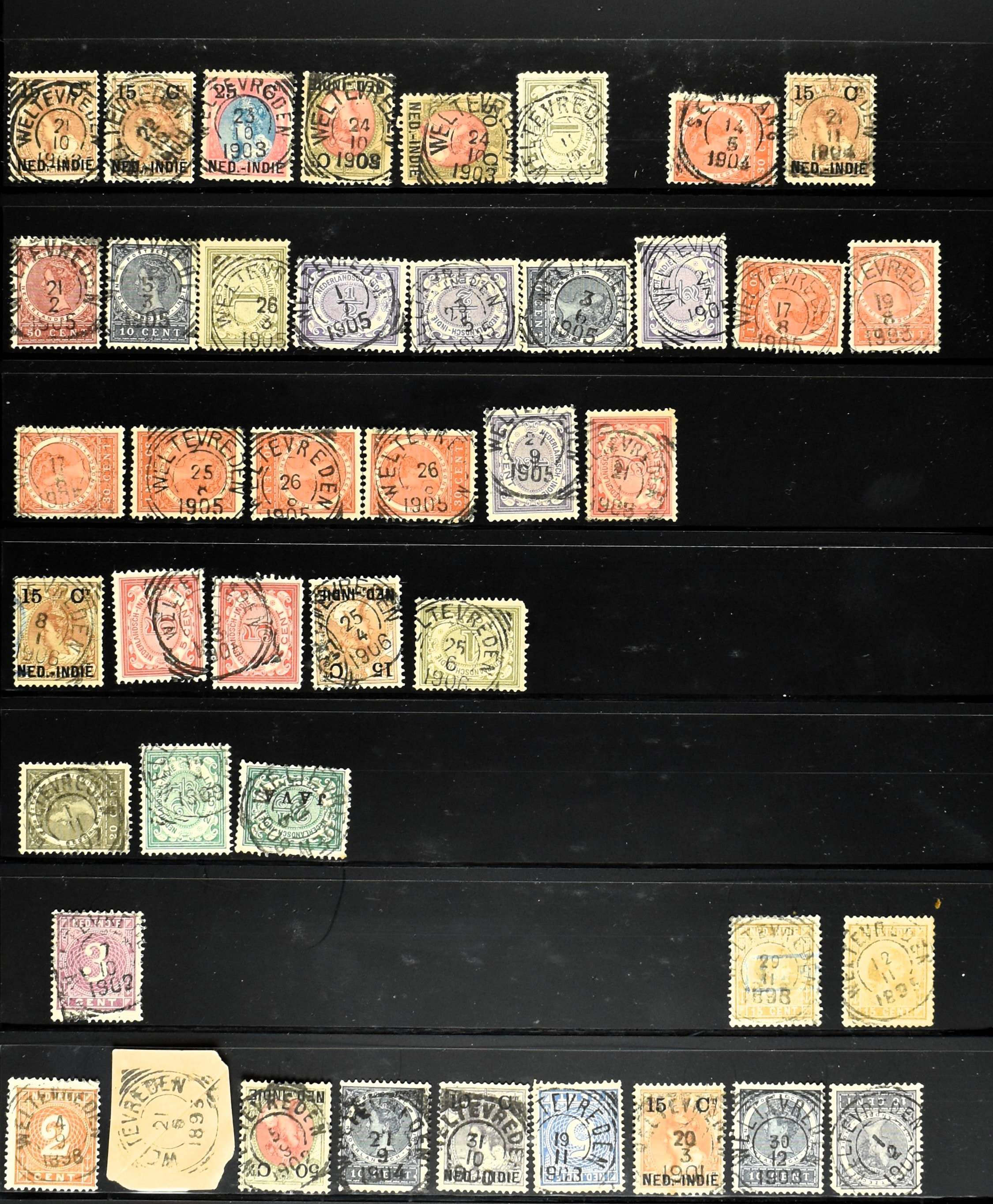 2253 imageNED.- INDIË PUNTSTEMPELS, doublettenvoorraad tussen nummers 1-120 op emissies Koning, Cijfer en Port met diverse waarden, typen, kleuren, veel mooie en duidelijke afstempelingen, in insteekboek. Interessant voor zowel verzamelaar als detaillist (Image) (Image2) (Image3) (Image4) (Image5) (Image6) (Image7) (Image8) (Image9) (Image10) (Image11) (Image12) (Image13) (Image14) (Image15) (Image16) (Image17) (Image18) (All Images)