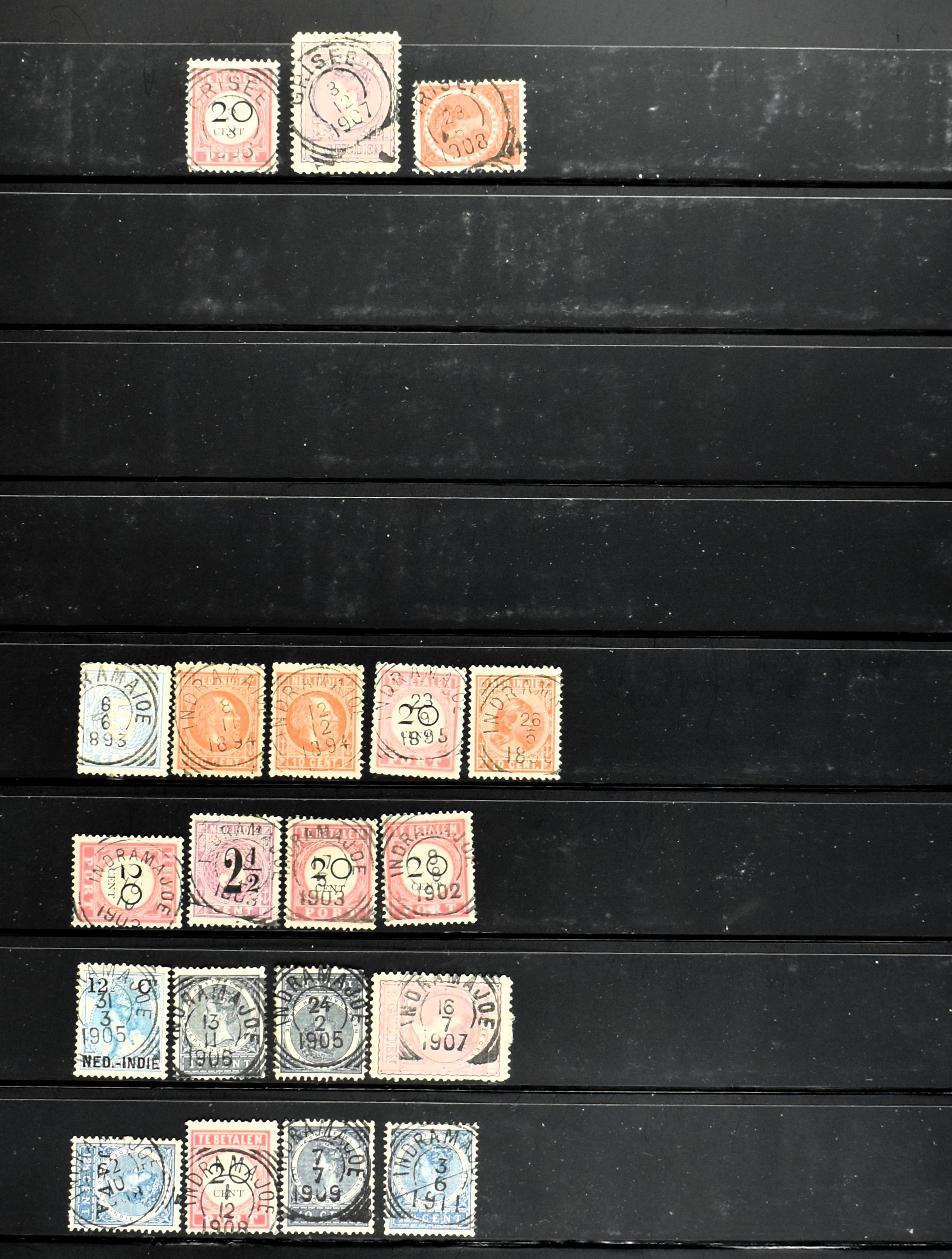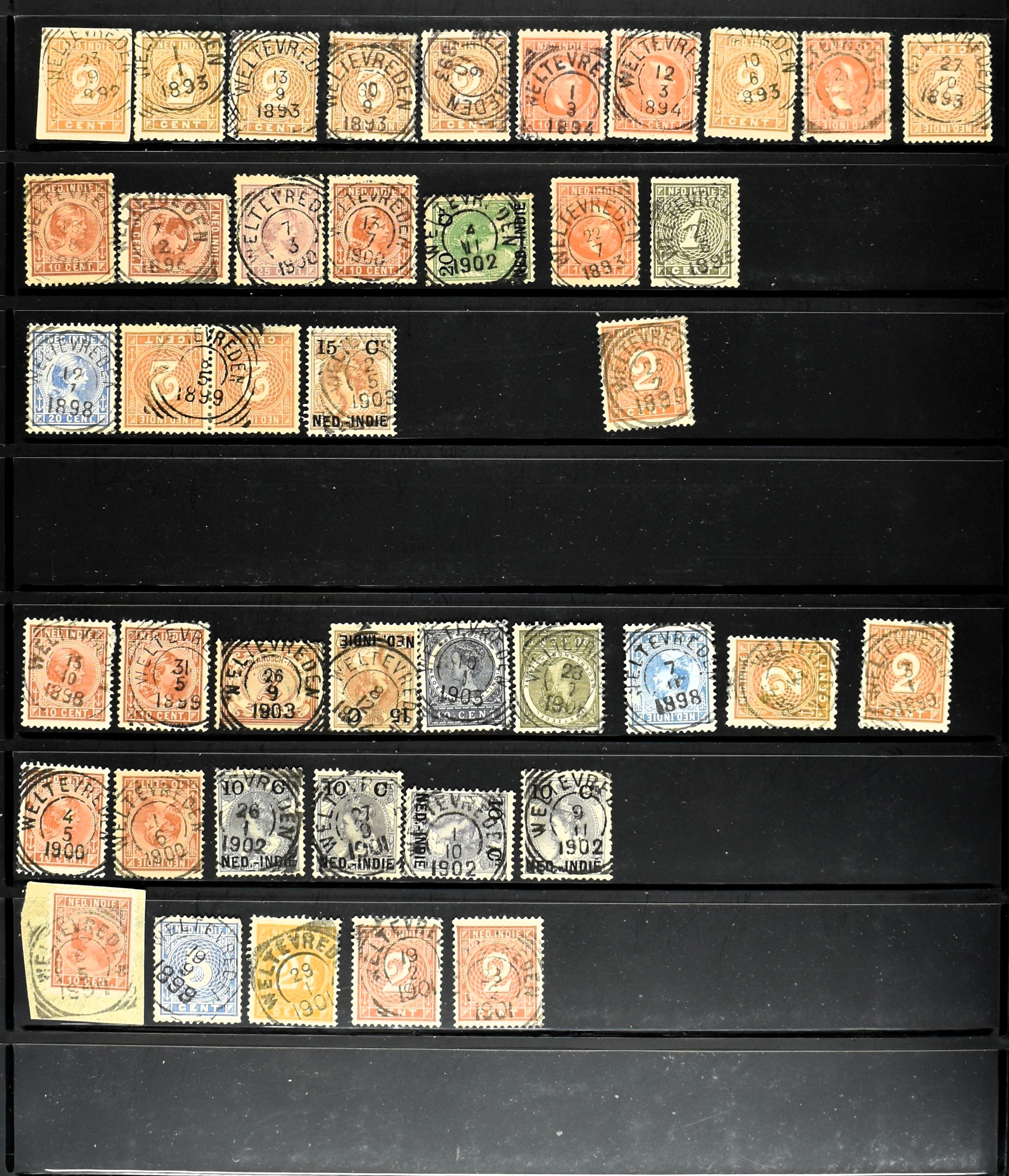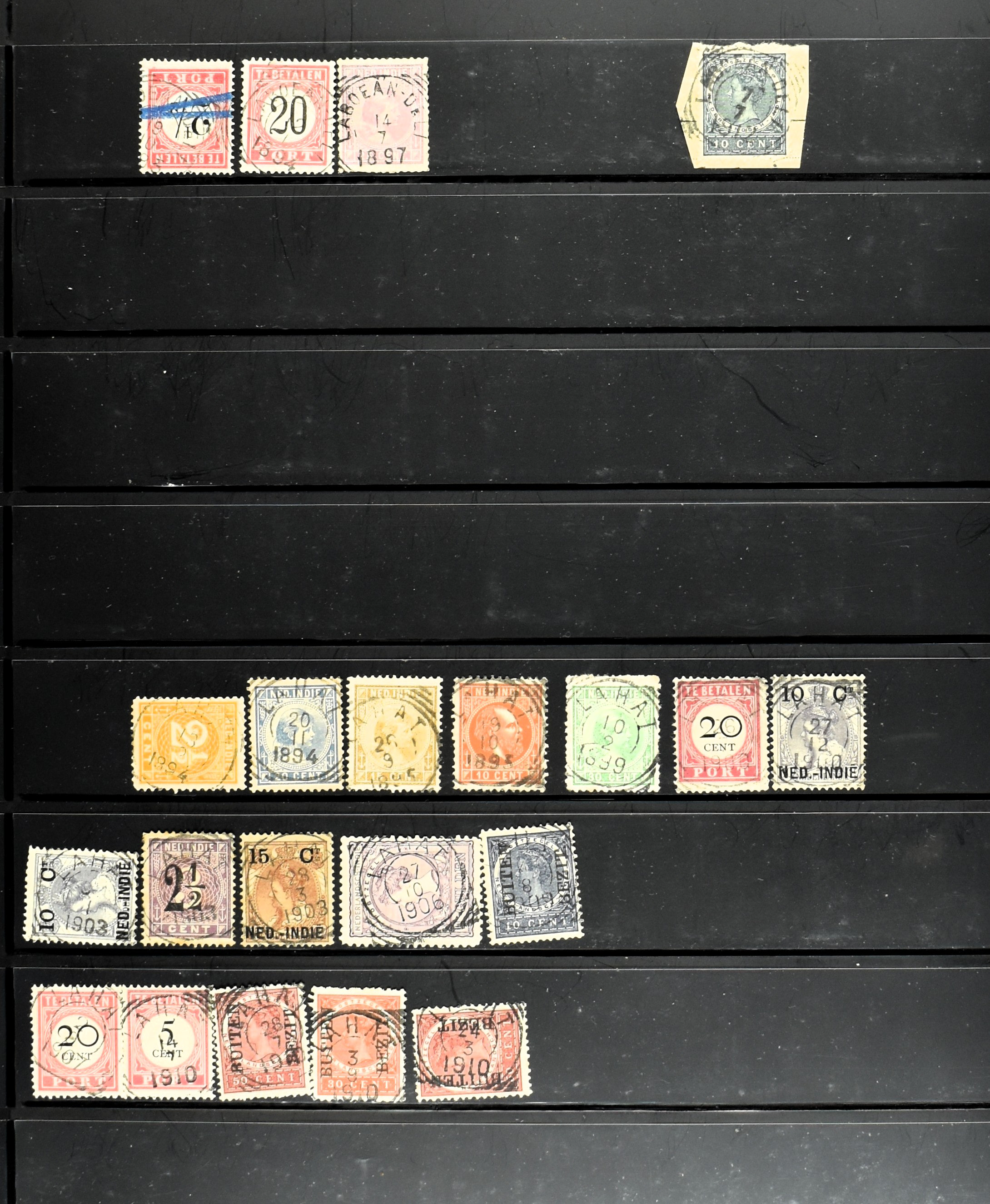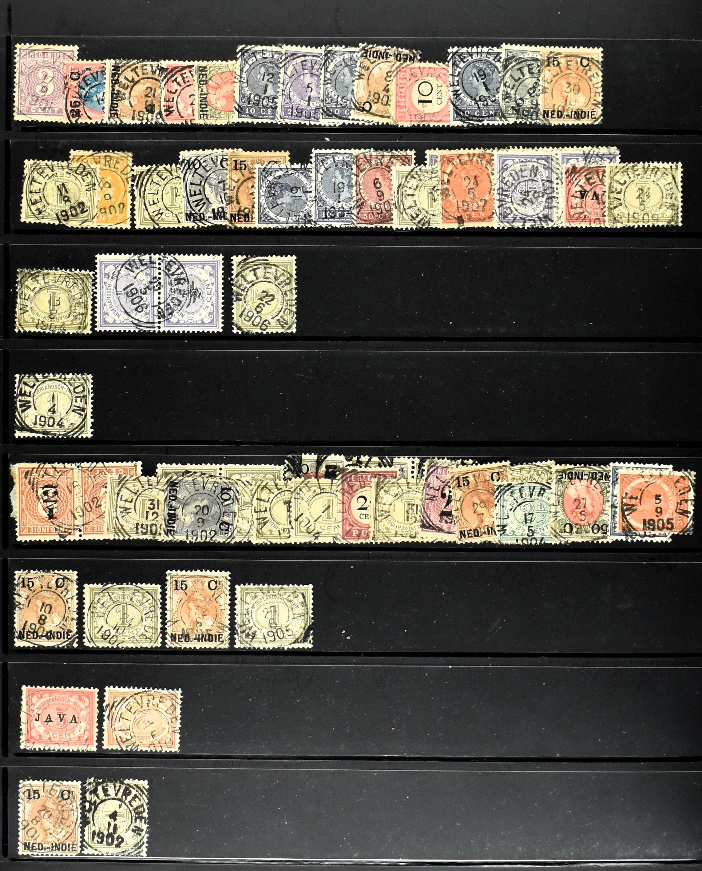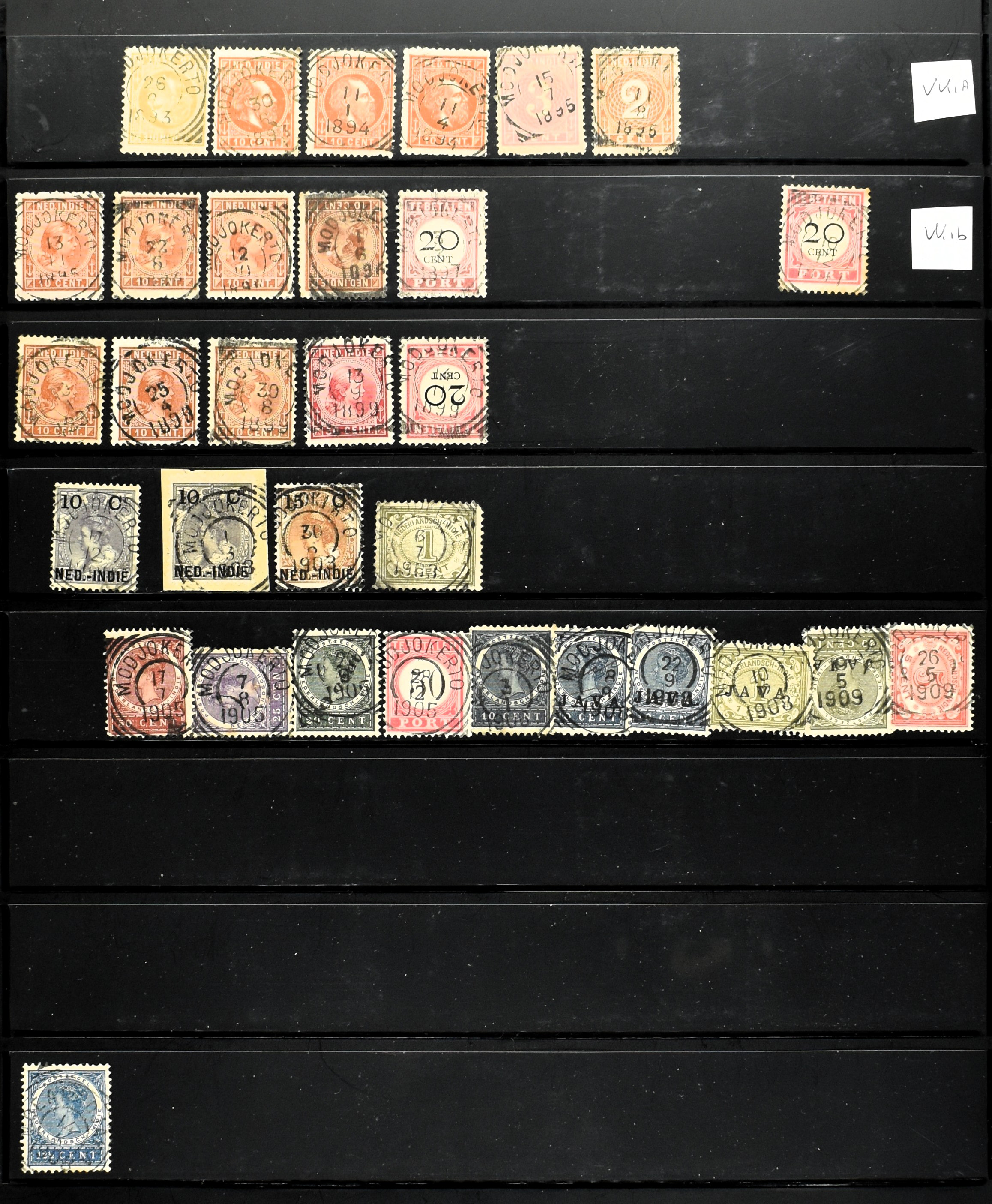 2253 imageNED.- INDIË PUNTSTEMPELS, doublettenvoorraad tussen nummers 1-120 op emissies Koning, Cijfer en Port met diverse waarden, typen, kleuren, veel mooie en duidelijke afstempelingen, in insteekboek. Interessant voor zowel verzamelaar als detaillist (Image) (Image2) (Image3) (Image4) (Image5) (Image6) (Image7) (Image8) (Image9) (Image10) (Image11) (Image12) (Image13) (Image14) (Image15) (Image16) (Image17) (Image18) (All Images)