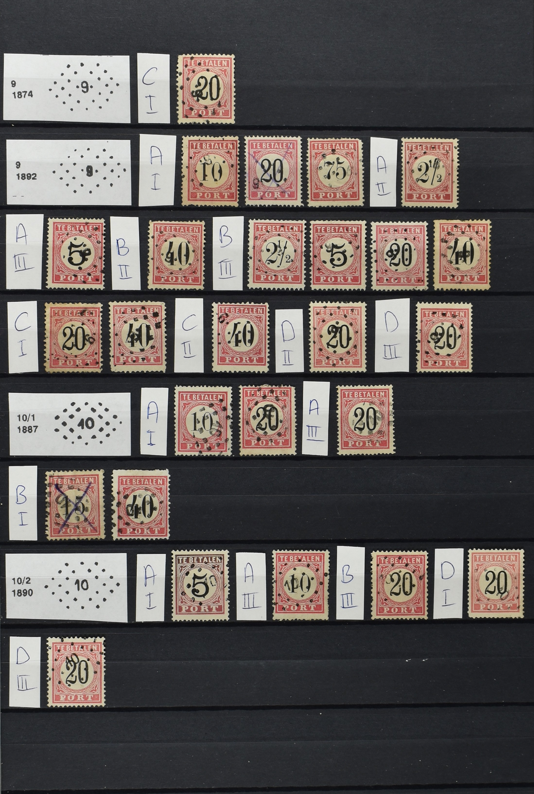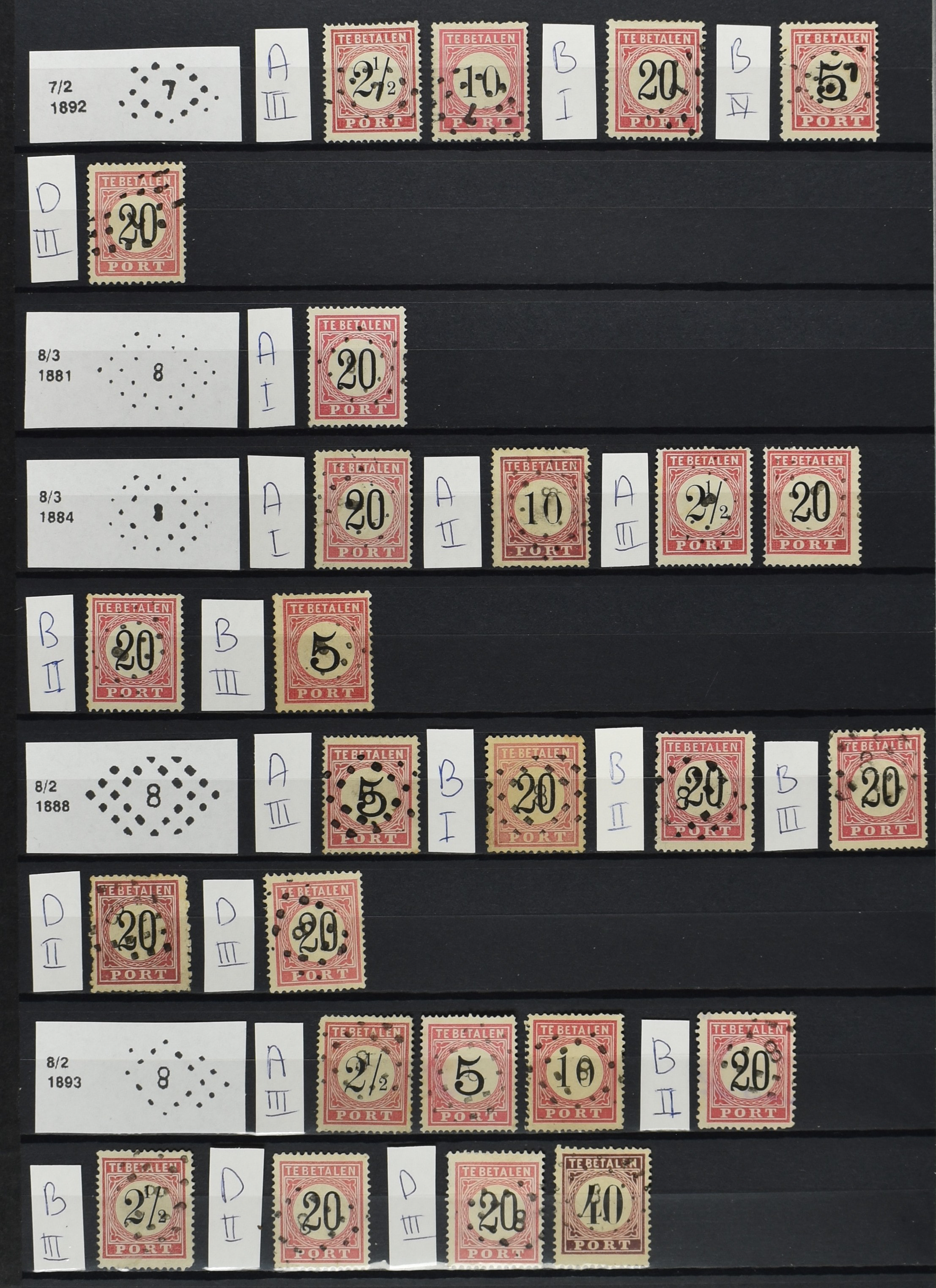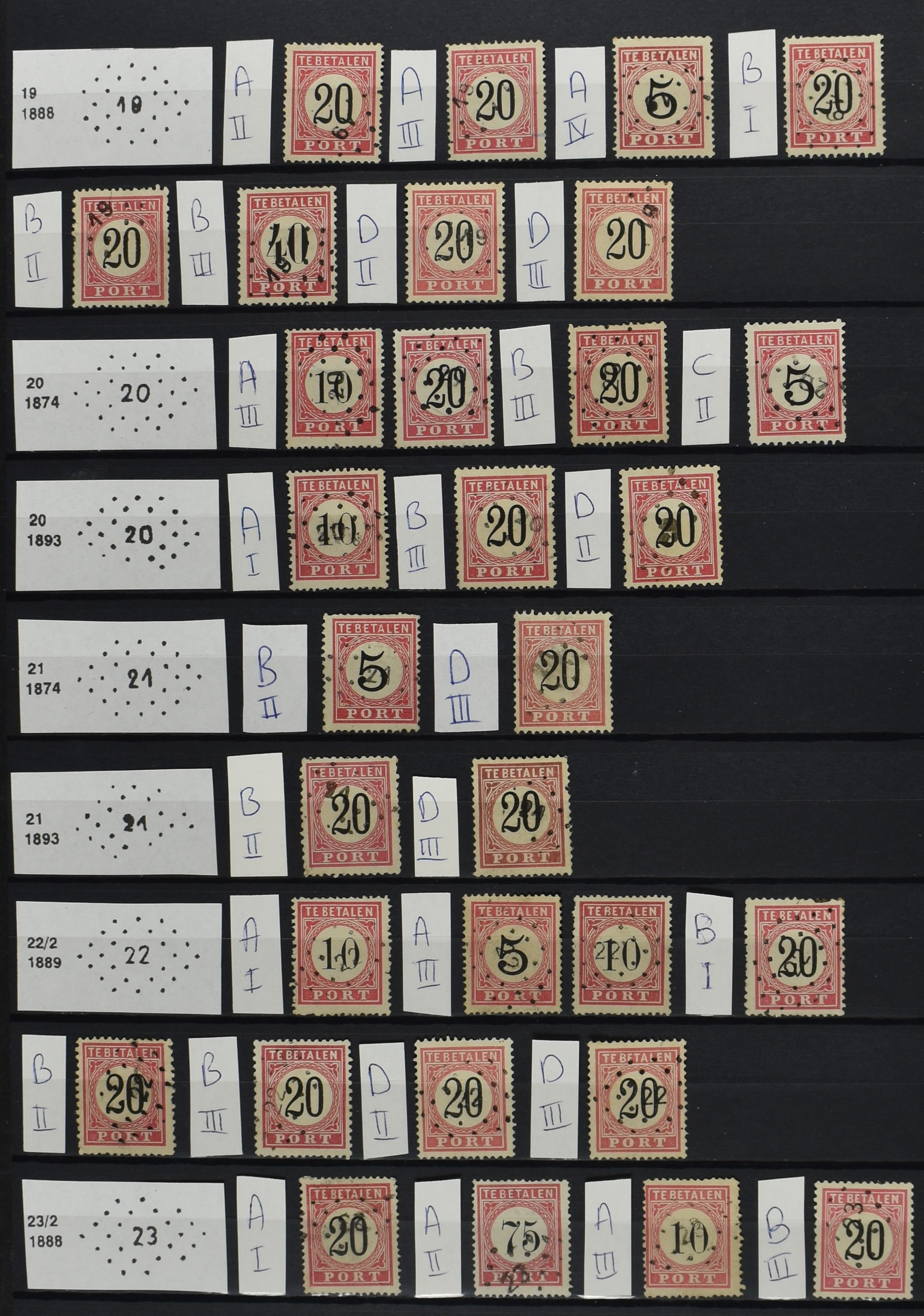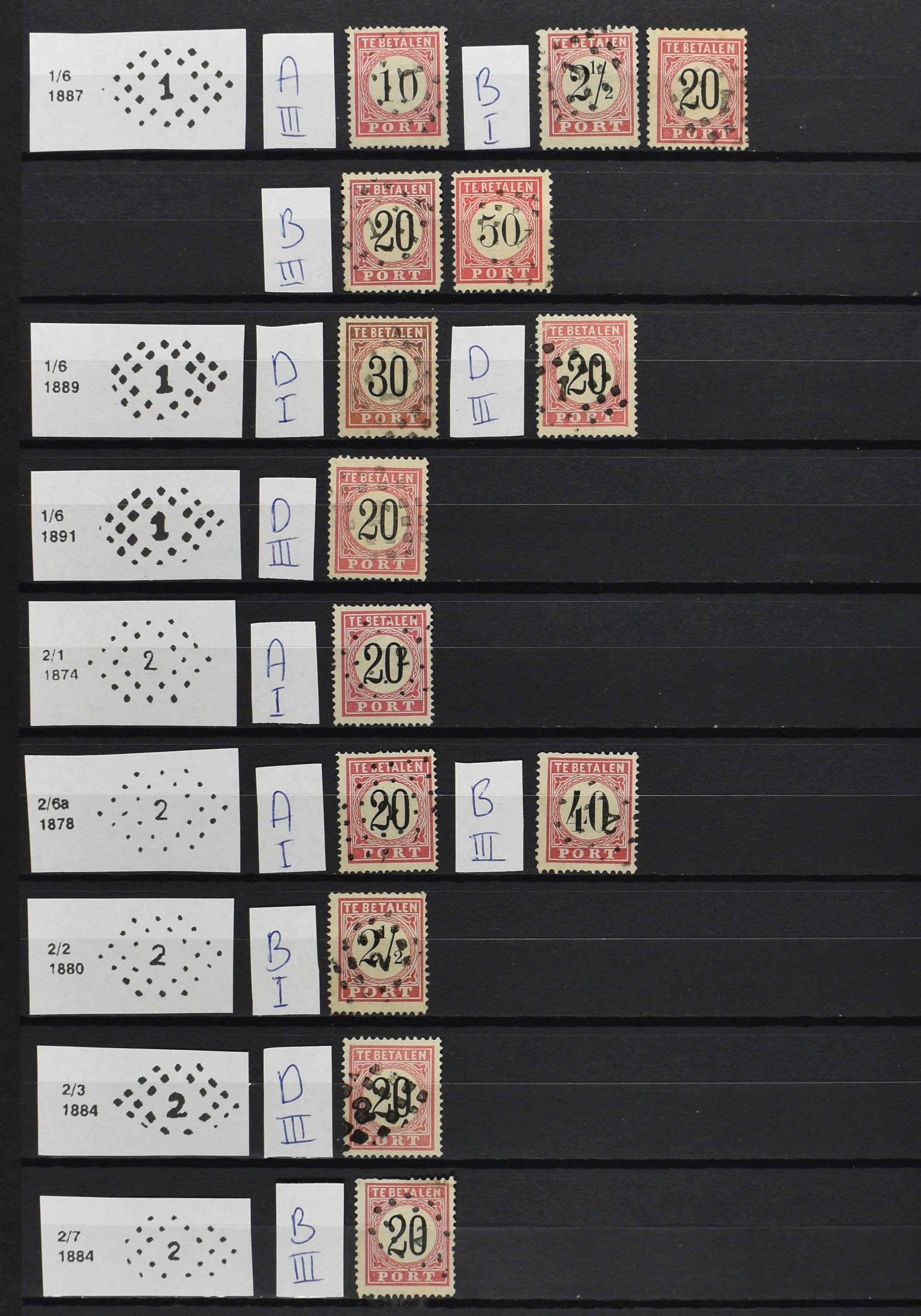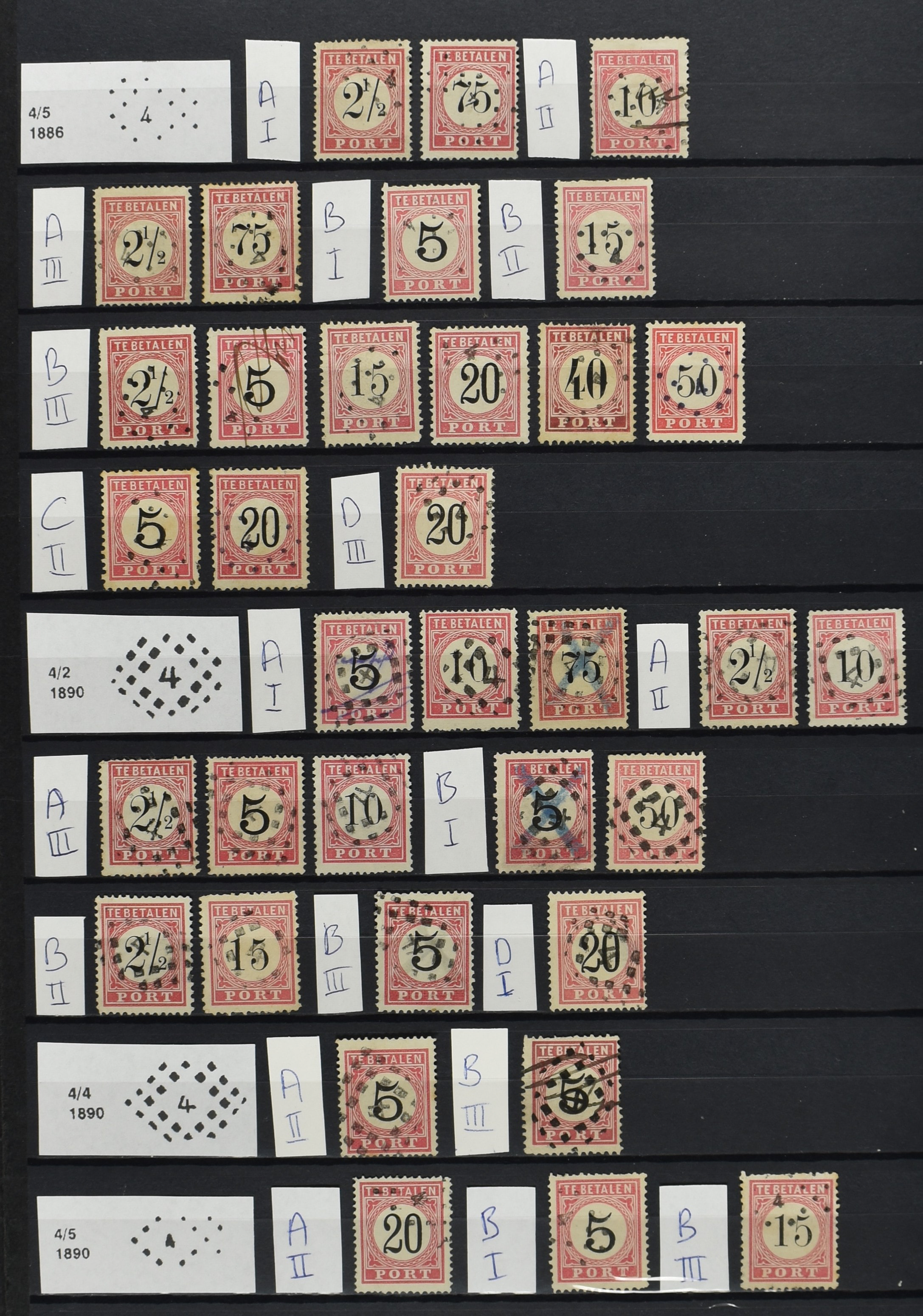 2252 imageNED.- INDIË PUNTSTEMPELS op Tweede Emissie Port 1882-88, zeer uitgebreide collectie opgezet volgens Bulterman (De Postzak nr. 153, sep. 1987), per puntstempelnummer ieder type op zo veel mogelijk verschillende waarden en bovendien in de verschillende typen en tandingen, tevens enkele plaatfouten, 40 en 105 ook in blauw, en 84, 105 en 115 ook in violet. Diverse zegels hebben ook een met de pen getrokken kruis en/of geschreven 'nietig' (= het port kon niet worden geïnd). Het geheel is in uitgezochte kwaliteit met vrijwel uitsluitend volledige afstempelingen op zegels in doorgaans prachtkwaliteit. De verzameling is overzichtelijk op nummervolgorde opgezet in 1 insteekboek. Door ons is een dergelijk uitgebreide puntstempelverzameling op deze portemissie nog niet eerder aangeboden! (Image) (Image2) (Image3) (Image4) (Image5) (Image6) (Image7) (Image8) (Image9) (Image10) (Image11) (Image12) (Image13) (Image14) (Image15) (Image16) (Image17) (Image18) (Image19) (Image20) (Image21) (Image22) (Image23) (Image24) (Image25) (Image26) (Image27) (Image28) (Image29) (Image30) (Image31) (Image32) (Image33) (Image34) (Image35) (Image36) (Image37) (Image38) (Image39) (Image40) (Image41) (All Images)