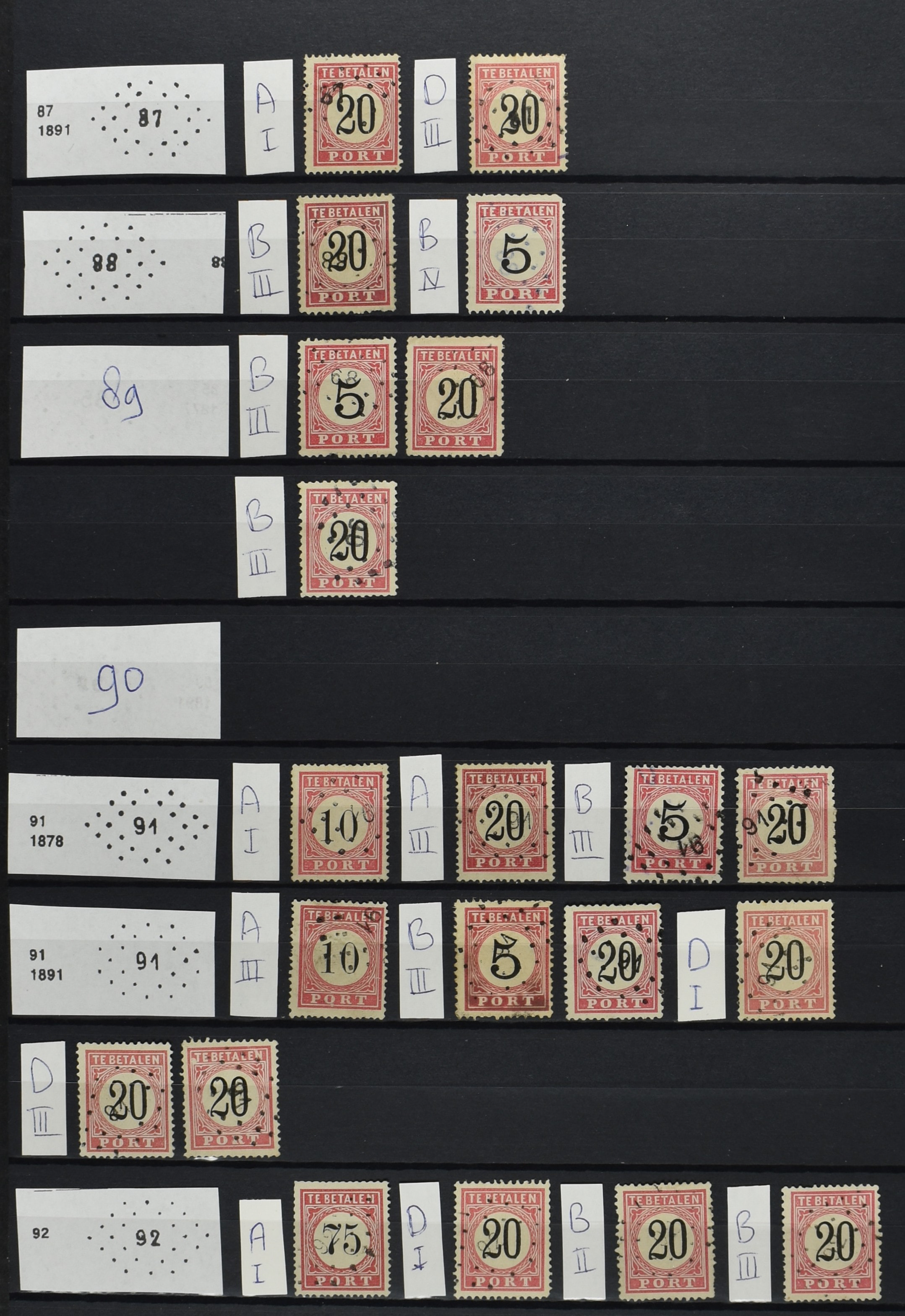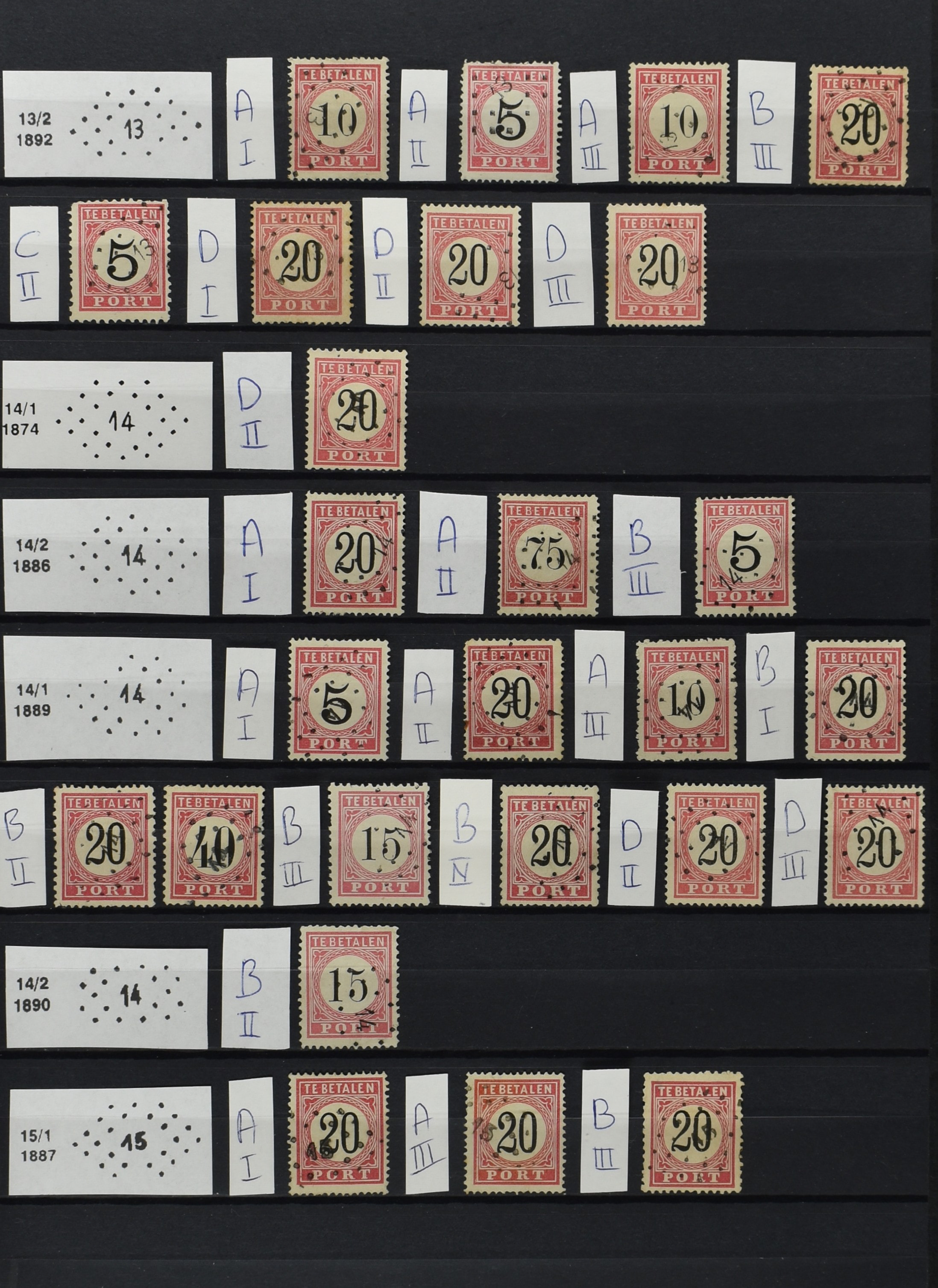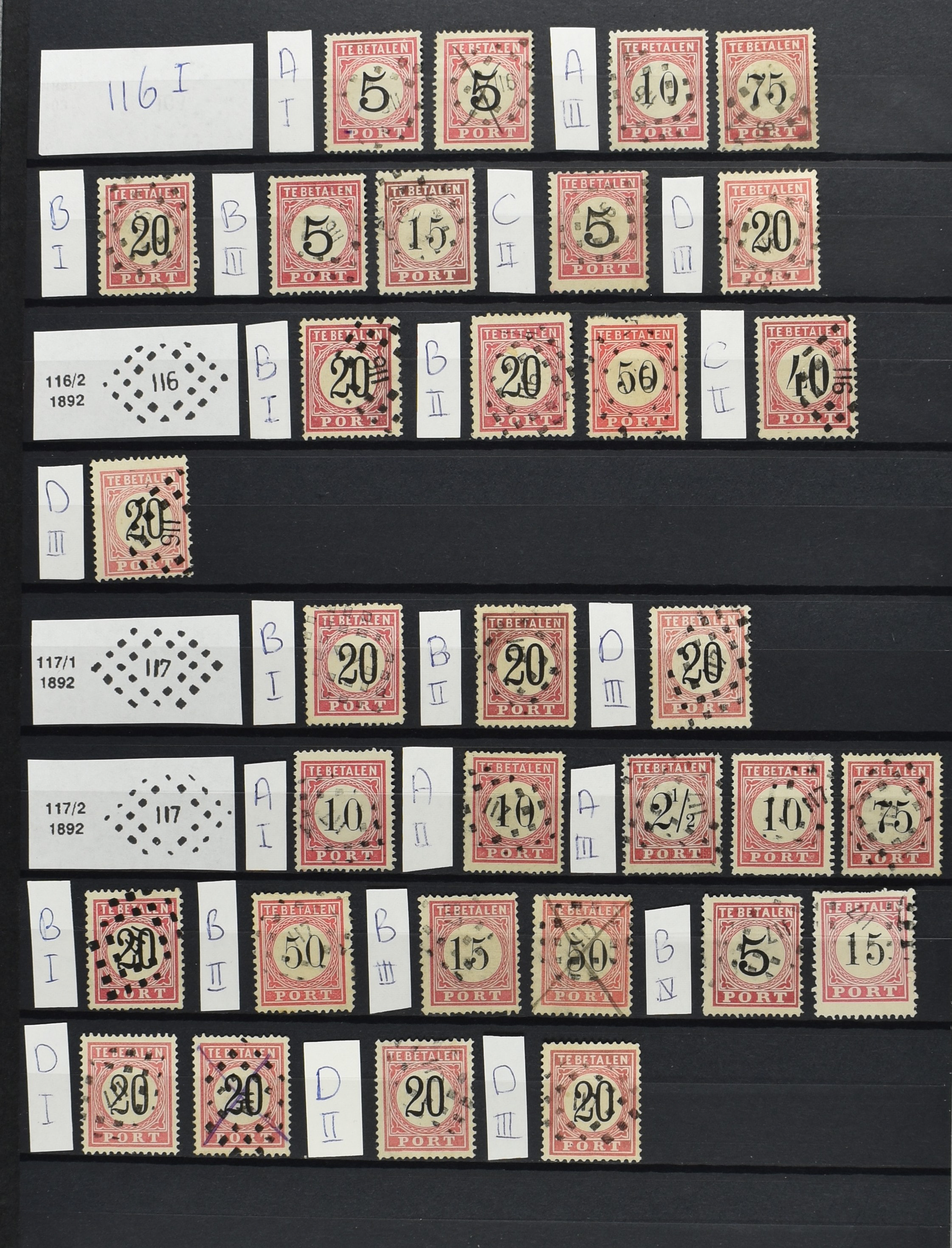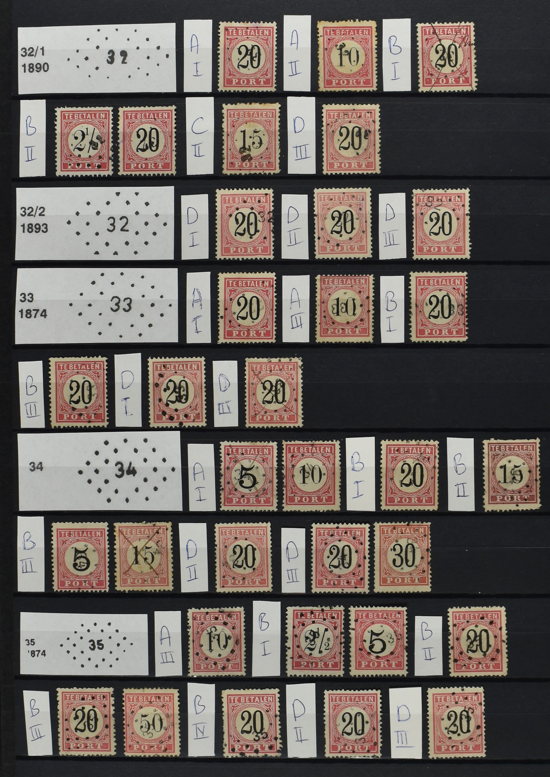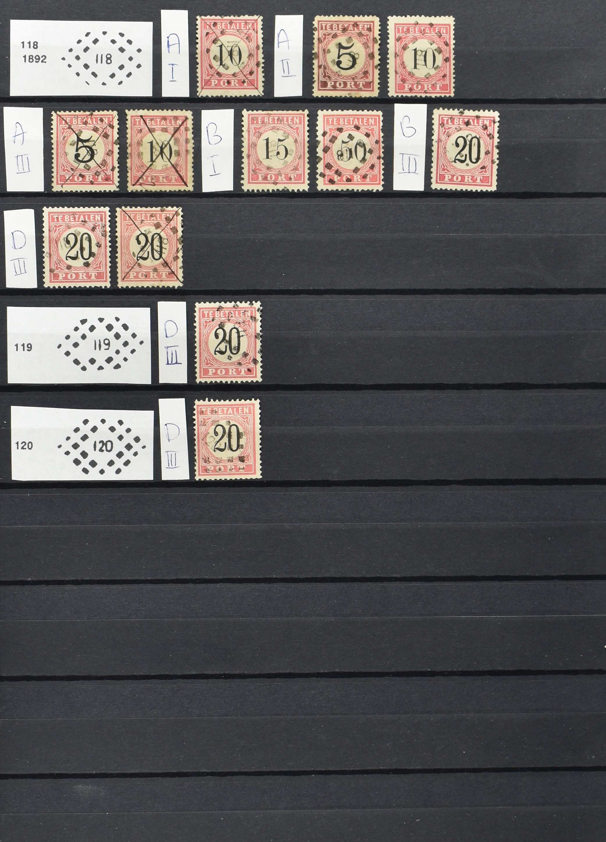 2252 imageNED.- INDIË PUNTSTEMPELS op Tweede Emissie Port 1882-88, zeer uitgebreide collectie opgezet volgens Bulterman (De Postzak nr. 153, sep. 1987), per puntstempelnummer ieder type op zo veel mogelijk verschillende waarden en bovendien in de verschillende typen en tandingen, tevens enkele plaatfouten, 40 en 105 ook in blauw, en 84, 105 en 115 ook in violet. Diverse zegels hebben ook een met de pen getrokken kruis en/of geschreven 'nietig' (= het port kon niet worden geïnd). Het geheel is in uitgezochte kwaliteit met vrijwel uitsluitend volledige afstempelingen op zegels in doorgaans prachtkwaliteit. De verzameling is overzichtelijk op nummervolgorde opgezet in 1 insteekboek. Door ons is een dergelijk uitgebreide puntstempelverzameling op deze portemissie nog niet eerder aangeboden! (Image) (Image2) (Image3) (Image4) (Image5) (Image6) (Image7) (Image8) (Image9) (Image10) (Image11) (Image12) (Image13) (Image14) (Image15) (Image16) (Image17) (Image18) (Image19) (Image20) (Image21) (Image22) (Image23) (Image24) (Image25) (Image26) (Image27) (Image28) (Image29) (Image30) (Image31) (Image32) (Image33) (Image34) (Image35) (Image36) (Image37) (Image38) (Image39) (Image40) (Image41) (All Images)