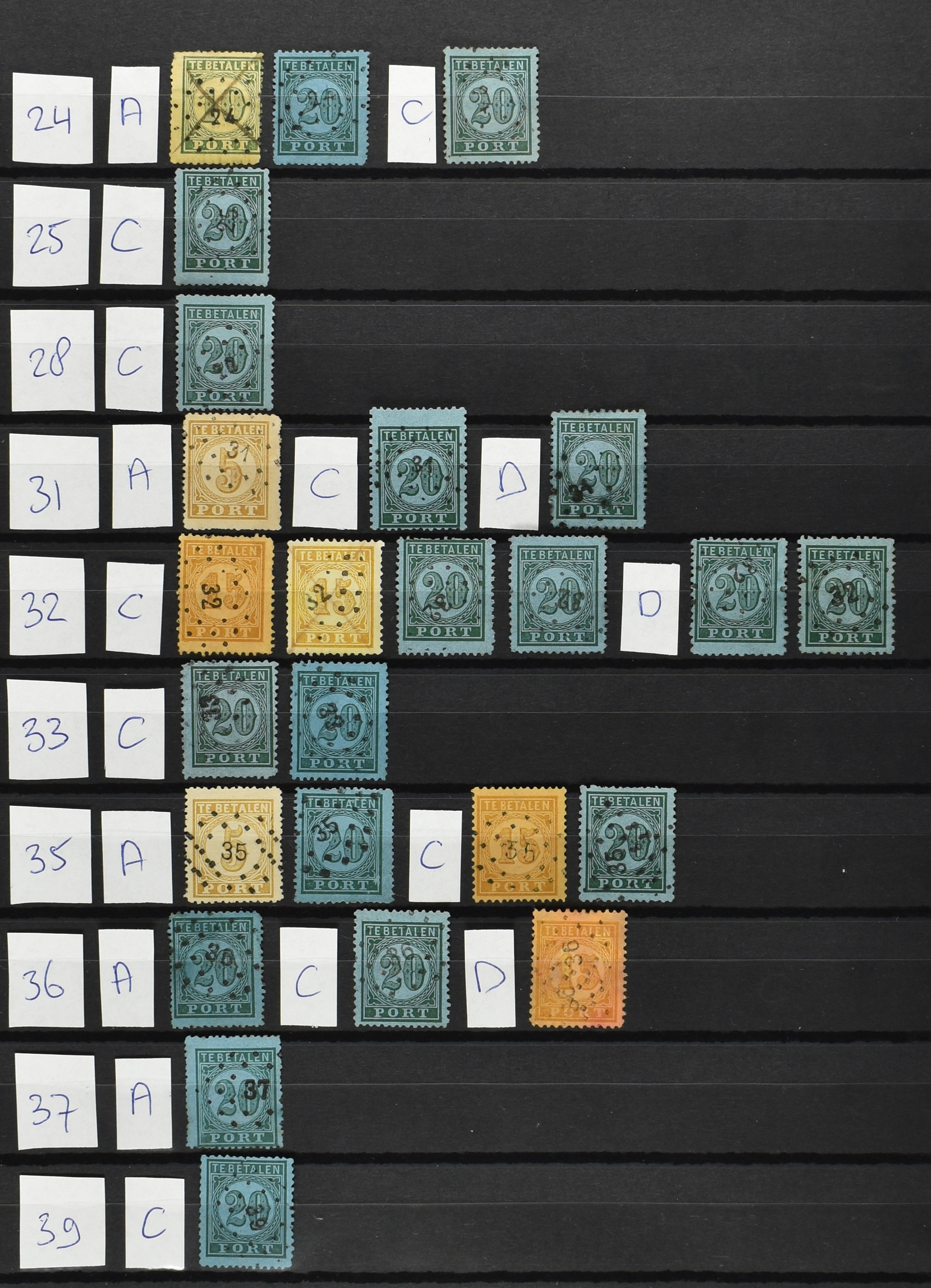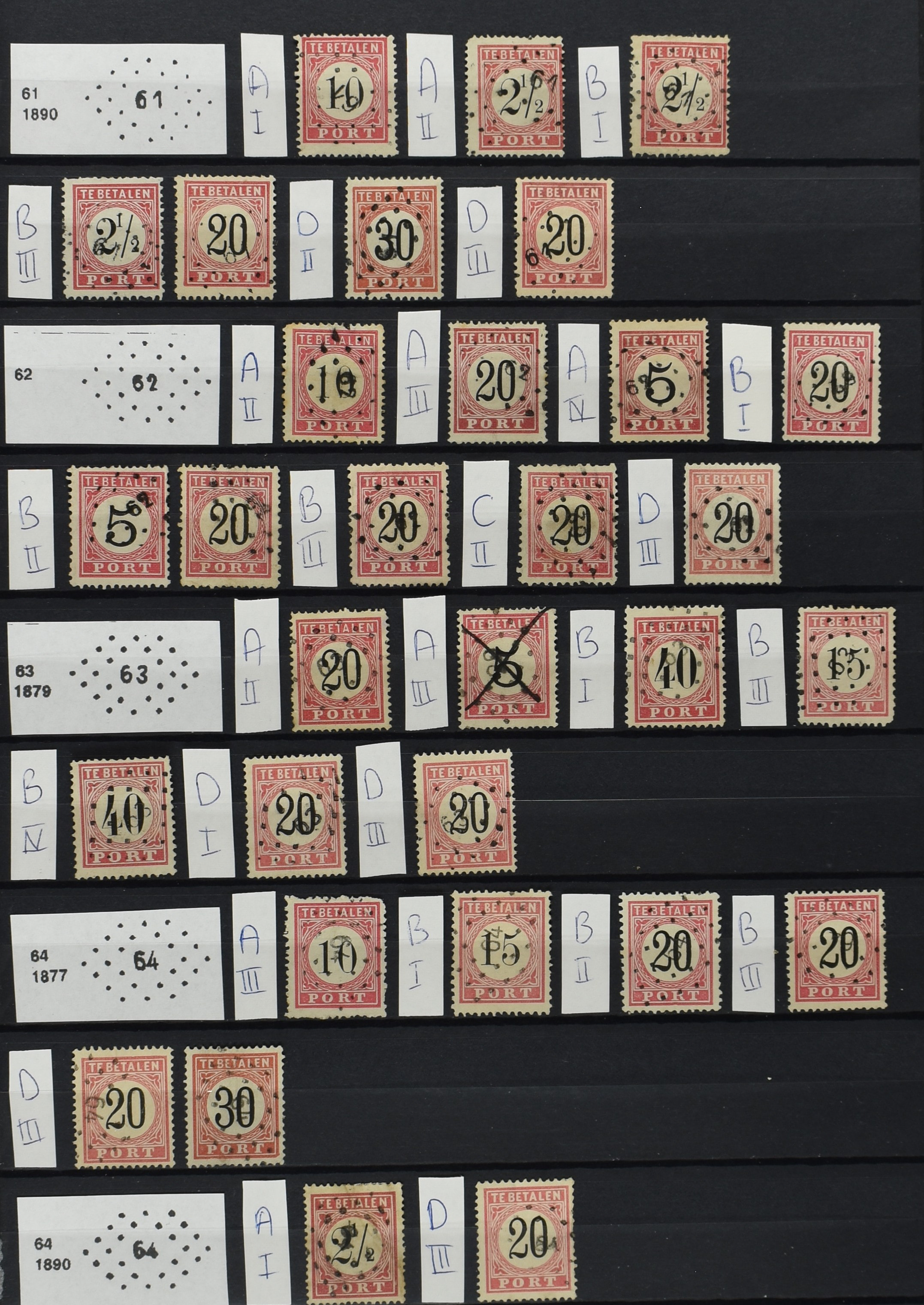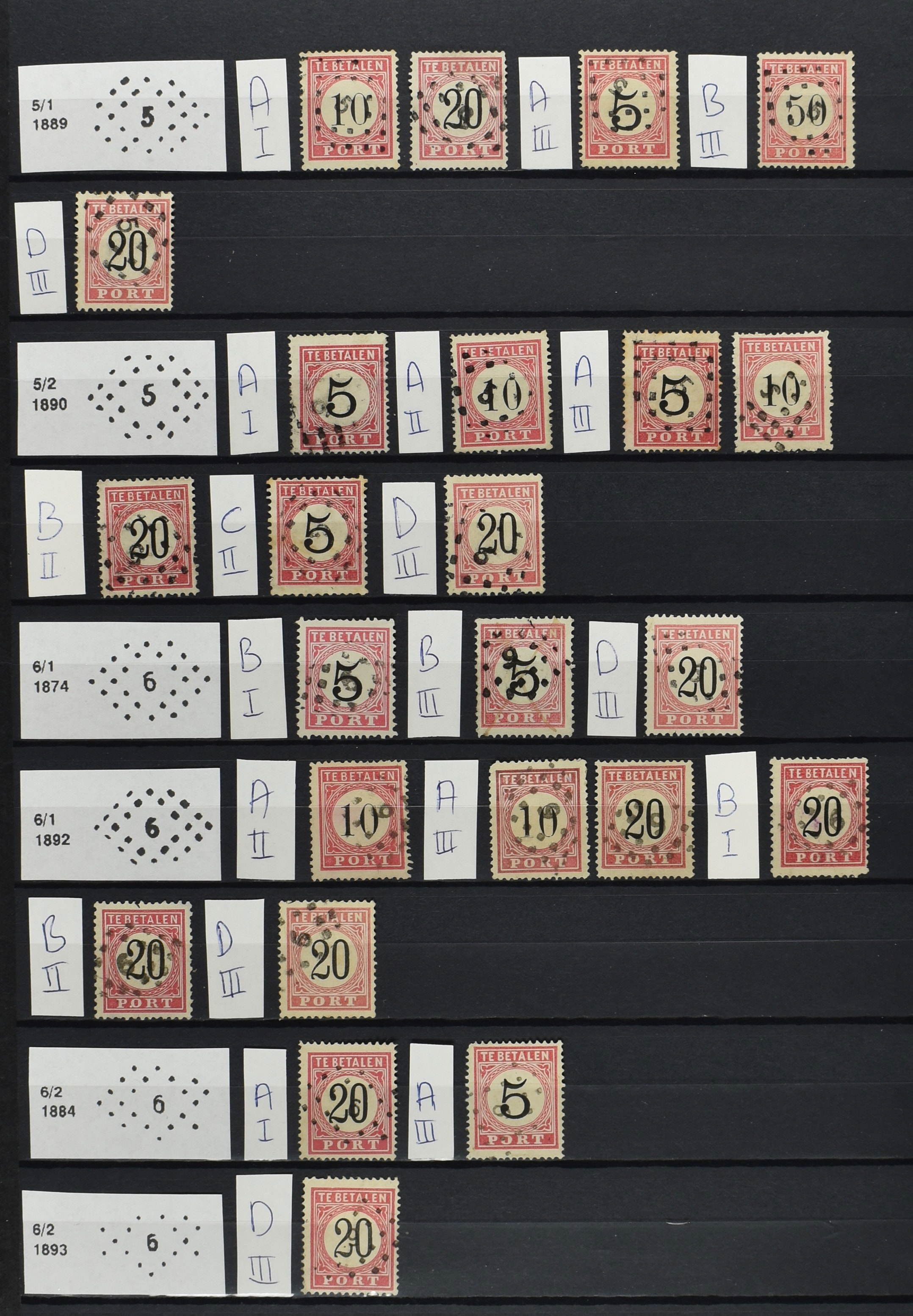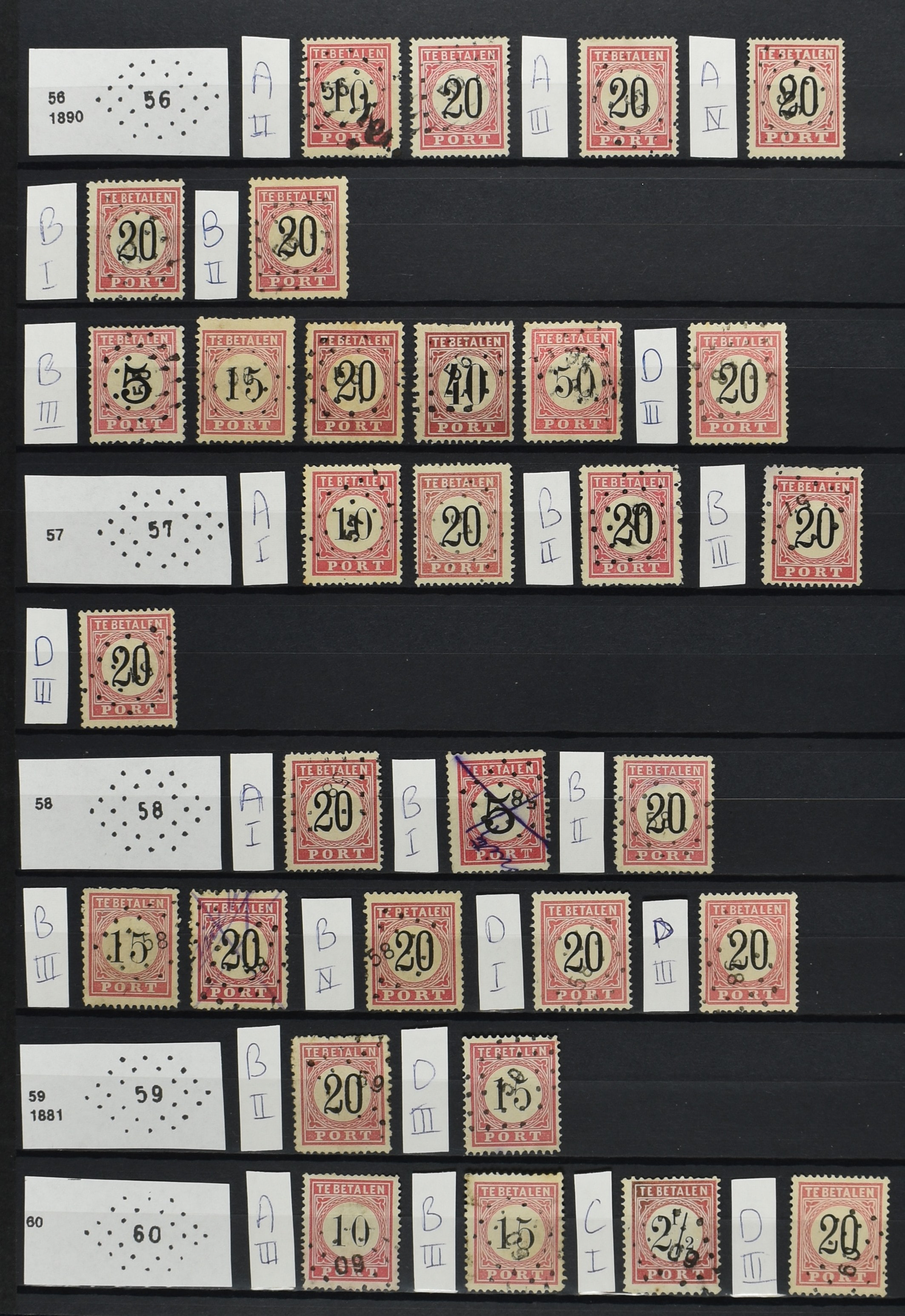 2252 imageNED.- INDIË PUNTSTEMPELS op Tweede Emissie Port 1882-88, zeer uitgebreide collectie opgezet volgens Bulterman (De Postzak nr. 153, sep. 1987), per puntstempelnummer ieder type op zo veel mogelijk verschillende waarden en bovendien in de verschillende typen en tandingen, tevens enkele plaatfouten, 40 en 105 ook in blauw, en 84, 105 en 115 ook in violet. Diverse zegels hebben ook een met de pen getrokken kruis en/of geschreven 'nietig' (= het port kon niet worden geïnd). Het geheel is in uitgezochte kwaliteit met vrijwel uitsluitend volledige afstempelingen op zegels in doorgaans prachtkwaliteit. De verzameling is overzichtelijk op nummervolgorde opgezet in 1 insteekboek. Door ons is een dergelijk uitgebreide puntstempelverzameling op deze portemissie nog niet eerder aangeboden! (Image) (Image2) (Image3) (Image4) (Image5) (Image6) (Image7) (Image8) (Image9) (Image10) (Image11) (Image12) (Image13) (Image14) (Image15) (Image16) (Image17) (Image18) (Image19) (Image20) (Image21) (Image22) (Image23) (Image24) (Image25) (Image26) (Image27) (Image28) (Image29) (Image30) (Image31) (Image32) (Image33) (Image34) (Image35) (Image36) (Image37) (Image38) (Image39) (Image40) (Image41) (All Images)