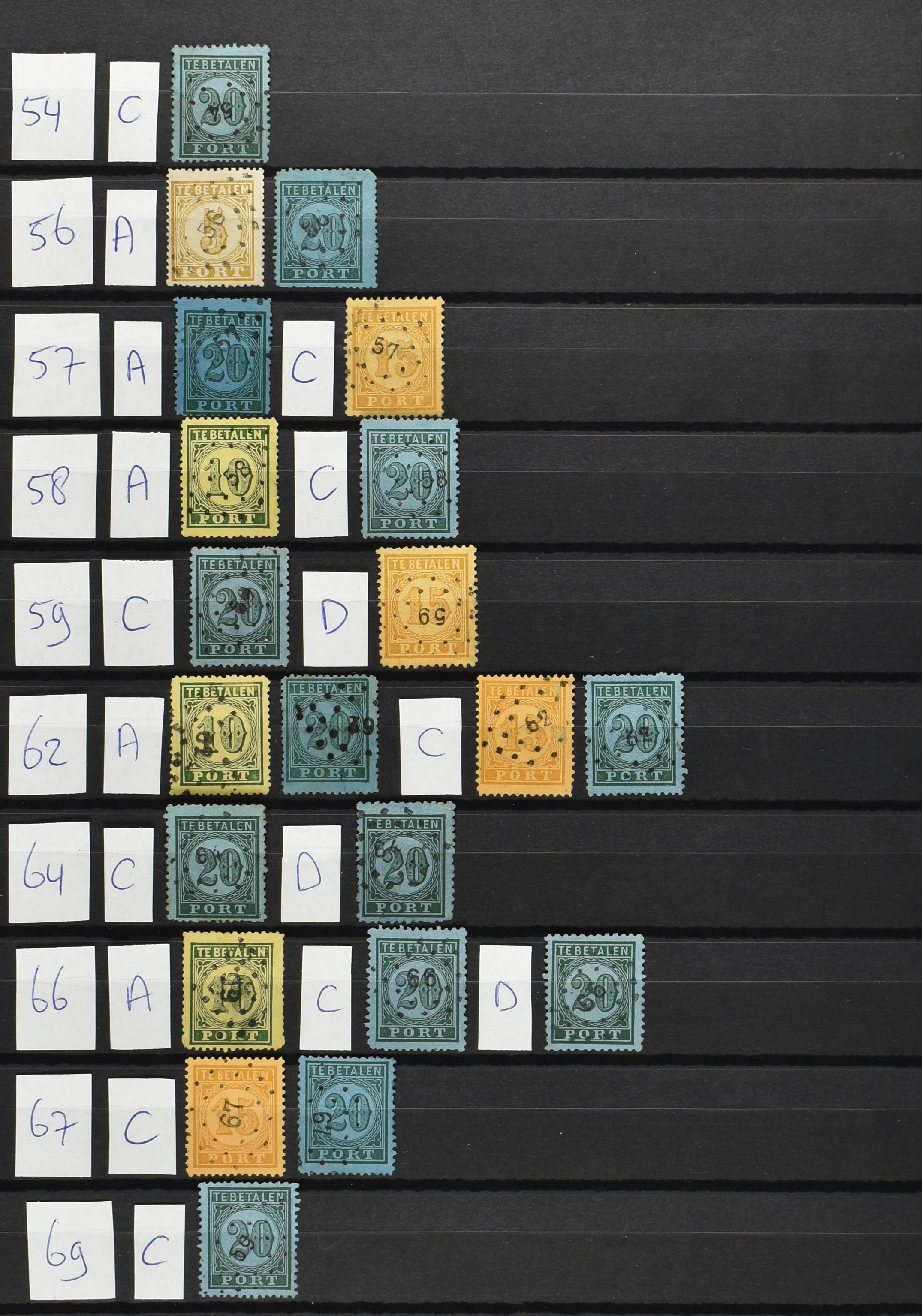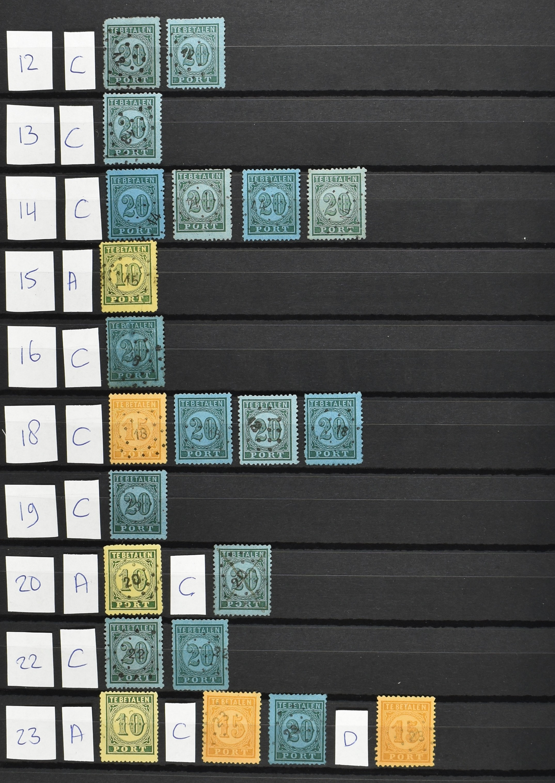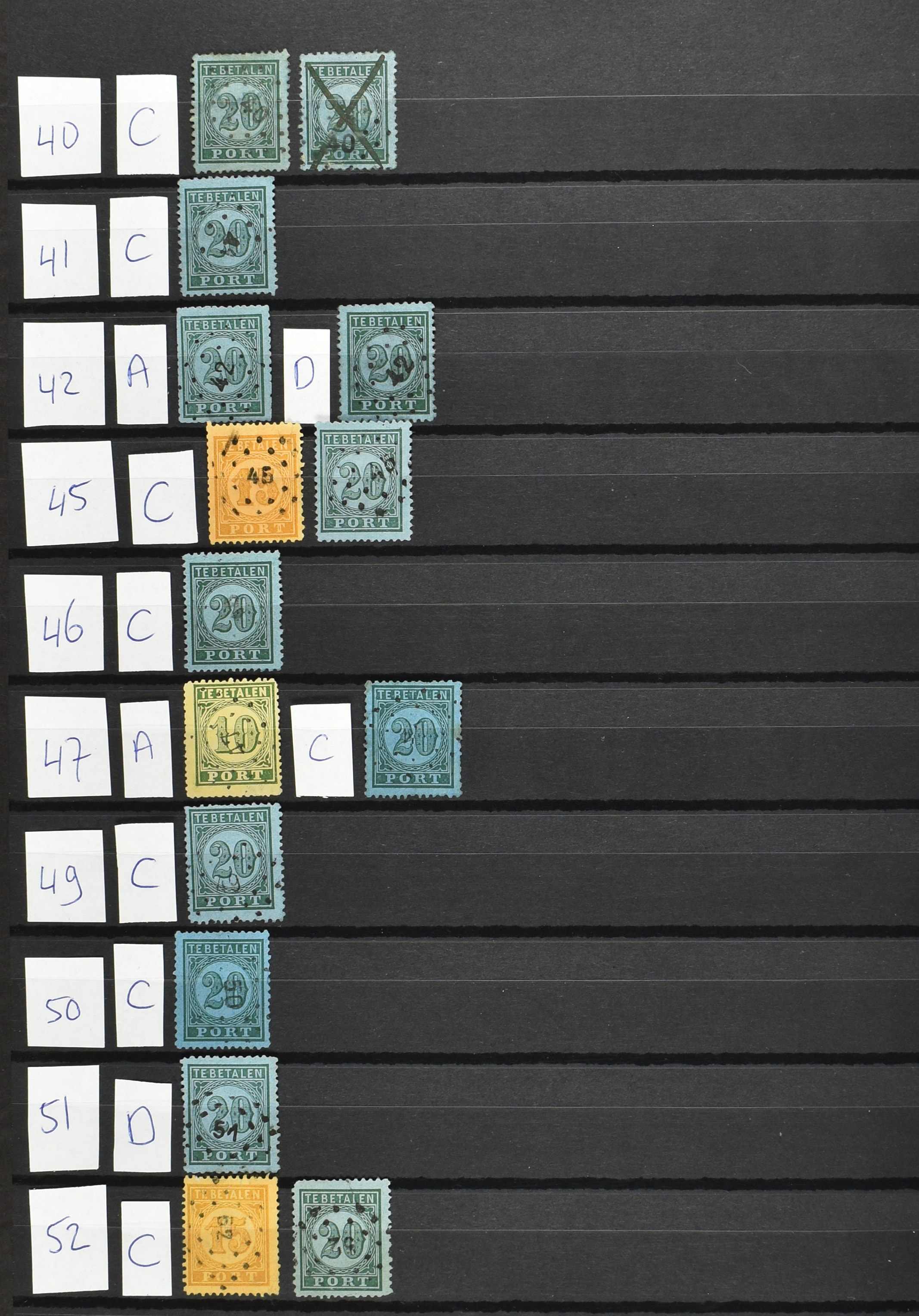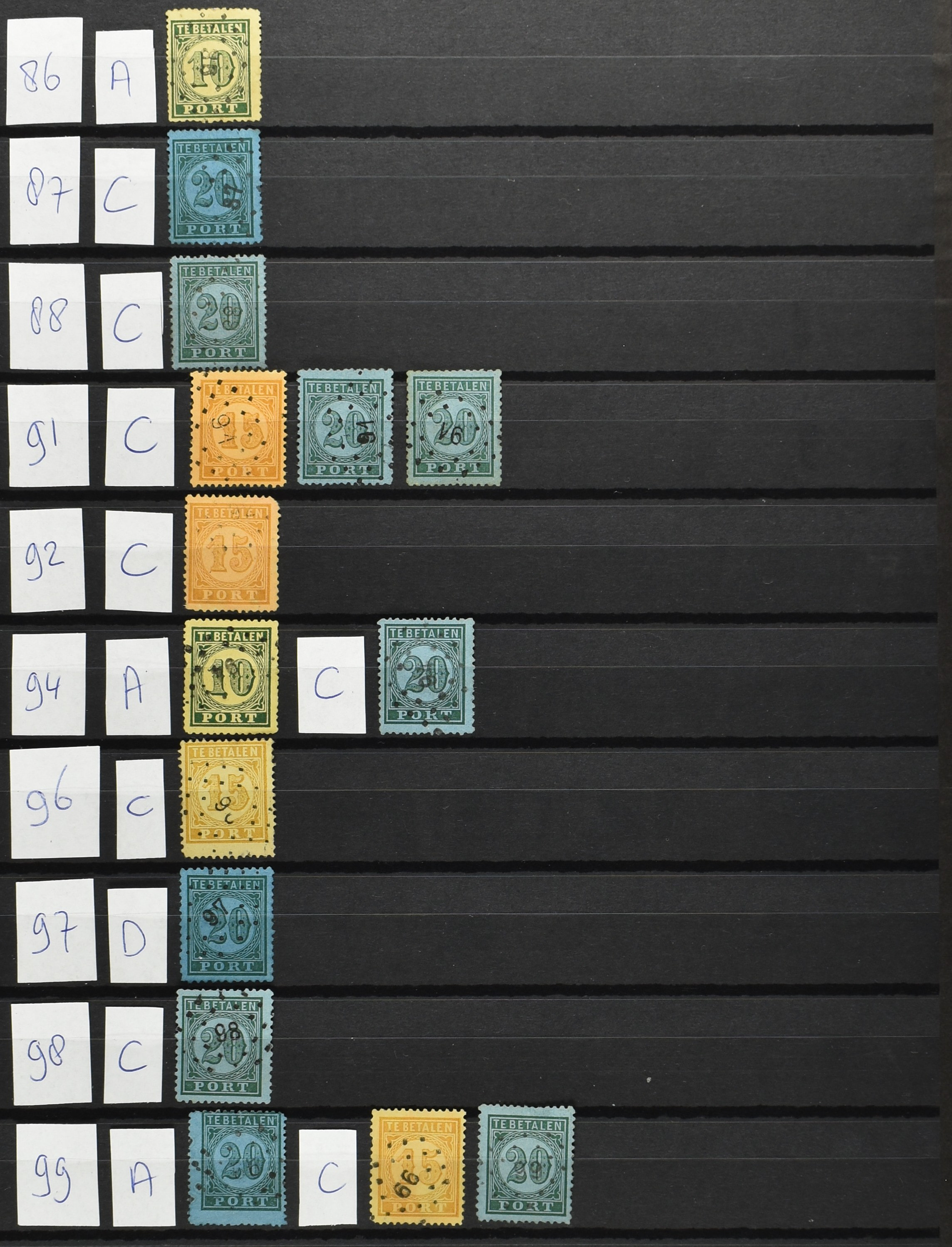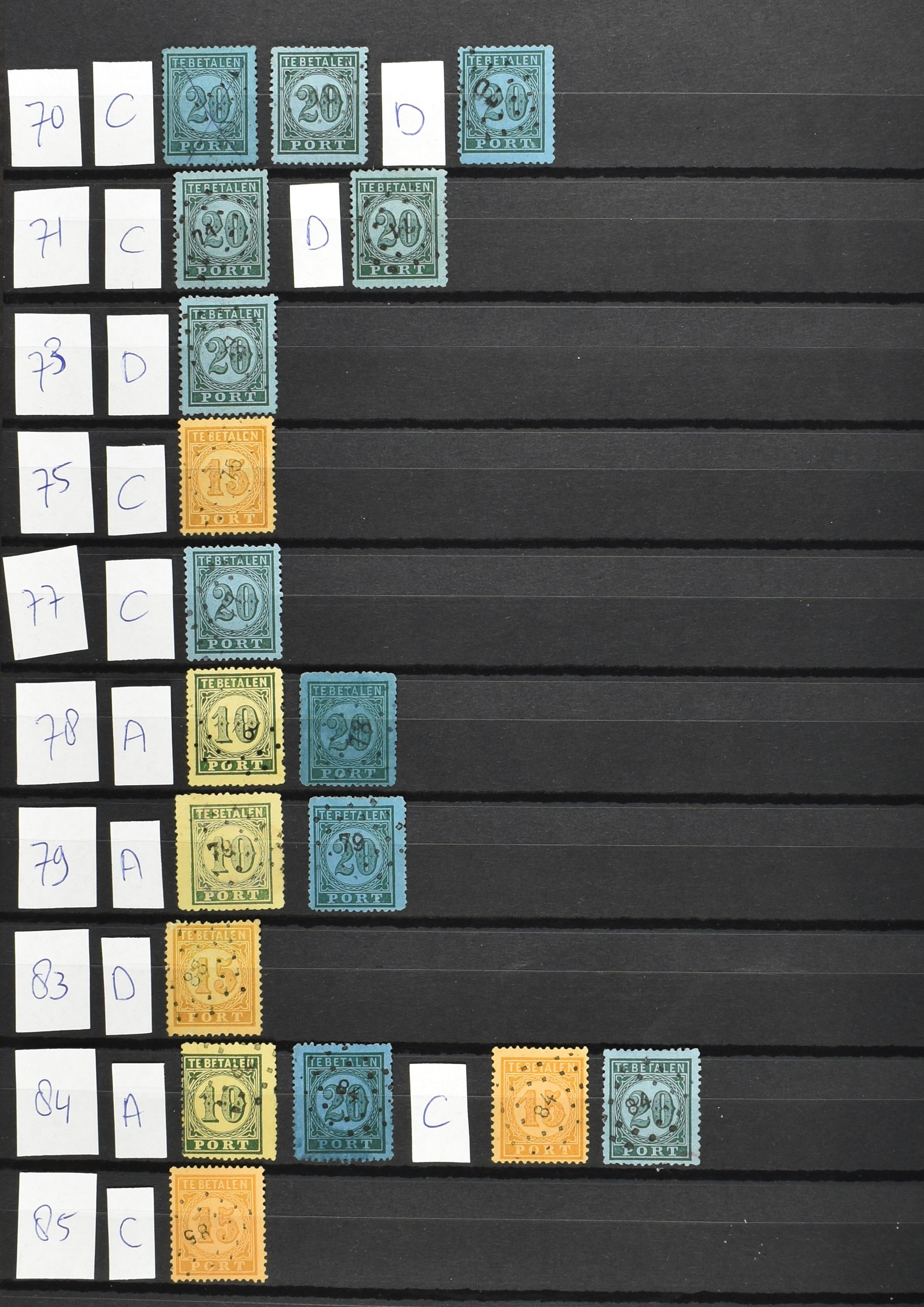 2252 imageNED.- INDIË PUNTSTEMPELS op Tweede Emissie Port 1882-88, zeer uitgebreide collectie opgezet volgens Bulterman (De Postzak nr. 153, sep. 1987), per puntstempelnummer ieder type op zo veel mogelijk verschillende waarden en bovendien in de verschillende typen en tandingen, tevens enkele plaatfouten, 40 en 105 ook in blauw, en 84, 105 en 115 ook in violet. Diverse zegels hebben ook een met de pen getrokken kruis en/of geschreven 'nietig' (= het port kon niet worden geïnd). Het geheel is in uitgezochte kwaliteit met vrijwel uitsluitend volledige afstempelingen op zegels in doorgaans prachtkwaliteit. De verzameling is overzichtelijk op nummervolgorde opgezet in 1 insteekboek. Door ons is een dergelijk uitgebreide puntstempelverzameling op deze portemissie nog niet eerder aangeboden! (Image) (Image2) (Image3) (Image4) (Image5) (Image6) (Image7) (Image8) (Image9) (Image10) (Image11) (Image12) (Image13) (Image14) (Image15) (Image16) (Image17) (Image18) (Image19) (Image20) (Image21) (Image22) (Image23) (Image24) (Image25) (Image26) (Image27) (Image28) (Image29) (Image30) (Image31) (Image32) (Image33) (Image34) (Image35) (Image36) (Image37) (Image38) (Image39) (Image40) (Image41) (All Images)