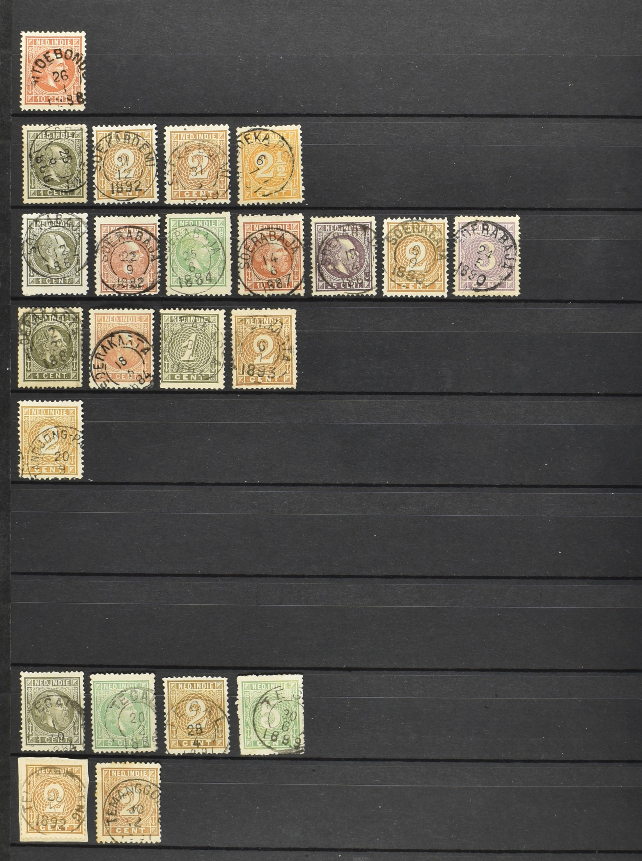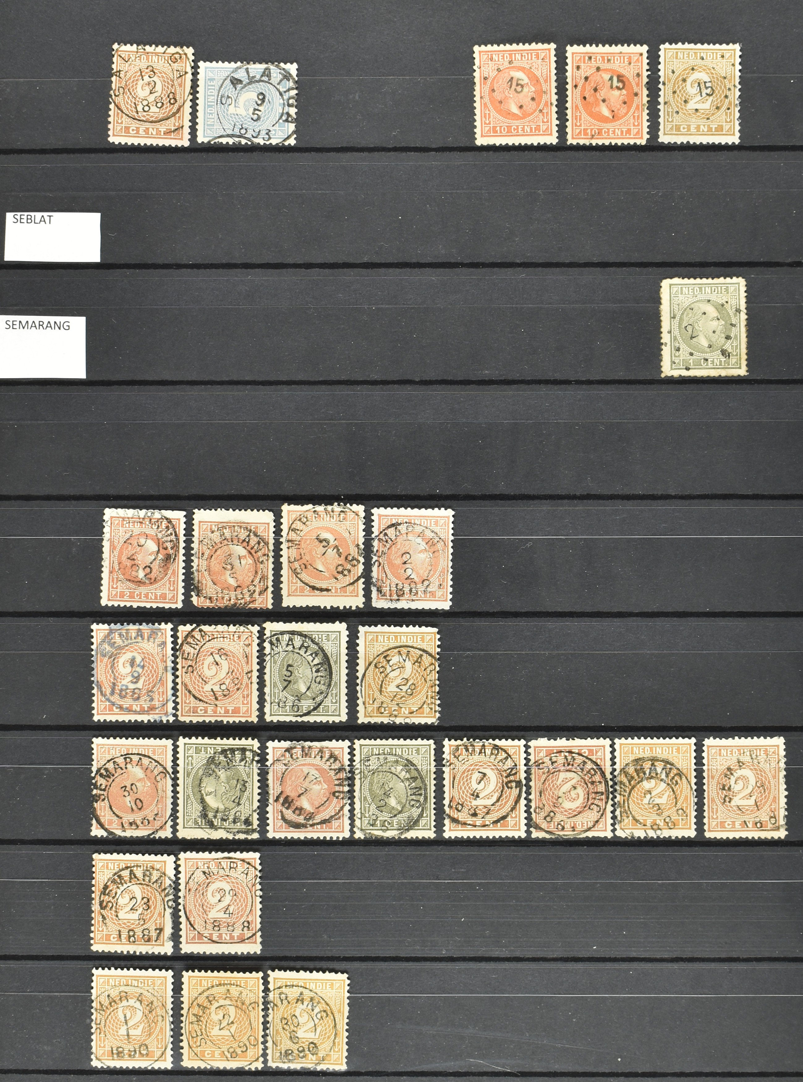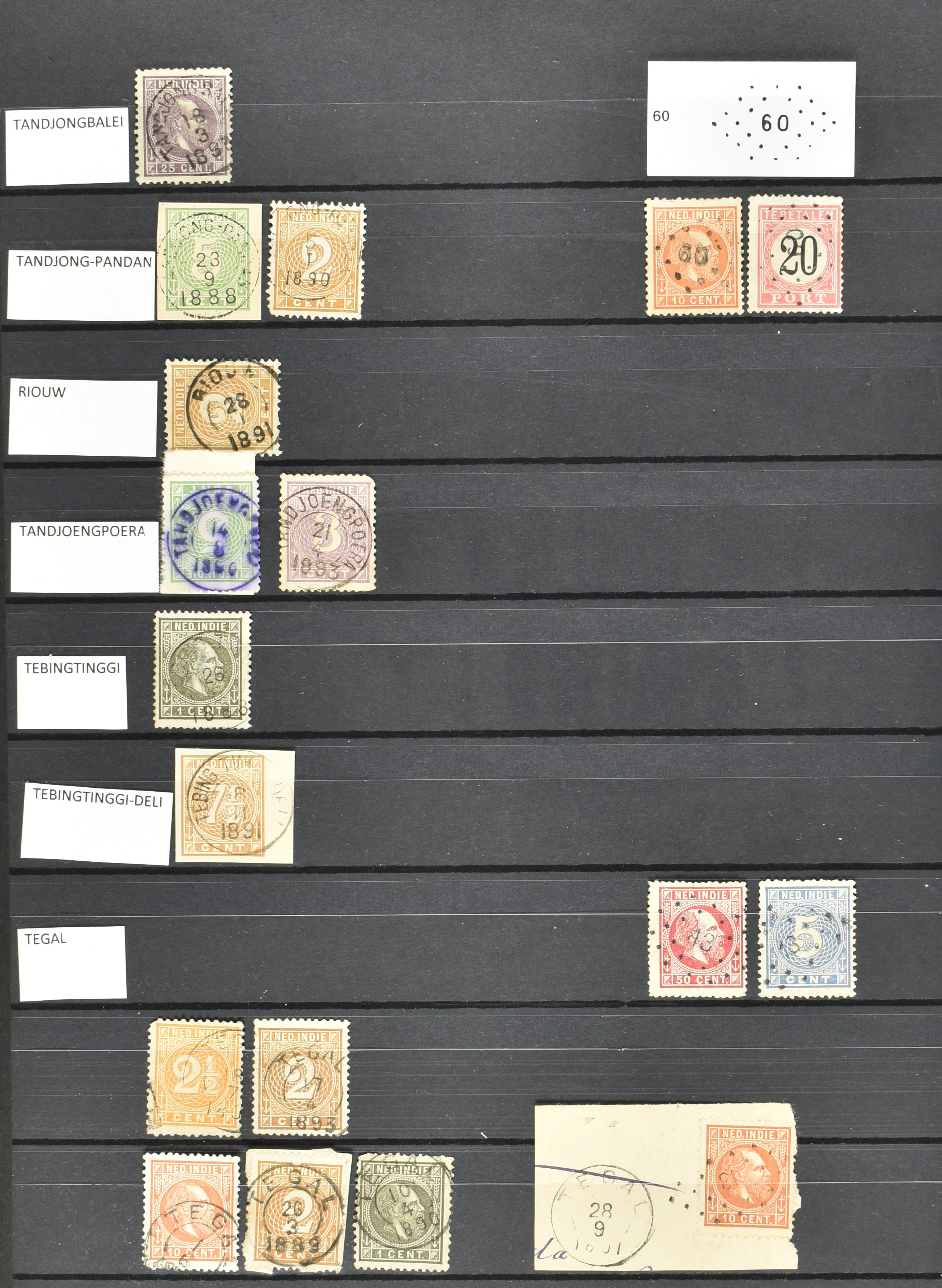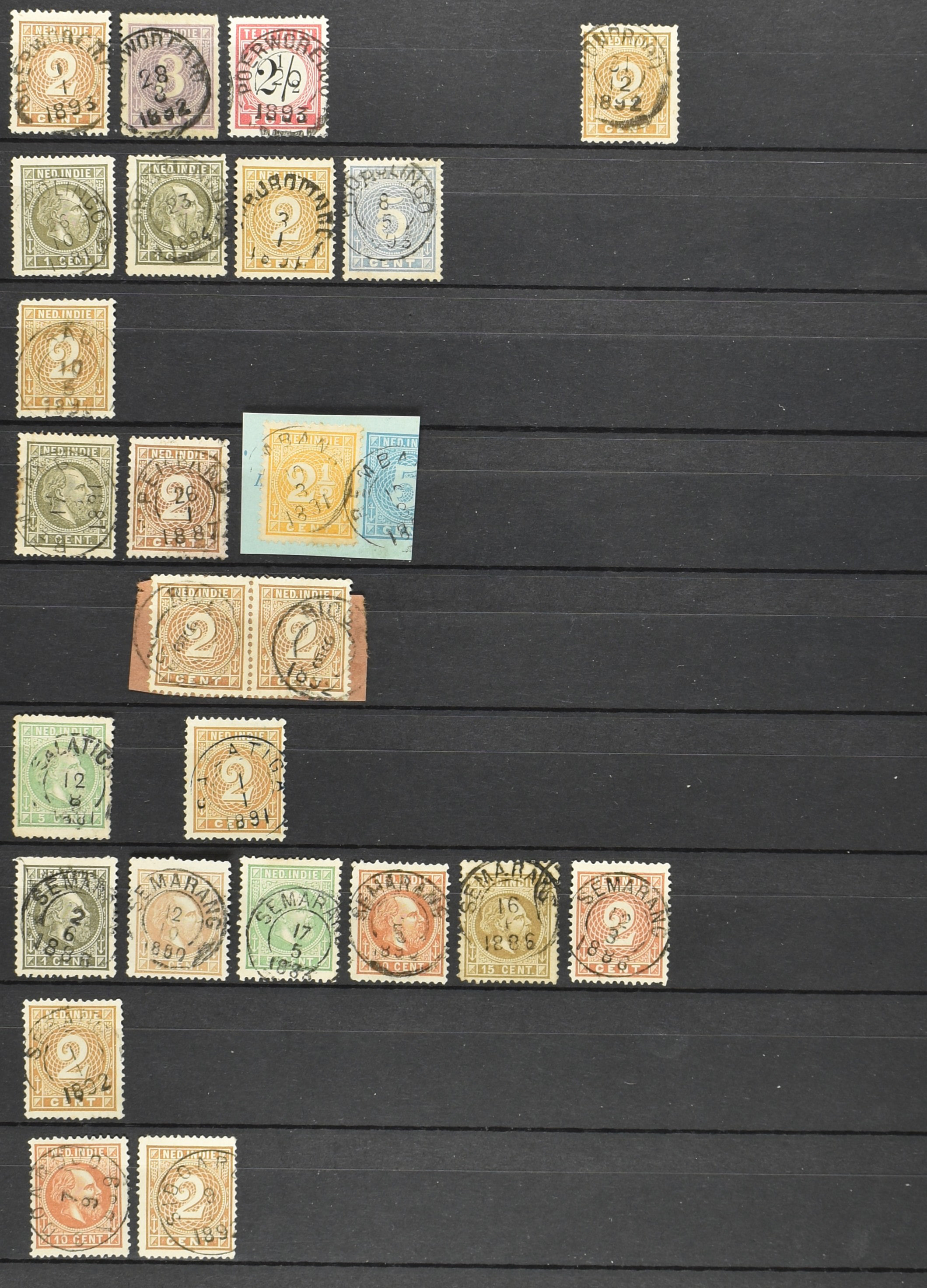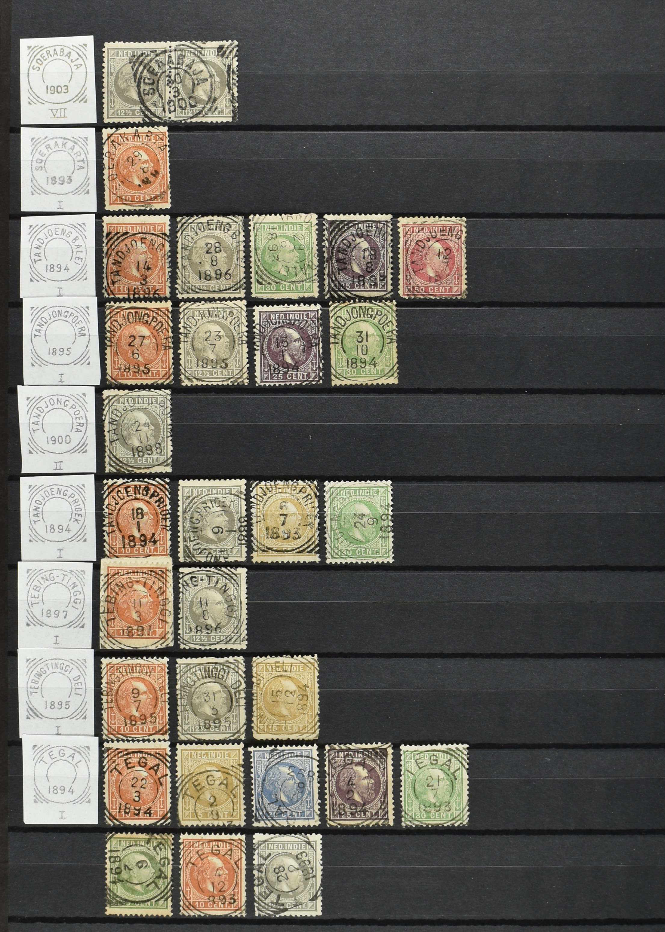2257 imageNED.- INDIË KLEINRONDSTEMPELS, aardige verzameling op losse zegels van verschillende emissies en waarden w.o. schaarse kantoren op losse zegels als Grisee, Karanganjer, Riouw, Tebingtinggi (met late datum 13-5-1893), Tebing Tinggi-Deli, etc. in insteekboek (Image) (Image2) (Image3) (Image4) (Image5) (Image6) (Image7) (Image8) (Image9) (Image10) (Image11) (Image12) (All Images)