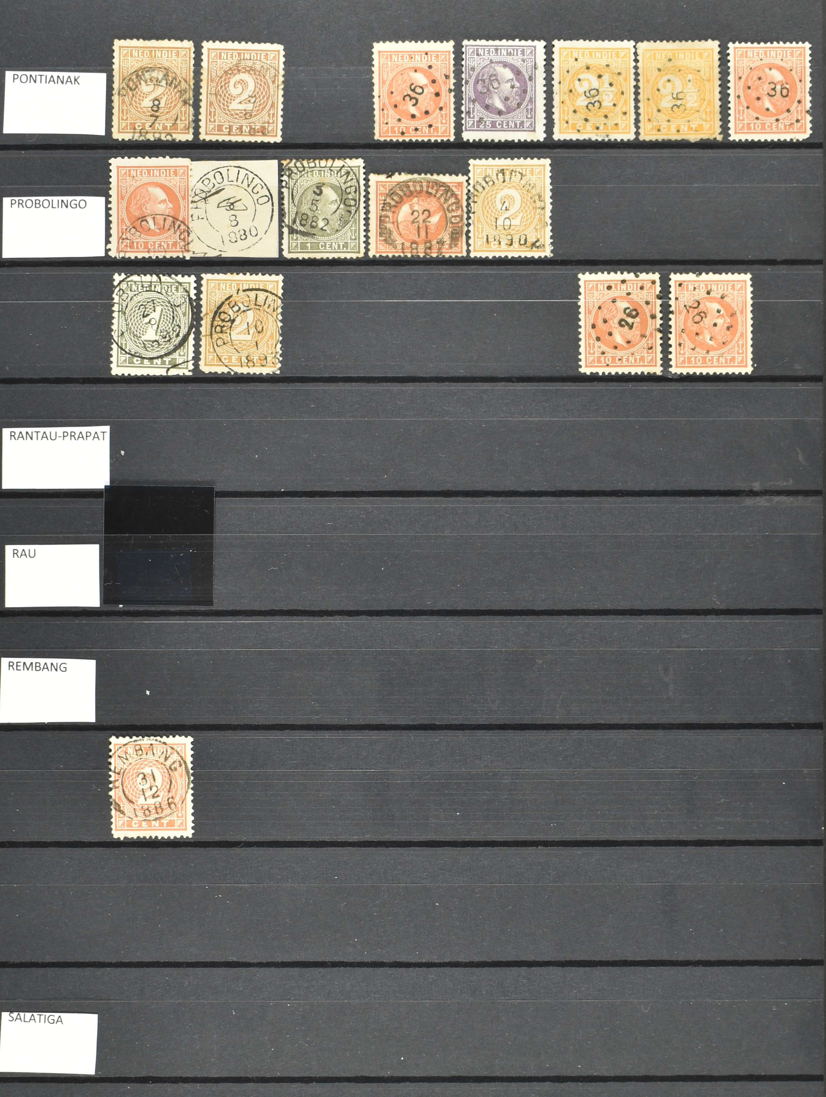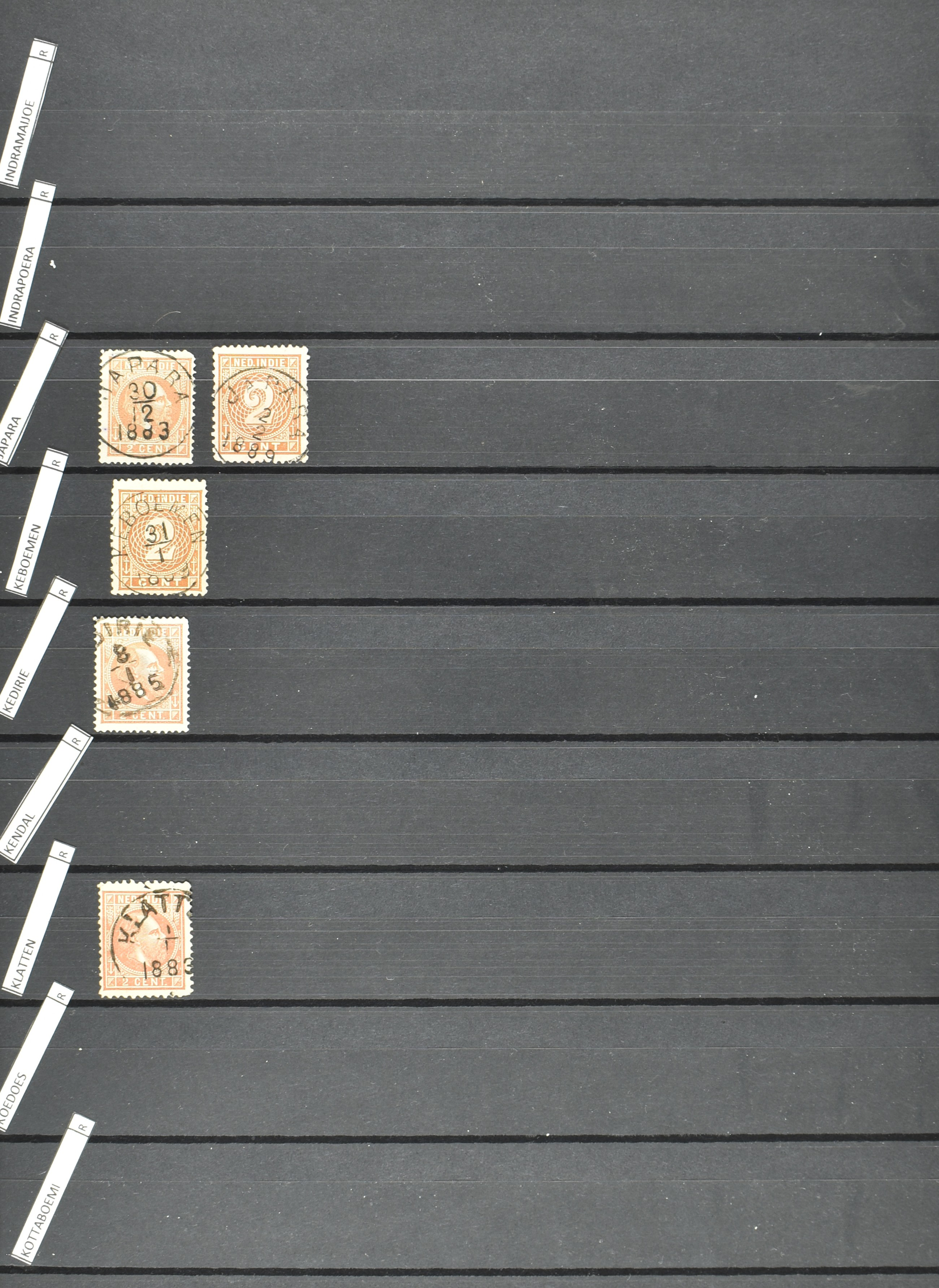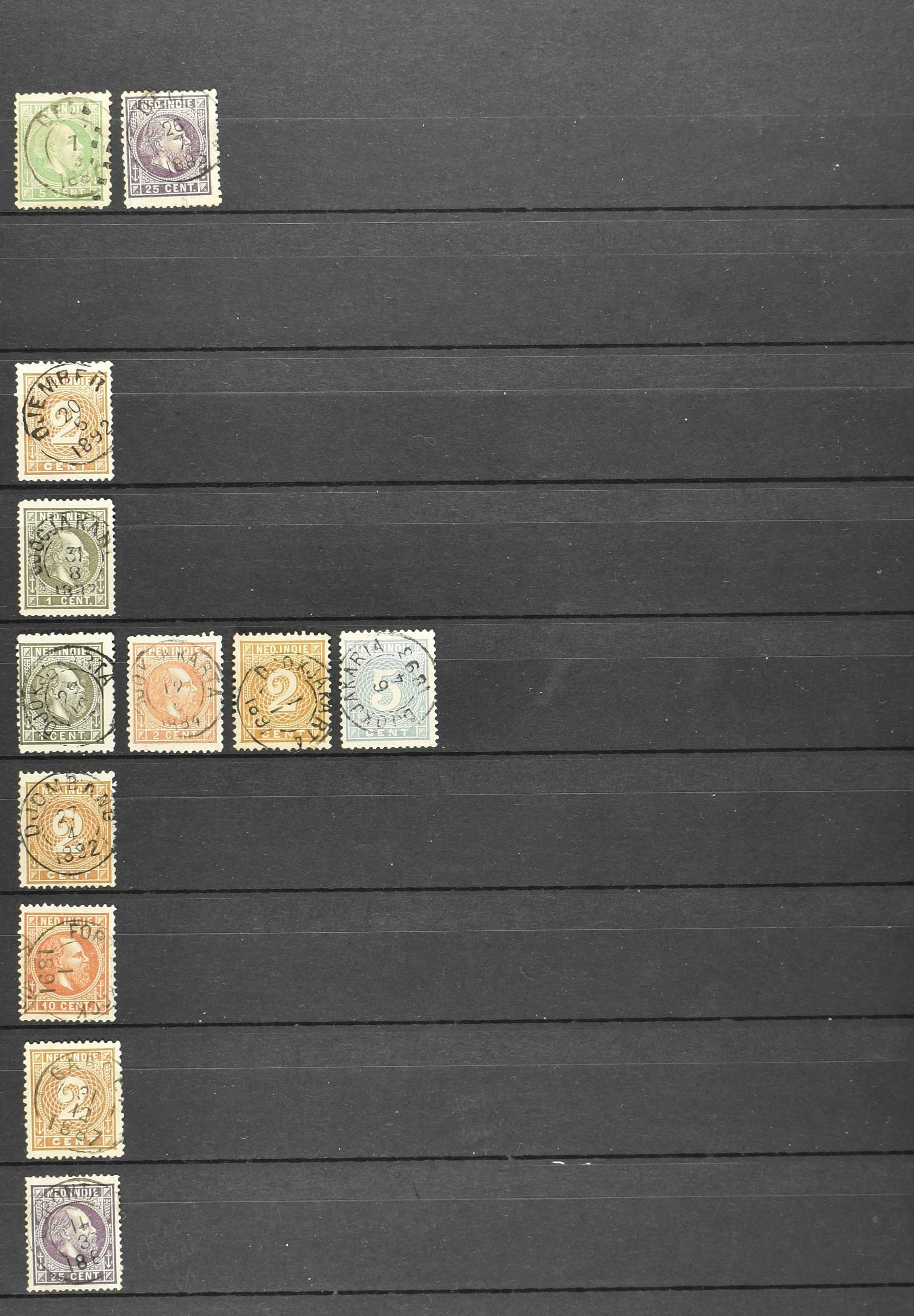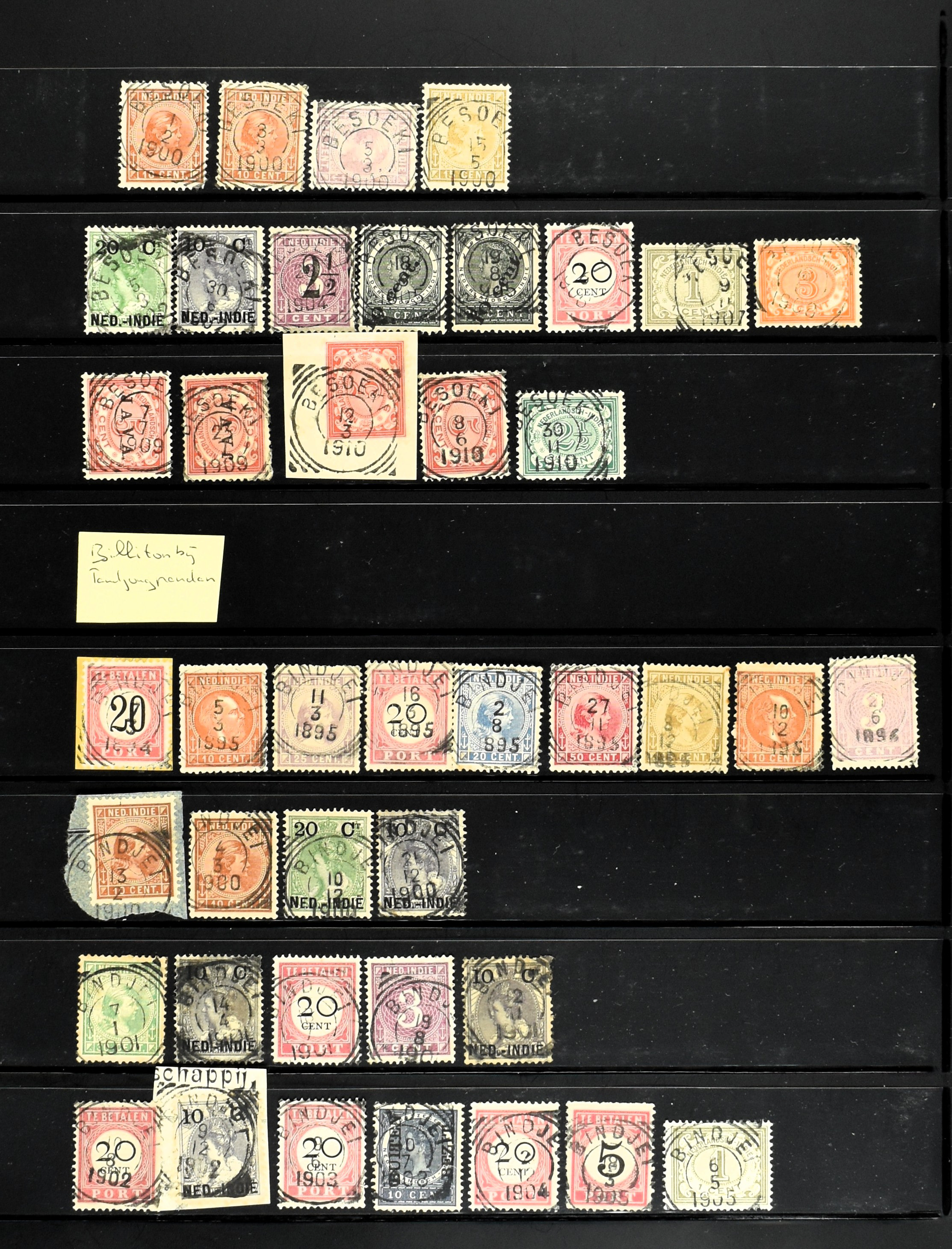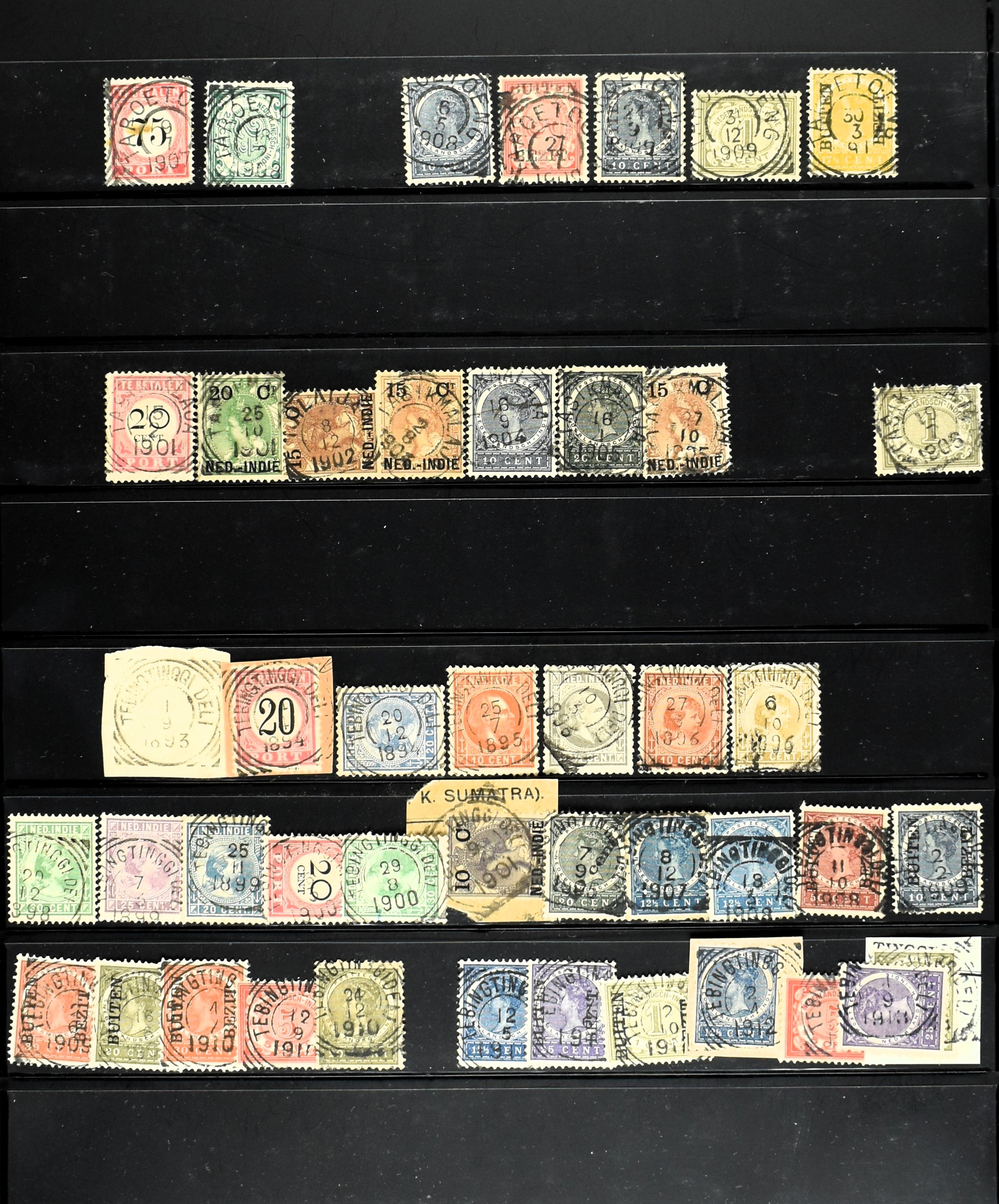2257 imageNED.- INDIË KLEINRONDSTEMPELS, aardige verzameling op losse zegels van verschillende emissies en waarden w.o. schaarse kantoren op losse zegels als Grisee, Karanganjer, Riouw, Tebingtinggi (met late datum 13-5-1893), Tebing Tinggi-Deli, etc. in insteekboek (Image) (Image2) (Image3) (Image4) (Image5) (Image6) (Image7) (Image8) (Image9) (Image10) (Image11) (Image12) (All Images)
