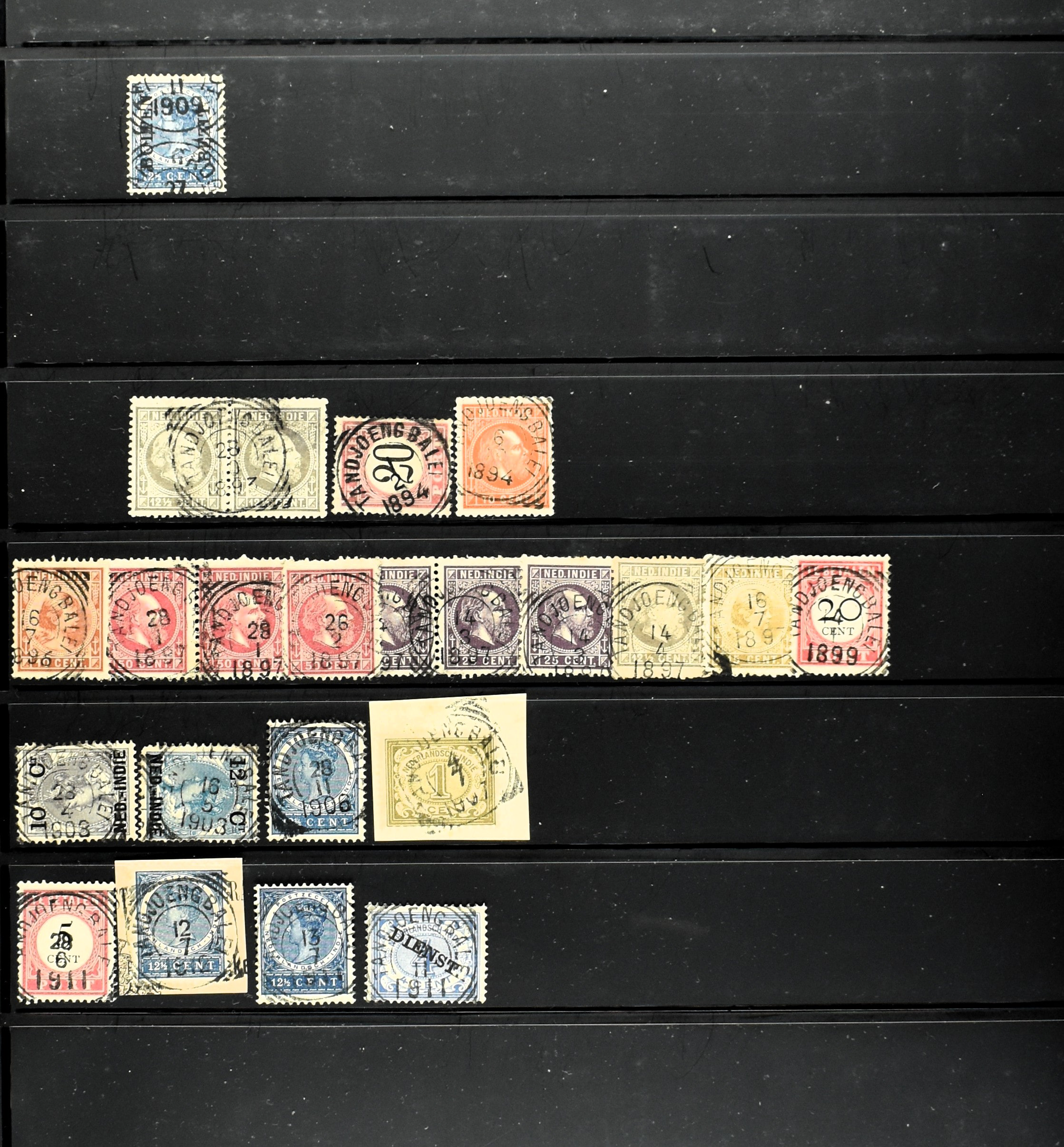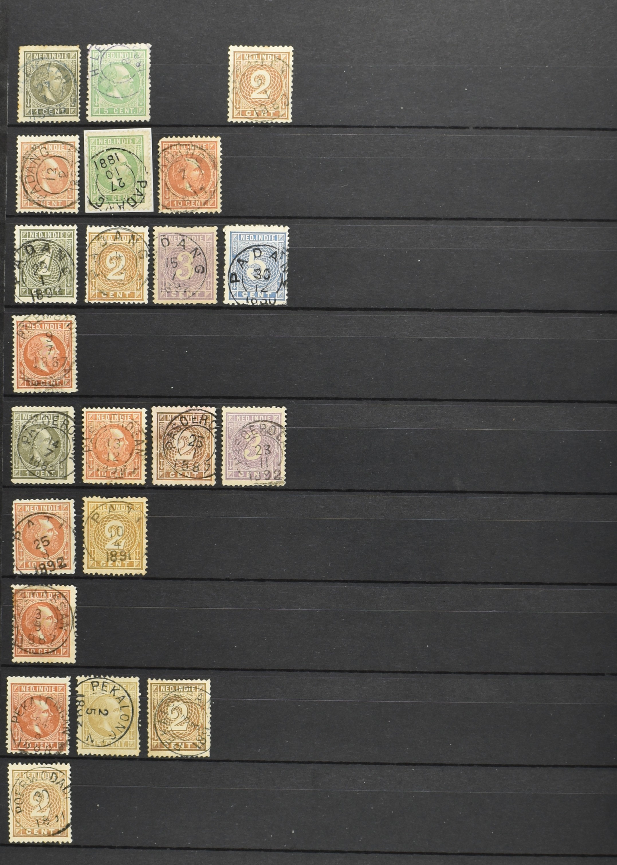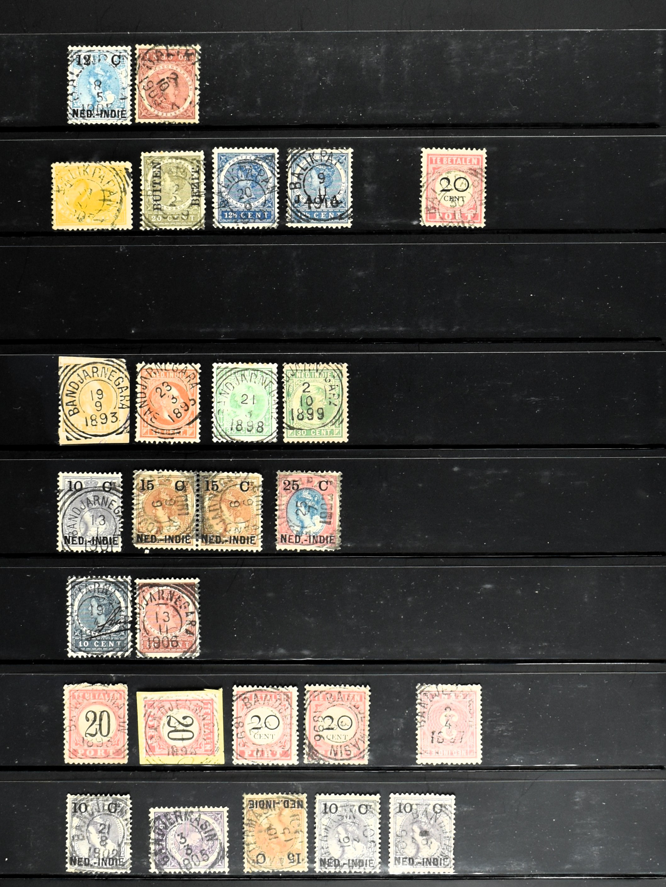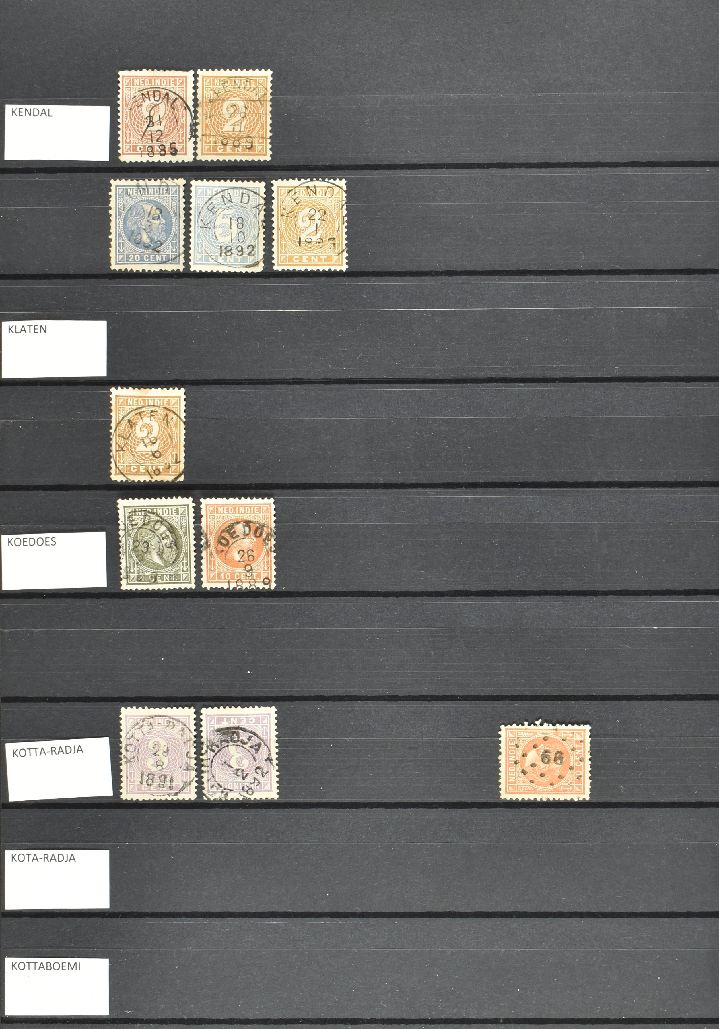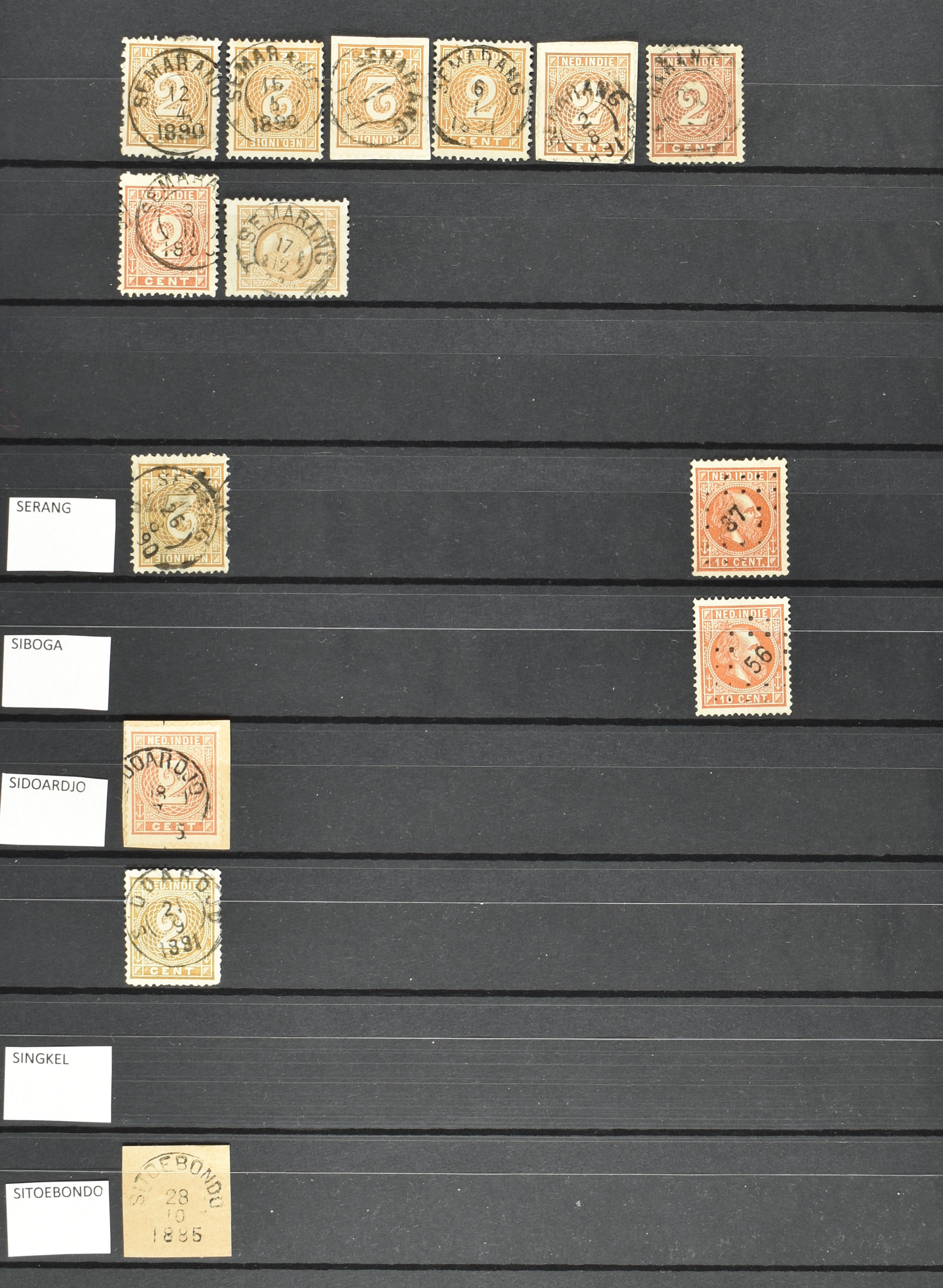 2257 imageNED.- INDIË KLEINRONDSTEMPELS, aardige verzameling op losse zegels van verschillende emissies en waarden w.o. schaarse kantoren op losse zegels als Grisee, Karanganjer, Riouw, Tebingtinggi (met late datum 13-5-1893), Tebing Tinggi-Deli, etc. in insteekboek (Image) (Image2) (Image3) (Image4) (Image5) (Image6) (Image7) (Image8) (Image9) (Image10) (Image11) (Image12) (All Images)