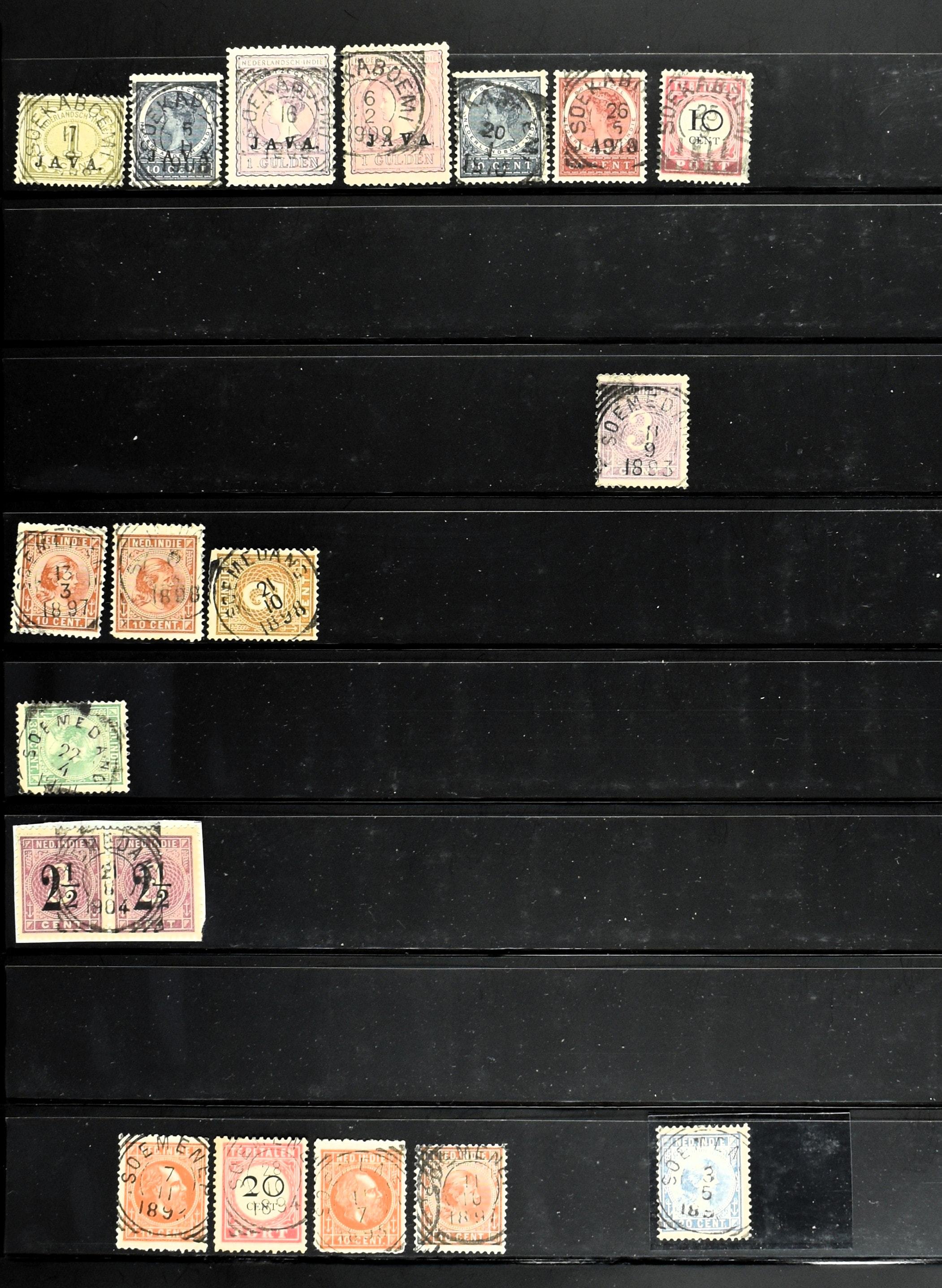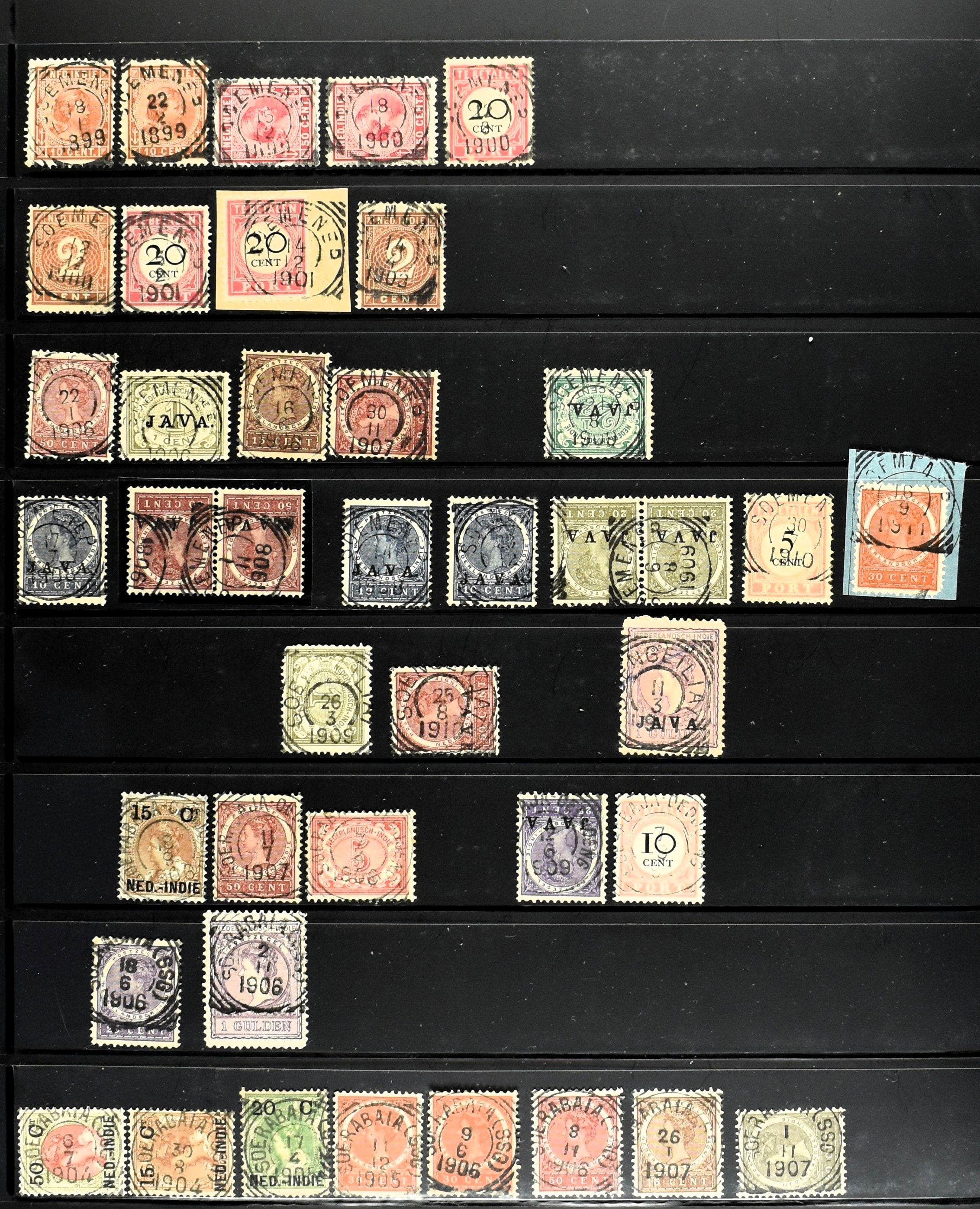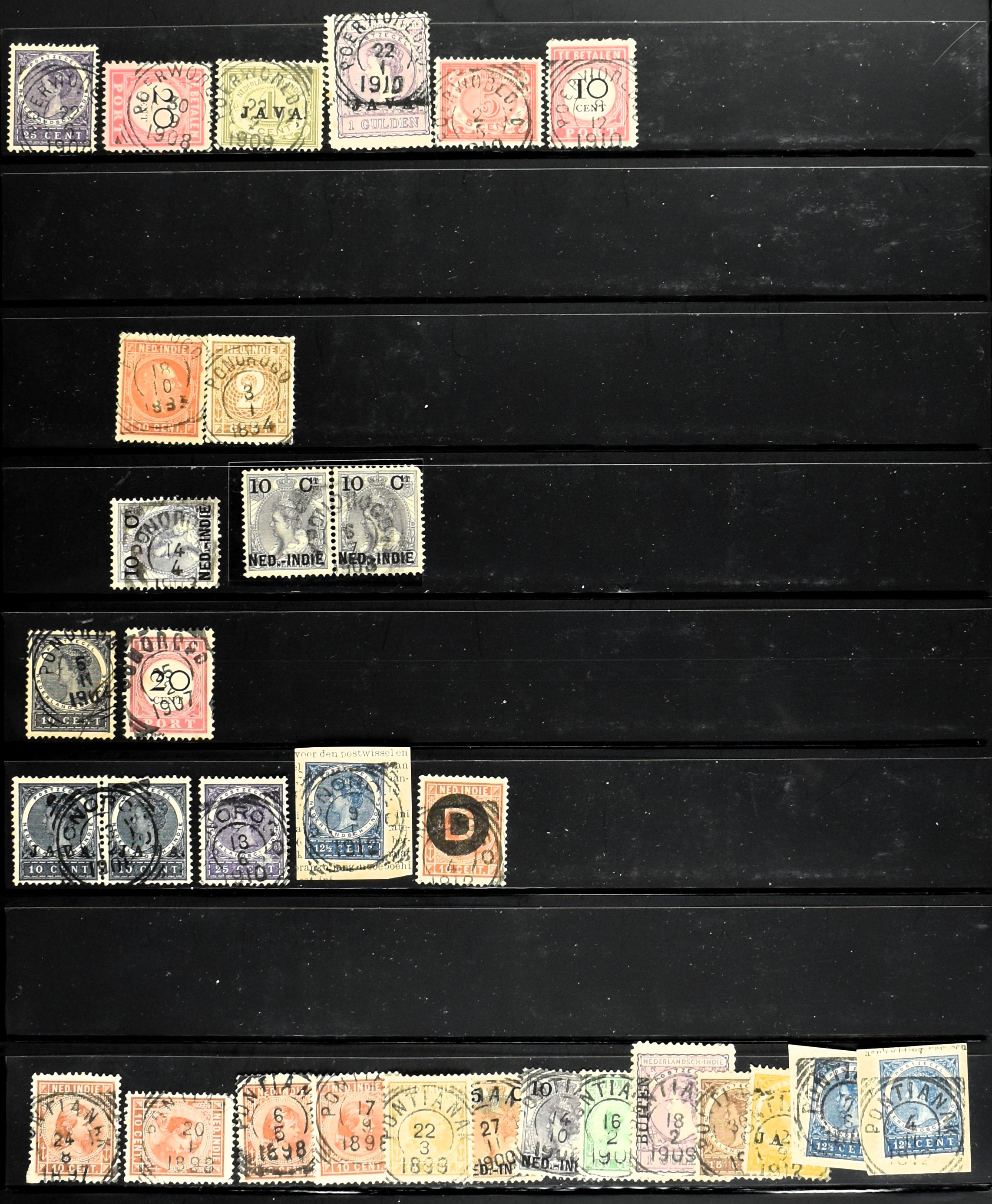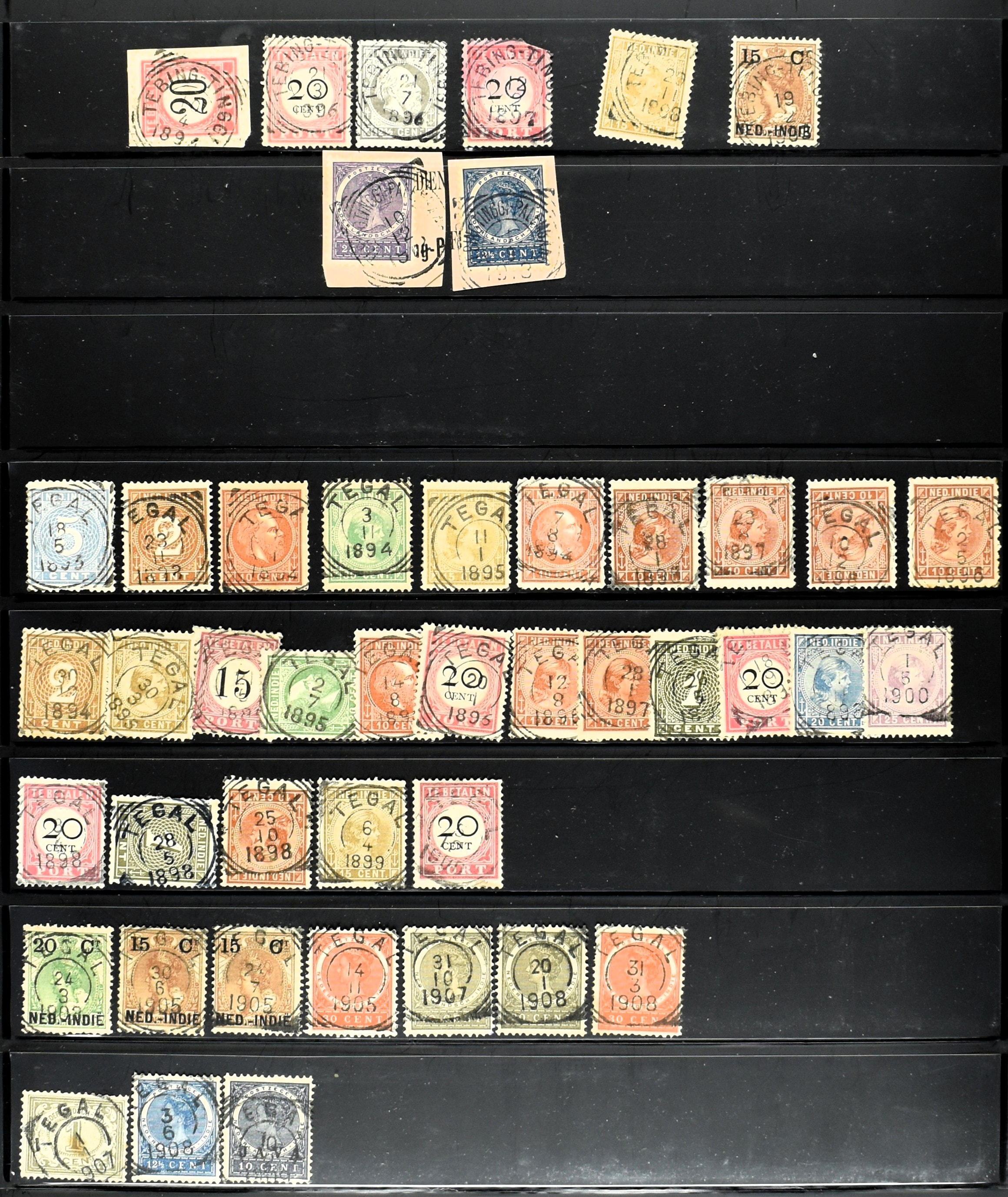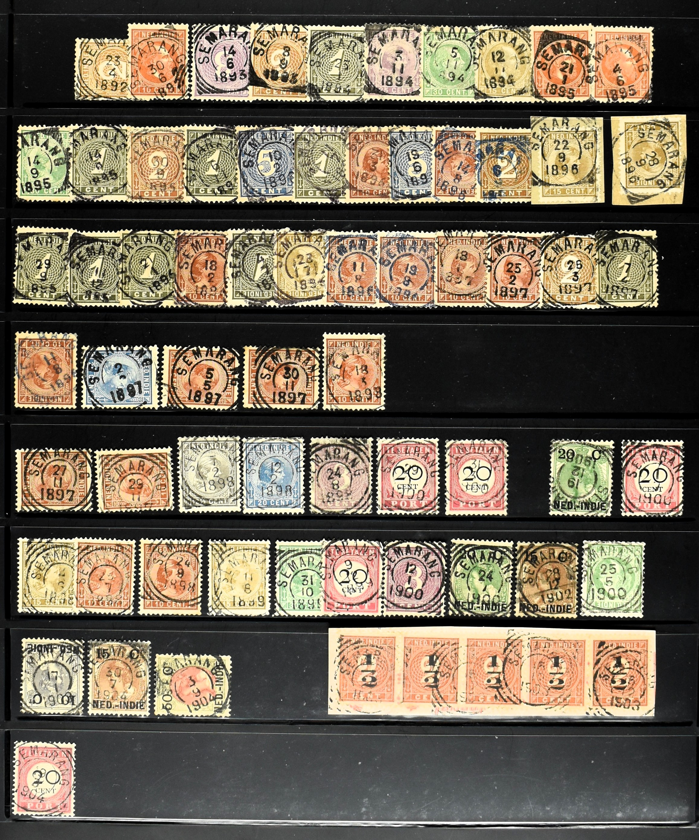 2257 imageNED.- INDIË KLEINRONDSTEMPELS, aardige verzameling op losse zegels van verschillende emissies en waarden w.o. schaarse kantoren op losse zegels als Grisee, Karanganjer, Riouw, Tebingtinggi (met late datum 13-5-1893), Tebing Tinggi-Deli, etc. in insteekboek (Image) (Image2) (Image3) (Image4) (Image5) (Image6) (Image7) (Image8) (Image9) (Image10) (Image11) (Image12) (All Images)