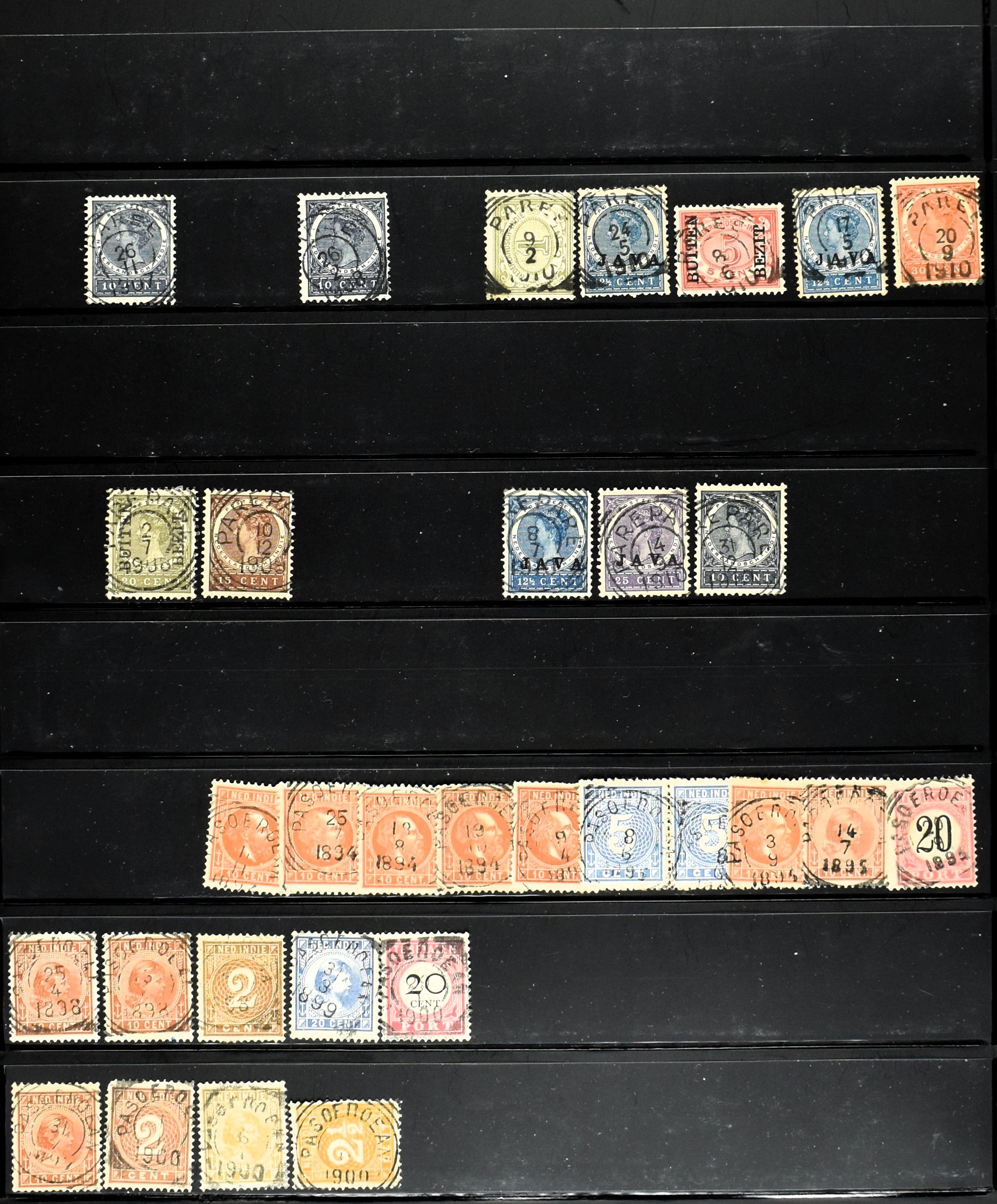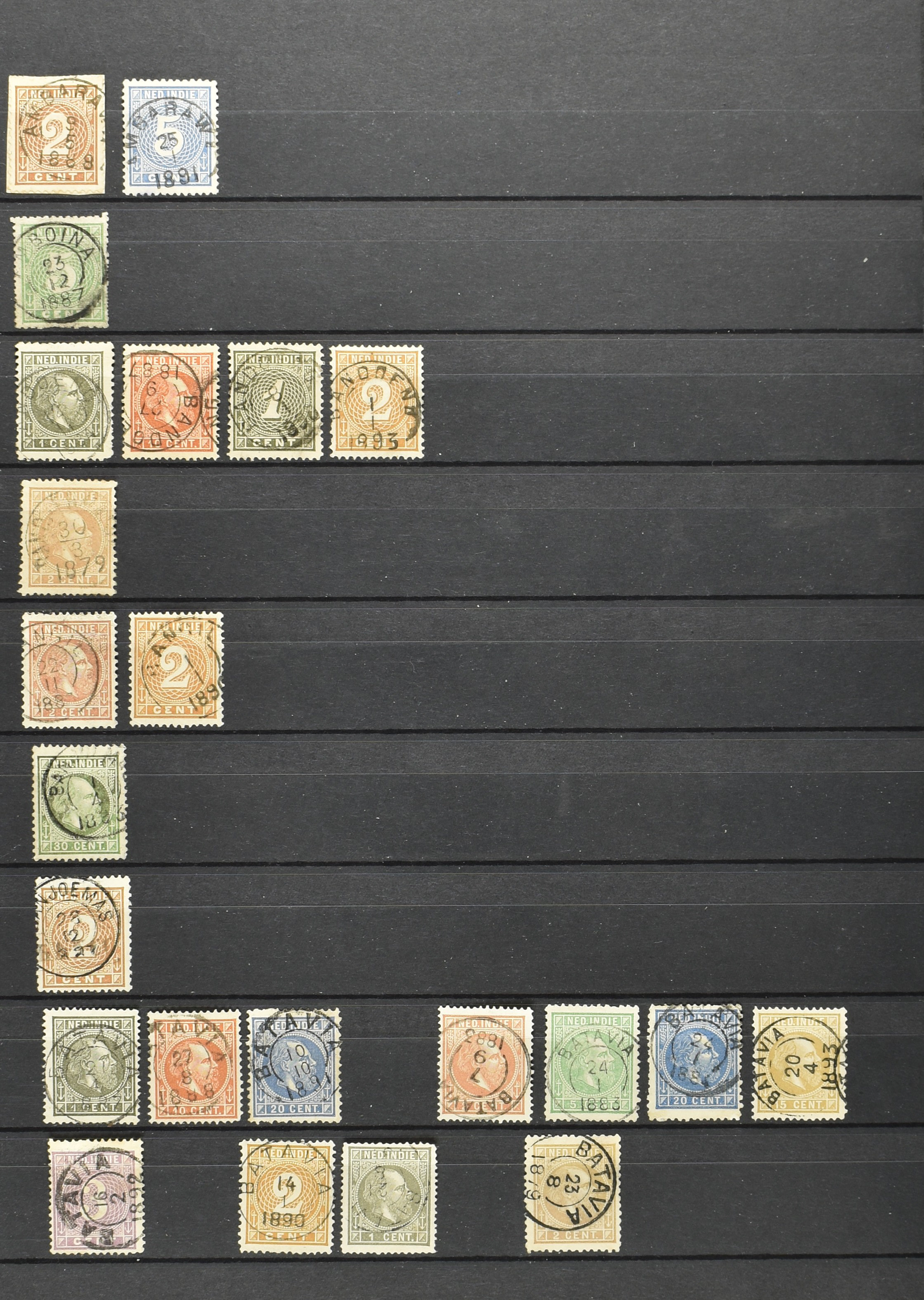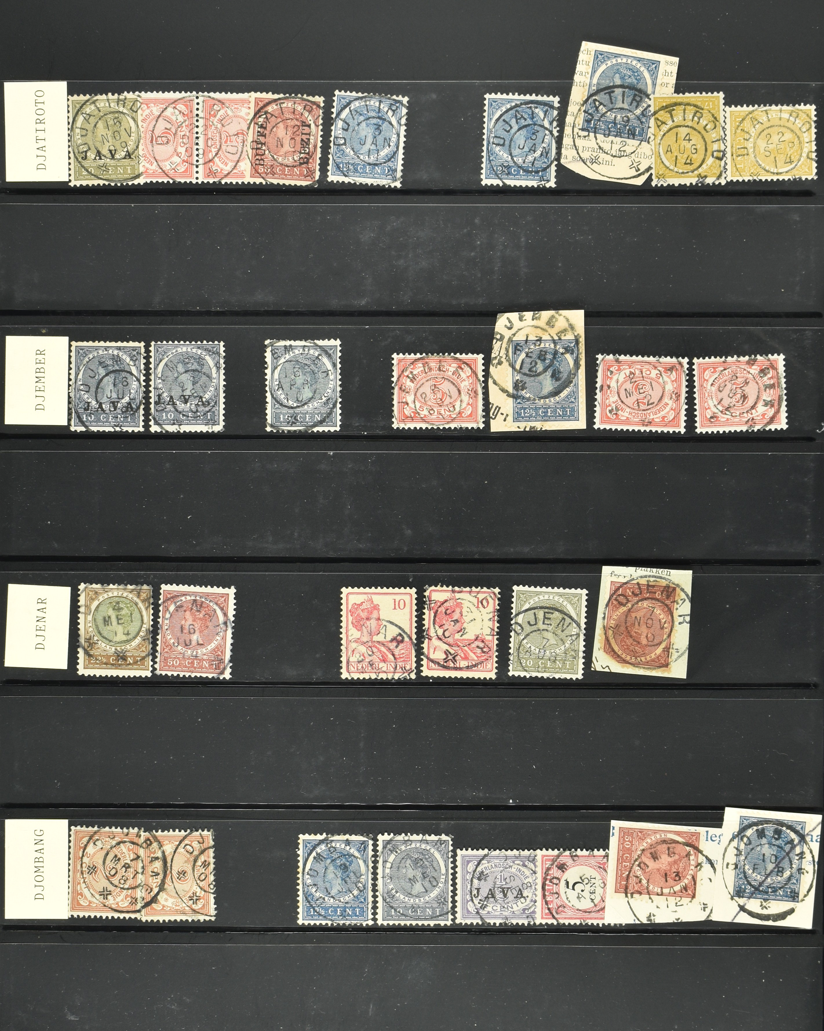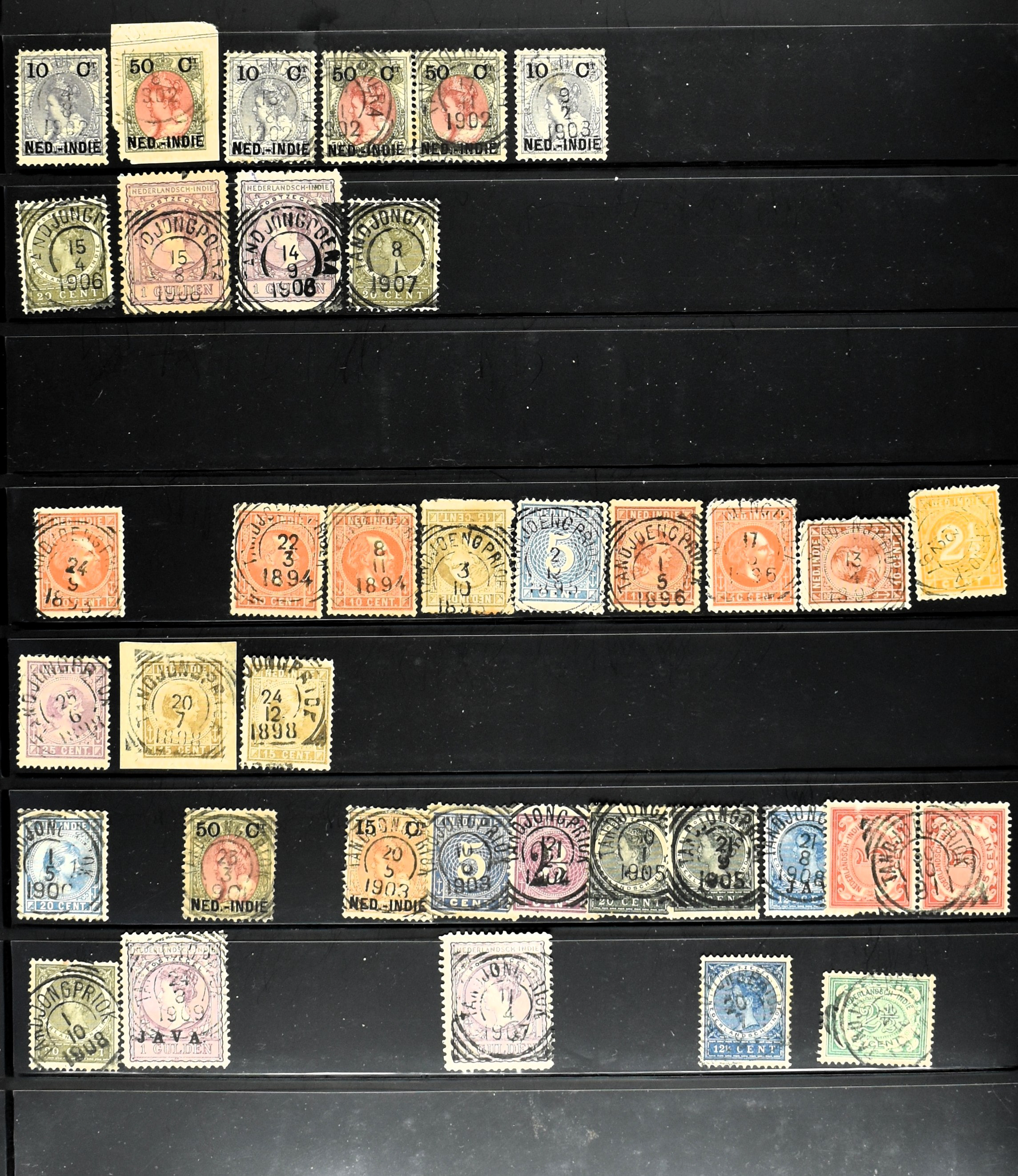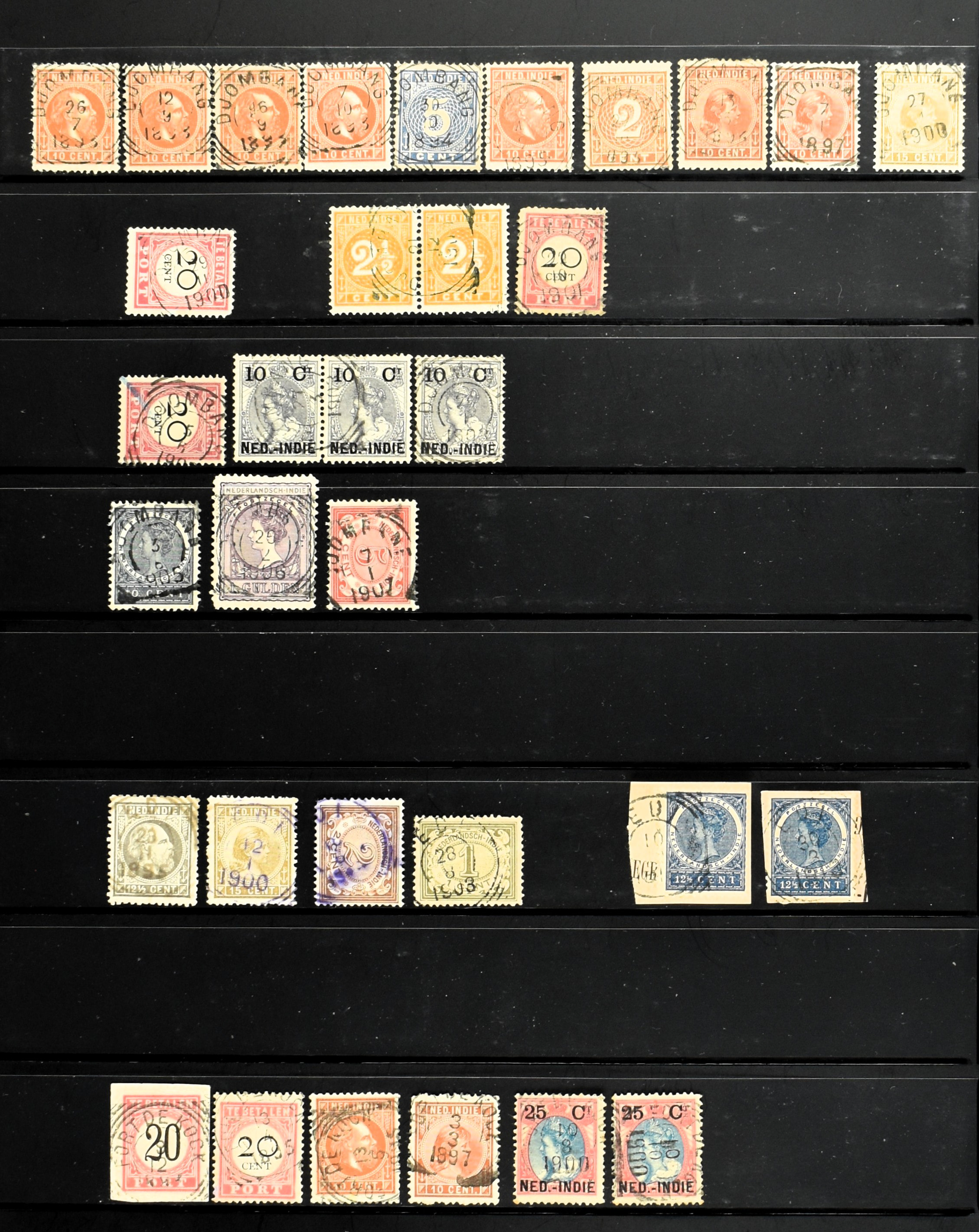 2257 imageNED.- INDIË KLEINRONDSTEMPELS, aardige verzameling op losse zegels van verschillende emissies en waarden w.o. schaarse kantoren op losse zegels als Grisee, Karanganjer, Riouw, Tebingtinggi (met late datum 13-5-1893), Tebing Tinggi-Deli, etc. in insteekboek (Image) (Image2) (Image3) (Image4) (Image5) (Image6) (Image7) (Image8) (Image9) (Image10) (Image11) (Image12) (All Images)