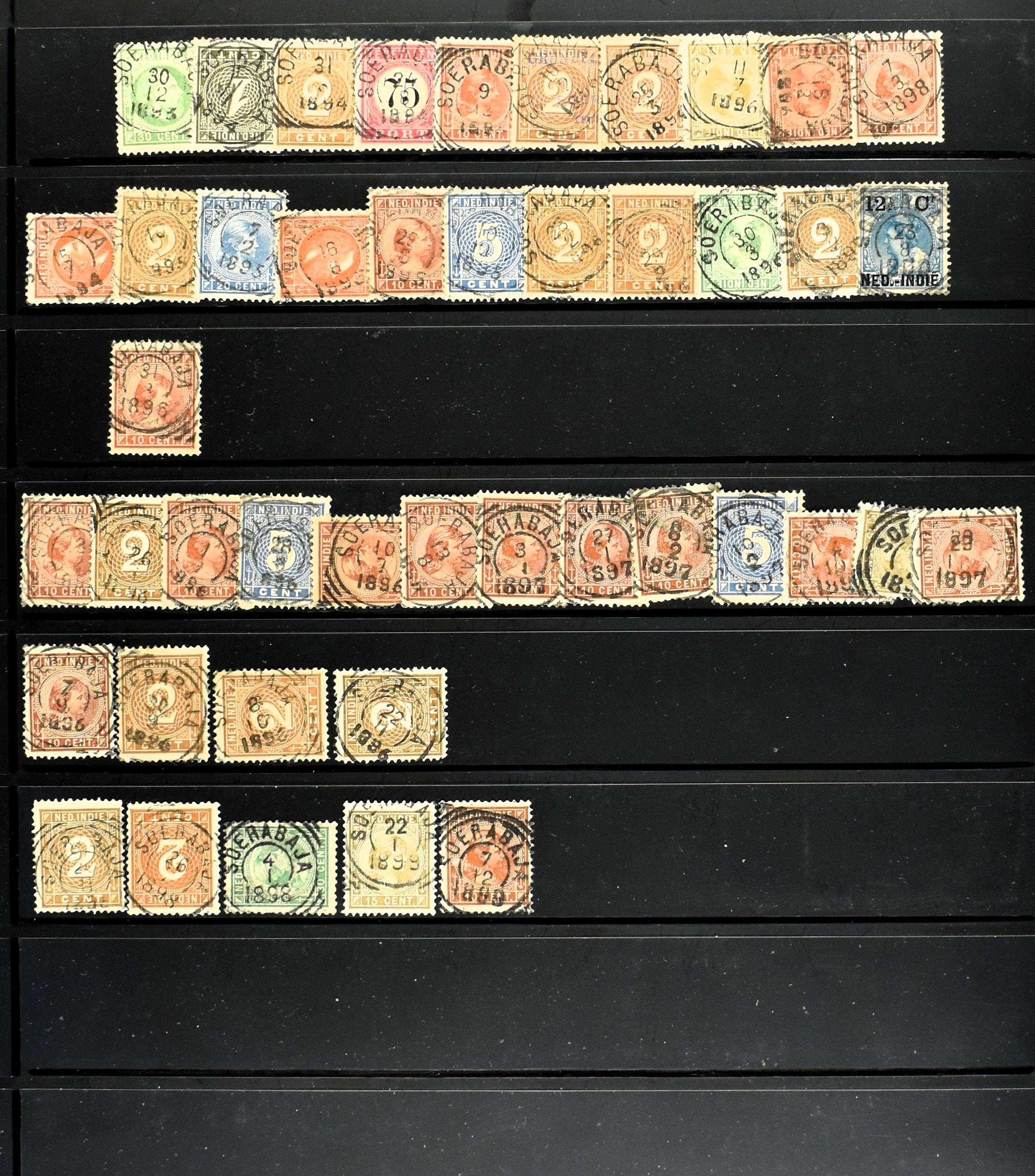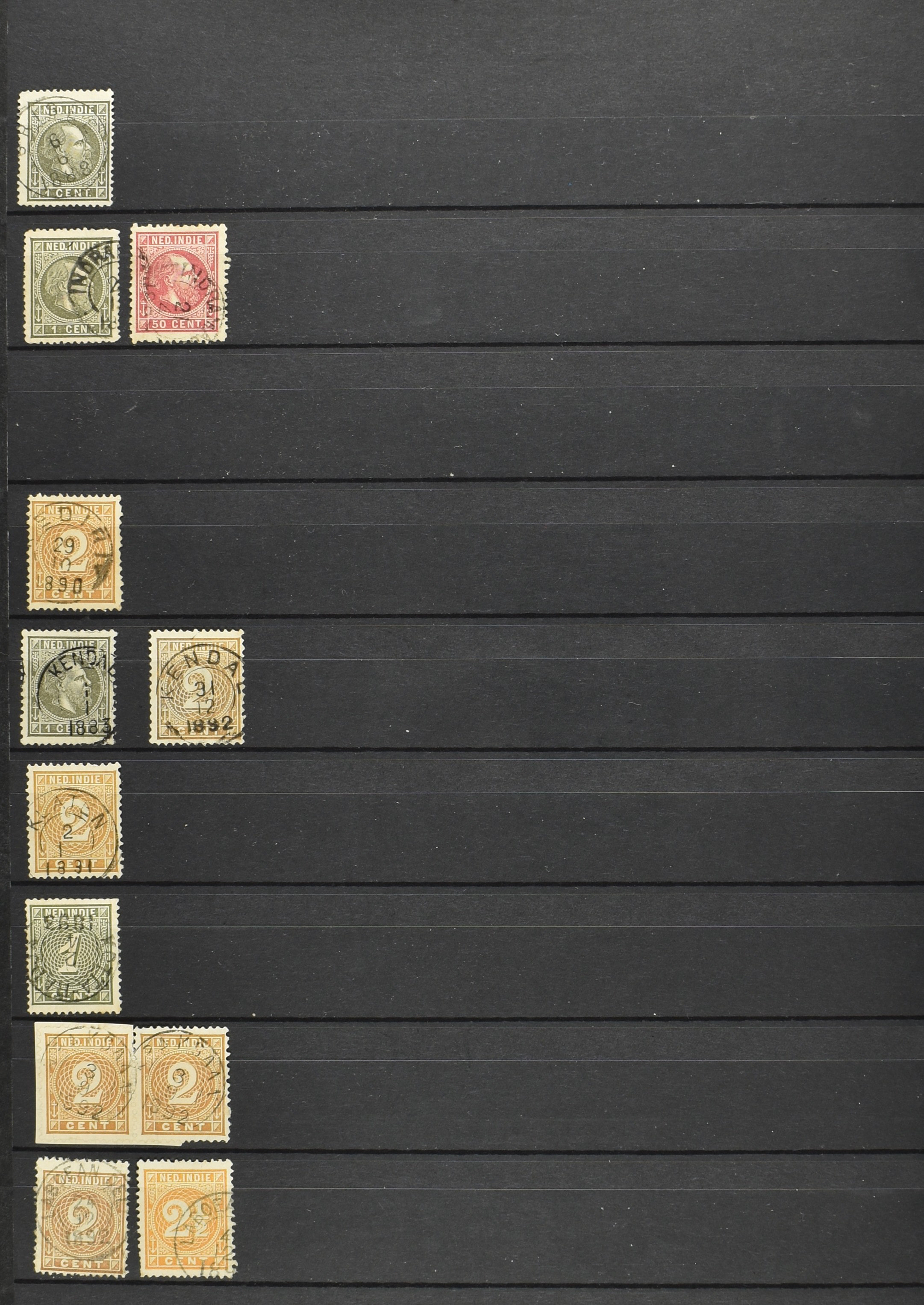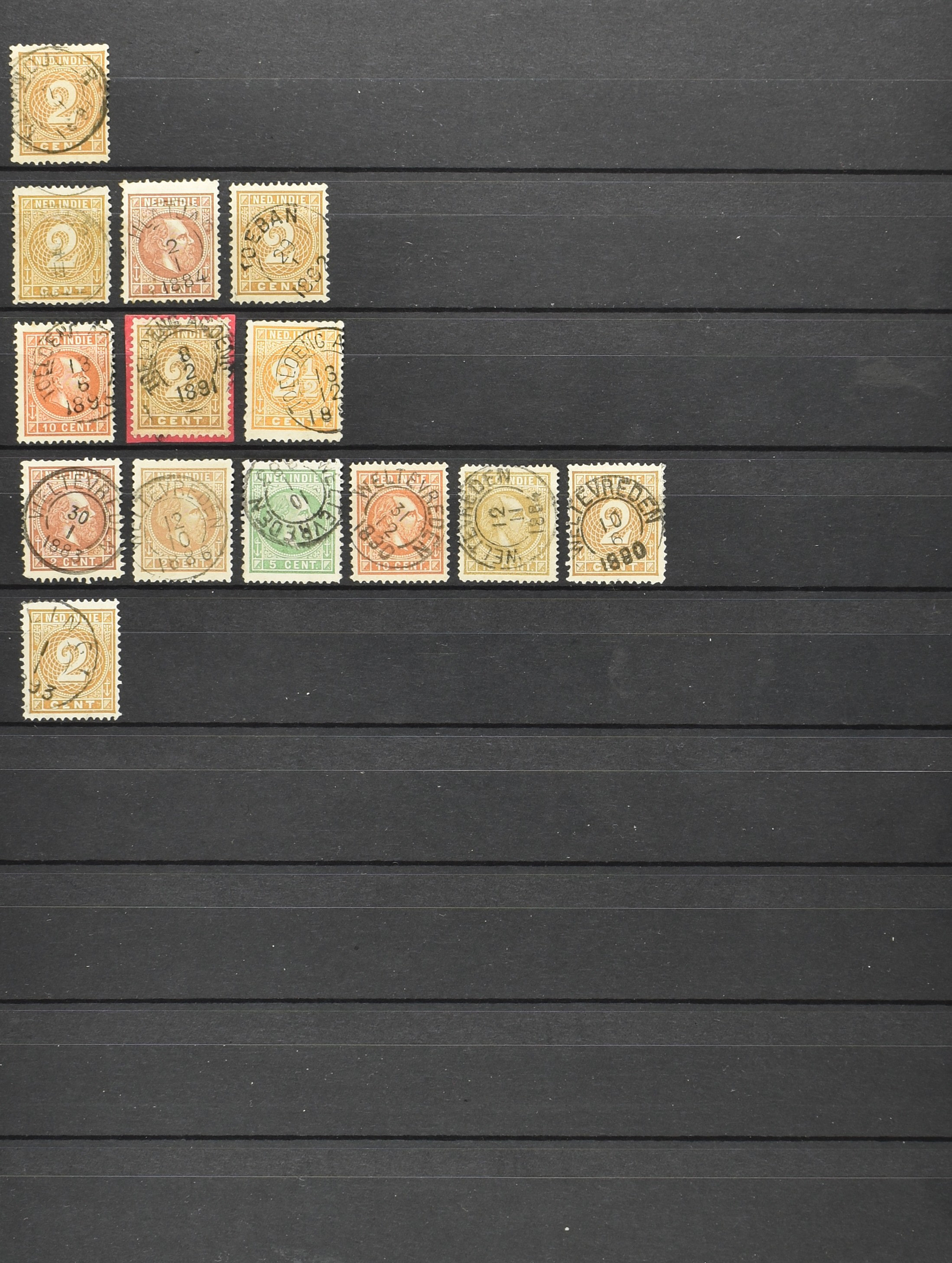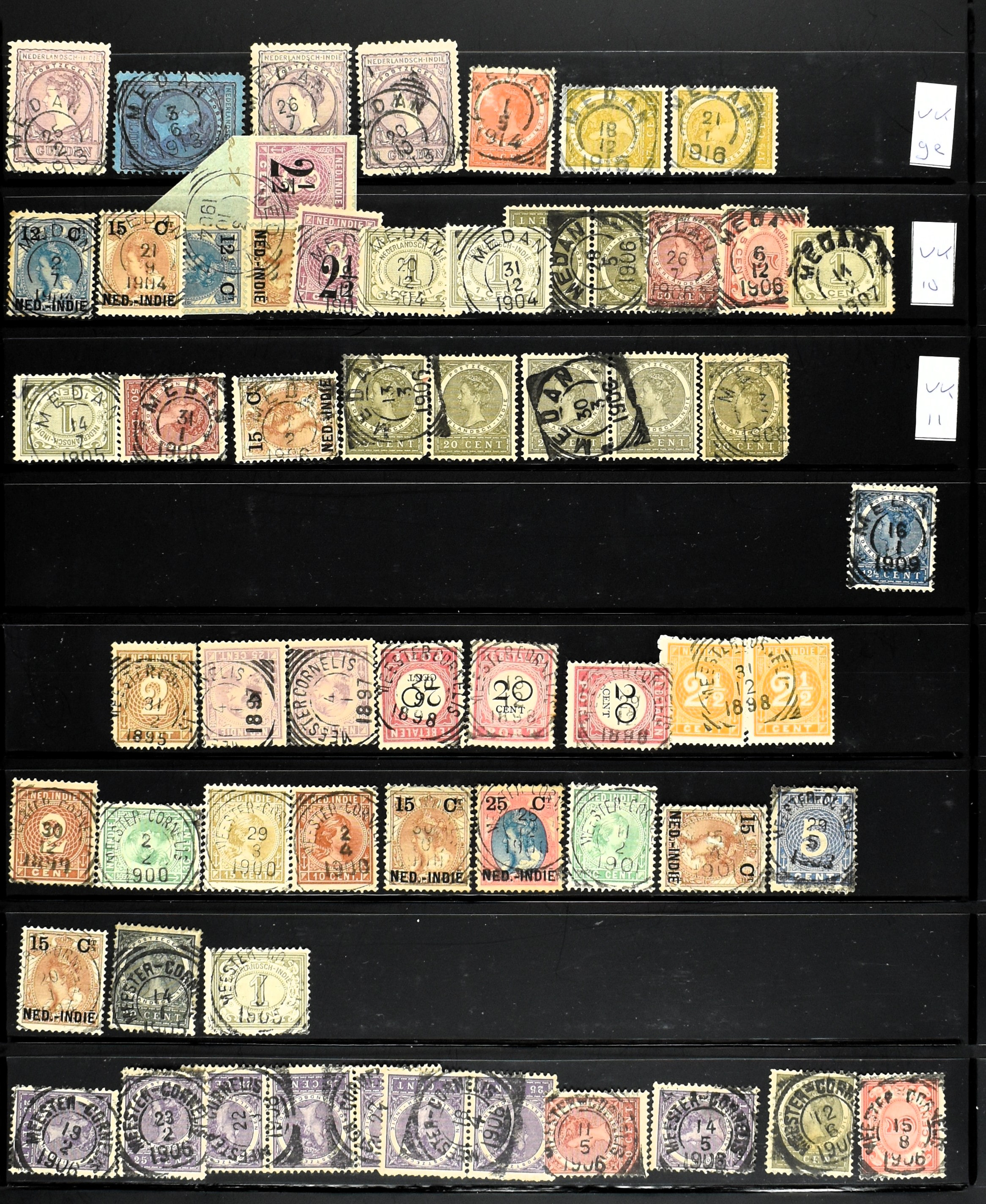 2257 imageNED.- INDIË KLEINRONDSTEMPELS, aardige verzameling op losse zegels van verschillende emissies en waarden w.o. schaarse kantoren op losse zegels als Grisee, Karanganjer, Riouw, Tebingtinggi (met late datum 13-5-1893), Tebing Tinggi-Deli, etc. in insteekboek (Image) (Image2) (Image3) (Image4) (Image5) (Image6) (Image7) (Image8) (Image9) (Image10) (Image11) (Image12) (All Images)