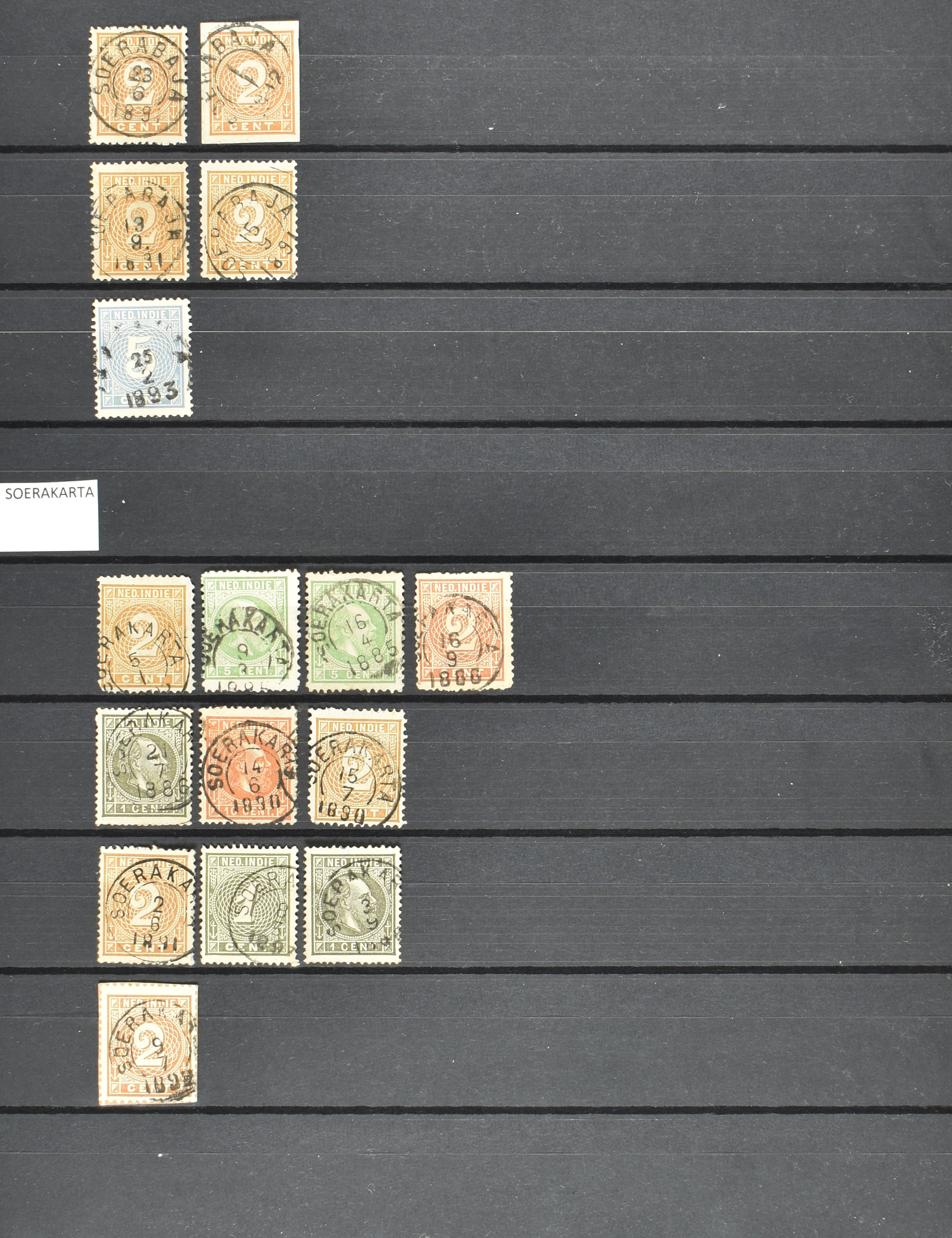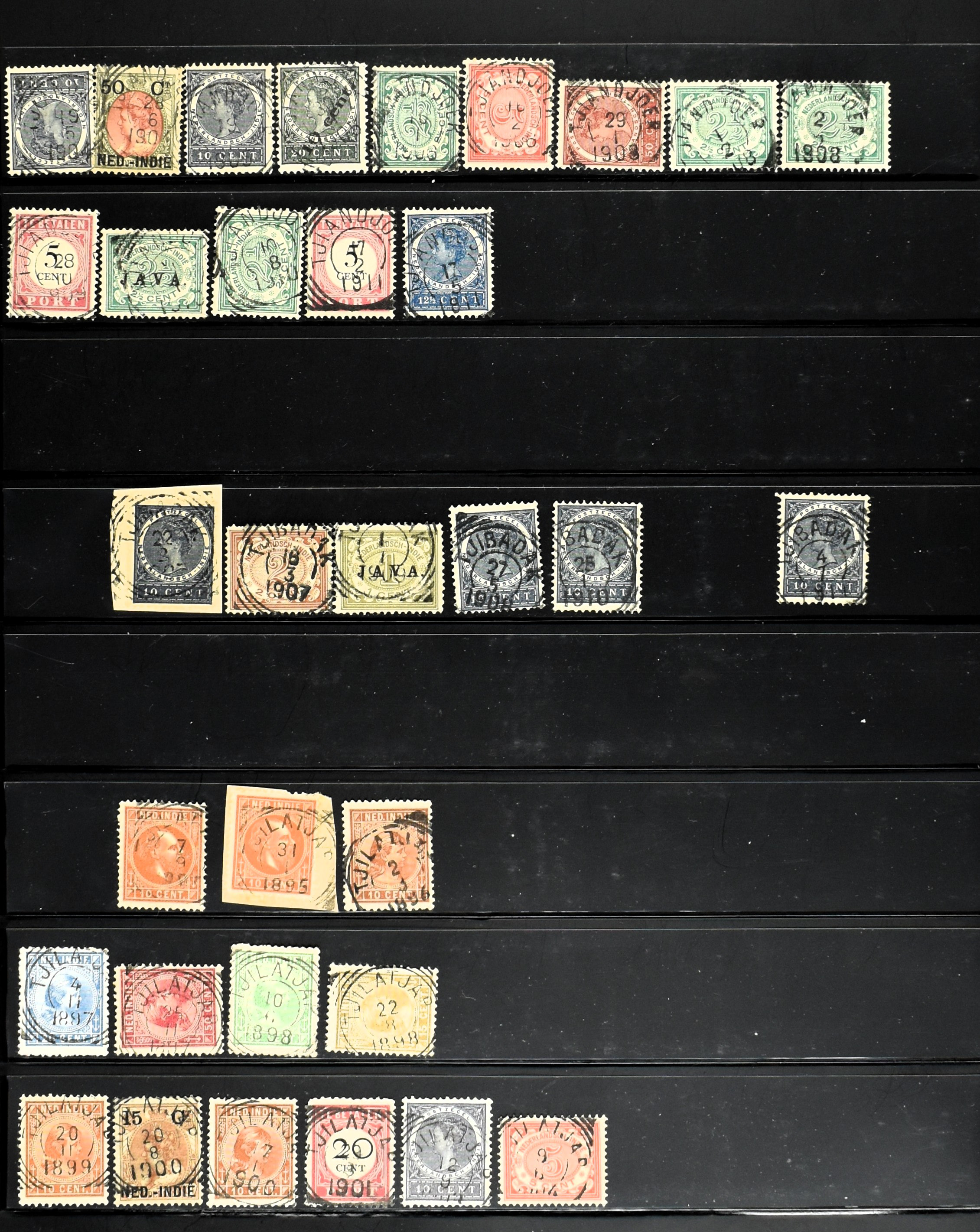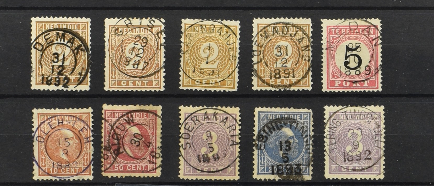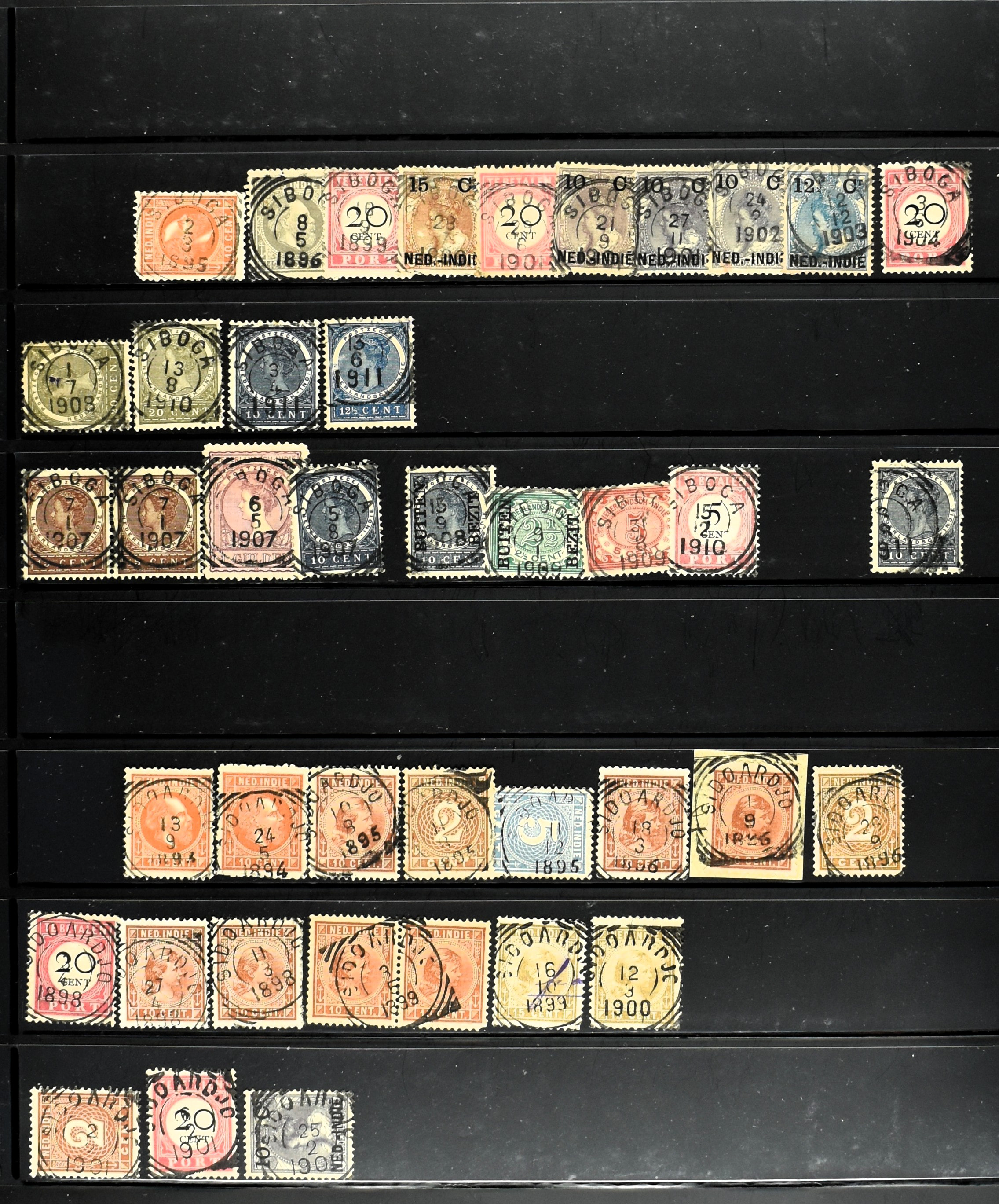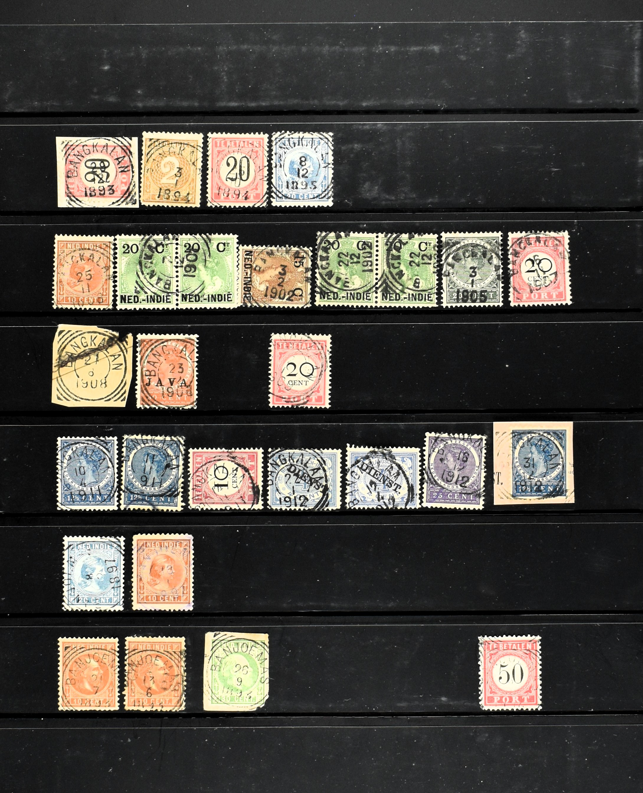 2257 imageNED.- INDIË KLEINRONDSTEMPELS, aardige verzameling op losse zegels van verschillende emissies en waarden w.o. schaarse kantoren op losse zegels als Grisee, Karanganjer, Riouw, Tebingtinggi (met late datum 13-5-1893), Tebing Tinggi-Deli, etc. in insteekboek (Image) (Image2) (Image3) (Image4) (Image5) (Image6) (Image7) (Image8) (Image9) (Image10) (Image11) (Image12) (All Images)