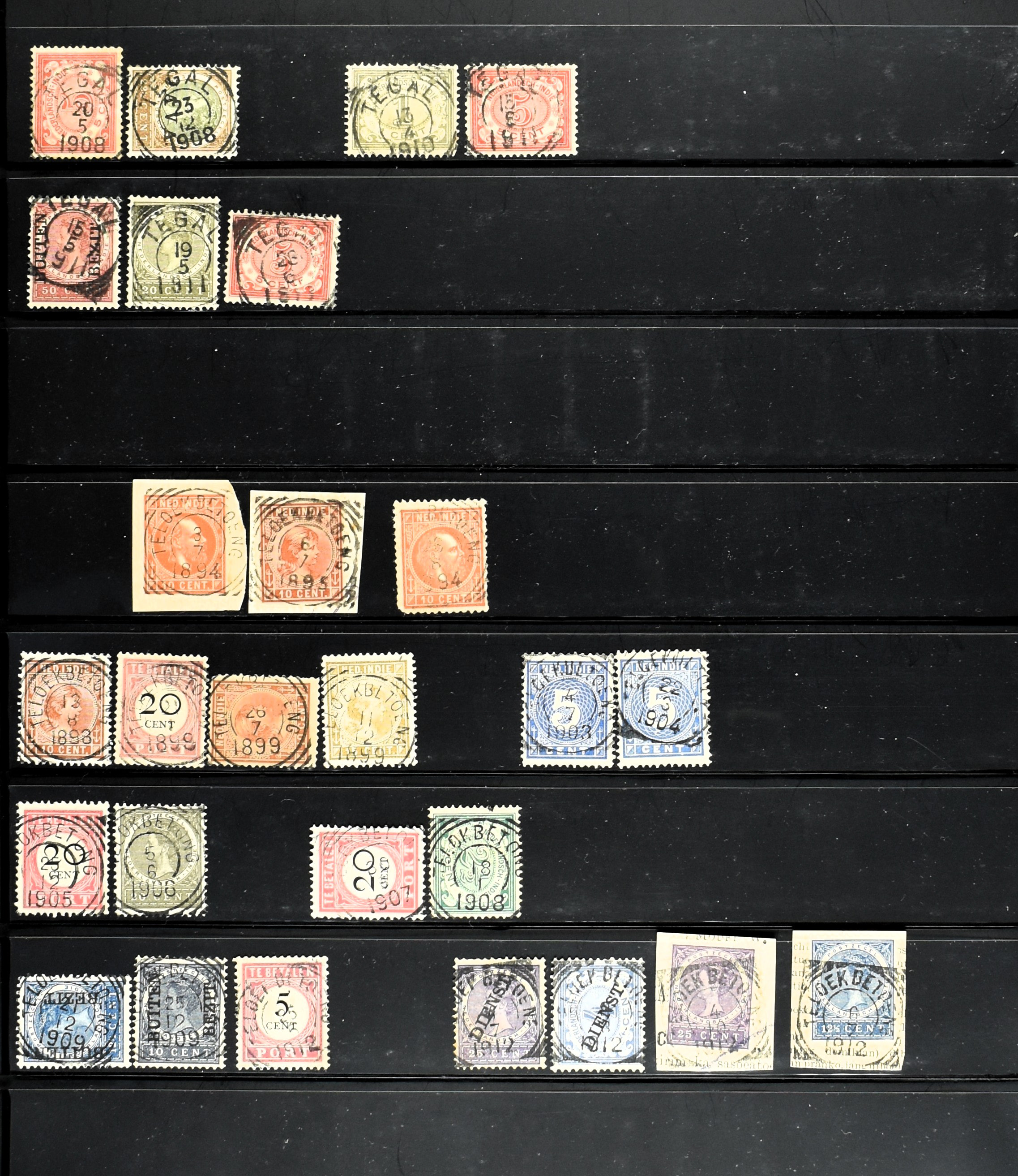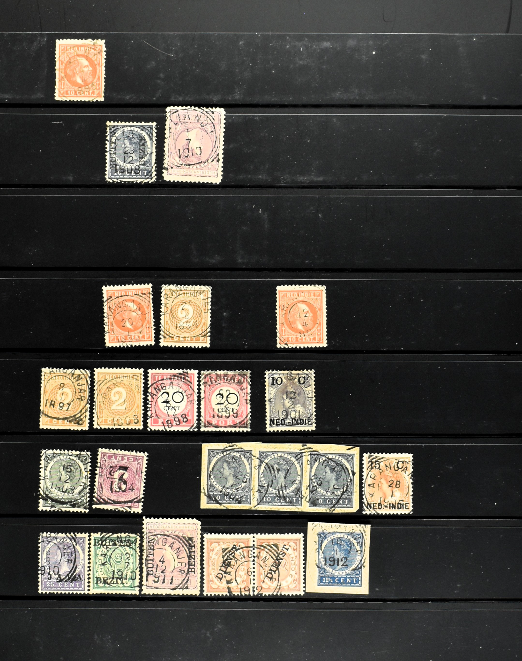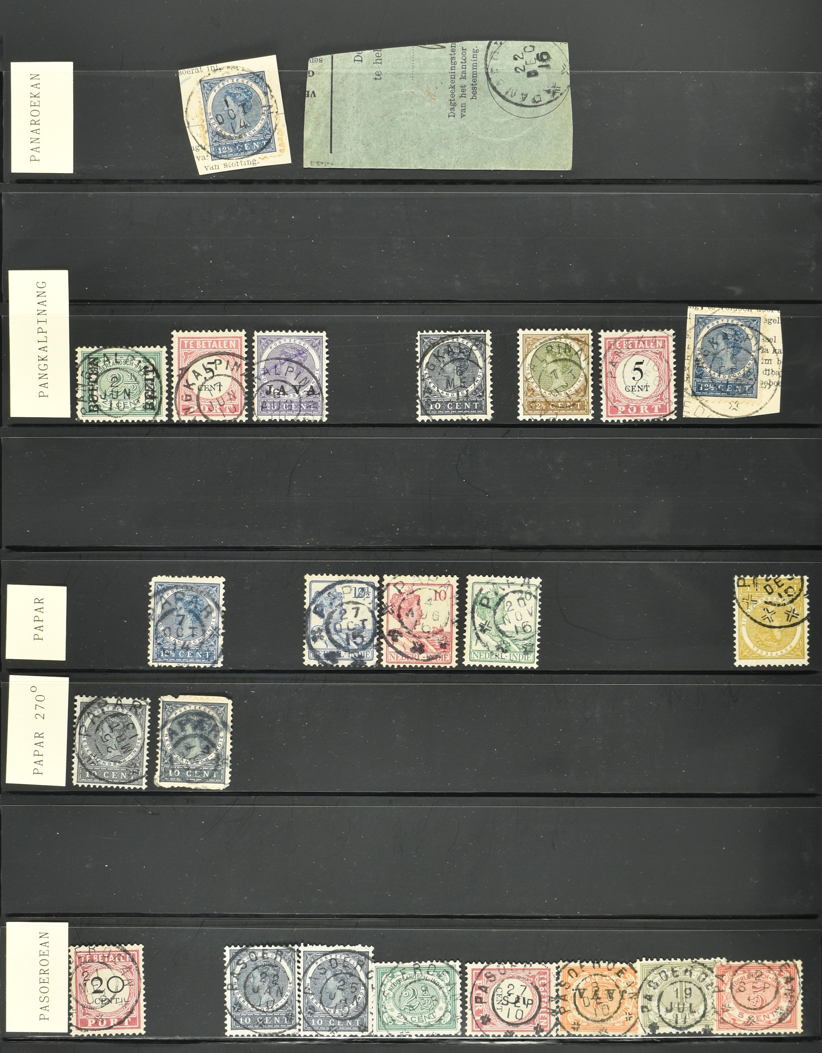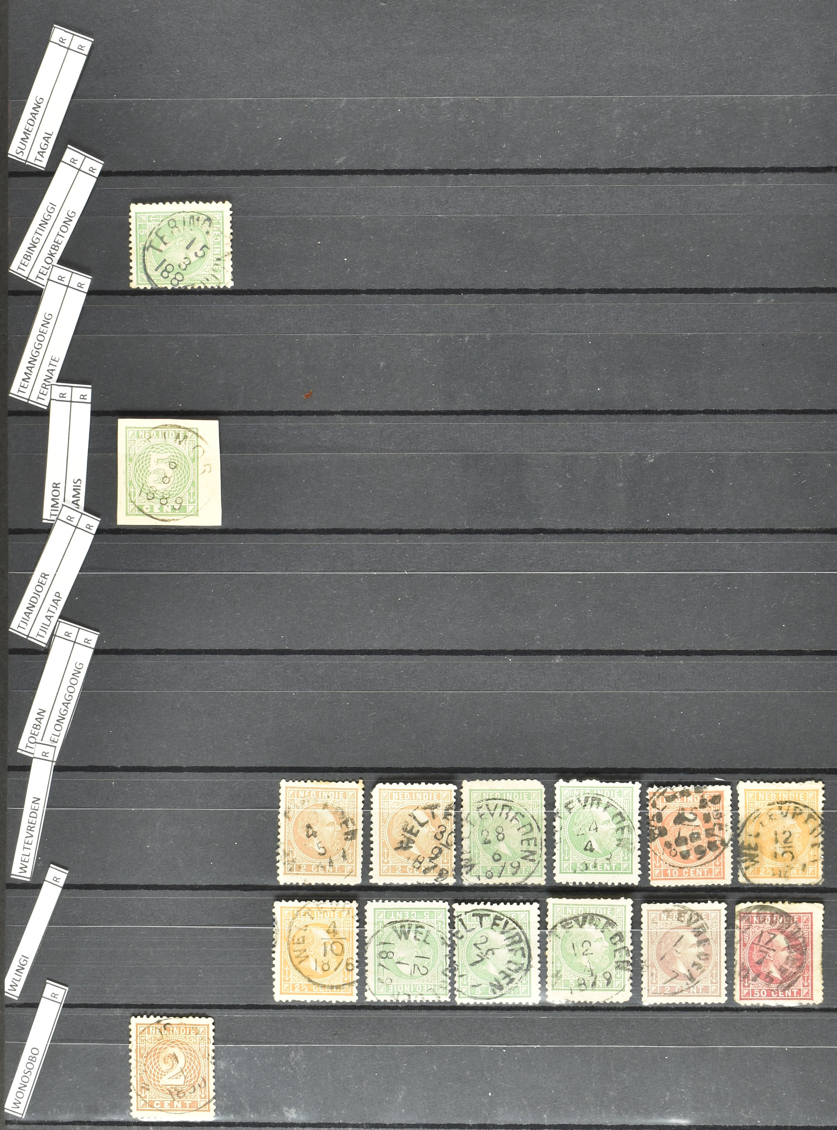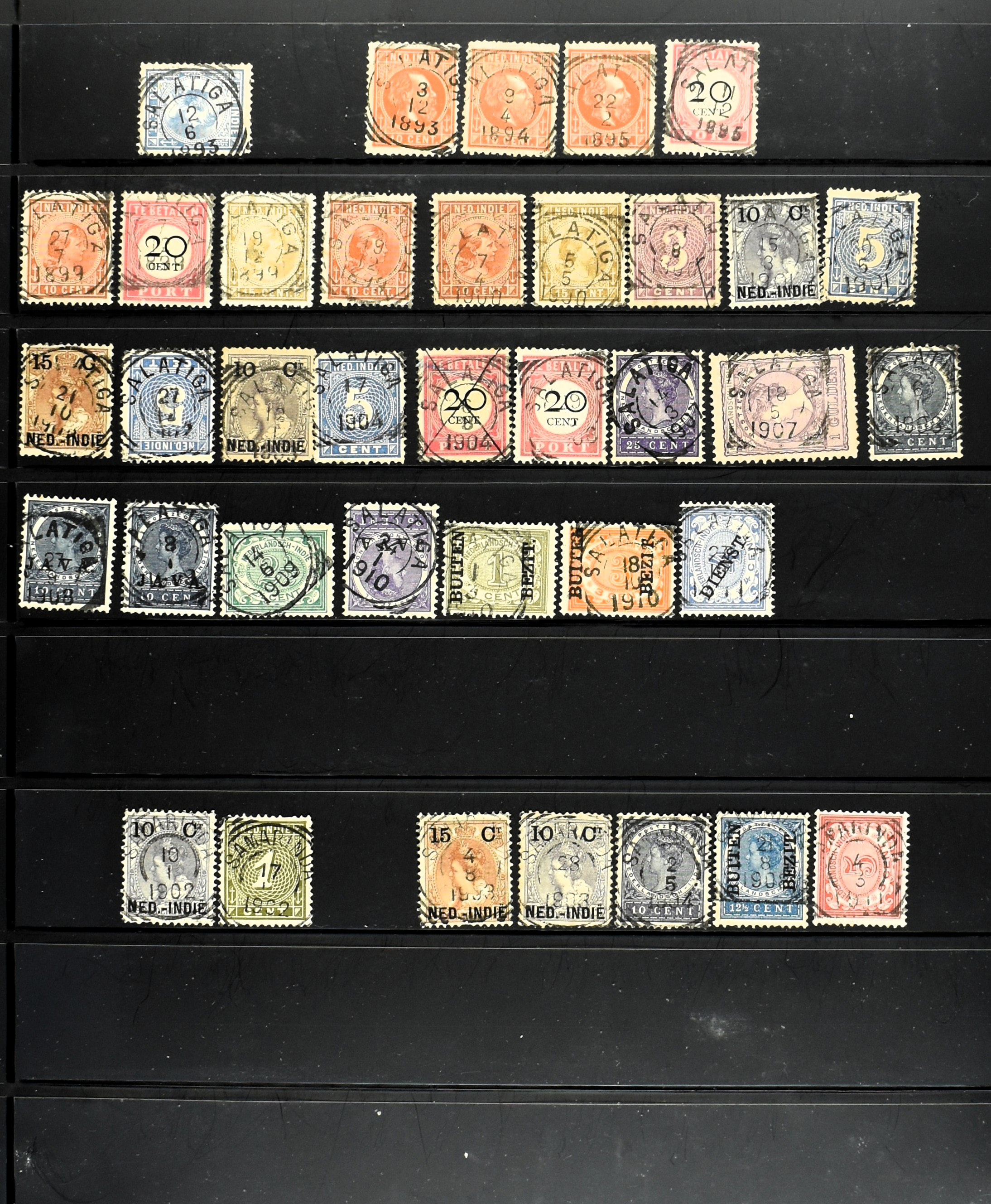 2257 imageNED.- INDIË KLEINRONDSTEMPELS, aardige verzameling op losse zegels van verschillende emissies en waarden w.o. schaarse kantoren op losse zegels als Grisee, Karanganjer, Riouw, Tebingtinggi (met late datum 13-5-1893), Tebing Tinggi-Deli, etc. in insteekboek (Image) (Image2) (Image3) (Image4) (Image5) (Image6) (Image7) (Image8) (Image9) (Image10) (Image11) (Image12) (All Images)