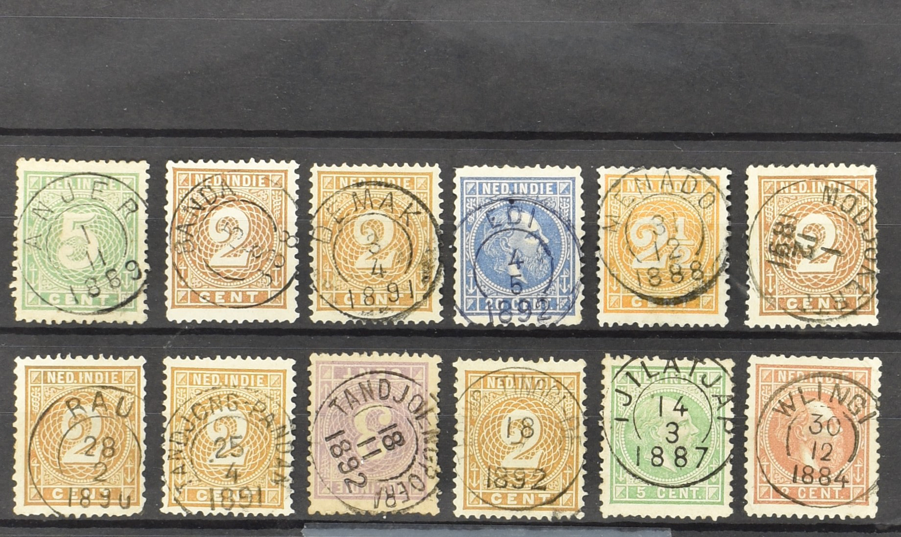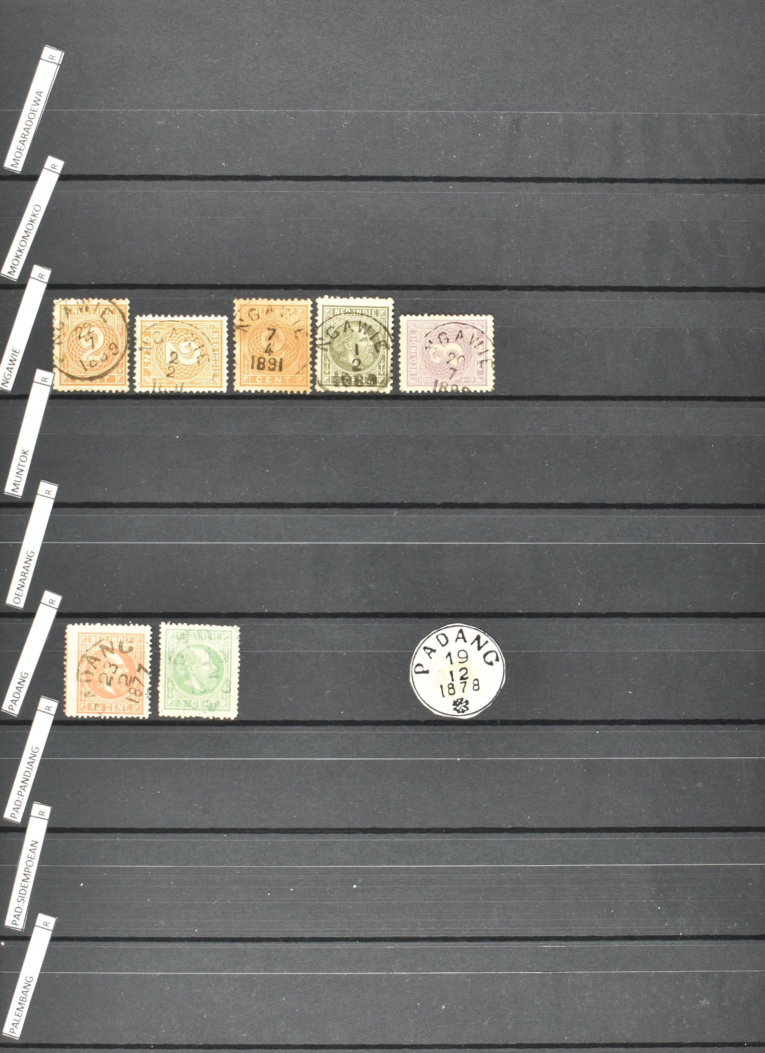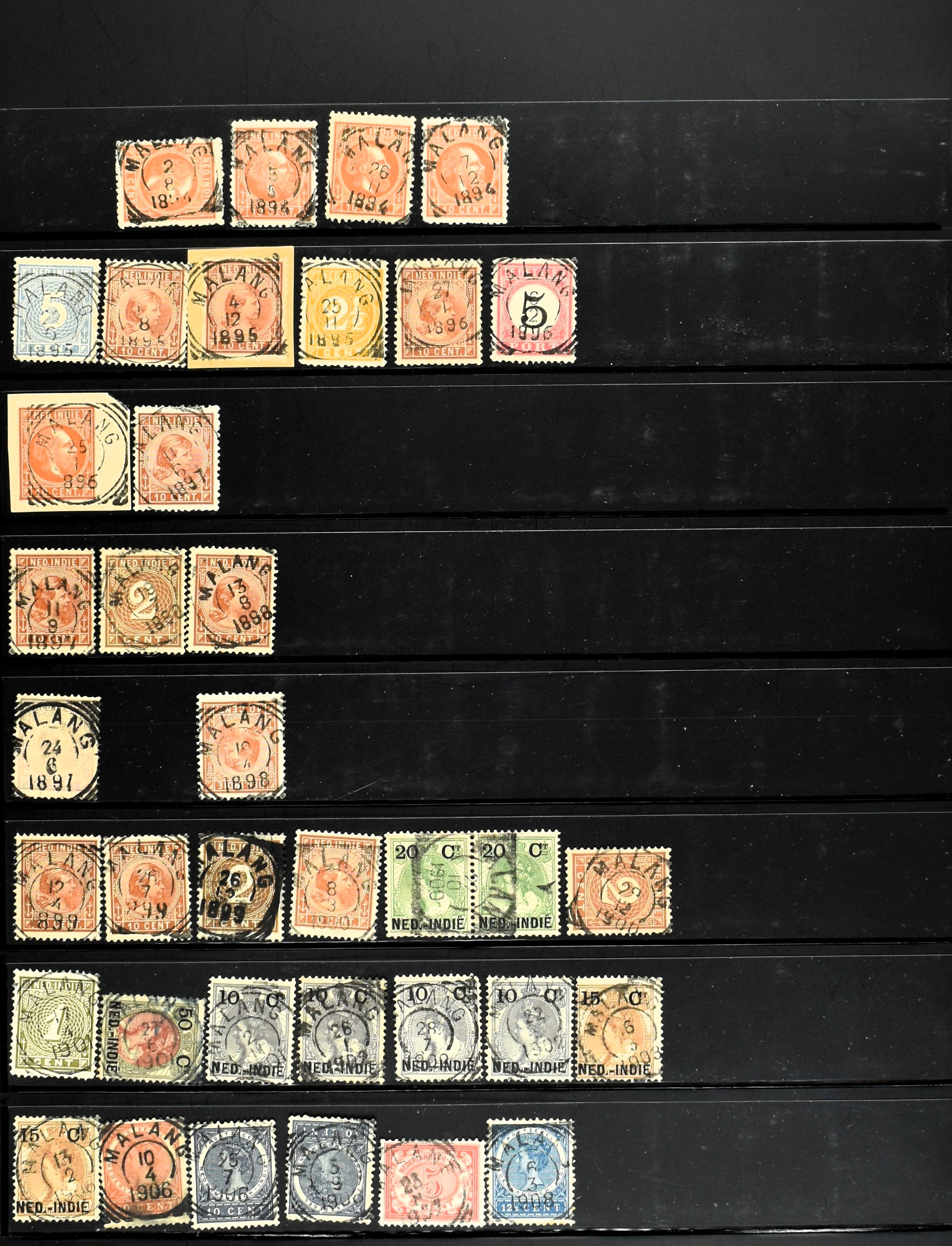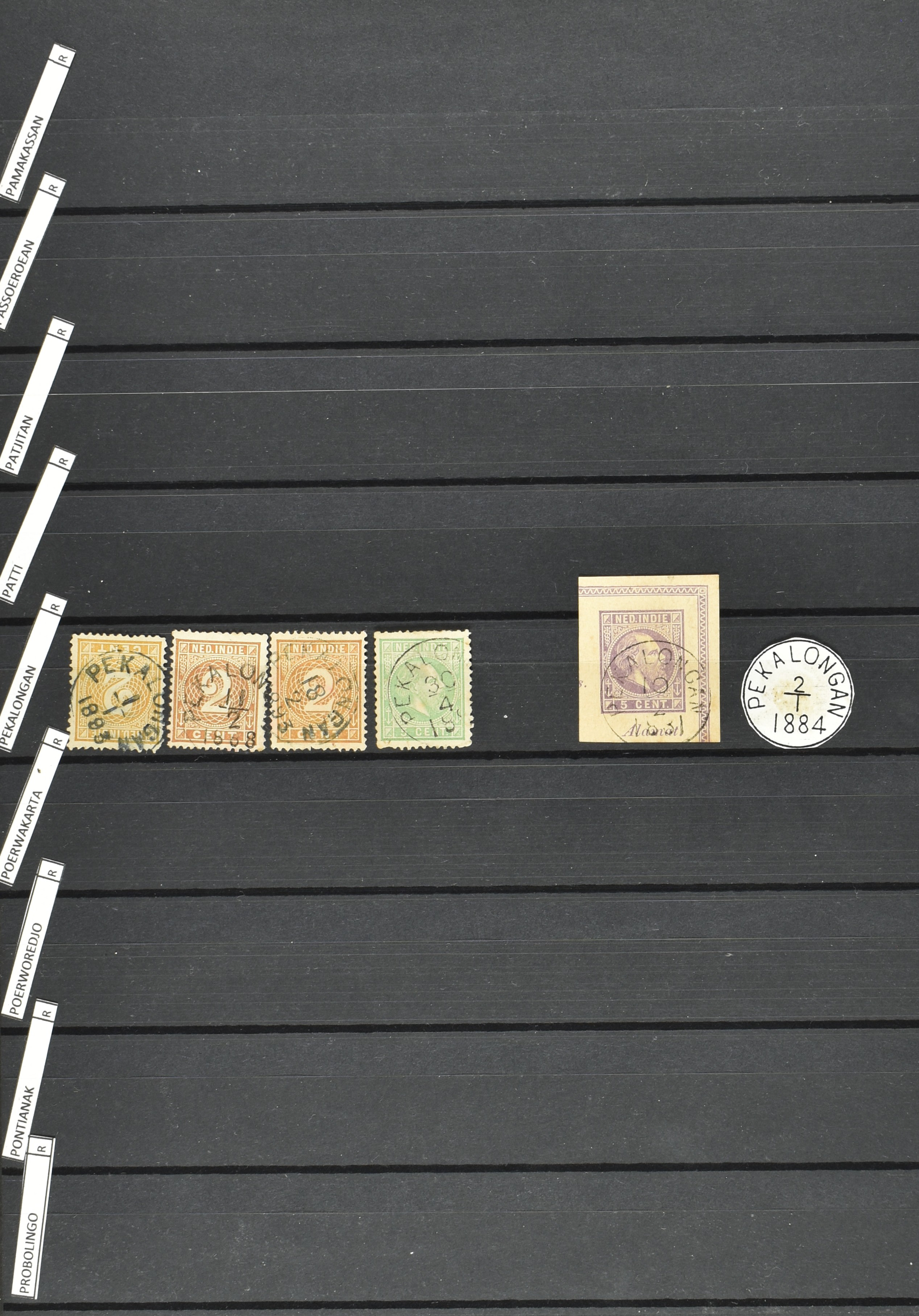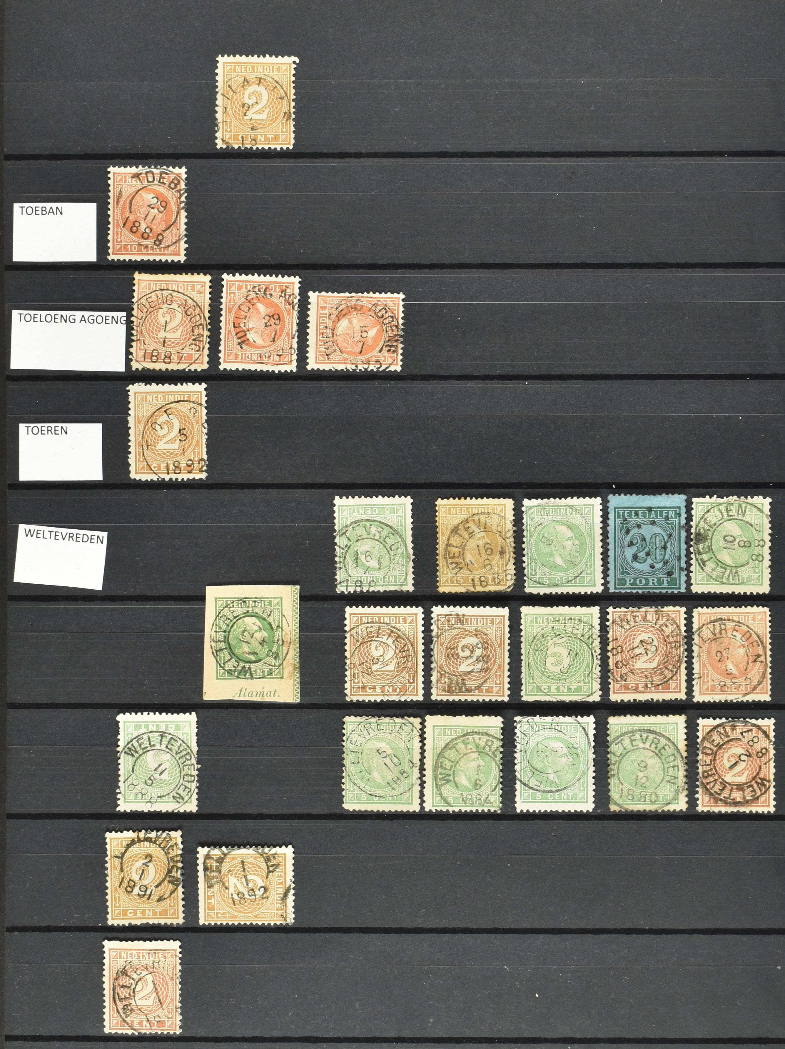 2257 imageNED.- INDIË KLEINRONDSTEMPELS, aardige verzameling op losse zegels van verschillende emissies en waarden w.o. schaarse kantoren op losse zegels als Grisee, Karanganjer, Riouw, Tebingtinggi (met late datum 13-5-1893), Tebing Tinggi-Deli, etc. in insteekboek (Image) (Image2) (Image3) (Image4) (Image5) (Image6) (Image7) (Image8) (Image9) (Image10) (Image11) (Image12) (All Images)