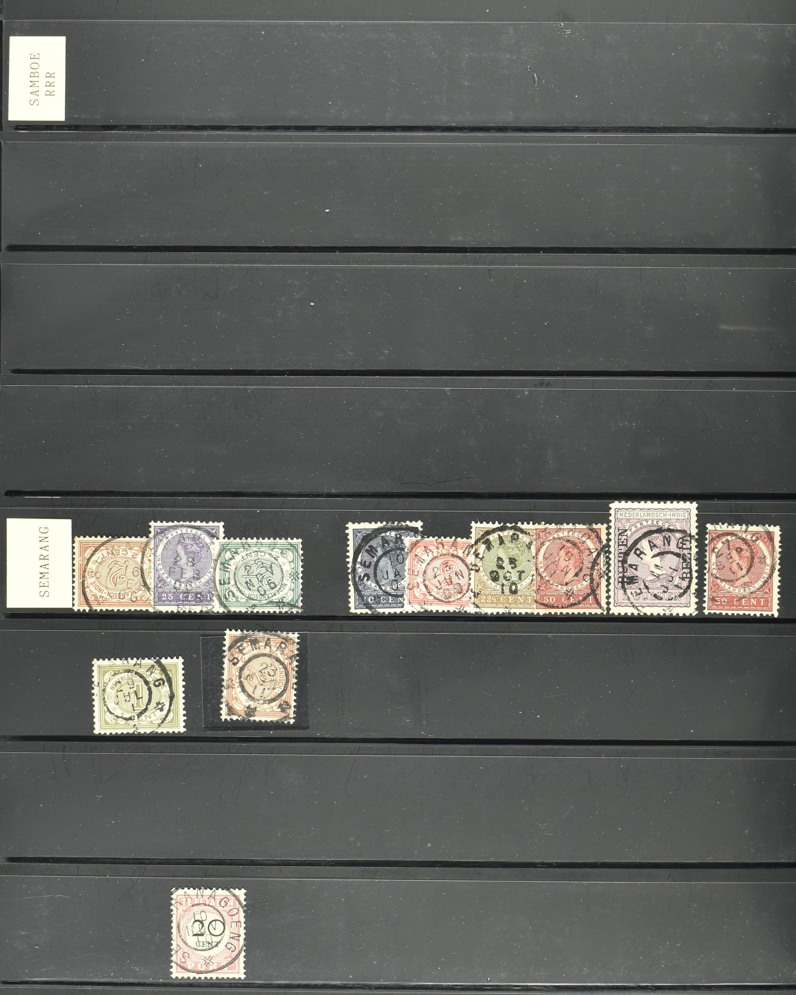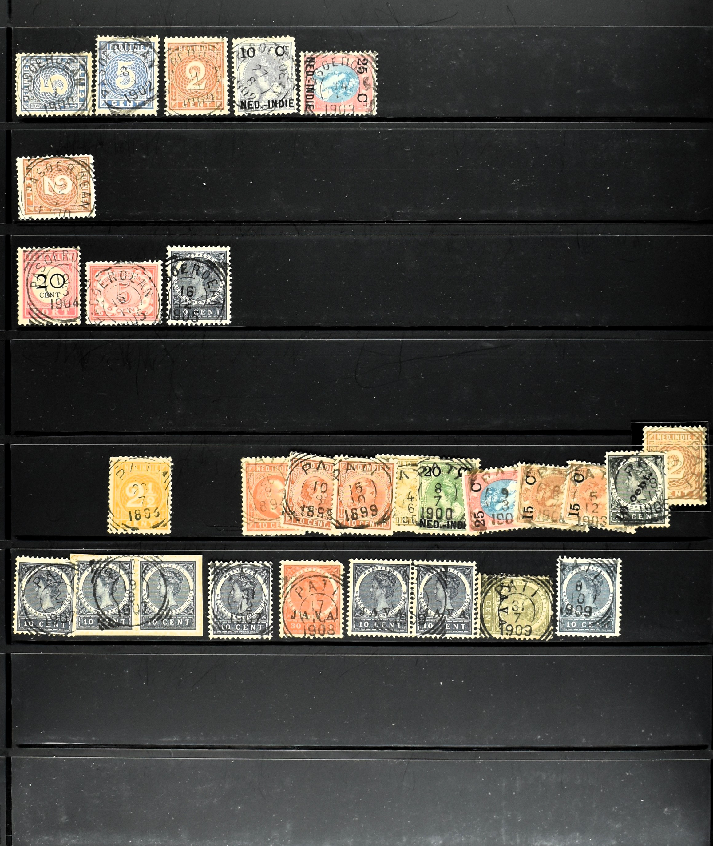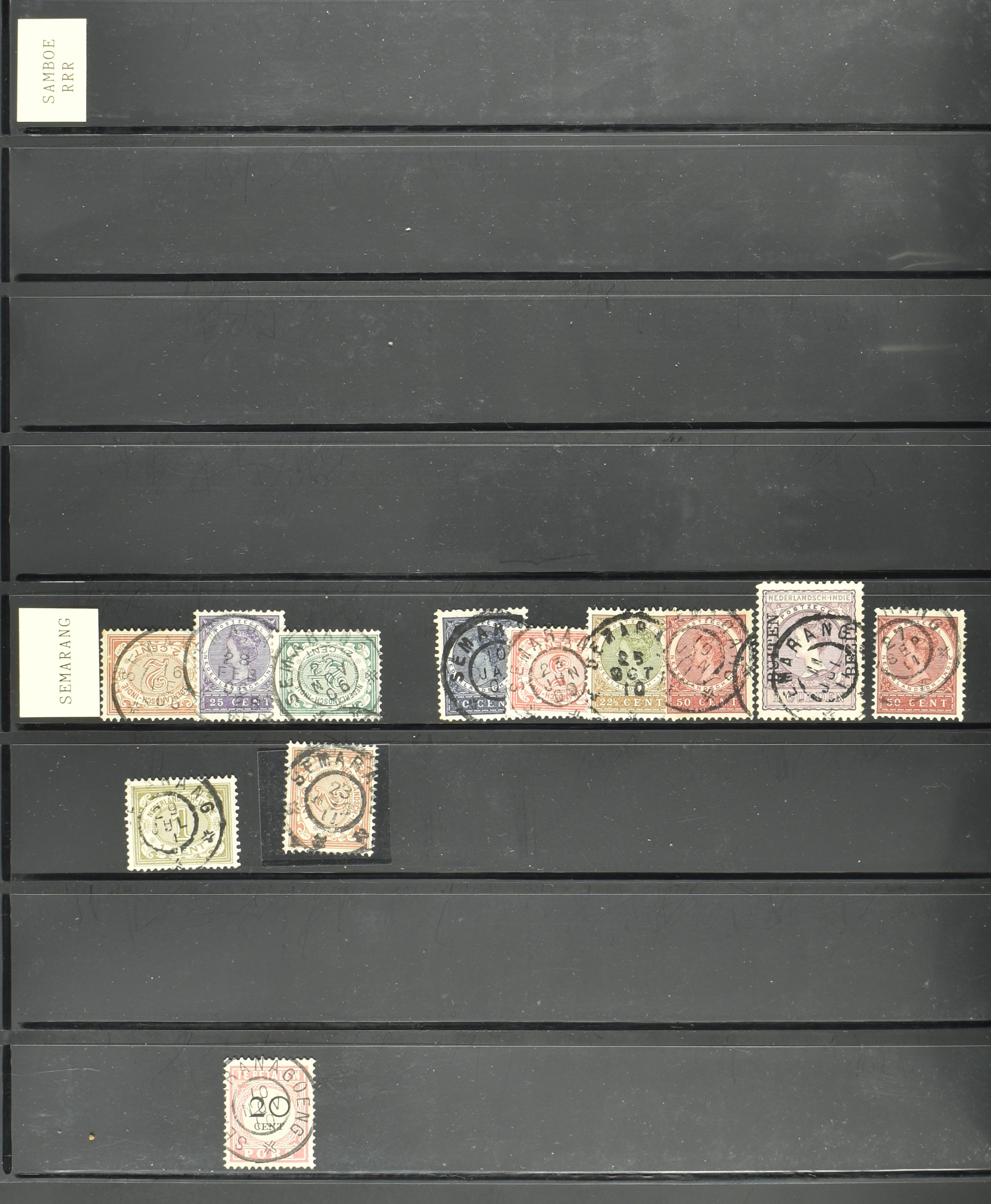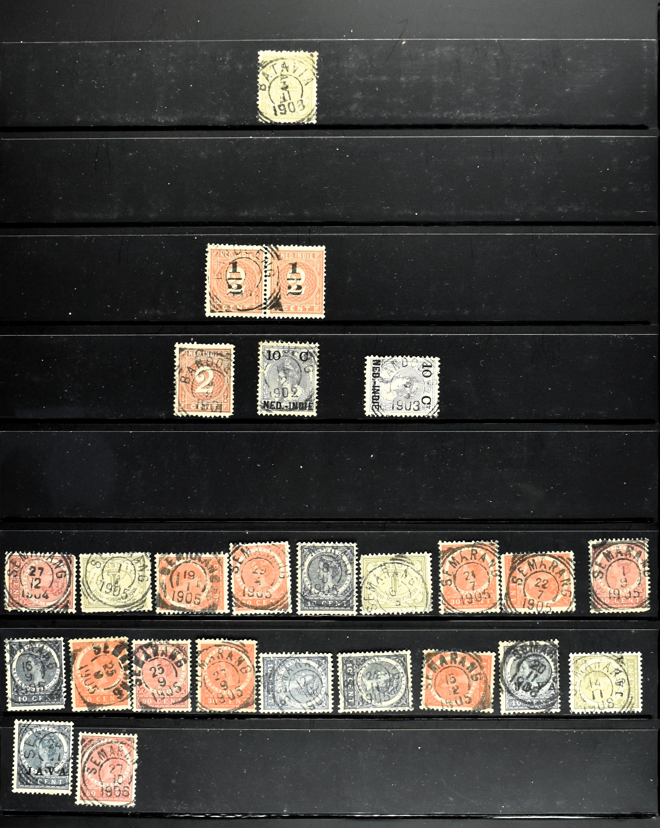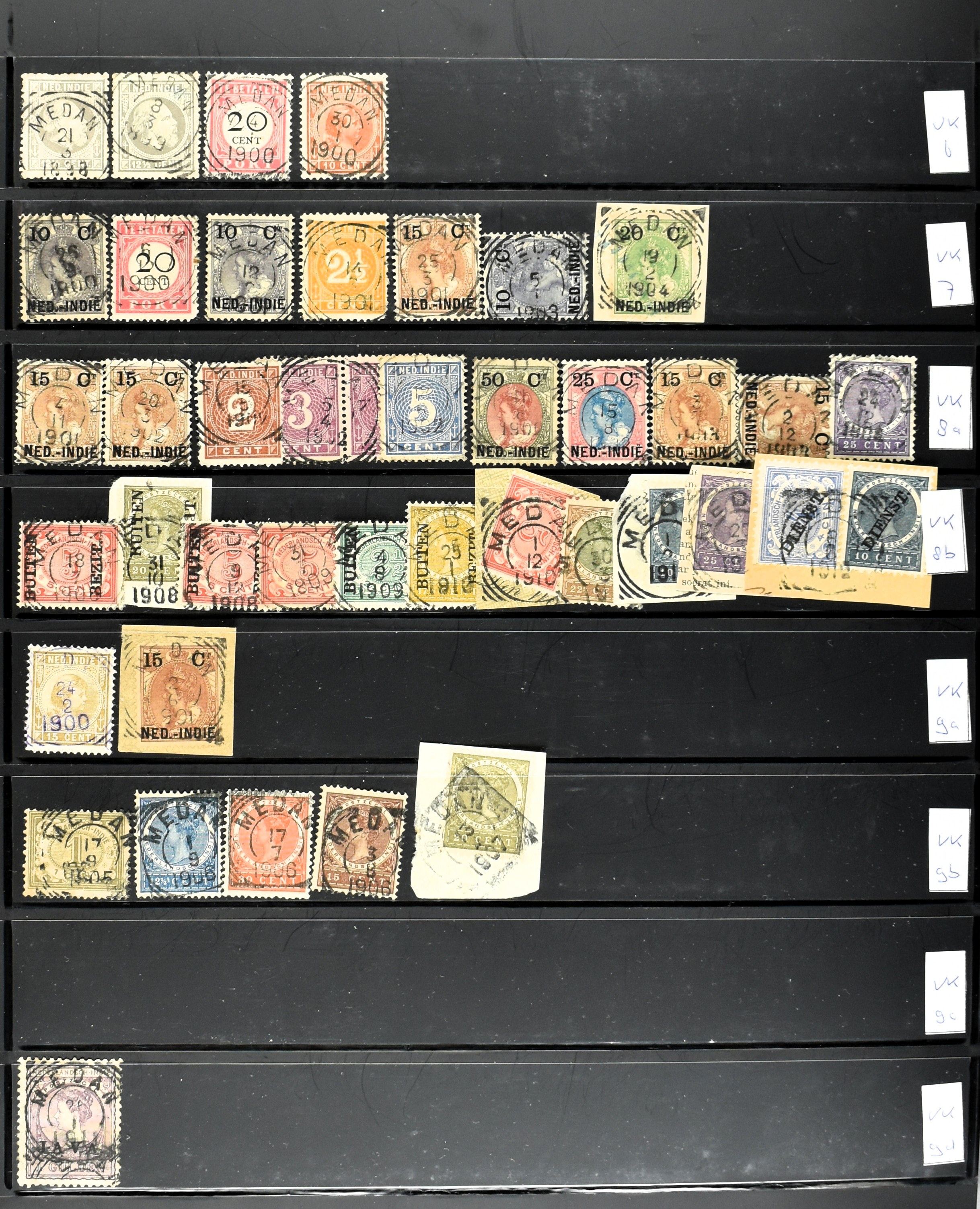 2257 imageNED.- INDIË KLEINRONDSTEMPELS, aardige verzameling op losse zegels van verschillende emissies en waarden w.o. schaarse kantoren op losse zegels als Grisee, Karanganjer, Riouw, Tebingtinggi (met late datum 13-5-1893), Tebing Tinggi-Deli, etc. in insteekboek (Image) (Image2) (Image3) (Image4) (Image5) (Image6) (Image7) (Image8) (Image9) (Image10) (Image11) (Image12) (All Images)