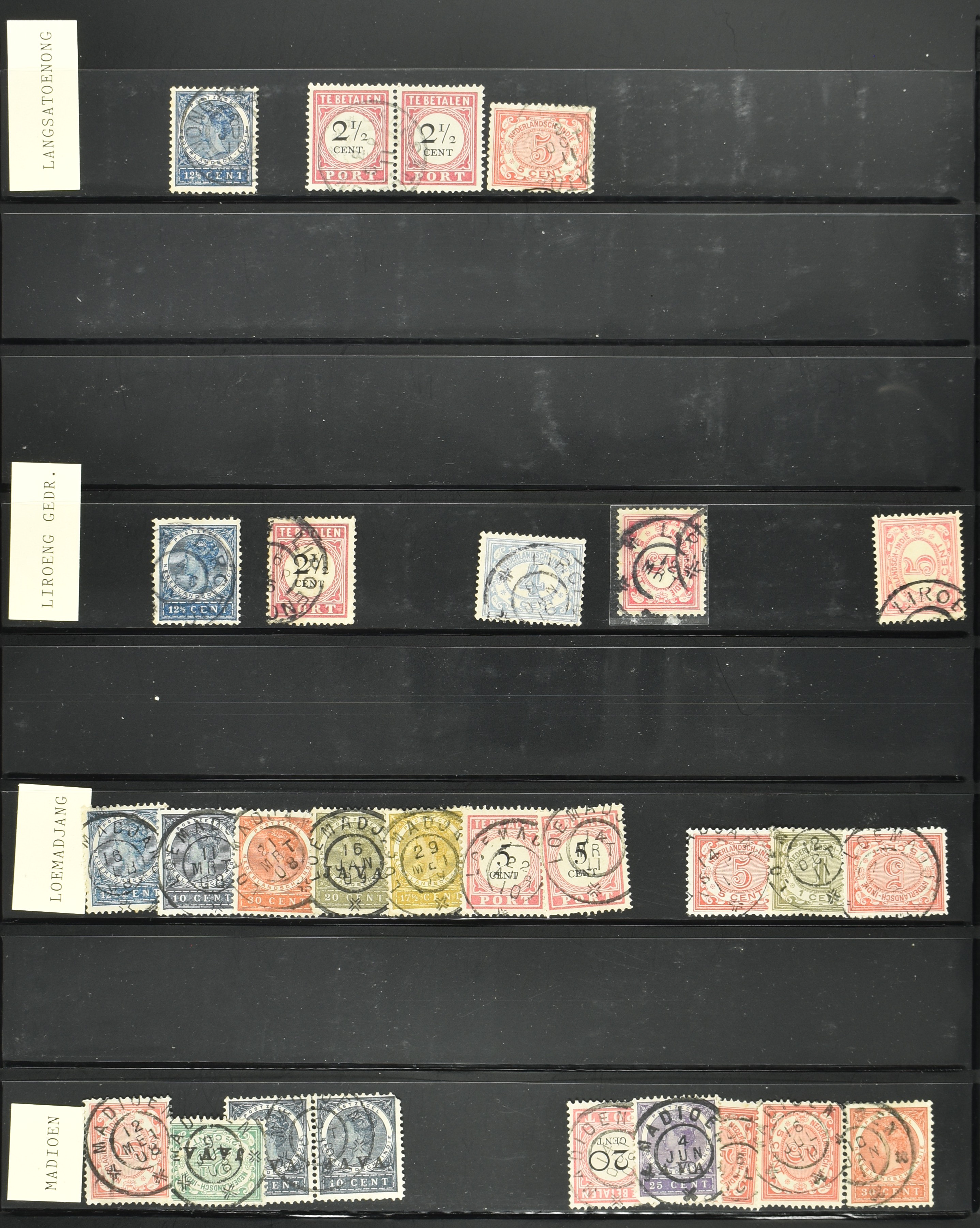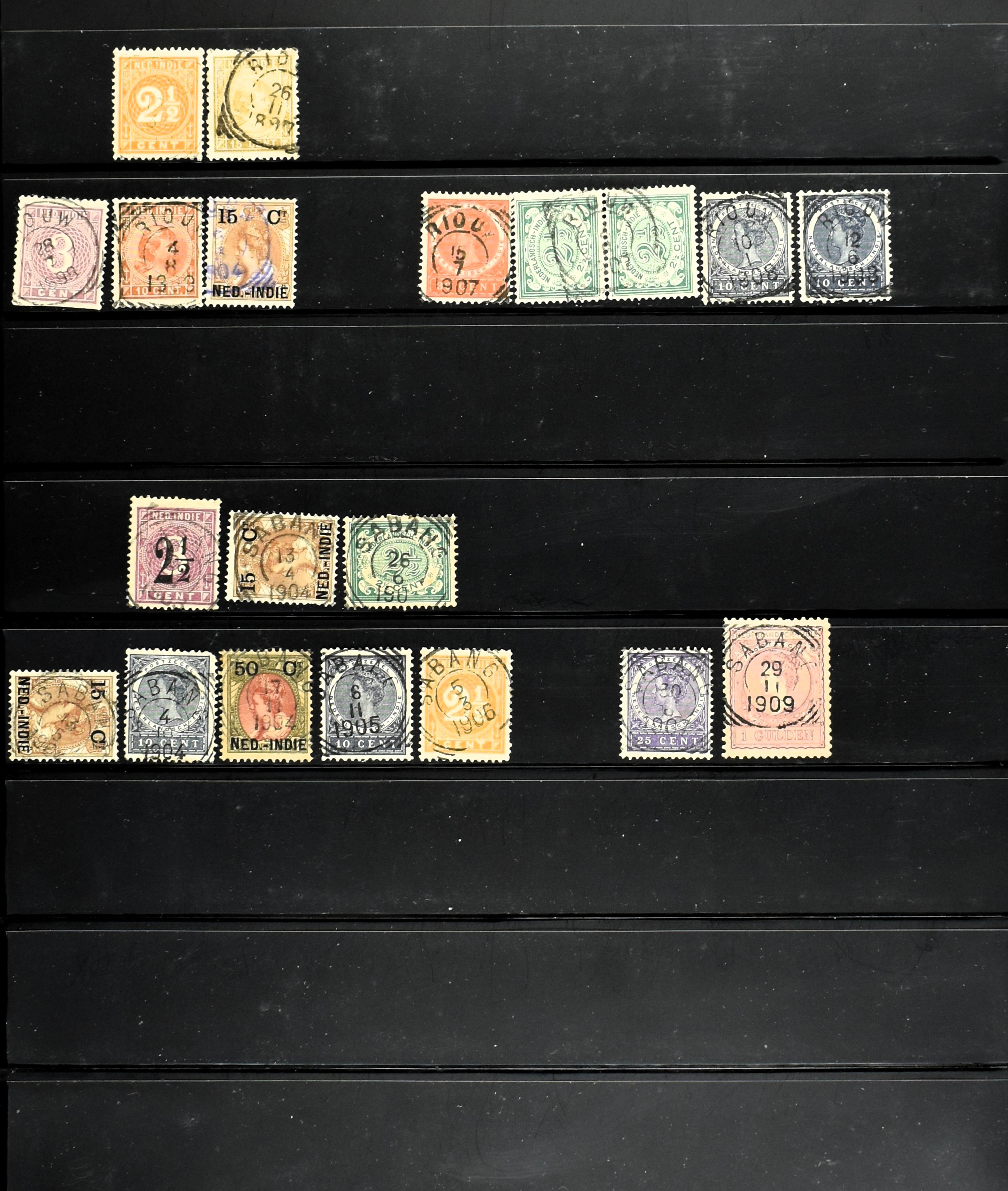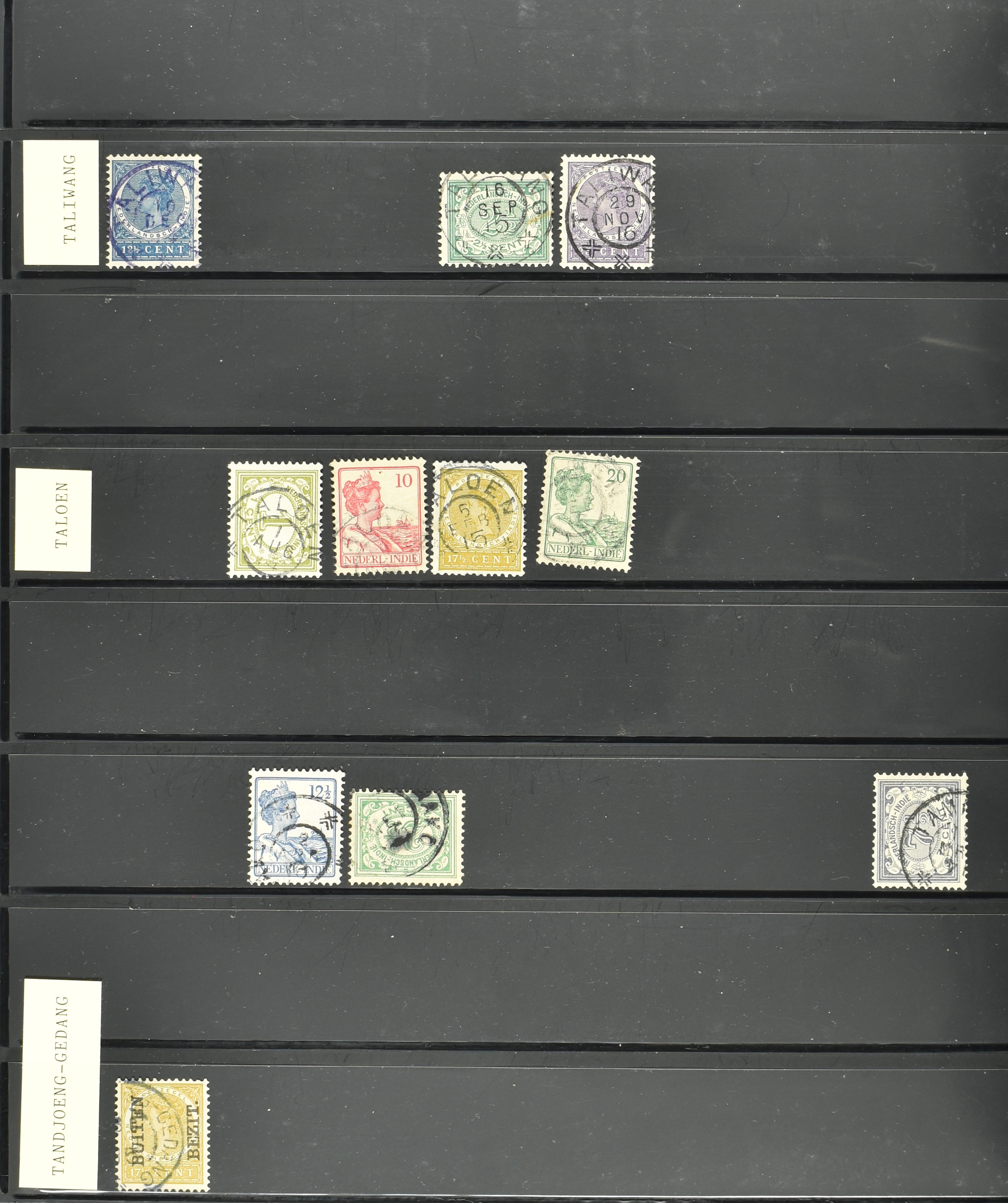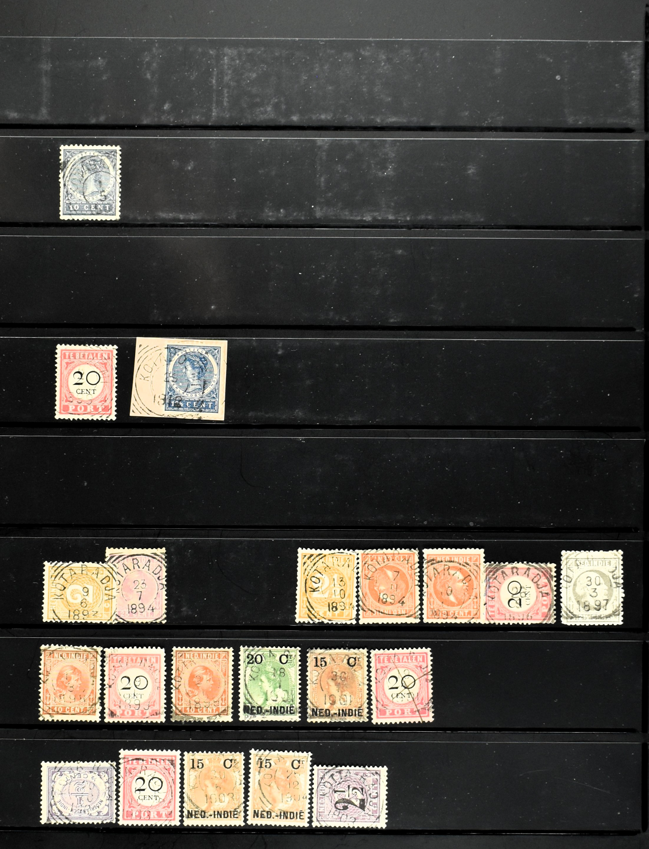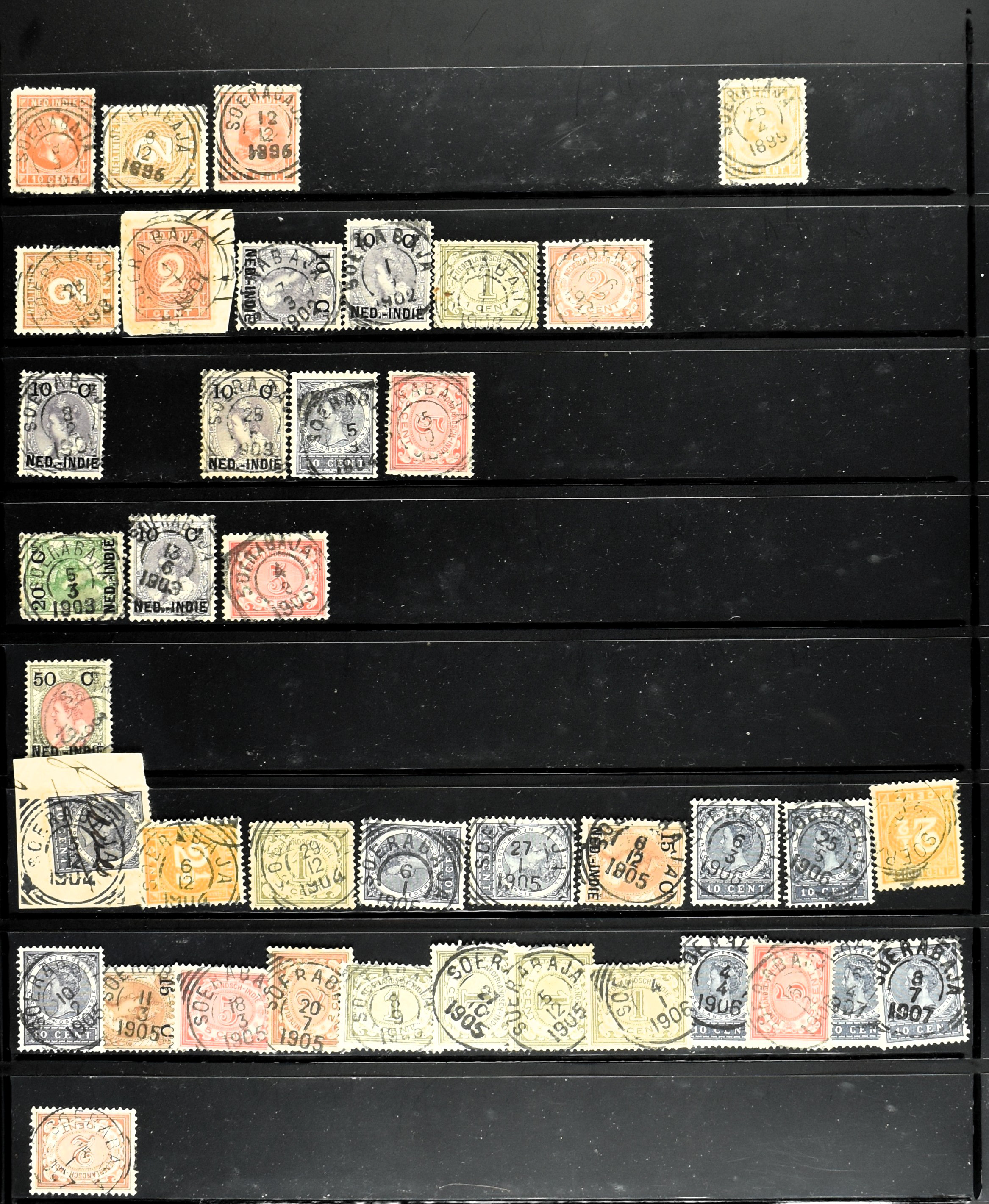 2257 imageNED.- INDIË KLEINRONDSTEMPELS, aardige verzameling op losse zegels van verschillende emissies en waarden w.o. schaarse kantoren op losse zegels als Grisee, Karanganjer, Riouw, Tebingtinggi (met late datum 13-5-1893), Tebing Tinggi-Deli, etc. in insteekboek (Image) (Image2) (Image3) (Image4) (Image5) (Image6) (Image7) (Image8) (Image9) (Image10) (Image11) (Image12) (All Images)