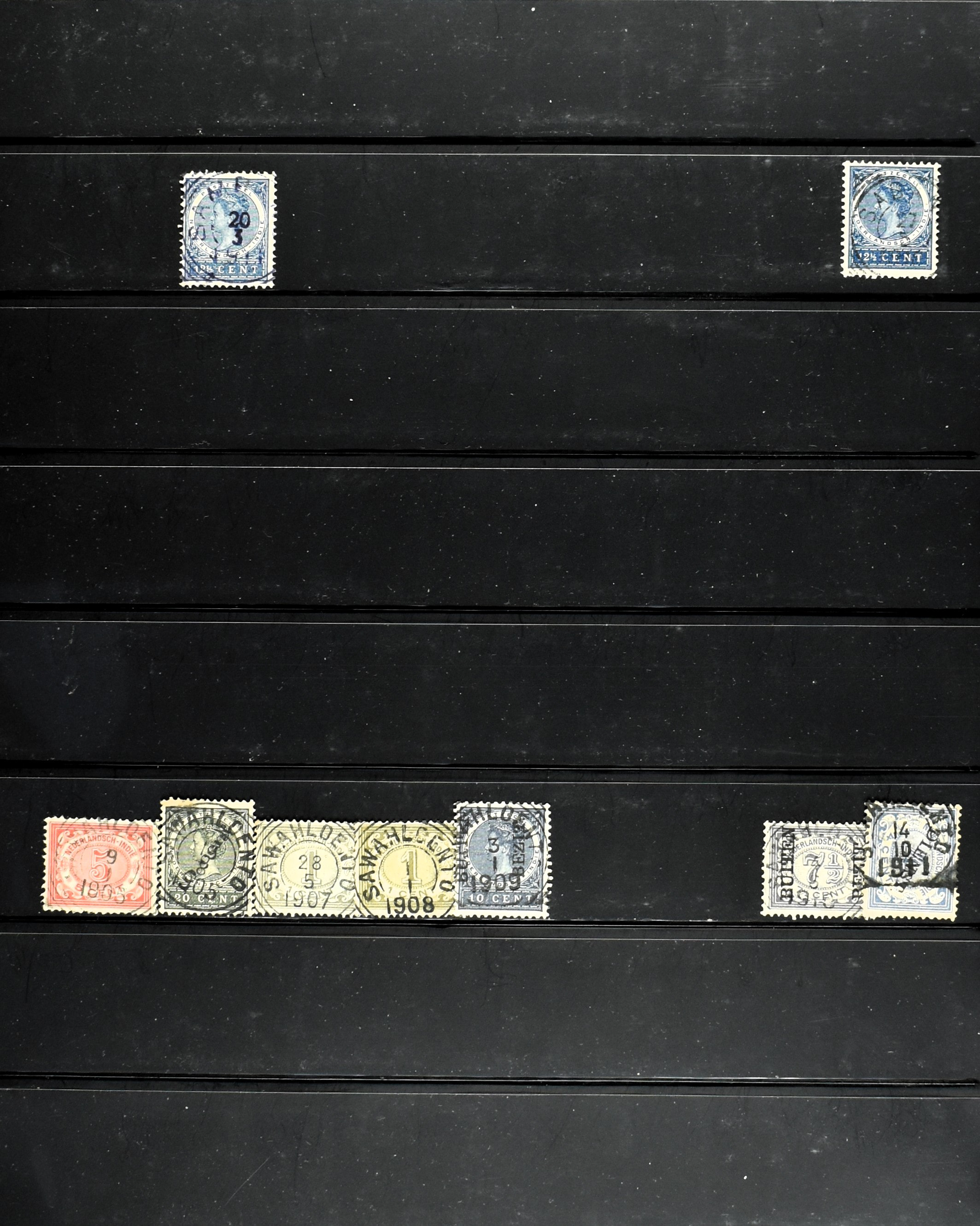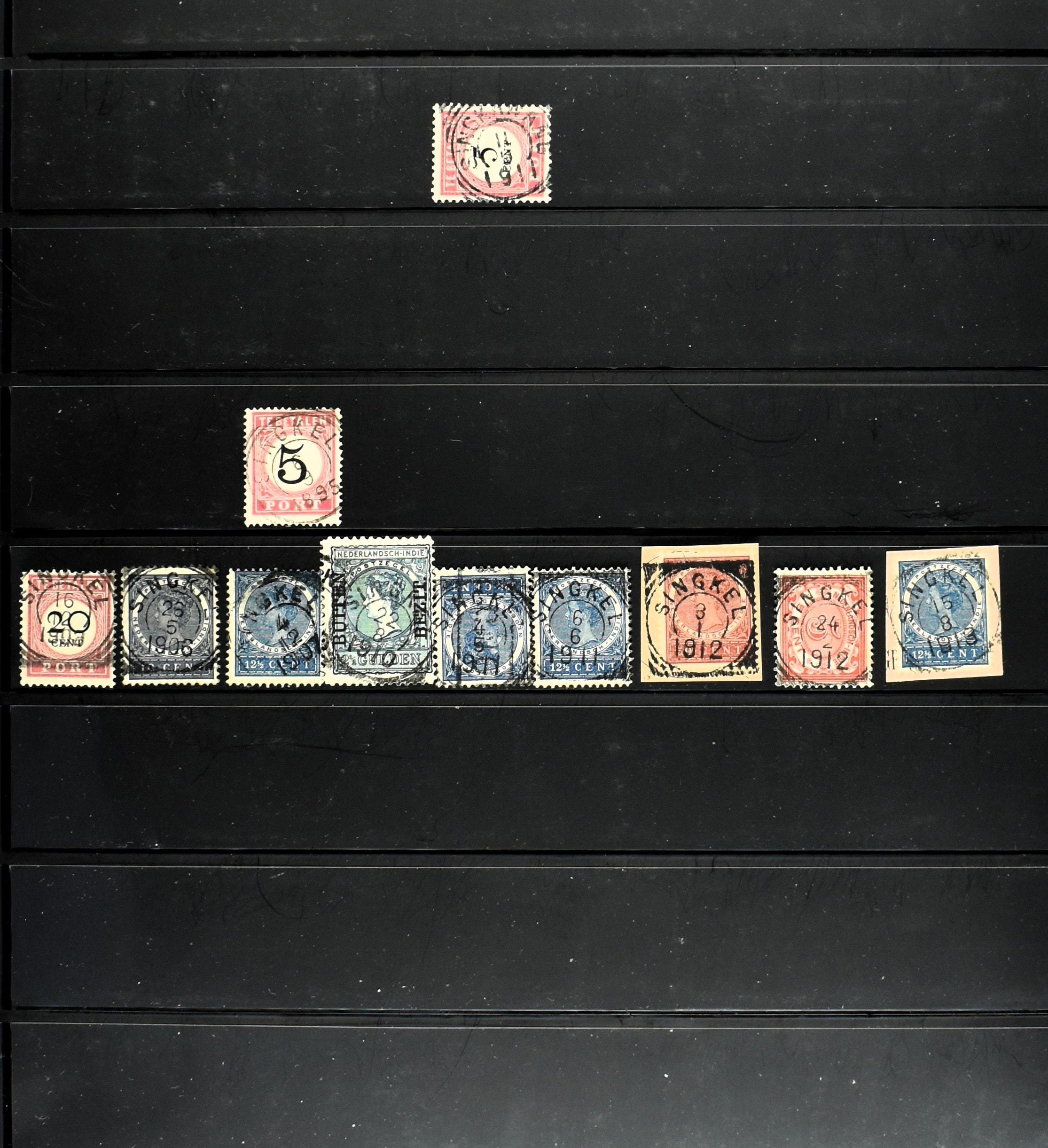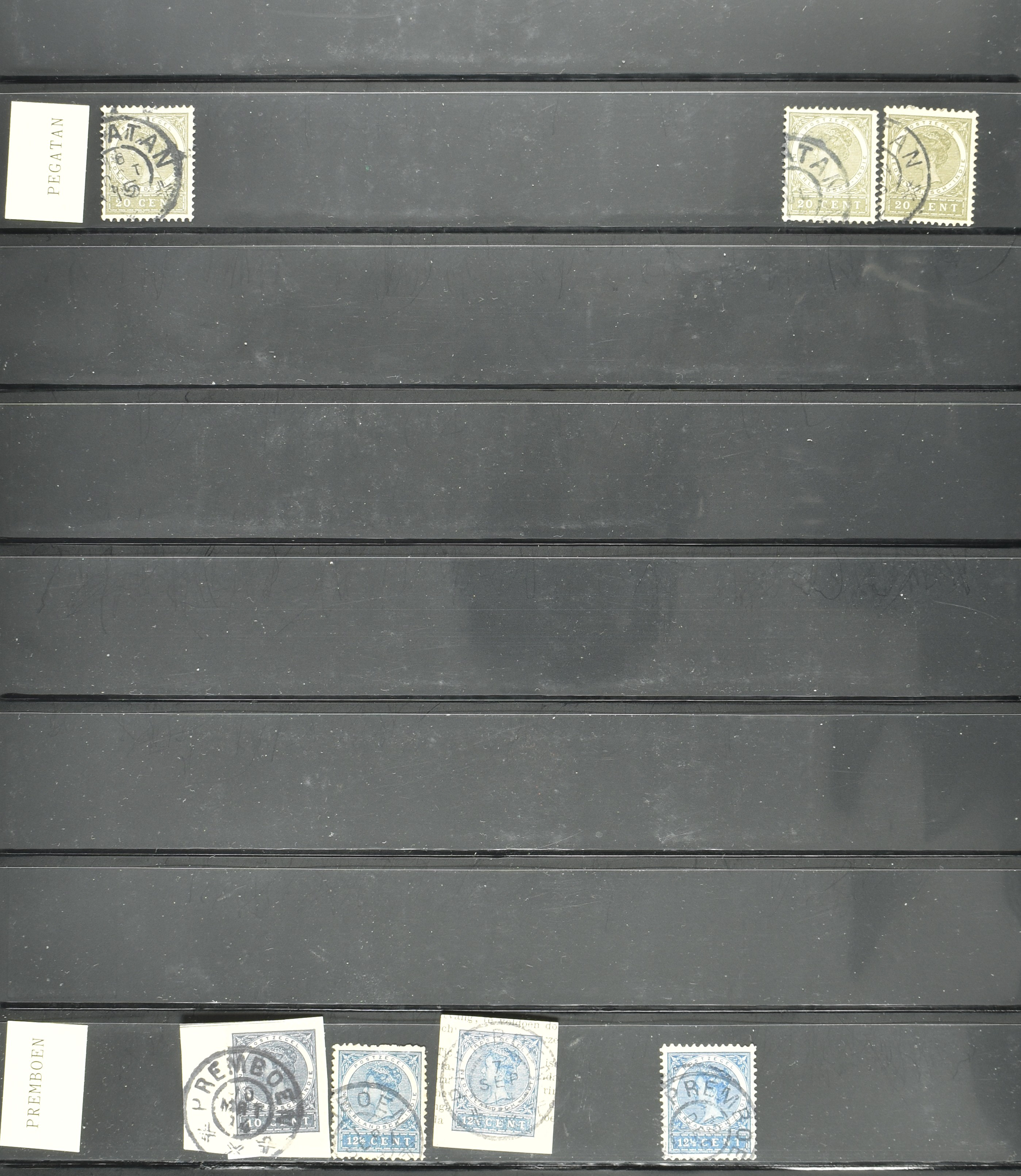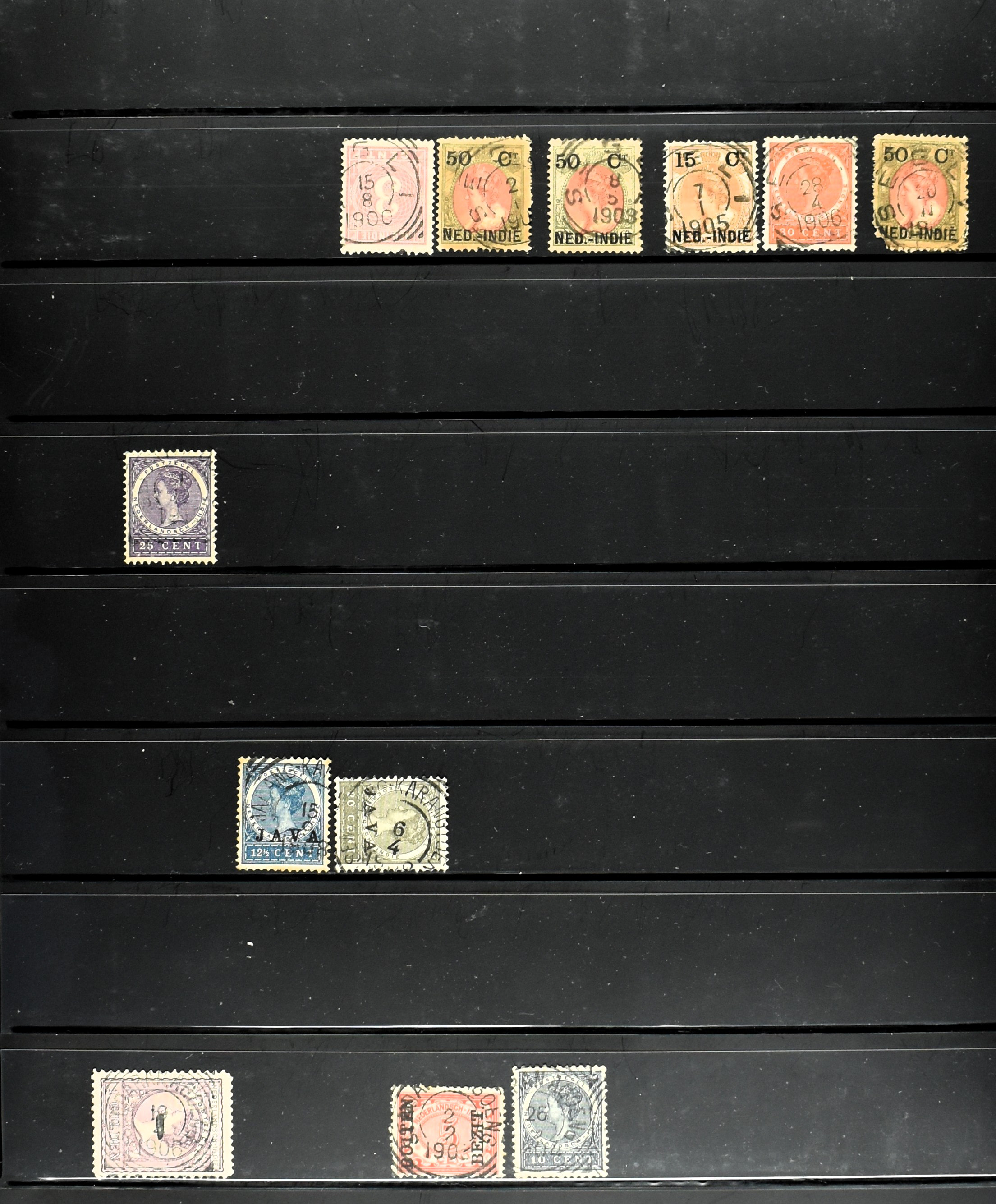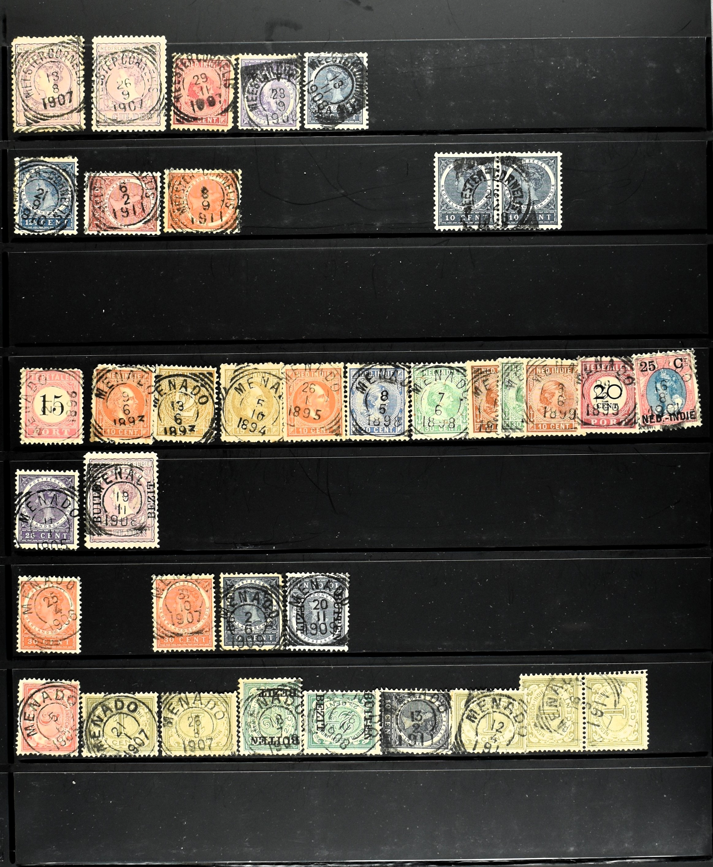 2257 imageNED.- INDIË KLEINRONDSTEMPELS, aardige verzameling op losse zegels van verschillende emissies en waarden w.o. schaarse kantoren op losse zegels als Grisee, Karanganjer, Riouw, Tebingtinggi (met late datum 13-5-1893), Tebing Tinggi-Deli, etc. in insteekboek (Image) (Image2) (Image3) (Image4) (Image5) (Image6) (Image7) (Image8) (Image9) (Image10) (Image11) (Image12) (All Images)