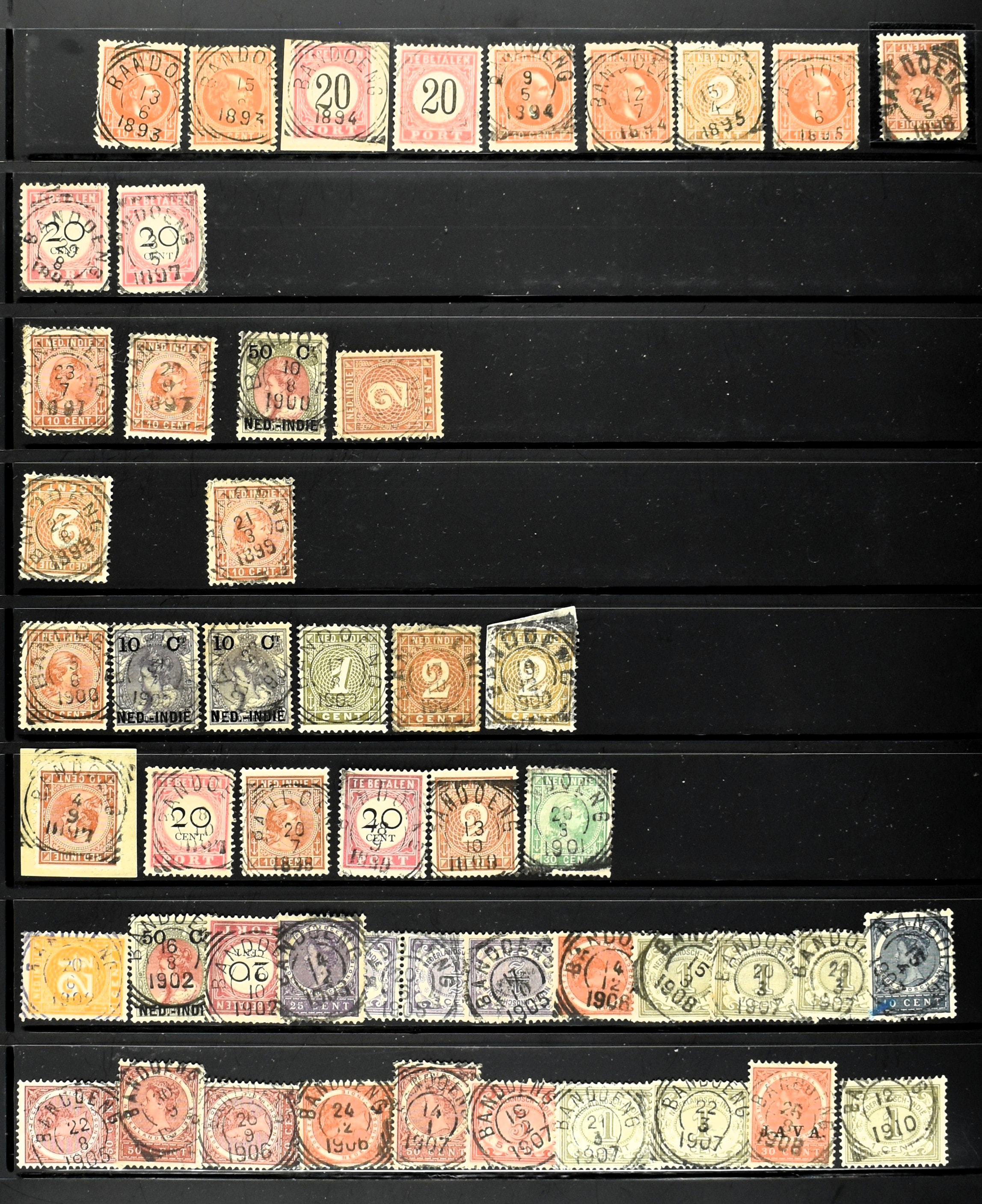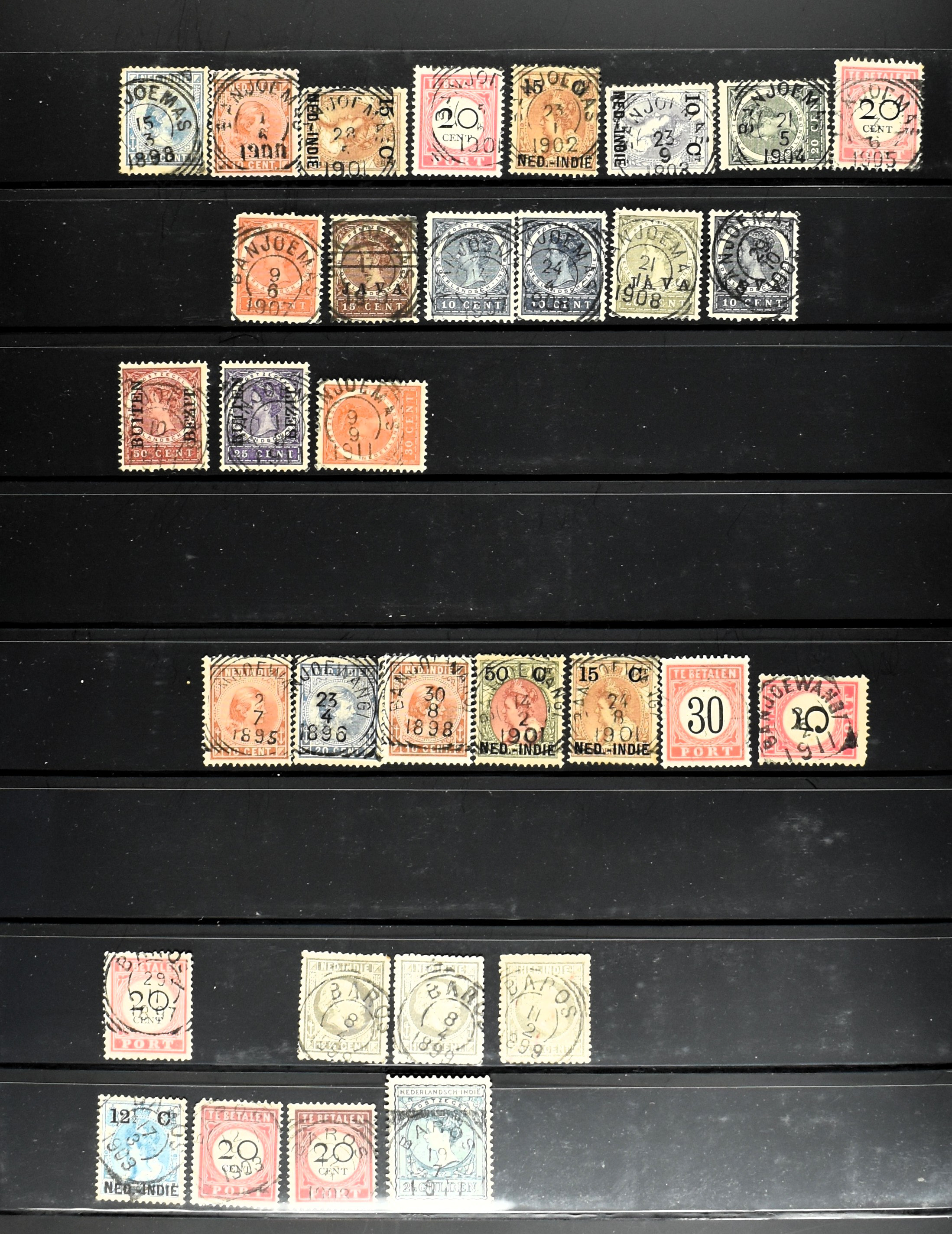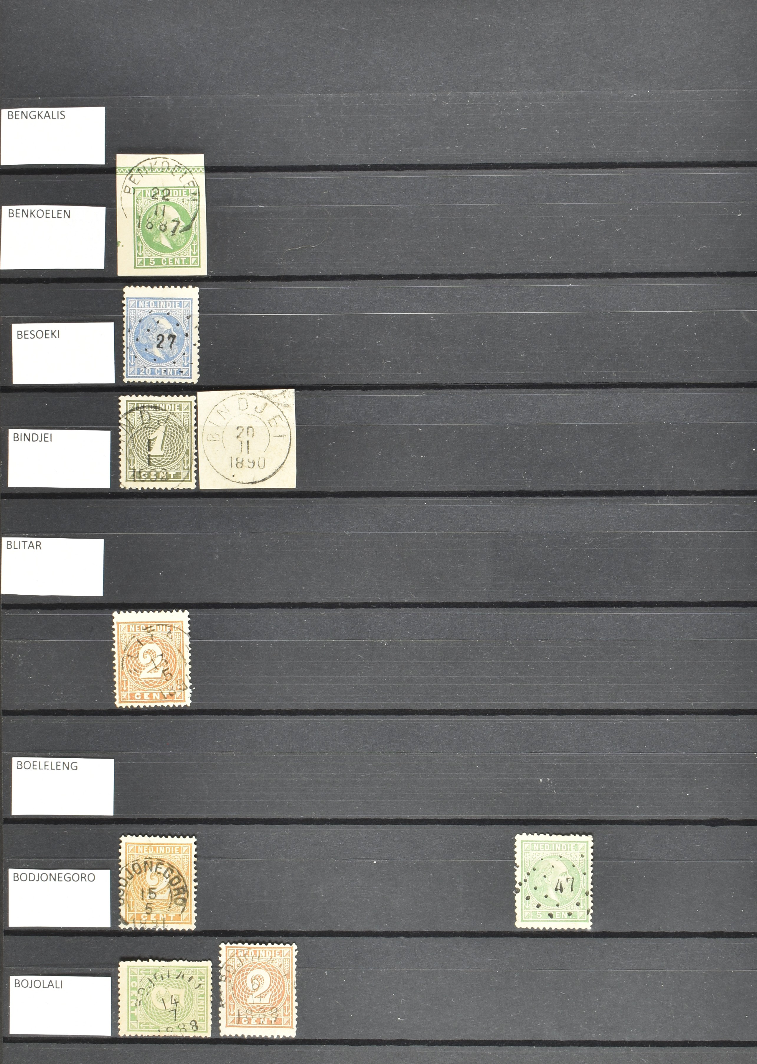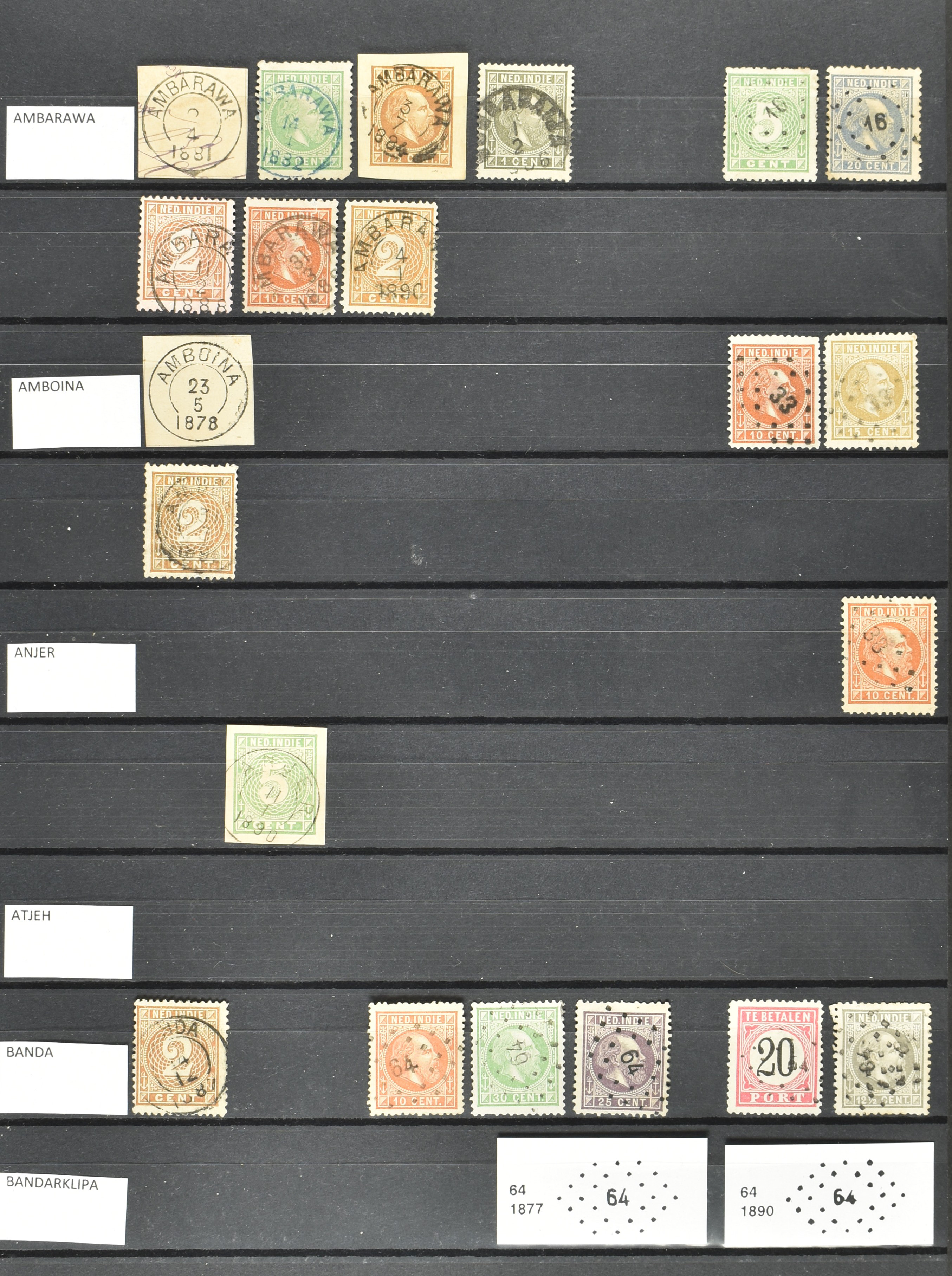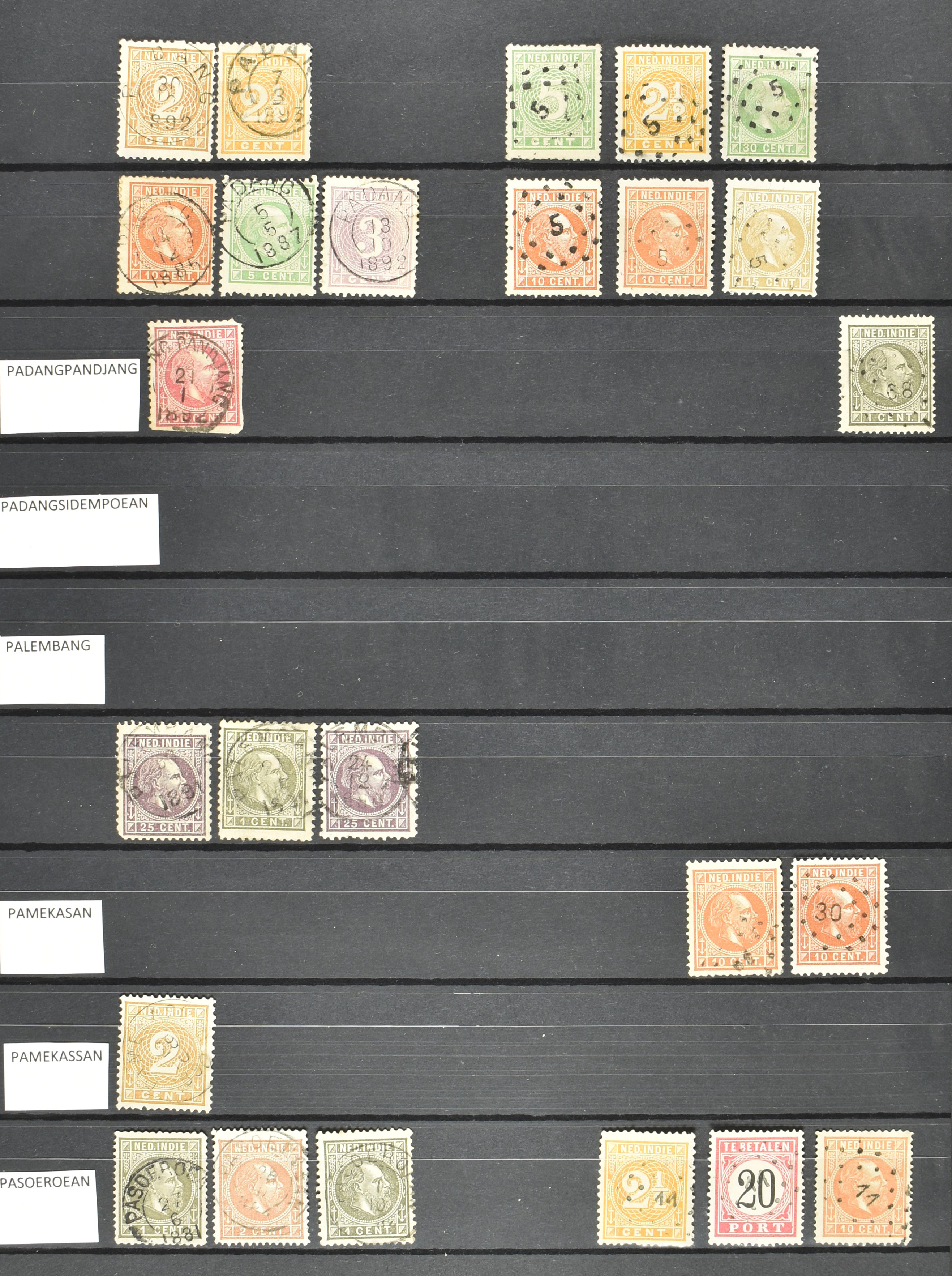 2258 imageNED.- INDIË KLEINRONDSTEMPELS, verzameling op losse zegels van diverse emissies en waarden w.o. meerdere schaarse en zeldzame kantoren in prachtige kwaliteit o.a. Anjer, Banda, Edi (blauw), Modjokerto, Rau, Tandjoengpoera, Tandjong-Pandan, Tebing Tinggi-Deli en Wlingi, enkele in blauw of violet, meerdere kantoren tevens met bijbehorende puntstempels, ook wat rondstempels, in insteekboek (Image) (Image2) (Image3) (Image4) (Image5) (Image6) (Image7) (Image8) (Image9) (Image10) (Image11) (Image12) (Image13) (Image14) (Image15) (Image16) (Image17) (Image18) (Image19) (Image20) (Image21) (Image22) (Image23) (Image24) (Image25) (Image26) (Image27) (Image28) (Image29) (Image30) (Image31) (Image32) (Image33) (Image34) (Image35) (All Images)