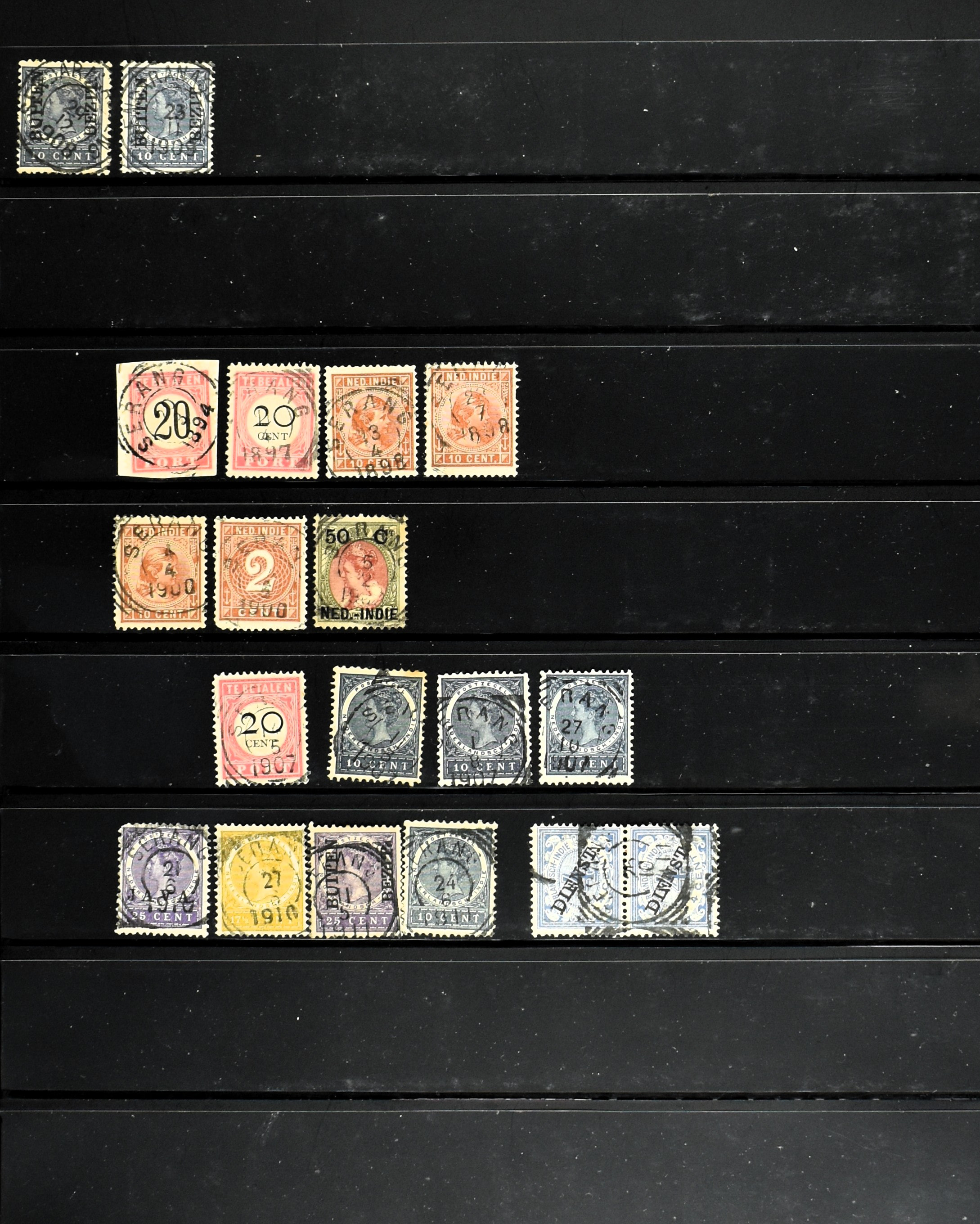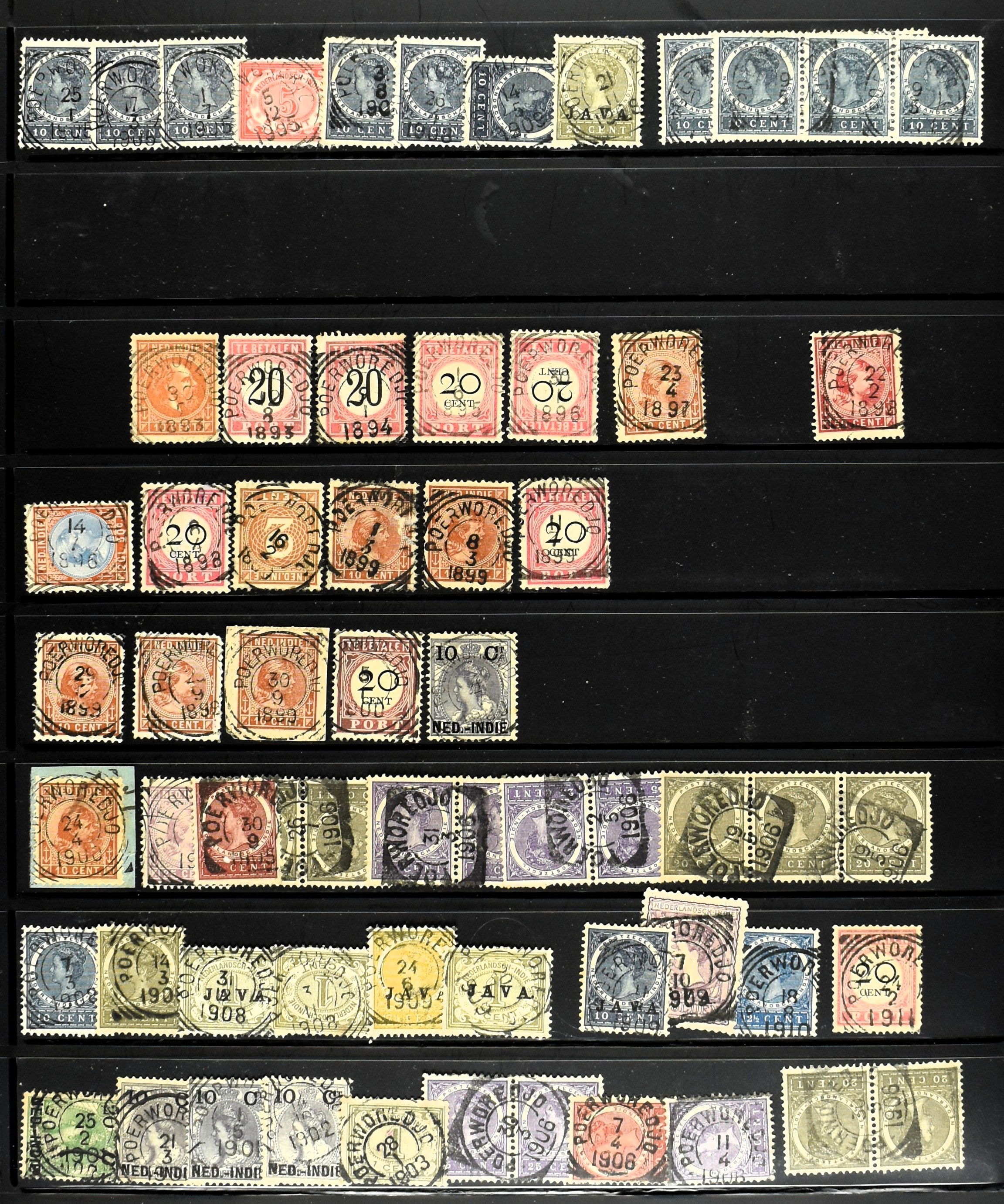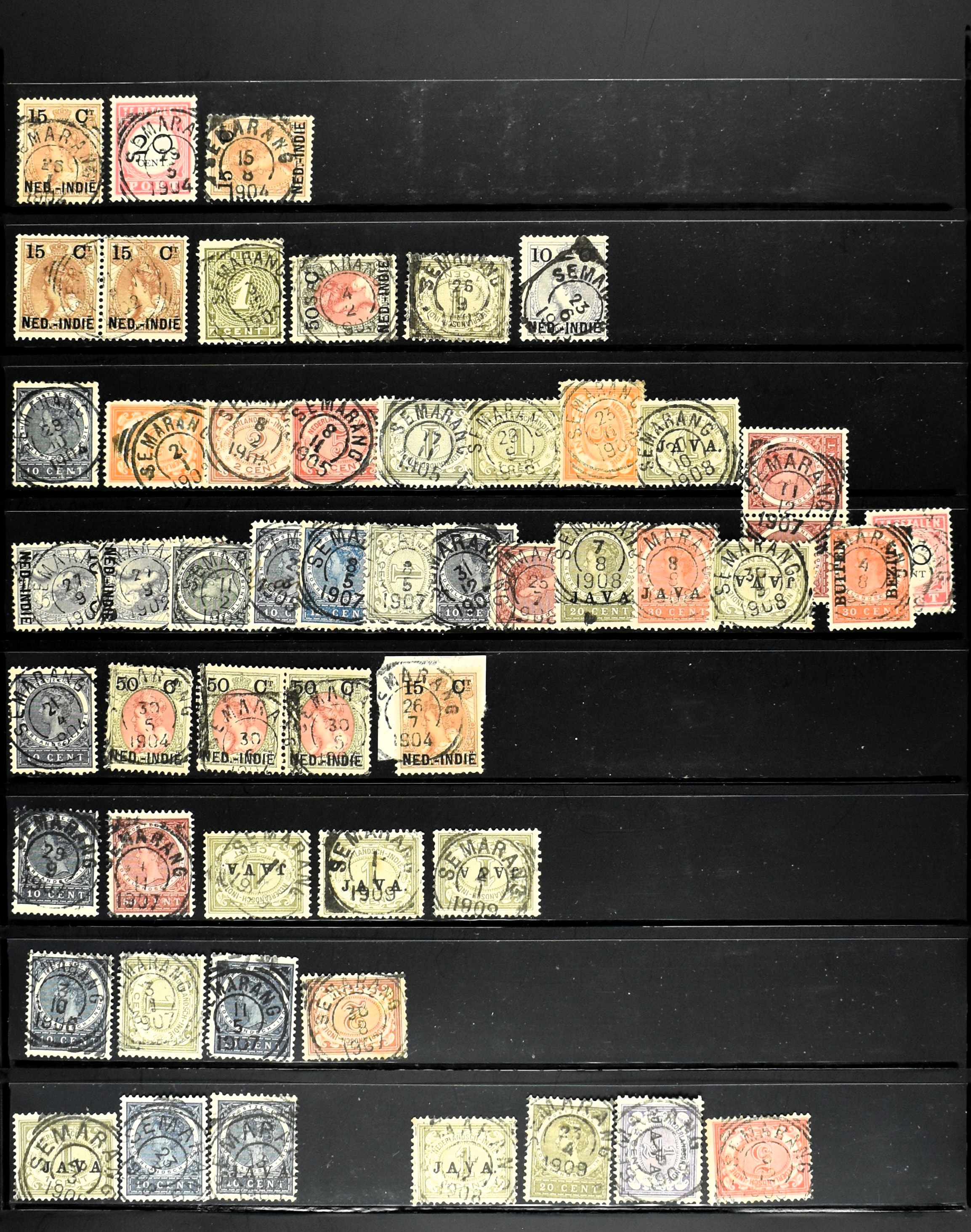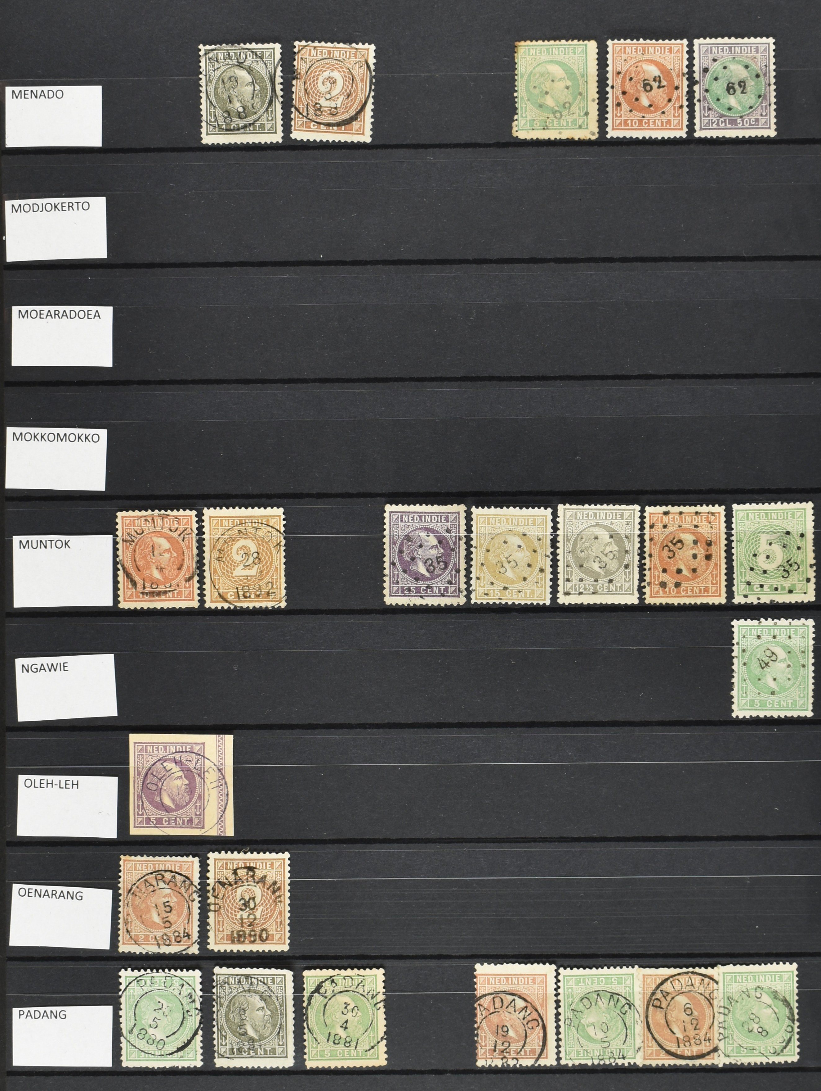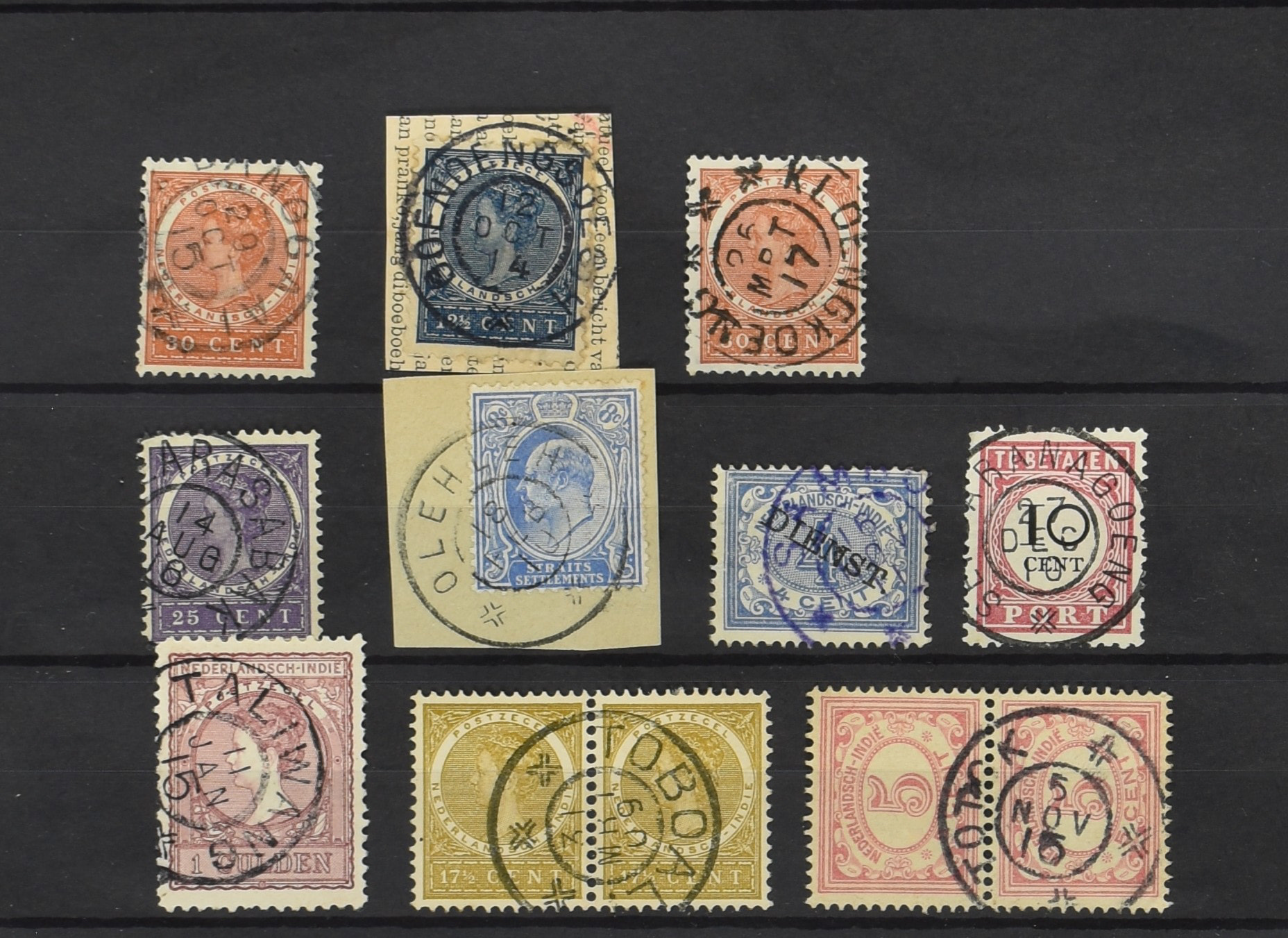 2258 imageNED.- INDIË KLEINRONDSTEMPELS, verzameling op losse zegels van diverse emissies en waarden w.o. meerdere schaarse en zeldzame kantoren in prachtige kwaliteit o.a. Anjer, Banda, Edi (blauw), Modjokerto, Rau, Tandjoengpoera, Tandjong-Pandan, Tebing Tinggi-Deli en Wlingi, enkele in blauw of violet, meerdere kantoren tevens met bijbehorende puntstempels, ook wat rondstempels, in insteekboek (Image) (Image2) (Image3) (Image4) (Image5) (Image6) (Image7) (Image8) (Image9) (Image10) (Image11) (Image12) (Image13) (Image14) (Image15) (Image16) (Image17) (Image18) (Image19) (Image20) (Image21) (Image22) (Image23) (Image24) (Image25) (Image26) (Image27) (Image28) (Image29) (Image30) (Image31) (Image32) (Image33) (Image34) (Image35) (All Images)