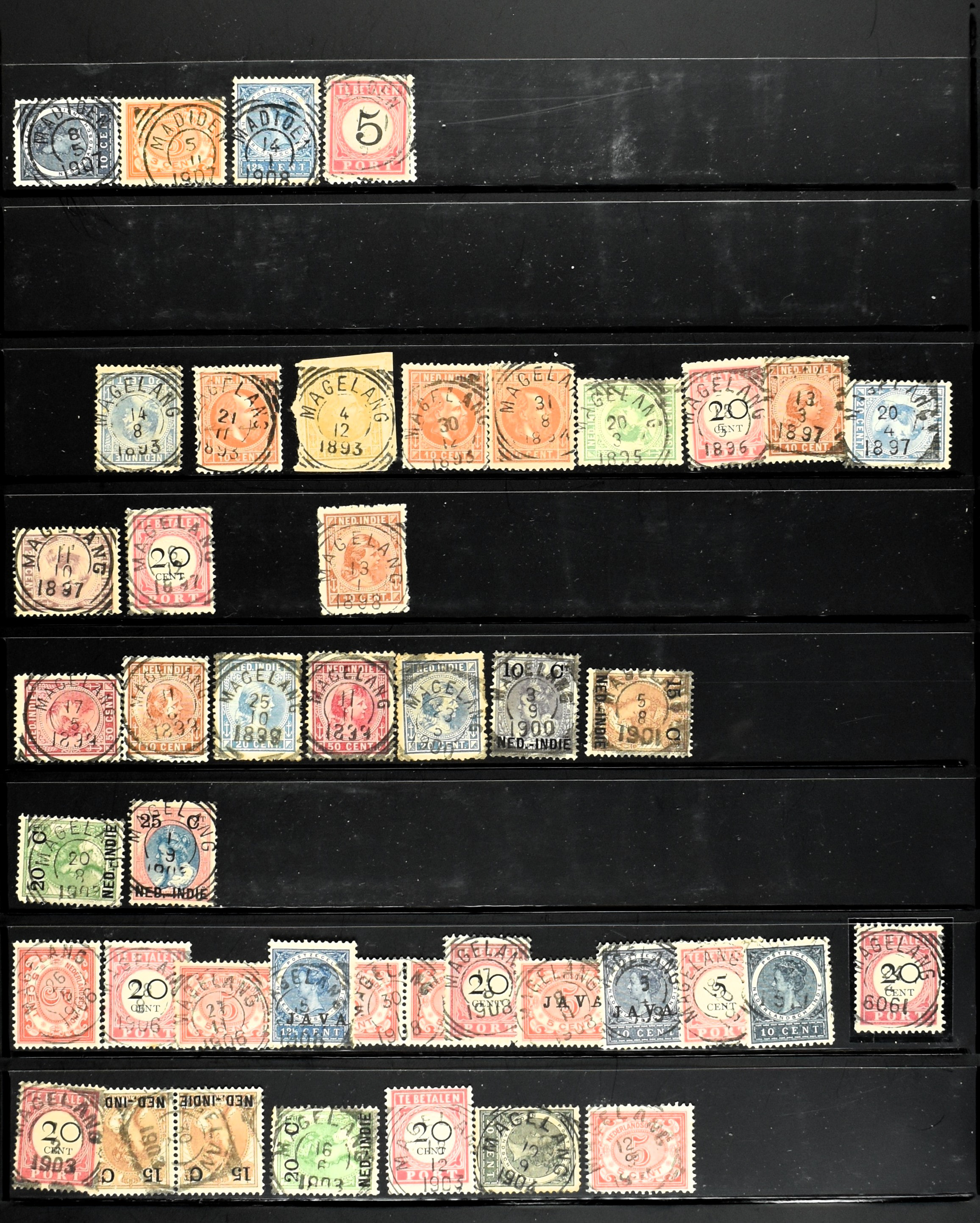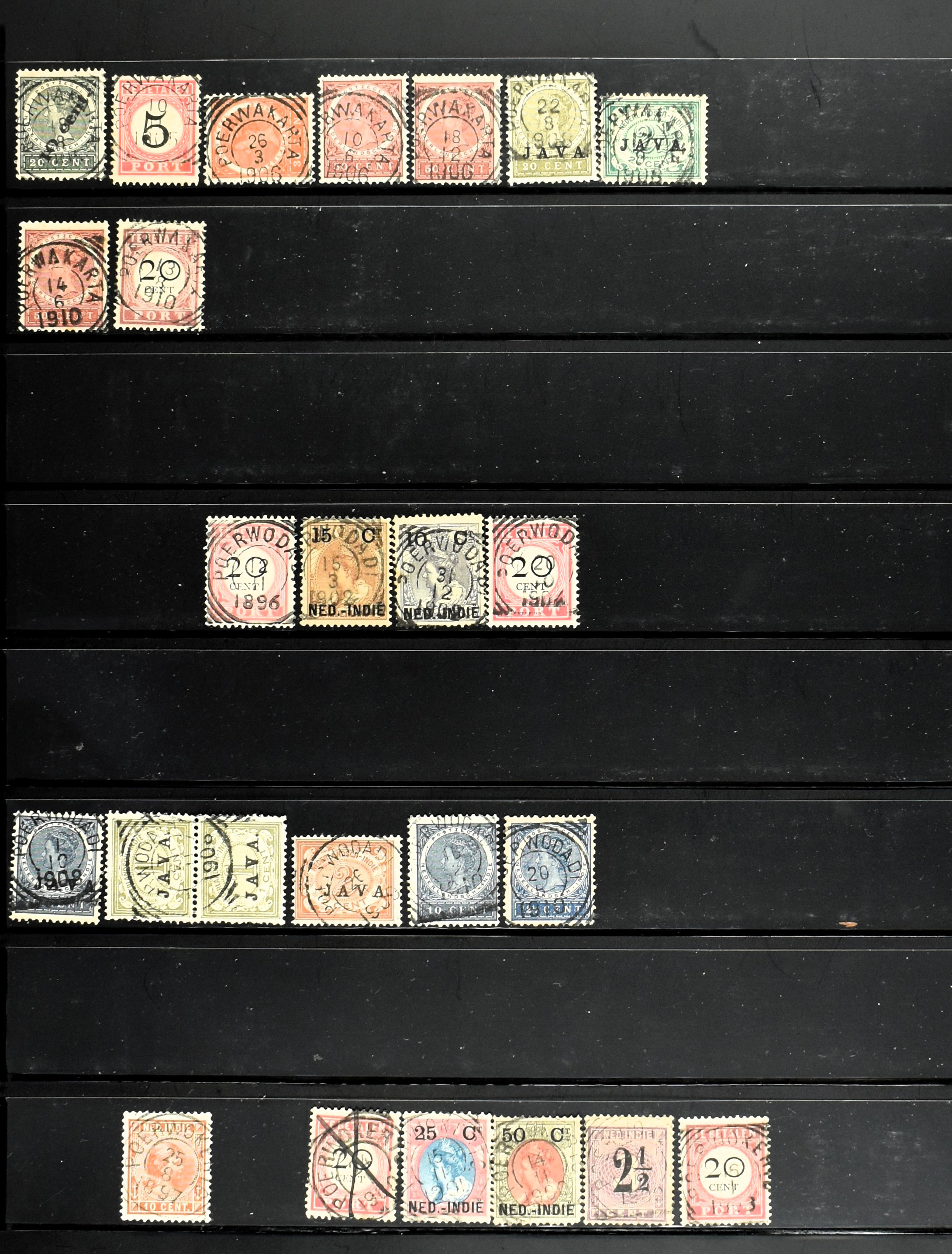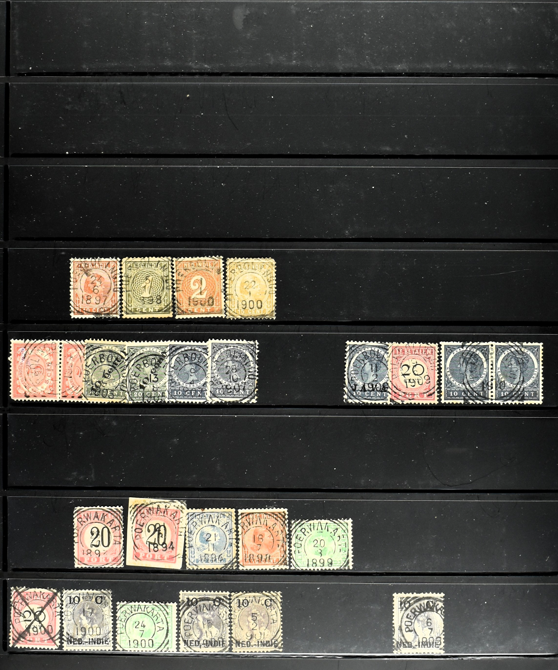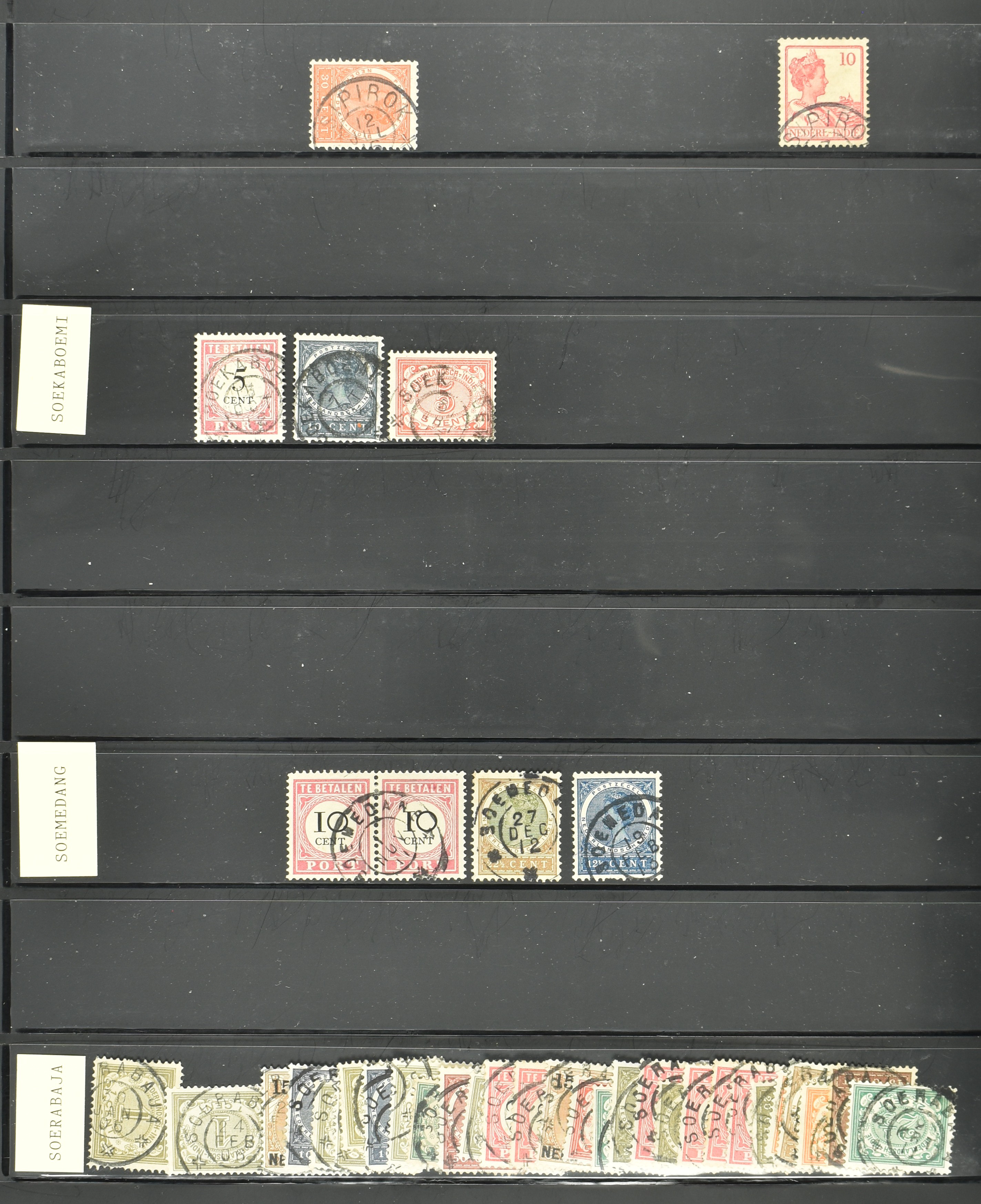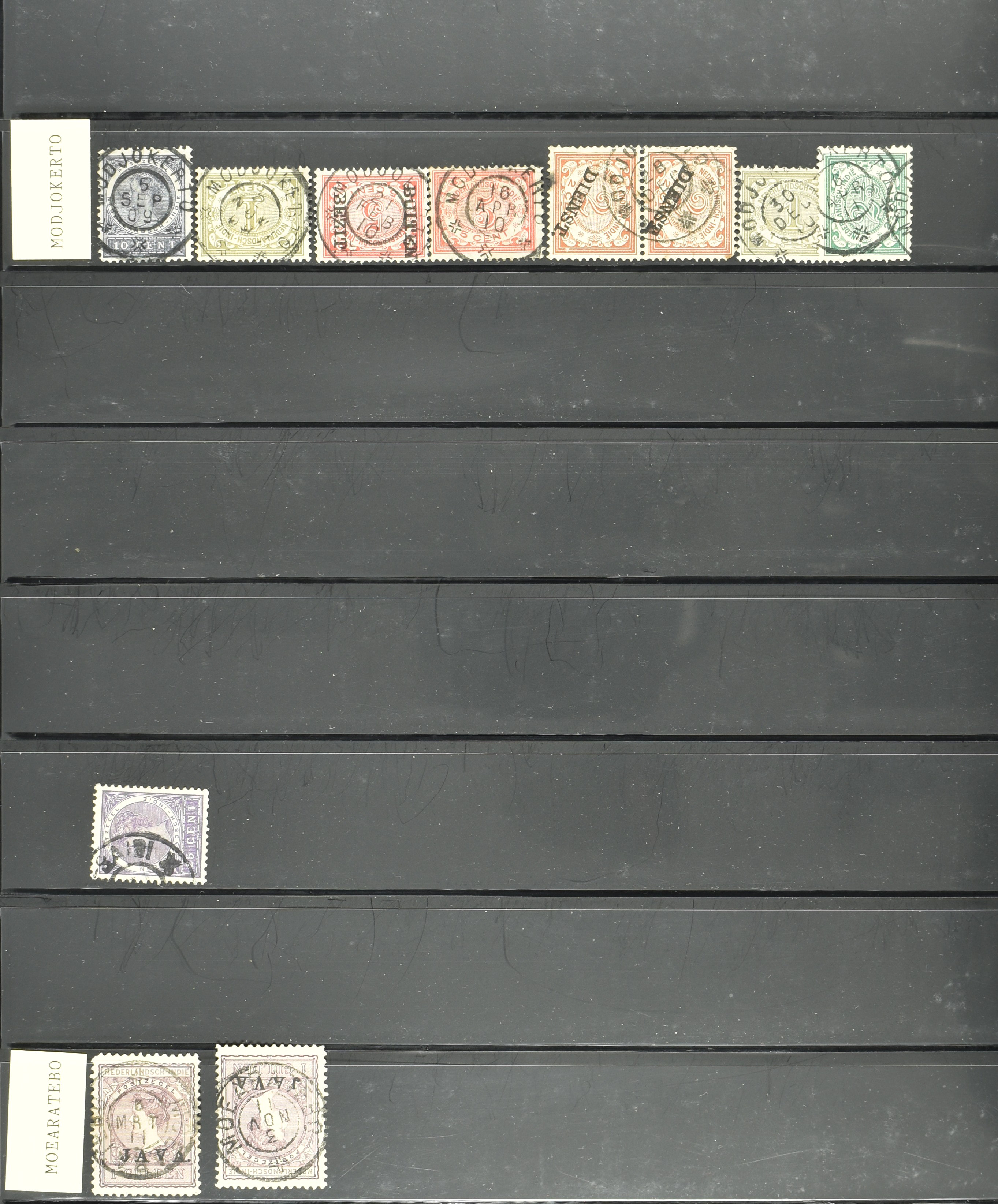 2258 imageNED.- INDIË KLEINRONDSTEMPELS, verzameling op losse zegels van diverse emissies en waarden w.o. meerdere schaarse en zeldzame kantoren in prachtige kwaliteit o.a. Anjer, Banda, Edi (blauw), Modjokerto, Rau, Tandjoengpoera, Tandjong-Pandan, Tebing Tinggi-Deli en Wlingi, enkele in blauw of violet, meerdere kantoren tevens met bijbehorende puntstempels, ook wat rondstempels, in insteekboek (Image) (Image2) (Image3) (Image4) (Image5) (Image6) (Image7) (Image8) (Image9) (Image10) (Image11) (Image12) (Image13) (Image14) (Image15) (Image16) (Image17) (Image18) (Image19) (Image20) (Image21) (Image22) (Image23) (Image24) (Image25) (Image26) (Image27) (Image28) (Image29) (Image30) (Image31) (Image32) (Image33) (Image34) (Image35) (All Images)